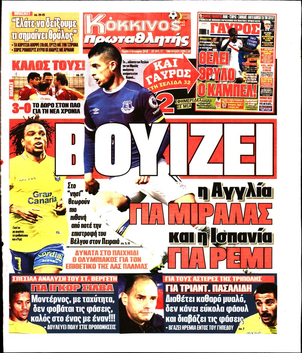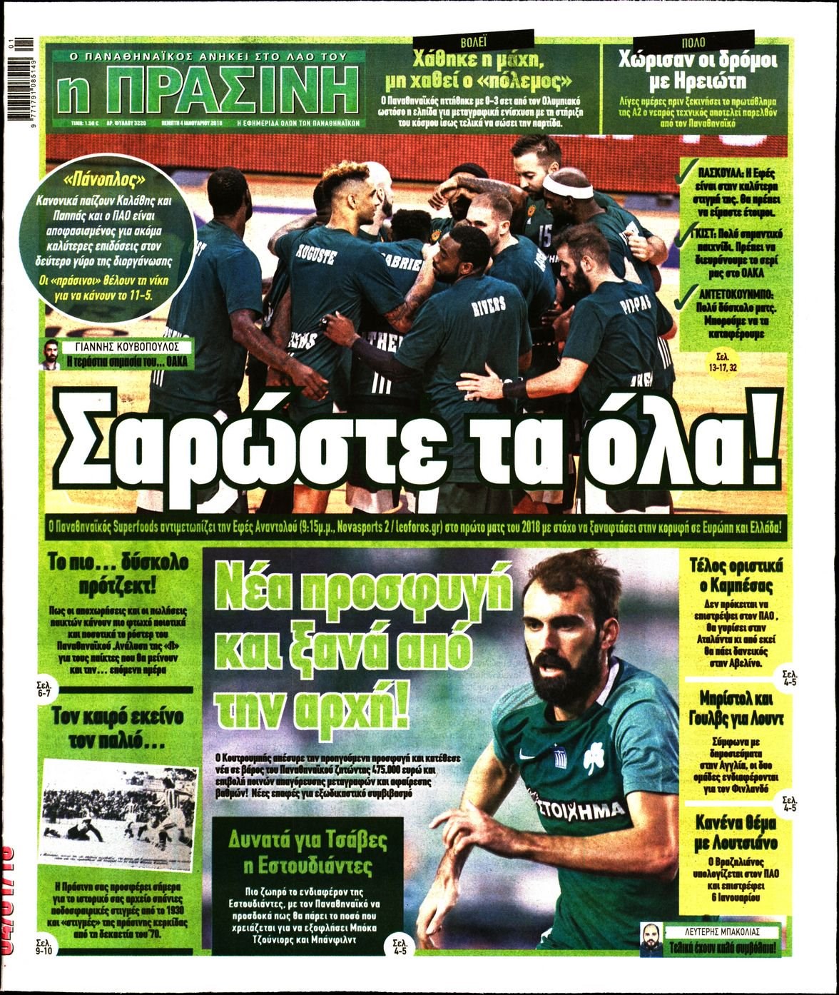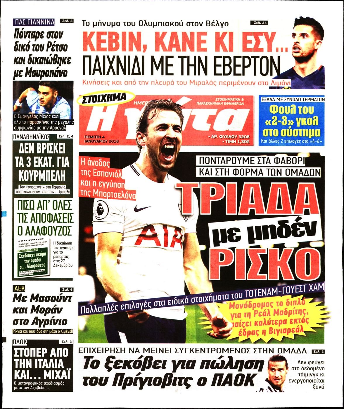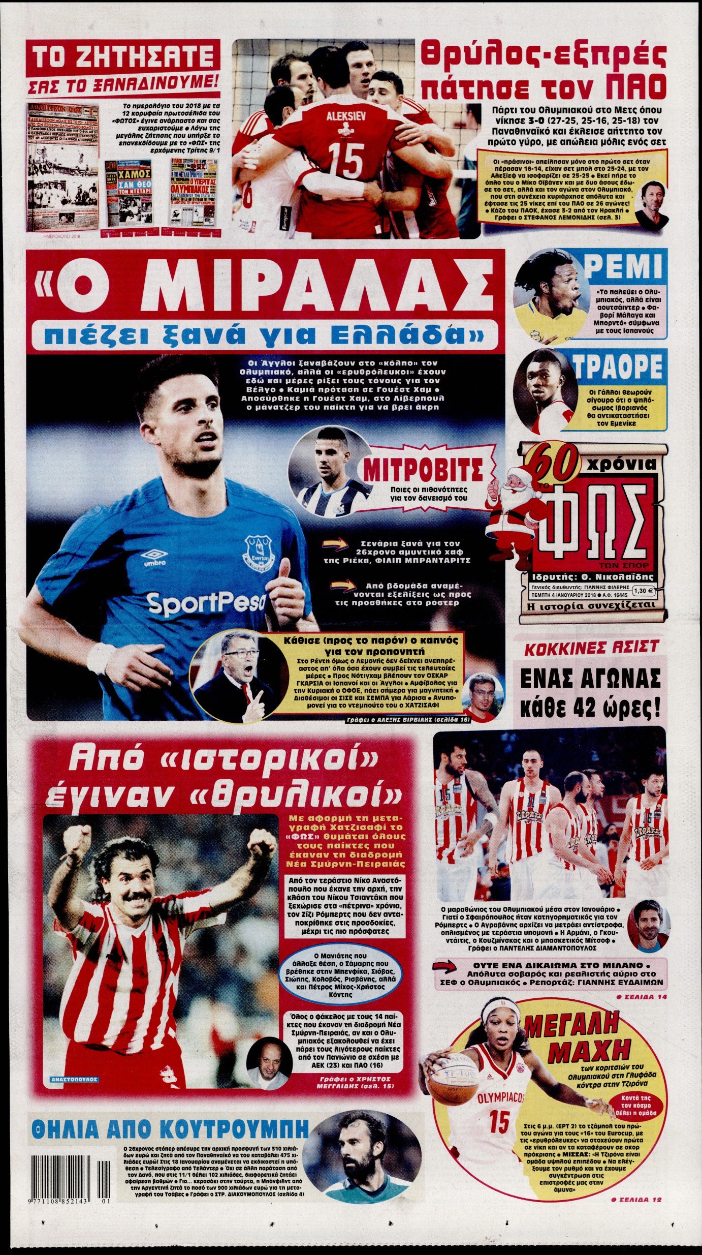 Οι αθλητικές εφημερίδες 4/1/2018 Enikos Newsroom 07:21, Πέμπτη 04 Ιανουαρίου 2018 Media Διαβάστε τα σημερινά πρωτοσέλιδα των αθλητικών εφημερίδων: ΑΘΛΗΤΙΚΕΣ ΕΦΗΜΕΡΙΔΕΣ ΠΡΩΤΟΣΕΛΙΔΑ Μοιράσου το: σχολίασε κι εσύ (0 σχόλια) Ακολουθήστε το enikos.gr στο Google News και μάθετε πρώτοι όλες τις ειδήσεις Δείτε όλες τις τελευταίες ειδήσεις από την Ελλάδα και τον Κόσμο στο enikos.gr Ειδήσεις Ροή Ειδήσεων 2 ώρες πριν Χριστούγεννα στα μπλόκα: Επιμένουν στις κινητοποιήσεις τους οι αγρότες – Ανοίγουν τα διόδια το Σαββατοκύριακο 2 ώρες πριν Ουκρανία: Η άνευ προηγουμένου επίθεση σε ρωσικό τάνκερ στη Μεσόγειο και το μήνυμα προς στον Πούτιν – Το «μακρύ χέρι» του Κιέβου 1 ώρα πριν Πούτιν: Τα μηνύματα σε Ευρώπη και ΝΑΤΟ από το μαραθώνιο «σόου» του – Η απαίτηση για «σεβασμό» και η ειρήνη «με τους όρους» της Μόσχας 2 ώρες πριν Τραμπ: Δεν αποκλείει την πιθανότητα ενός πολέμου στη Βενεζουέλα – «Ο Μαδούρο ξέρει καλύτερα από τον καθένα τι ακριβώς θέλω» 3 ώρες πριν Συνεχίζει να προκαλεί ο Μίτσκοσκι: «Για μένα το όνομα Μακεδονία είναι ιερό» 1 ώρα πριν Ανακαλύφθηκαν αρχαία χρυσά νομίσματα 2.200 ετών που απεικονίζουν τον θεό Απόλλωνα – Η άγνωστη σύνδεση με τον Φίλιππο Β΄ της Μακεδονίας 2 ώρες πριν Ύπνος: Μια κρυφή κατάσταση του εγκεφάλου πριν από τον ύπνο μπορεί να είναι το “κλειδί” για υψηλή ευφυΐα και δημιουργικότητα 3 ώρες πριν Αριθμολογία: Οι άνθρωποι που έχουν γεννηθεί αυτές τις 4 ημερομηνίες, συχνά παρεξηγούνται – «Η καλοσύνη τους κρύβει τεράστια δύναμη» 4 ώρες πριν Ξεχάστε το καθάρισμα το Σαββατοκύριακο: Ο «κανόνας των 20 λεπτών» που θα σας λύσει τα χέρια 10 λεπτά πριν Βασίλης Σπανούλης: Δεν εμφανίστηκε ούτε ένας δημοσιογράφος στην συνέντευξη Τύπου – «Καλησπέρα στον… κανέναν», δείτε βίντεο 21 λεπτά πριν Πόλεμος στην Ουκρανία: Εφτά νεκροί από ρωσική πυραυλική επίθεση στο λιμάνι της Οδησσού 24 λεπτά πριν ΗΠΑ: Η κυβέρνηση του Ντόναλντ Τραμπ άρχισε να δημοσιοποιεί τα αρχεία Έπσταϊν 36 λεπτά πριν Σάμος: Άνοιξε το μπλόκο των αγροτών στον κόμβο Κοκκαρίου – Σε νέα συνεδρίαση θα καθορίσουν την στάση τους 44 λεπτά πριν Άνω Λιόσια: Πυροβολισμοί σε επιχείρηση με χαλιά – Εντοπίστηκαν 10 κάλυκες ENIKOS NETWORK Το ΕΚΑΒ τιμήθηκε από την Ακαδημία Αθηνών για τα 40 χρόνια προσφοράς του Έχετε πραγματικά μεγάλη καρδιά; 10 χαρακτηριστικά όσων έχουν καλοσύνη Αναστολή μέτρων αναγκαστικής εκτέλεσης για κτηνοτρόφους που πλήττονται από την ευλογιά των αιγοπροβάτων Πλήρης επάρκεια προϊόντων στις λαϊκές της Αττικής, παρά τις αγροτικές κινητοποιήσεις – Τι απαντούν οι πωλητές Χαρτογραφώντας το «σημείο χωρίς επιστροφή»: Για πρώτη φορά αποκαλύπτεται με λεπτομέρεια το ακανθώδες όριο της ατμόσφαιρας τ... Η Google καταργεί τη λειτουργία «dark web report» – Πώς θα μπορούν οι χρήστες να διαγράφουν τα δεδομένα τους περισσότερα 22:42 , Παρασκευή 19 Δεκεμβρίου 2025 Γιώργος Γιαννόπουλος για “Το σόι σου”: “Είναι ευτυχία και ευλογία αυτή η σειρά” «Είναι ευτυχία και ευλογία η συγκυρία αυτής της σειράς», θα πει ο Γιώργος Γιαννόπουλος -ο αγαπ... 20:37 , Παρασκευή 19 Δεκεμβρίου 2025 Don’t Forget The Lyrics: Η Έλλη Κοκκίνου υποδέχεται 4 παίκτες που θα κάνουν τα πάντα για να μη χάσουν ούτε… μισή λέξη από τους στίχους Το «Don’t Forget The Lyrics» επιστρέφει απόψε, Παρασκευή 19 Δεκεμβρίου, στις 21:00 με νέο επει... 19:31 , Παρασκευή 19 Δεκεμβρίου 2025 GNTM: Απόψε ο μεγάλος τελικός για τους 4 φιναλίστ Έπειτα από μήνες γεμάτους μόδα, δημιουργία και έντονες αναμετρήσεις, το GNTM 2025 κορυφώνεται,... 18:11 , Παρασκ