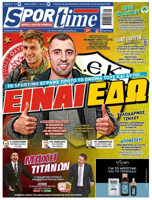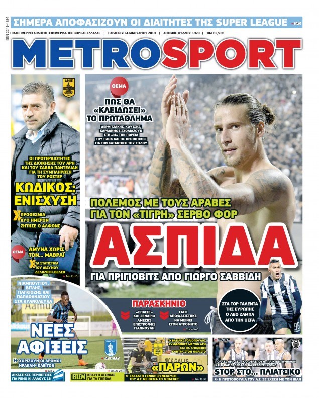 Οι αθλητικές εφημερίδες 4/1/2019 Κώστας Τεό 06:38, Παρασκευή 04 Ιανουαρίου 2019 Media Διαβάστε τα πρωτοσέλιδα των αθλητικών εφημερίδων: ΑΘΛΗΤΙΚΕΣ ΕΦΗΜΕΡΙΔΕΣ ΠΡΩΤΟΣΕΛΙΔΑ Μοιράσου το: σχολίασε κι εσύ (0 σχόλια) Ακολουθήστε το enikos.gr στο Google News και μάθετε πρώτοι όλες τις ειδήσεις Δείτε όλες τις τελευταίες ειδήσεις από την Ελλάδα και τον Κόσμο στο enikos.gr Ειδήσεις Ροή Ειδήσεων 1 ώρα πριν Υπόθεση Έπσταϊν: Το Υπουργείο Δικαιοσύνης δημοσιοποίησε μια σειρά από εξαιρετικά επεξεργασμένα αρχεία – «Λείπουν τα πιο σημαντικά έγγραφα», λένε οι Δημοκρατικοί 33 λεπτά πριν Ο «χάρτης» με τις αυξήσεις και τις φοροελαφρύνσεις του 2026 – Ποιοι και πόσα κερδίζουν 11 ώρες πριν Χριστούγεννα στα μπλόκα: Επιμένουν στις κινητοποιήσεις τους οι αγρότες – Ανοίγουν τα διόδια το Σαββατοκύριακο 2 ώρες πριν ΟΝΕΧ – MEGATUGS: Ξεκίνησε η ναυπήγηση ρυμουλκών στην Ελλάδα – Προθάλαμος πολεμικών πλοίων – Δείτε φωτογραφίες και βίντεο 1 ώρα πριν Καιρός: Αλλαγή σκηνικού σήμερα με βροχές και πτώση της θερμοκρασίας – Οι προβλέψεις των μετεωρολόγων για τα Χριστούγεννα 3 ώρες πριν Αυγά: Πόσα μπορείτε να τρώτε την ημέρα με ασφάλεια για μέγιστη πρόσληψη πρωτεΐνης 4 ώρες πριν Τα ζώδια σήμερα, Σάββατο 20 Δεκεμβρίου: Παρθένοι, το σύμπαν σας δίνει το κλειδί 3 ώρες πριν Οπτική ψευδαίσθηση: Μόνο αν είσαι ο Σέρλοκ Χολμς θα βρεις τον αριθμό «87» σε 7 δευτερόλεπτα 1 ώρα πριν Αρχαιολόγοι ανακάλυψαν σε χωράφι απεικόνιση 600 ετών ενός Αγίου – Τα στοιχεία που δείχνουν ότι μαρτύρησε 5 λεπτά πριν Παιδική υπέρταση: Μια σιωπηλή απειλή που αυξάνεται διεθνώς 6 λεπτά πριν Αγχώνεται για το χριστουγεννιάτικο δώρο που πήρε στην πλούσια σύντροφό του – «Φοβάμαι πως θα το βρει φθηνιάρικο, φοράει βραχιόλια Cartier» 12 λεπτά πριν Enerwave: Το νέο «ρεύμα» στη λιανική ενέργειας που αλλάζει την εμπειρία του καταναλωτή 17 λεπτά πριν Γιώργος Μαζωνάκης: Τη Δευτέρα η μήνυση του τραγουδιστή κατά του 22χρονου 26 λεπτά πριν Αμαλία Κωστοπούλου: Το μήνυμα για το χειρουργείο στο γόνατο – «Αυτός ο τραυματισμός μού στέρησε πολλά…» ENIKOS NETWORK Πόσα κιλά παίρνουμε πραγματικά τα Χριστούγεννα, σύμφωνα με την επιστήμη – Πώς να το αποτρέψουμε; Το δημοφιλές ρόφημα που αυξάνει την πίεση πιο γρήγορα και από το αλάτι Mega χριστουγεννιάτικη φορολοταρία: «Κλείδωσε» η ημερομηνία για την κλήρωση – Ερωτήσεις και απαντήσεις Αναστολή μέτρων αναγκαστικής εκτέλεσης για κτηνοτρόφους που πλήττονται από την ευλογιά των αιγοπροβάτων Χαρτογραφώντας το «σημείο χωρίς επιστροφή»: Για πρώτη φορά αποκαλύπτεται με λεπτομέρεια το ακανθώδες όριο της ατμόσφαιρας τ... Η Google καταργεί τη λειτουργία «dark web report» – Πώς θα μπορούν οι χρήστες να διαγράφουν τα δεδομένα τους περισσότερα 08:14 , Σάββατο 20 Δεκεμβρίου 2025 Τρομεροί γονείς: Η Μαρία Καβογιάννη εισβάλλει στο σπίτι της οικογένειας Στεφανίδη Όσα θα δούμε στο νέο διπλό επεισόδιο της σειράς «Τρομεροί γονείς», σήμερα Σάββατο 20 Δεκεμβρίο... 05:48 , Σάββατο 20 Δεκεμβρίου 2025 Οι οικονομικές εφημερίδες 20/12/2025 Διαβάστε τα πρωτοσέλιδα από τις οικονομικές εφημερίδες, σήμερα 20/12/2025. 05:43 , Σάββατο 20 Δεκεμβρίου 2025 Οι αθλητικές εφημερίδες 20/12/2025 Διαβάστε τα πρωτοσέλιδα από τις αθλητικές εφημερίδες, σήμερα 20/12/2025. 05:38 , Σάββατο 20 Δεκεμβρίου 2025 Οι πολιτικές εφημερίδες 20/12/2025 Διαβάστε τα πρωτοσέλιδα από τις πολιτικές εφημερίδες, σήμερα 20/12/2025. ΤΕΛΕΥΤΑΙΕΣ ΕΙΔΗΣΕΙΣ 5 λεπτά πριν Παιδική υπέρταση: Μια σιωπηλή απειλή που αυξάνεται... 6 λεπτά πριν Αγχώνεται για το χριστουγεννι