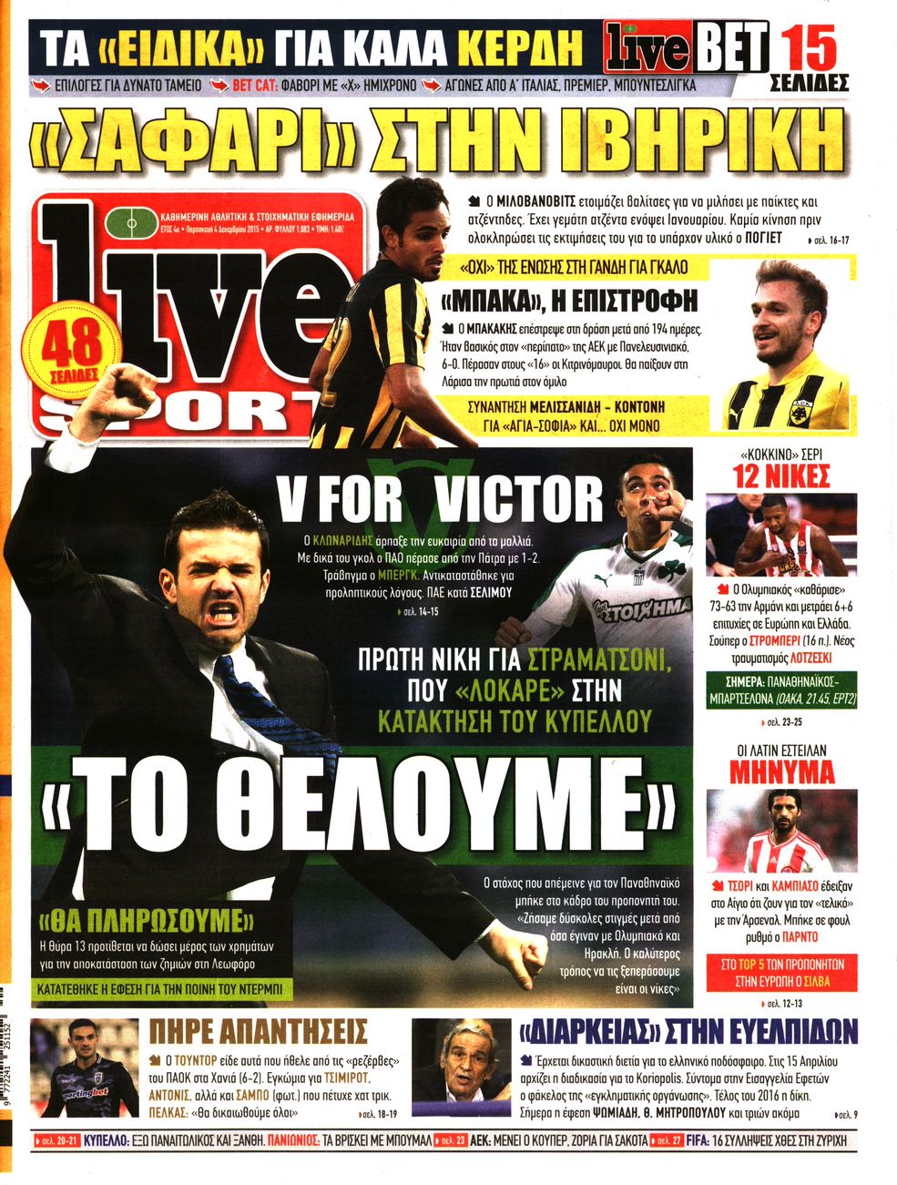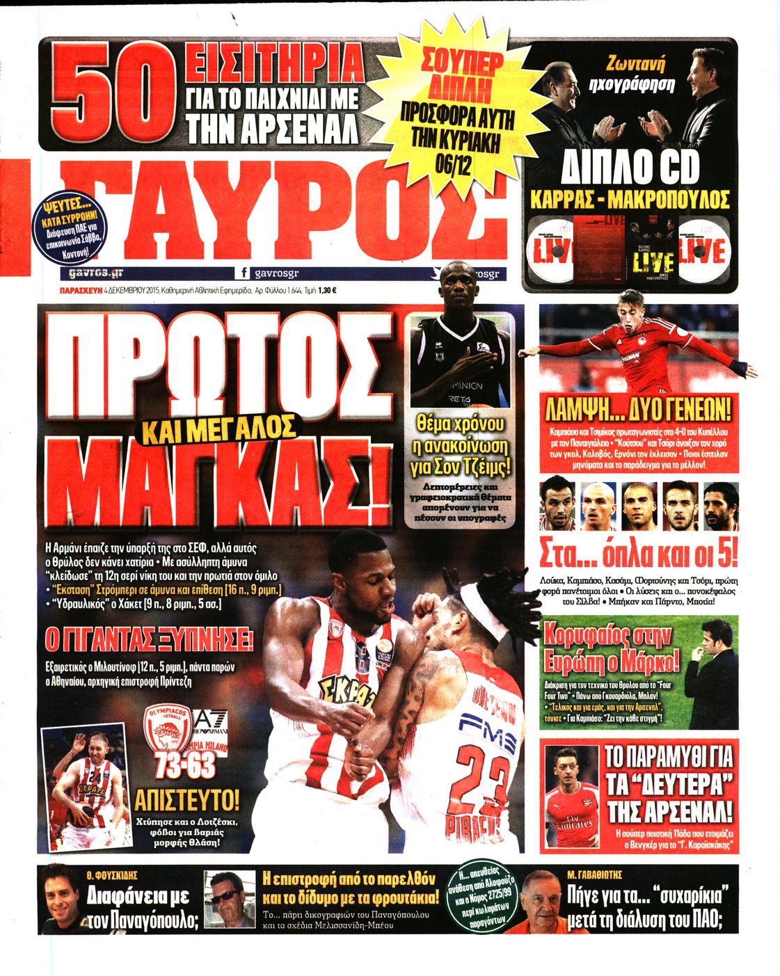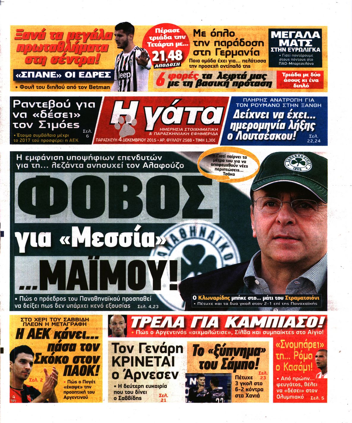 Οι αθλητικές εφημερίδες 4/12/2015 Enikos Newsroom 06:34, Παρασκευή 04 Δεκεμβρίου 2015 Media Διαβάστε τα σημερινά πρωτοσέλιδα των αθλητικών εφημερίδων: ΑΘΛΗΤΙΚΕΣ ΕΦΗΜΕΡΙΔΕΣ ΠΡΩΤΟΣΕΛΙΔΑ Μοιράσου το: σχολίασε κι εσύ (0 σχόλια) Ακολουθήστε το enikos.gr στο Google News και μάθετε πρώτοι όλες τις ειδήσεις Δείτε όλες τις τελευταίες ειδήσεις από την Ελλάδα και τον Κόσμο στο enikos.gr Ειδήσεις Ροή Ειδήσεων 2 ώρες πριν Δημοσκόπηση Metron Analysis: Στις 10 μονάδες η διαφορά ΝΔ-ΠΑΣΟΚ, στην 3η θέση η Πλεύση Ελευθερίας – 8 στους 10 στηρίζουν τον αγώνα των αγροτών 6 ώρες πριν Αγρότες: «Όχι στον διάλογο, μας εμπαίζει η κυβέρνηση» – Αποφάσισαν κλιμάκωση των κινητοποιήσεων, τι θα γίνει τα Χριστούγεννα 2 ώρες πριν Νίκος Παππάς στον ΑΝΤ1: «Δεν κρύβομαι – Μετά το συμβάν ακολούθησα κανονικά το πρόγραμμά μου» – ΒΙΝΤΕΟ 3 ώρες πριν Αθήνα: Εξαρθρώθηκε εγκληματική οργάνωση που διακινούσε ναρκωτικά σε μορφή σοκολάτας – Δύο τράπερ ανάμεσα στους 4 συλληφθέντες – ΒΙΝΤΕΟ 2 ώρες πριν Διαμαντής Καραναστάσης: Οδηγούσε υπό την επήρεια αλκοόλ – Του αφαιρέθηκε το δίπλωμα και του επιβλήθηκε πρόστιμο 350 ευρώ 2 ώρες πριν Manifesting: Πώς να συναντήσετε τον σύντροφο της ζωής σας, ανάλογα με τον μήνα γέννησής σας 4 ώρες πριν Γάμος: 11 ψυχρές αλλά ευγενικές φράσεις, που λέει ένας άνδρας όταν σκέφτεται τον χωρισμό 3 ώρες πριν Σφουγγάρισμα: Η συνήθεια που θα σας βοηθήσει να διατηρήσετε το σπίτι σας καθαρό και τακτοποιημένο 2 ημέρες πριν 20 χρόνια τα Χριστούγεννα ξεκινούν στα Public με μεγάλη ποικιλία σε δώρα! 3 λεπτά πριν Μπορεί ο Μαδούρο να αντέξει τον αποκλεισμό του Τραμπ; Τι θα χρειαστεί η Ουάσινγκτον για να τον ανατρέψει 6 λεπτά πριν Αρχαιολόγοι ανακάλυψαν ρωμαϊκά τεχνουργήματα από μια πόλη που δεν υπήρξε ποτέ – Τα τρία εντυπωσιακά κτίρια και ο αμφορέας με τις… σαρδέλες 8 λεπτά πριν Στο ΟΑΚΑ για το «Παναθηναϊκός – Χάποελ» η Κίμπερλι Γκίλφοϊλ – ΦΩΤΟ 15 λεπτά πριν Ούρσουλα φον ντερ Λάιεν: Μετατίθεται για τον Ιανουάριο η υπογραφή της εμπορικής συμφωνίας «ΕΕ-MERCOSUR» 21 λεπτά πριν Φοινικούντα: Το Σάββατο απολογείται ο 30χρονος γιος γνωστού επιχειρηματία της Πλάκας που παραδόθηκε – Όσα είπε στους αστυνομικούς και ο ρόλος του στο έγκλημα ENIKOS NETWORK Σε περίοδο αυξημένης δραστηριότητας η γρίπη στην Ελλάδα-Μέτρα προστασίας από τον ΕΟΔΥ Σκέφτεστε συνέχεια συζητήσεις που έχετε κάνει; Τι σημαίνει αυτό, σύμφωνα με ειδικό Λαγκάρντ: Αισιόδοξη για την ανάπτυξη της Ευρωζώνης, αβέβαιη για τον πληθωρισμό ΑΣΕΠ 2ΓΒ/2025: Σήμερα αρχίζει η υποβολή ενστάσεων – Πότε θα βγουν τα οριστικά αποτελέσματα Χαρτογραφώντας το «σημείο χωρίς επιστροφή»: Για πρώτη φορά αποκαλύπτεται με λεπτομέρεια το ακανθώδες όριο της ατμόσφαιρας τ... Η Google καταργεί τη λειτουργία «dark web report» – Πώς θα μπορούν οι χρήστες να διαγράφουν τα δεδομένα τους περισσότερα 17:45 , Πέμπτη 18 Δεκεμβρίου 2025 ROUK ZOUK: Εορταστικό επεισόδιο με καλεσμένους τους πρωταγωνιστές του «Γιατί ρε πατέρα» Το Σάββατο 20 Δεκεμβρίου στις 21:00, η Ζέτα Μακρυπούλια υποδέχεται εκλεκτούς ηθοποιούς που όλο... 17:20 , Πέμπτη 18 Δεκεμβρίου 2025 Άγιος έρωτας: Η Χριστίνα εξομολογείται στον πατέρα Νικόλαο, απόψε στις 21:00 στον Alpha Η Νότα αποφασίζει να εκδικηθεί τον Πέτρο και τον Στέφανο, για χάρη του Λούη, όμως τα πράγματα ... 16:50 , Πέμπτη 18 Δεκεμβρίου 2025 Να μ’ αγαπάς: Ζωή και Φωτεινή συμφιλιώνονται ως μάνα με κόρη, απόψε στις 20:00 Η ταυτότητα του Άγγελου αποκαλύπτεται στο νέο επεισόδιο της σειράς “Να μ’ αγαπάς... 15:52 , Πέμπτη 18 Δεκεμβρίου 2025 Το Σπίτι Δί