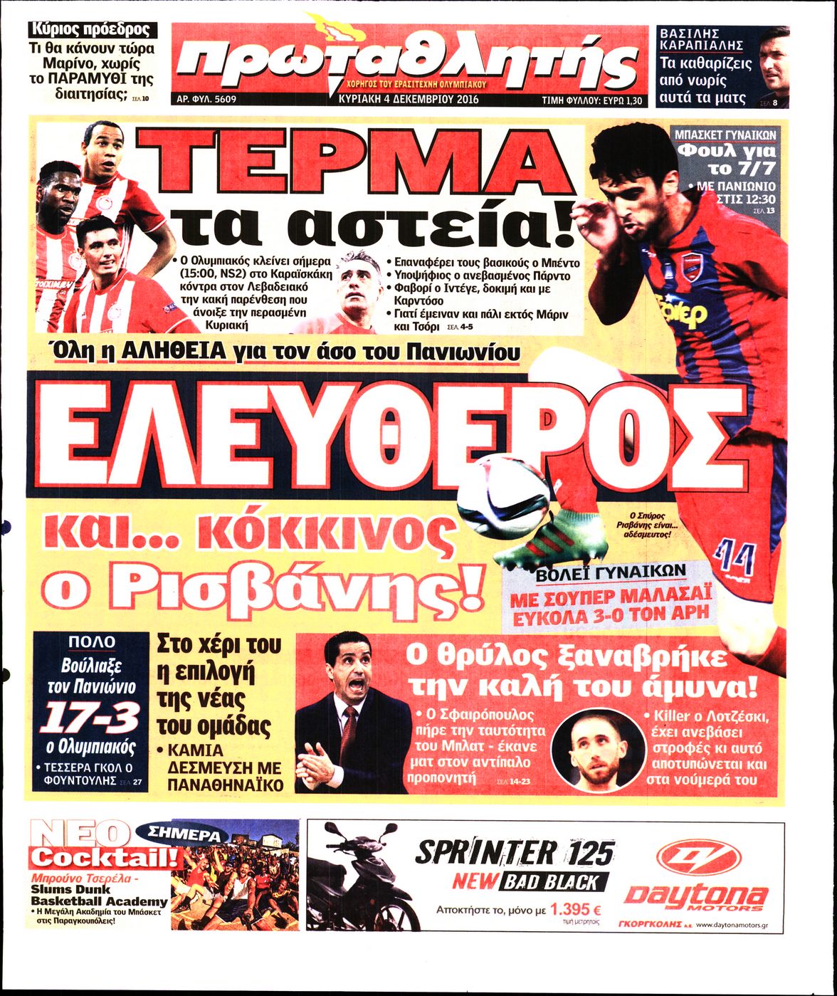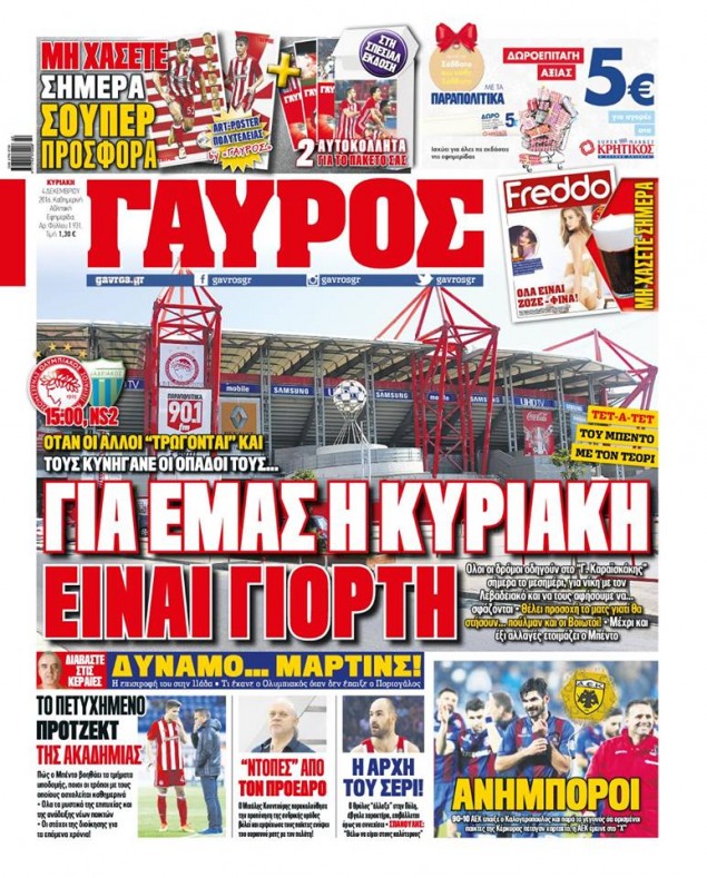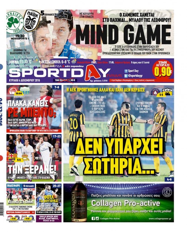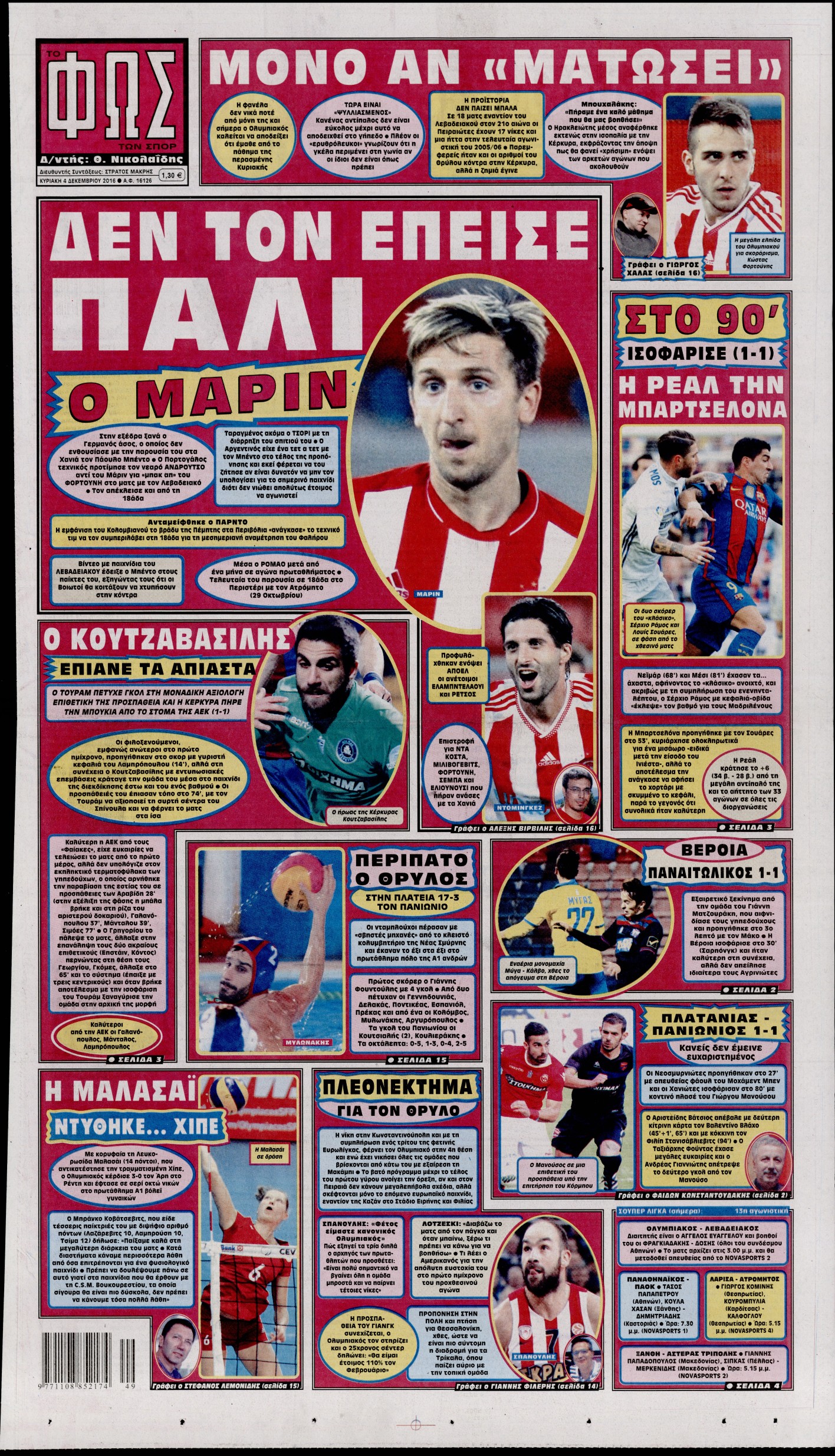 Οι αθλητικές εφημερίδες 4/12/2016 Κώστας Τεό 03:49, Κυριακή 04 Δεκεμβρίου 2016 Media Διαβάστε τα σημερινά πρωτοσέλιδα των αθλητικών εφημερίδων: ΑΘΛΗΤΙΚΕΣ ΕΦΗΜΕΡΙΔΕΣ ΠΡΩΤΟΣΕΛΙΔΑ Μοιράσου το: σχολίασε κι εσύ (0 σχόλια) Ακολουθήστε το enikos.gr στο Google News και μάθετε πρώτοι όλες τις ειδήσεις Δείτε όλες τις τελευταίες ειδήσεις από την Ελλάδα και τον Κόσμο στο enikos.gr Ειδήσεις Ροή Ειδήσεων 4 ώρες πριν Εκτός ευρωομάδας ΣΥΡΙΖΑ ο Νίκος Παππάς μετά την επίθεση στον δημοσιογράφο Νίκο Γιαννόπουλο – Η μήνυση και οι νέες δηλώσεις 4 ώρες πριν «Αγριεύουν» οι αγρότες: «Δεν συντρέχει λόγος συνάντησης με τον πρωθυπουργό» – Ώρα αποφάσεων στη σύσκεψη της Πέμπτης 4 ώρες πριν Κυψέλη: Χωρίς την οικογένειά της δίπλα της απολογήθηκε η 16χρονη – «Της είχε επιτεθεί κάποιος για να την βιάσει, φοβήθηκε και κυκλοφορούσε με μαχαίρι» 4 ώρες πριν Politico: Το πρόβλημα της Ευρώπης δεν είναι το Βέλγιο αλλά ο Ντόναλντ Τραμπ 5 ώρες πριν Αλεξανδρούπολη: Πολυοργανική ανεπάρκεια λόγω υποσιτισμού η αιτία θανάτου του 3χρονου αγοριού 4 ώρες πριν Μυστήριο με τεράστιες κυκλικές πέτρες 200 κιλών – Ανακαλύφθηκαν τυχαία κατά τη διάρκεια οδικών έργων και κανείς δεν ξέρει από πού προέρχονται 5 ώρες πριν Ύπνος: Ειδικός εξηγεί τον πραγματικό λόγο που ξυπνάτε στις 4 τα ξημερώματα – Ο ρόλος των ορμονών και του κιρκάδιου ρυθμού 6 ώρες πριν Αριθμολογία: Οι άνθρωποι που έχουν γεννηθεί αυτές τις 4 ημερομηνίες, είναι τρυφεροί και αγαπούν ανιδιοτελώς 18 ώρες πριν 20 χρόνια τα Χριστούγεννα ξεκινούν στα Public με μεγάλη ποικιλία σε δώρα! 9 λεπτά πριν Σουδάν: Επιδρομή drone σε χωριό του Νότιου Κορντοφάν – Οκτώ νεκροί 24 λεπτά πριν Αλ Τσαντίρι Νιουζ: Η κόρη της Πάολα στο κοινό – Η ατάκα Λαζόπουλου που την έκανε να «κοκκινήσει» 39 λεπτά πριν Ρωσία: Ουκρανικές δυνάμεις έπληξαν πλοίο στο λιμάνι του Ροστόφ – Αναφορές για θύματα 55 λεπτά πριν Βρυξέλλες: Νυχτερινό… μπλόκο αγροτών μπροστά από το κτίριο της Ευρωπαϊκής Επιτροπής – Πάνω από 100 τρακτέρ απέκλεισαν την λεωφόρο 1 ώρα πριν Euroleague: Απρόσμενη ήττα για την Μονακό του Βασίλη Σπανούλη – Η βαθμολογία μετά το τέλος της 16ης αγωνιστικής ENIKOS NETWORK Αϋπνία: Το κόλπο που θα σας βοηθήσει να κοιμηθείτε απόψε – Είναι απλό και έχει αποτέλεσμα 2,6 εκατομμύρια πολίτες έχουν ήδη εμβολιαστεί κατά της γρίπης ΕΛΣΤΑΤ: Τι δείχνουν τα νέα στοιχεία για τις ηλεκτρονικές παραγγελίες των επιχειρήσεων ΚΕΠΕ: Οι 3 διακριτές συμβολές των ΜμΕ και της μεταποίησης στην ελληνική οικονομία Χαρτογραφώντας το «σημείο χωρίς επιστροφή»: Για πρώτη φορά αποκαλύπτεται με λεπτομέρεια το ακανθώδες όριο της ατμόσφαιρας τ... Η Google καταργεί τη λειτουργία «dark web report» – Πώς θα μπορούν οι χρήστες να διαγράφουν τα δεδομένα τους περισσότερα 02:30 , Πέμπτη 18 Δεκεμβρίου 2025 Αλ Τσαντίρι Νιουζ: Η κόρη της Πάολα στο κοινό – Η ατάκα Λαζόπουλου που την έκανε να «κοκκινήσει» Γιορτινή διάθεση και ευχάριστες στιγμές γέμισε η αποψινή, τελευταία για το 2025, εκπομπή του «... 22:24 , Τετάρτη 17 Δεκεμβρίου 2025 Το Σπίτι Δίπλα Στο Ποτάμι: Σε κίνδυνο η υγεία του Απόστολου – Τι θα δούμε απόψε “Το Σπίτι Δίπλα στο Ποτάμι” ξετυλίγει το νήμα της ζωής των πέντε αδελφών με καταισ... 21:14 , Τετάρτη 17 Δεκεμβρίου 2025 Παιχνίδια Εκδίκησης: Θα καταφέρει ο Χρήστος να κλονίσει την εμπιστοσύνη της Μάγιας απέναντι στον Άγη; Τα «Παιχνίδια Εκδίκησης» έρχονται απόψε στις 22:30, στον Αντ1, με το τελευταίο επεισόδιο της χ... 20:57 , Τετάρτη 17 Δεκεμβρίου 2025 Άγιος Έρωτας: Η Χλόη καταθέτει εναντίον του 