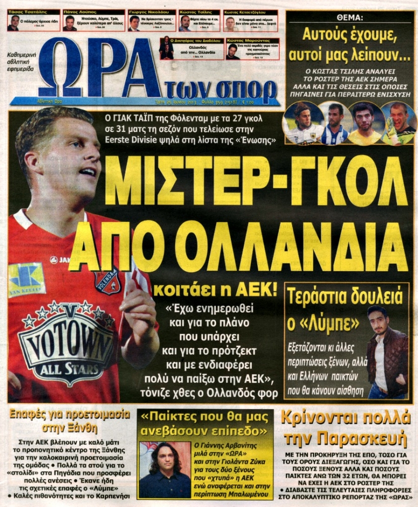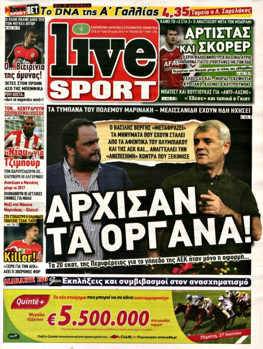 Οι αθλητικές εφημερίδες Enikos Newsroom 08:36, Τρίτη 25 Ιουνίου 2013 Media Οι αθλητικές εφημερίδες Διαβάστε τα πρωτοσέλιδα των αθλητικών εφημερίδων: ΑΘΛΗΤΙΚΕΣ ΕΦΗΜΕΡΙΔΕΣ ΕΦΗΜΕΡΙΔΑ ΠΡΩΤΟΣΕΛΙΔΑ Μοιράσου το: σχολίασε κι εσύ (0 σχόλια) Ακολουθήστε το enikos.gr στο Google News και μάθετε πρώτοι όλες τις ειδήσεις Δείτε όλες τις τελευταίες ειδήσεις από την Ελλάδα και τον Κόσμο στο enikos.gr Ειδήσεις Ροή Ειδήσεων 3 ώρες πριν Ακίλα Σάλεχ: «Άκυρο» το τουρκολιβυκό μνημόνιο λέει ο πρόεδρος της λιβυκής Βουλής – Ανοίγει ο διάλογος με Ελλάδα, Αίγυπτο και Τουρκία 7 ώρες πριν Αγρότες: Την Τρίτη η απόφαση για διάλογο ή κλιμάκωση των κινητοποιήσεών τους – Πώς χαρακτηρίζουν τις ανακοινώσεις Τσιάρα και οι επόμενες κινήσεις 7 ώρες πριν Τραμπ για Ουκρανία: «Είμαστε πιο κοντά σε συμφωνία από ποτέ» – «Πολυεθνική δύναμη» προτείνουν οι Ευρωπαίοι 7 ώρες πριν Κυψέλη: Η 16χρονη που μαχαίρωσε την 14χρονη είχε συλληφθεί 3 φορές στο παρελθόν – Έβριζε καθηγητές, έβαζε φωτιές σε κάδους και εκβίαζε συμμαθητές της 6 ώρες πριν Τρομοκρατική επίθεση στο Σίδνεϊ: Θλίψη για τα 15 θύματα – Οργή στην εβραϊκή κοινότητα που προειδοποιούσε επί δύο χρόνια 7 ώρες πριν Επιστήμονες ίσως έλυσαν το μυστήριο γύρω από τα Χόμπιτ – Νέα έρευνα αποκαλύπτει πώς εξαφανίστηκαν 8 ώρες πριν Ύπνος: Η αρχαία μορφή άσκησης που αποδεικνύεται αποτελεσματική στην αντιμετώπιση της αϋπνίας, σύμφωνα με μελέτη 9 ώρες πριν Αριθμολογία: Ο τυχερός σας αριθμός, ανάλογα με τον μήνα γέννησής σας 10 ώρες πριν Πώς να μην μαραίνονται γρήγορα τα κομμένα λουλούδια: Το λάθος στην τοποθέτηση του βάζου που πρέπει να αποφεύγετε 12 δευτερόλεπτα πριν Οι οικονομικές εφημερίδες 16/12/2025 6 λεπτά πριν Οι αθλητικές εφημερίδες 16/12/2025 10 λεπτά πριν Οι πολιτικές εφημερίδες 16/12/2025 18 λεπτά πριν Τα ζώδια σήμερα, Τρίτη 16 Δεκεμβρίου: Ιχθύες, δεν χρειάζεται να έχετε όλες τις απαντήσεις 26 λεπτά πριν Εφημερεύοντα φαρμακεία σε Αθήνα και Θεσσαλονίκη (16/12) ENIKOS NETWORK Πότε το χρόνιο ροχαλητό να αποτελέσει ένδειξη κινδύνου για την καρδιά; Τι λένε οι ειδικοί Μάριος Θεμιστοκλέους: Το ΕΣΥ ενισχύεται, εκσυγχρονίζεται, αλλάζει ΕΒΕΠ για αγροτικές κινητοποιήσεις: Κάθε επιπλέον εβδομάδα προσθέτει περίπου 200 εκατ. ευρώ ζημιά Τι προβλέπει το νομοσχέδιο του υπουργείου Εθνικής Άμυνας – Oι αλλαγές στους μισθούς Σύγχρονος Νοστράδαμος: Προειδοποιεί για «μεγάλο γεγονός» τους επόμενους μήνες που θα συγκλονίσει τη Βρετανία και τον κόσμο Τεστ παρατηρητικότητας: Μπορείτε να βρείτε τις 3 διαφορές στις εικόνες με έναν πιγκουίνο σε 14 δευτερόλεπτα περισσότερα 05:48 , Τρίτη 16 Δεκεμβρίου 2025 Οι οικονομικές εφημερίδες 16/12/2025 Διαβάστε τα πρωτοσέλιδα από τις οικονομικές εφημερίδες, σήμερα 16/12/2025. 05:43 , Τρίτη 16 Δεκεμβρίου 2025 Οι αθλητικές εφημερίδες 16/12/2025 Διαβάστε τα πρωτοσέλιδα από τις αθλητικές εφημερίδες, σήμερα 16/12/2025. 05:38 , Τρίτη 16 Δεκεμβρίου 2025 Οι πολιτικές εφημερίδες 16/12/2025 Διαβάστε τα πρωτοσέλιδα από τις πολιτικές εφημερίδες, σήμερα 16/12/2025. 21:35 , Δευτέρα 15 Δεκεμβρίου 2025 Το Σπίτι Δίπλα Στο Ποτάμι: Η Ιουλία και ο Φωκάς μετακομίζουν στη Ρόδο – Δύο νέοι χαρακτήρες μπαίνουν στη σειρά Δύο νέοι, κομβικοί χαρακτήρες κάνουν την εμφάνισή τους αυτή την εβδομάδα στην αγαπημένη σειρά ... ΤΕΛΕΥΤΑΙΕΣ ΕΙΔΗΣΕΙΣ 6 λεπτά πριν Οι αθλητικές εφημερίδες 16/12/2025 10 λεπτά πριν Οι πολιτικές εφημερίδες 16/12/2025 18 λεπτά πριν Τα ζώδια σήμερα, Τρίτη 16 Δεκεμβρίου: Ιχθύες, δεν... 26 λεπτά πριν Εφημερεύοντα φαρμακεία σε Αθήνα και Θεσσαλονίκη (16/12) 33 λεπ