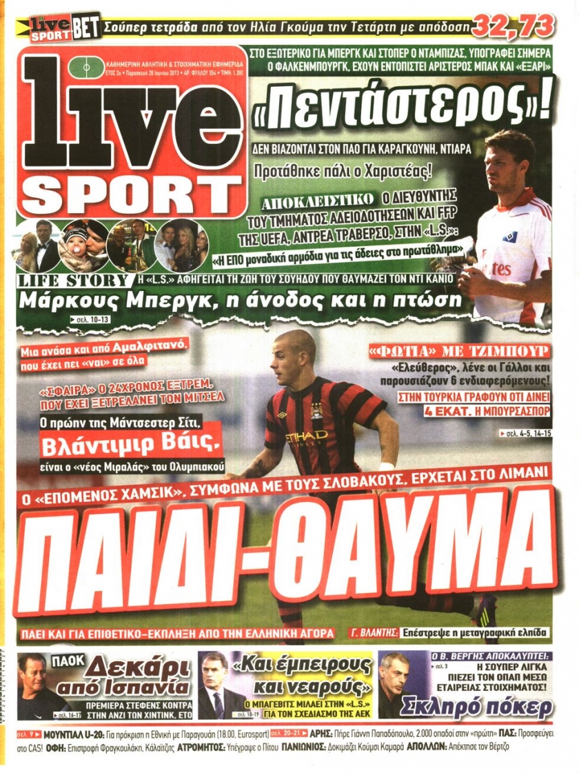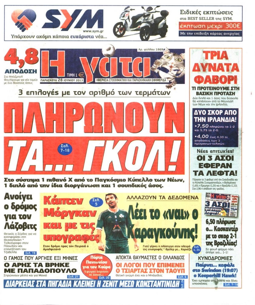 Οι αθλητικές εφημερίδες Enikos Newsroom 08:50, Παρασκευή 28 Ιουνίου 2013 Media Οι αθλητικές εφημερίδες Διαβάστε τα πρωτοσέλιδα των αθλητικών εφημερίδων: ΑΘΛΗΤΙΚΕΣ ΕΦΗΜΕΡΙΔΕΣ ΕΦΗΜΕΡΙΔΕΣ ΠΡΩΤΟΣΕΛΙΔΑ Μοιράσου το: σχολίασε κι εσύ (0 σχόλια) Ακολουθήστε το enikos.gr στο Google News και μάθετε πρώτοι όλες τις ειδήσεις Δείτε όλες τις τελευταίες ειδήσεις από την Ελλάδα και τον Κόσμο στο enikos.gr Ειδήσεις Ροή Ειδήσεων 1 ώρα πριν Αγρότες: Πολύωροι αποκλεισμοί στα τελωνεία Προμαχώνα, Εξοχής, Ευζώνων και Νίκης – Κλείνουν τον κόμβο Φιλώτα οι παραγωγοί στη Δυτική Μακεδονία 42 λεπτά πριν Νίκος Παππάς: Ζητώ συγγνώμη για αυτό το επεισόδιο – Δεν τον γρονθοκόπησα 3 ώρες πριν Ευρωπαϊκό Συμβούλιο: Όλες οι λεπτομέρειες για το δάνειο των 90 δισ. ευρώ στην Ουκρανία – Τα συμπεράσματα της Συνόδου Κορυφής 2 ώρες πριν Αίγιο: 22χρονη κατήγγειλε ότι έπεσε θύμα βιασμού και ληστείας από συγγενικά της πρόσωπα 2 ώρες πριν Σφοδρές βροχές και καταιγίδες πλήττουν τα Ηνωμένα Αραβικά Εμιράτα: Ακυρώσεις πτήσεων, προβλήματα στην κυκλοφορία 1 ώρα πριν Αλλαγή σελίδας για 3 ζώδια – «Μία δύσκολη περίοδος φτάνει στο τέλος της» 3 ώρες πριν Πώς το αρχαίο DNA του κυνηγού – συλλέκτη ξεκλείδωσε τα μυστικά της μακροζωίας 2 ημέρες πριν 20 χρόνια τα Χριστούγεννα ξεκινούν στα Public με μεγάλη ποικιλία σε δώρα! 2 ώρες πριν Ο σύζυγός της συμπεριφέρεται όπως το παιδί τους – «Χρησιμοποιεί αστείες δικαιολογίες για να μην κάνει δουλειές και να ξοδεύει λεφτά» 4 λεπτά πριν Ενίσχυση δρομολογίων του Μετρό τις Κυριακές 21 και 28 Δεκεμβρίου – Κυκλοφοριακές ρυθμίσεις αύριο στη Γραμμή 7 του τραμ λόγω εορταστικών εκδηλώσεων 8 λεπτά πριν Βλαντίμιρ Πούτιν: LIVE η συνέντευξη Τύπου για τον απολογισμό της χρονιάς 14 λεπτά πριν Αλμπέρτο Εσκενάζυ: Υπό τους ήχους του τραγουδιού «Του Αιγαίου τα μπλουζ» το τελευταίο αντίο στο αποτεφρωτήριο της Ριτσώνας 18 λεπτά πριν TikTok: Ο ιδιοκτήτης του υπέγραψε συμφωνία για να αποφύγει την απαγόρευση στις ΗΠΑ 23 λεπτά πριν Τομ Κρουζ: Χορεύει με ένα φτυάρι στη νέα ταινία του Αλεχάντρο Γκονζάλες Ινιάριτου, «Digger» ENIKOS NETWORK Καρκίνος του πνεύμονα: Έως 8.000 ζωές μπορούν να σωθούν με την έγκαιρη διάγνωση Καρδιοπαθείς: Οι νέες συστάσεις για τα εμβόλια που πρέπει να κάνουν τον χειμώνα Απειλή για τον Προϋπολογισμό τα ληξιπρόθεσμα χρέη των ιδιωτών προς την εφορία – Τι δείχνουν τα στοιχεία Συντάξεις: Οι κερδισμένοι και οι χαμένοι από τις αυξήσεις – Αναλυτικός οδηγός Χαρτογραφώντας το «σημείο χωρίς επιστροφή»: Για πρώτη φορά αποκαλύπτεται με λεπτομέρεια το ακανθώδες όριο της ατμόσφαιρας τ... Η Google καταργεί τη λειτουργία «dark web report» – Πώς θα μπορούν οι χρήστες να διαγράφουν τα δεδομένα τους περισσότερα 08:00 , Παρασκευή 19 Δεκεμβρίου 2025 Την Κυριακή με τη Realnews: Δωροεπιταγή 10€ Δωροεπιταγή αξίας 10€ για αγορές άνω των 60€ από τα πολυκαταστήματα FactoryOutlet H προσφορά ι... 05:48 , Παρασκευή 19 Δεκεμβρίου 2025 Οι οικονομικές εφημερίδες 19/12/2025 Διαβάστε τα πρωτοσέλιδα από τις οικονομικές εφημερίδες, σήμερα 19/12/2025. 05:43 , Παρασκευή 19 Δεκεμβρίου 2025 Οι αθλητικές εφημερίδες 19/12/2025 Διαβάστε τα πρωτοσέλιδα από τις αθλητικές εφημερίδες, σήμερα 19/12/2025. 05:38 , Παρασκευή 19 Δεκεμβρίου 2025 Οι πολιτικές εφημερίδες 19/12/2025 Διαβάστε τα πρωτοσέλιδα από τις πολιτικές εφημερίδες, σήμερα 19/12/2025. ΤΕΛΕΥΤΑΙΕΣ ΕΙΔΗΣΕΙΣ 4 λεπτά πριν Ενίσχυση δρομολογίων του Μετρό τις Κυριακές 21 και 28... 8 λεπτά πριν Βλαντίμιρ Πούτιν: LIVE η συνέντευξη Τύπου για τον... 14 λεπτά πριν Αλμπέρτο Εσκενάζυ: Υπό τους