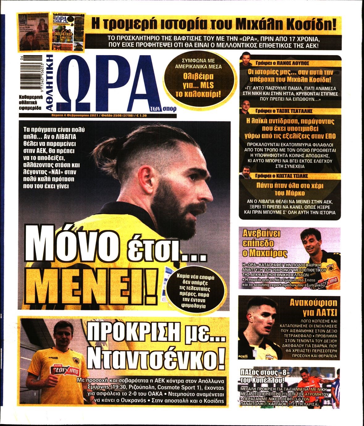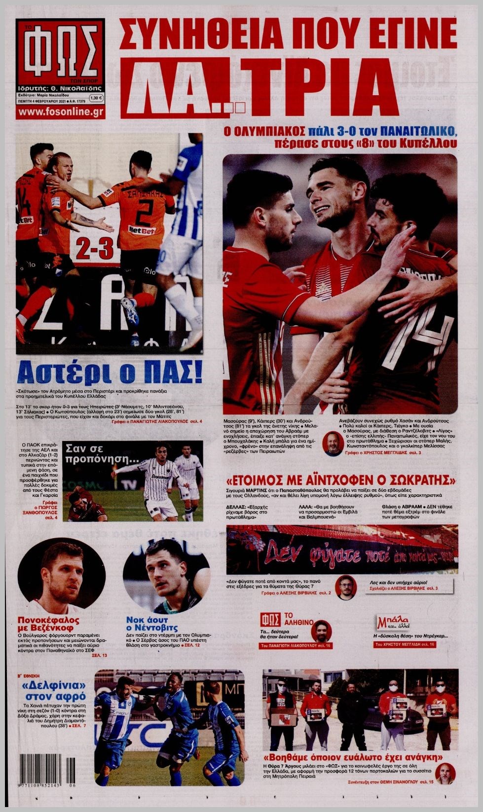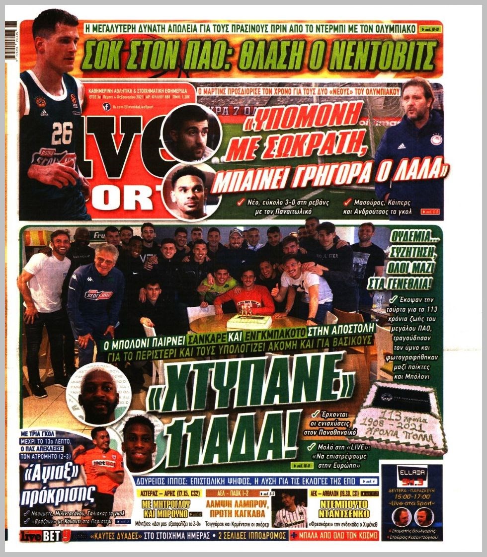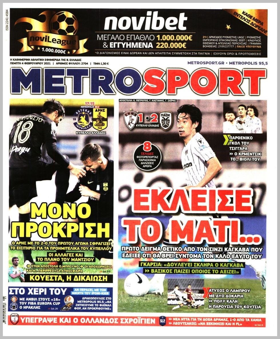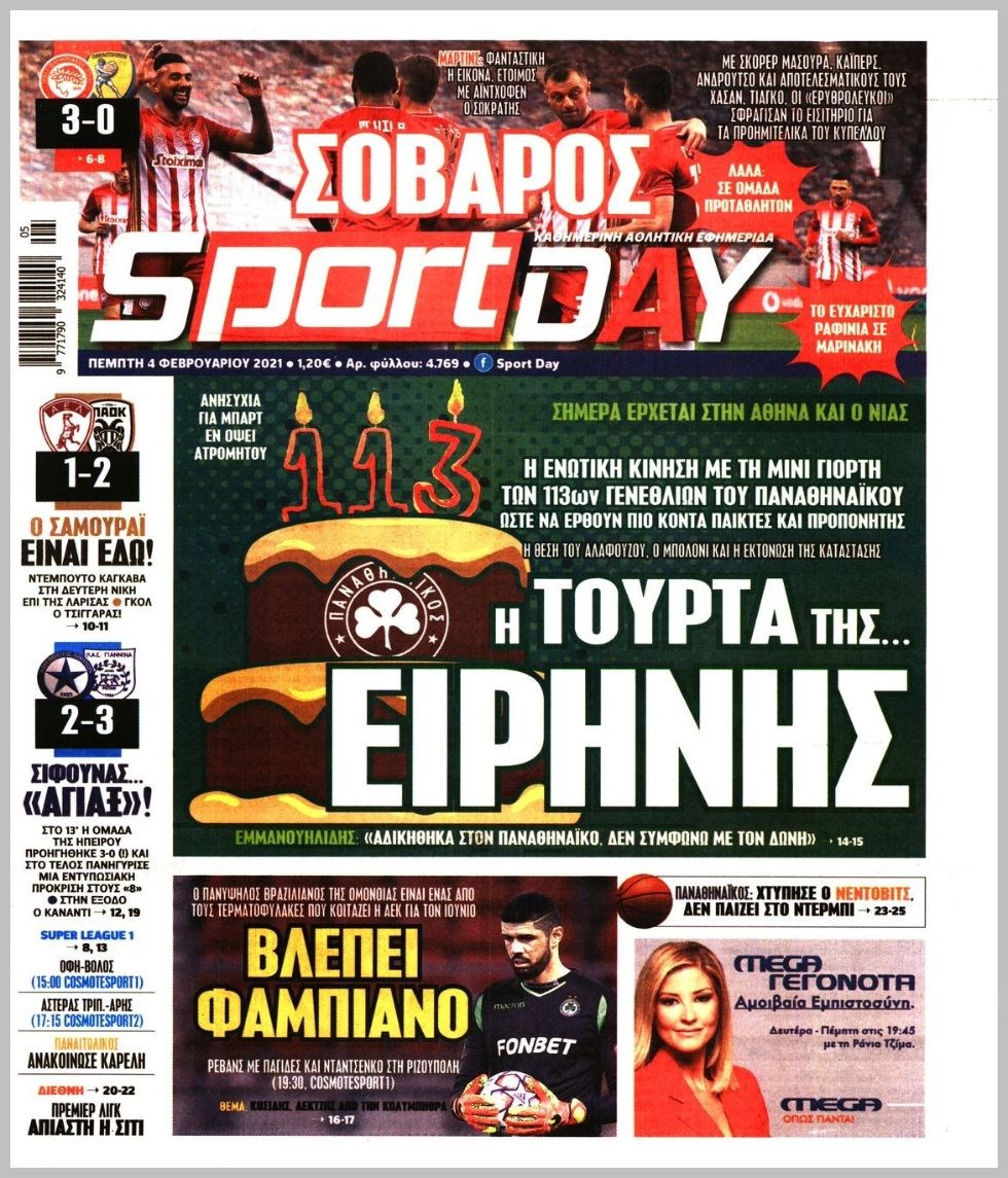 Οι αθλητικές εφημερίδες 4/2/2021 Διονύσης Νίκκας 06:50, Πέμπτη 04 Φεβρουαρίου 2021 Media Διαβάστε τα πρωτοσέλιδα των αθλητικών εφημερίδων… ΑΘΛΗΤΙΚΕΣ ΕΦΗΜΕΡΙΔΕΣ Μοιράσου το: σχολίασε κι εσύ (0 σχόλια) Ακολουθήστε το enikos.gr στο Google News και μάθετε πρώτοι όλες τις ειδήσεις Δείτε όλες τις τελευταίες ειδήσεις από την Ελλάδα και τον Κόσμο στο enikos.gr Ειδήσεις Ροή Ειδήσεων 3 ώρες πριν Χριστούγεννα στα μπλόκα: Επιμένουν στις κινητοποιήσεις τους οι αγρότες – Ανοίγουν τα διόδια το Σαββατοκύριακο 3 ώρες πριν Ουκρανία: Η άνευ προηγουμένου επίθεση σε ρωσικό τάνκερ στη Μεσόγειο και το μήνυμα προς στον Πούτιν – Το «μακρύ χέρι» του Κιέβου 2 ώρες πριν Πούτιν: Τα μηνύματα σε Ευρώπη και ΝΑΤΟ από το μαραθώνιο «σόου» του – Η απαίτηση για «σεβασμό» και η ειρήνη «με τους όρους» της Μόσχας 3 ώρες πριν Τραμπ: Δεν αποκλείει την πιθανότητα ενός πολέμου στη Βενεζουέλα – «Ο Μαδούρο ξέρει καλύτερα από τον καθένα τι ακριβώς θέλω» 4 ώρες πριν Συνεχίζει να προκαλεί ο Μίτσκοσκι: «Για μένα το όνομα Μακεδονία είναι ιερό» 2 ώρες πριν Ανακαλύφθηκαν αρχαία χρυσά νομίσματα 2.200 ετών που απεικονίζουν τον θεό Απόλλωνα – Η άγνωστη σύνδεση με τον Φίλιππο Β΄ της Μακεδονίας 3 ώρες πριν Ύπνος: Μια κρυφή κατάσταση του εγκεφάλου πριν από τον ύπνο μπορεί να είναι το “κλειδί” για υψηλή ευφυΐα και δημιουργικότητα 4 ώρες πριν Αριθμολογία: Οι άνθρωποι που έχουν γεννηθεί αυτές τις 4 ημερομηνίες, συχνά παρεξηγούνται – «Η καλοσύνη τους κρύβει τεράστια δύναμη» 5 ώρες πριν Ξεχάστε το καθάρισμα το Σαββατοκύριακο: Ο «κανόνας των 20 λεπτών» που θα σας λύσει τα χέρια 4 λεπτά πριν Συρία: Μαζικά πλήγματα των ΗΠΑ σε θέσεις του Ισλαμικού Κράτους – Χέγκσεθ: «Δεν είναι αρχή πολέμου, είναι μια δήλωση εκδίκησης» για το θάνατο των στρατιωτών μας 16 λεπτά πριν Ουκρανία: Ολοκληρώθηκαν οι συνομιλίες με τους Αμερικανούς κι Ευρωπαίους διαπραγματευτές 31 λεπτά πριν Μπαρτσελόνα – Μπασκόνια 134-124: Οι «μπλαουγκράνα» πήραν το ματς της χρονιάς ύστερα από τρεις παρατάσεις 46 λεπτά πριν Φαίη Σκορδά: «Παλιότερα τα κομπλιμέντα τα προσπερνούσα, τώρα τα έχω ανάγκη» 1 ώρα πριν Βασίλης Σπανούλης: Δεν εμφανίστηκε ούτε ένας δημοσιογράφος στην συνέντευξη Τύπου – «Καλησπέρα στον… κανέναν», δείτε βίντεο ENIKOS NETWORK Το ΕΚΑΒ τιμήθηκε από την Ακαδημία Αθηνών για τα 40 χρόνια προσφοράς του Έχετε πραγματικά μεγάλη καρδιά; 10 χαρακτηριστικά όσων έχουν καλοσύνη Αναστολή μέτρων αναγκαστικής εκτέλεσης για κτηνοτρόφους που πλήττονται από την ευλογιά των αιγοπροβάτων Πλήρης επάρκεια προϊόντων στις λαϊκές της Αττικής, παρά τις αγροτικές κινητοποιήσεις – Τι απαντούν οι πωλητές Χαρτογραφώντας το «σημείο χωρίς επιστροφή»: Για πρώτη φορά αποκαλύπτεται με λεπτομέρεια το ακανθώδες όριο της ατμόσφαιρας τ... Η Google καταργεί τη λειτουργία «dark web report» – Πώς θα μπορούν οι χρήστες να διαγράφουν τα δεδομένα τους περισσότερα 22:42 , Παρασκευή 19 Δεκεμβρίου 2025 Γιώργος Γιαννόπουλος για “Το σόι σου”: “Είναι ευτυχία και ευλογία αυτή η σειρά” «Είναι ευτυχία και ευλογία η συγκυρία αυτής της σειράς», θα πει ο Γιώργος Γιαννόπουλος -ο αγαπ... 20:37 , Παρασκευή 19 Δεκεμβρίου 2025 Don’t Forget The Lyrics: Η Έλλη Κοκκίνου υποδέχεται 4 παίκτες που θα κάνουν τα πάντα για να μη χάσουν ούτε… μισή λέξη από τους στίχους Το «Don’t Forget The Lyrics» επιστρέφει απόψε, Παρασκευή 19 Δεκεμβρίου, στις 21:00 με νέο επει... 19:31 , Παρασκευή 19 Δεκεμβρίου 2025 GNTM: Απόψε ο μεγάλος τελικός για τους 4 φιναλίστ Έπειτα από μήνες γεμάτους μόδα, δ