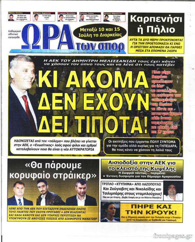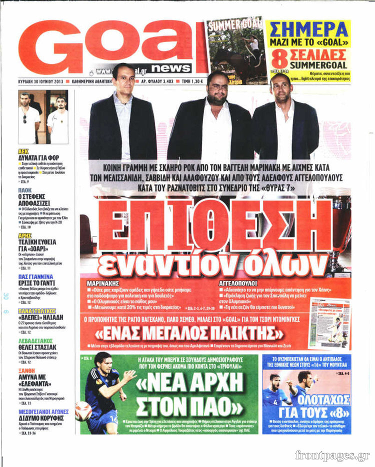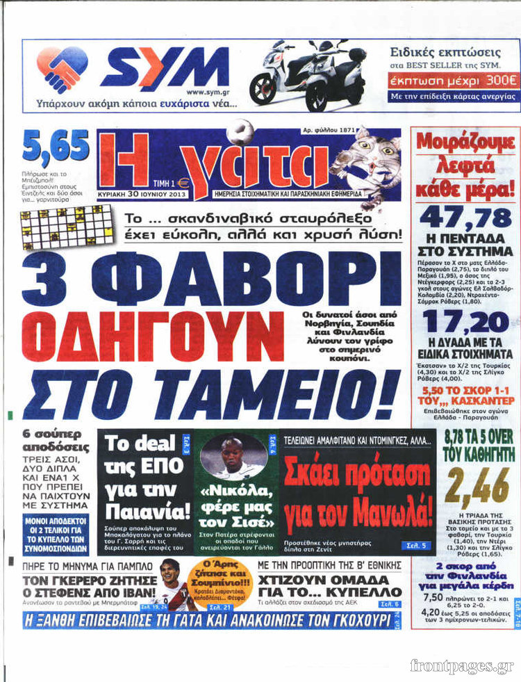 Οι αθλητικές εφημερίδες Enikos Newsroom 09:12, Κυριακή 30 Ιουνίου 2013 Media Οι αθλητικές εφημερίδες Διαβάστε τα πρωτοσέλιδα των αθλητικών εφημερίδων ΑΘΛΗΤΙΚΕΣ ΕΦΗΜΕΡΙΔΕΣ ΠΡΩΤΟΣΕΛΙΔΑ Μοιράσου το: σχολίασε κι εσύ (0 σχόλια) Ακολουθήστε το enikos.gr στο Google News και μάθετε πρώτοι όλες τις ειδήσεις Δείτε όλες τις τελευταίες ειδήσεις από την Ελλάδα και τον Κόσμο στο enikos.gr Ειδήσεις Ροή Ειδήσεων 56 λεπτά πριν Αυξάνουν την πίεση προς την κυβέρνηση οι αγρότες: Κλείνουν παρακαμπτήριους και ανοίγουν διόδια – Τι θα γίνει τις γιορτές 47 λεπτά πριν Φοινικούντα: Το Σάββατο απολογείται ο 30χρονος γιος γνωστού επιχειρηματία της Πλάκας που παραδόθηκε – Όσα είπε στους αστυνομικούς και ο ρόλος του στο έγκλημα 29 λεπτά πριν Μπορεί ο Μαδούρο να αντέξει τον αποκλεισμό του Τραμπ; Τι θα χρειαστεί η Ουάσινγκτον για να τον ανατρέψει 2 ώρες πριν Δημοσκόπηση Metron Analysis: Στις 10 μονάδες η διαφορά ΝΔ-ΠΑΣΟΚ, στην 3η θέση η Πλεύση Ελευθερίας – 8 στους 10 στηρίζουν τον αγώνα των αγροτών 2 ώρες πριν Πρίγκιπας Ουίλιαμ – Κέιτ: Η νέα οικογενειακή φωτογραφία για τις Χριστουγεννιάτικες κάρτες του 2025 2 ώρες πριν Ύπνος: Η απλή βραδινή ρουτίνα για να προστατεύσετε τα μαλλιά σας από το κρύο κατά τη διάρκεια του χειμώνα 3 ώρες πριν Manifesting: Πώς να συναντήσετε τον σύντροφο της ζωής σας, ανάλογα με τον μήνα γέννησής σας 2 ημέρες πριν 20 χρόνια τα Χριστούγεννα ξεκινούν στα Public με μεγάλη ποικιλία σε δώρα! 32 λεπτά πριν Αρχαιολόγοι ανακάλυψαν ρωμαϊκά τεχνουργήματα από μια πόλη που δεν υπήρξε ποτέ – Τα τρία εντυπωσιακά κτίρια και ο αμφορέας με τις… σαρδέλες 13 λεπτά πριν Παναθηναϊκός – Χάποελ Τελ Αβίβ 93-82: Με… φόρα από την Κωνσταντινούπολη 29 λεπτά πριν Μπορεί ο Μαδούρο να αντέξει τον αποκλεισμό του Τραμπ; Τι θα χρειαστεί η Ουάσινγκτον για να τον ανατρέψει 32 λεπτά πριν Αρχαιολόγοι ανακάλυψαν ρωμαϊκά τεχνουργήματα από μια πόλη που δεν υπήρξε ποτέ – Τα τρία εντυπωσιακά κτίρια και ο αμφορέας με τις… σαρδέλες 34 λεπτά πριν Στο ΟΑΚΑ για το «Παναθηναϊκός – Χάποελ» η Κίμπερλι Γκίλφοϊλ – ΦΩΤΟ 41 λεπτά πριν Ούρσουλα φον ντερ Λάιεν: Μετατίθεται για τον Ιανουάριο η υπογραφή της εμπορικής συμφωνίας «ΕΕ-MERCOSUR» ENIKOS NETWORK Σε περίοδο αυξημένης δραστηριότητας η γρίπη στην Ελλάδα-Μέτρα προστασίας από τον ΕΟΔΥ Σκέφτεστε συνέχεια συζητήσεις που έχετε κάνει; Τι σημαίνει αυτό, σύμφωνα με ειδικό Στεγαστικό: Τι λέει η ΠΟΜΙΔΑ για τα νέα μέτρα που ανακοίνωσε ο Κυριάκος Μητσοτάκης Λαγκάρντ: Αισιόδοξη για την ανάπτυξη της Ευρωζώνης, αβέβαιη για τον πληθωρισμό Χαρτογραφώντας το «σημείο χωρίς επιστροφή»: Για πρώτη φορά αποκαλύπτεται με λεπτομέρεια το ακανθώδες όριο της ατμόσφαιρας τ... Η Google καταργεί τη λειτουργία «dark web report» – Πώς θα μπορούν οι χρήστες να διαγράφουν τα δεδομένα τους περισσότερα 17:45 , Πέμπτη 18 Δεκεμβρίου 2025 ROUK ZOUK: Εορταστικό επεισόδιο με καλεσμένους τους πρωταγωνιστές του «Γιατί ρε πατέρα» Το Σάββατο 20 Δεκεμβρίου στις 21:00, η Ζέτα Μακρυπούλια υποδέχεται εκλεκτούς ηθοποιούς που όλο... 17:20 , Πέμπτη 18 Δεκεμβρίου 2025 Άγιος έρωτας: Η Χριστίνα εξομολογείται στον πατέρα Νικόλαο, απόψε στις 21:00 στον Alpha Η Νότα αποφασίζει να εκδικηθεί τον Πέτρο και τον Στέφανο, για χάρη του Λούη, όμως τα πράγματα ... 16:50 , Πέμπτη 18 Δεκεμβρίου 2025 Να μ’ αγαπάς: Ζωή και Φωτεινή συμφιλιώνονται ως μάνα με κόρη, απόψε στις 20:00 Η ταυτότητα του Άγγελου αποκαλύπτεται στο νέο επεισόδιο της σειράς “Να μ’ αγαπάς... 15:52 , Πέμπτη 18 Δεκεμβρίου 2025 Το Σπίτι Δίπλα Στο Ποτάμι: Το καθηλω