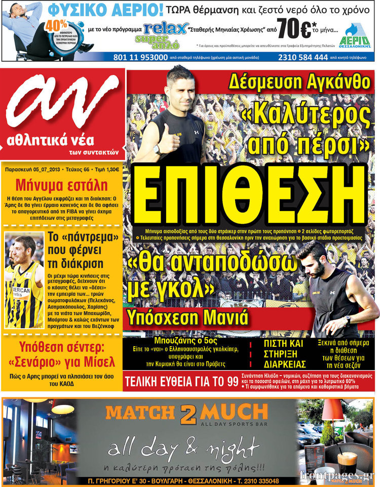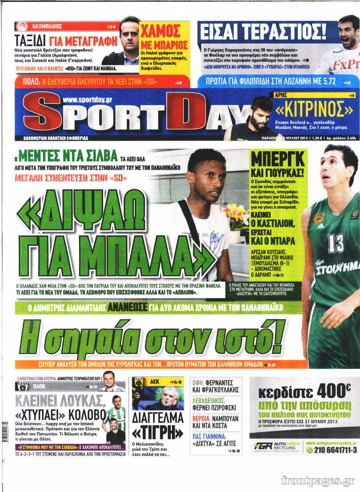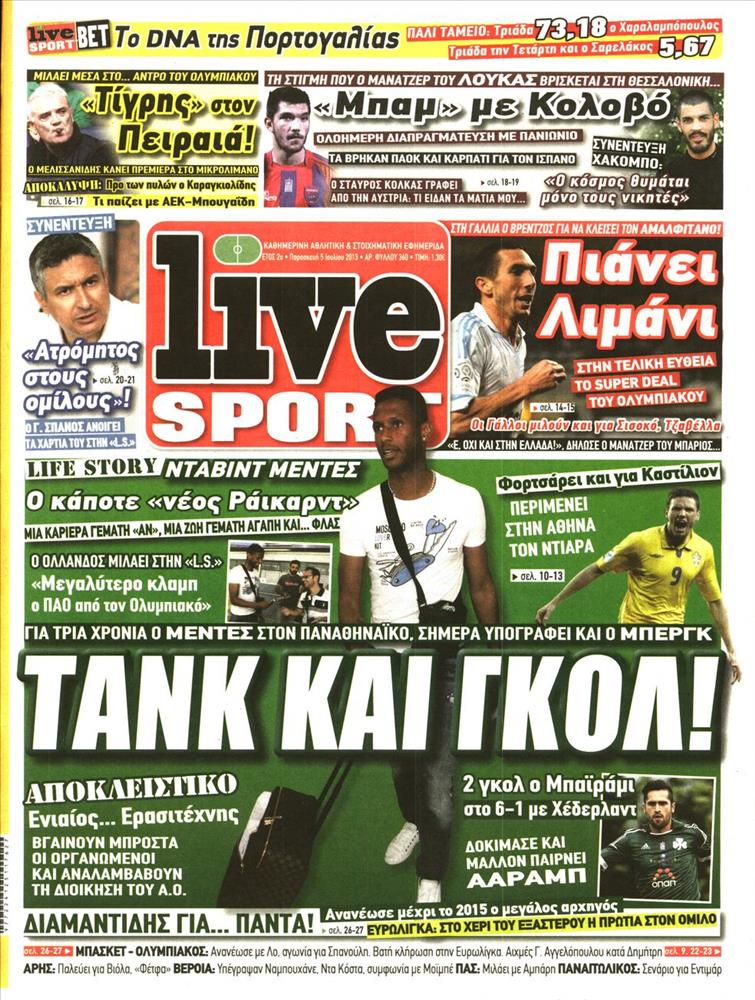 Οι αθλητικές εφημερίδες Enikos Newsroom 08:27, Παρασκευή 05 Ιουλίου 2013 Media Οι αθλητικές εφημερίδες Διαβάστε τα πρωτοσέλιδα των αθλητικών εφημερίδων: ΑΘΛΗΤΙΚΕΣ ΕΦΗΜΕΡΙΔΕΣ ΕΦΗΜΕΡΙΔΕΣ Μοιράσου το: σχολίασε κι εσύ (0 σχόλια) Ακολουθήστε το enikos.gr στο Google News και μάθετε πρώτοι όλες τις ειδήσεις Δείτε όλες τις τελευταίες ειδήσεις από την Ελλάδα και τον Κόσμο στο enikos.gr Ειδήσεις Ροή Ειδήσεων 3 ώρες πριν Ακίλα Σάλεχ: «Άκυρο» το τουρκολιβυκό μνημόνιο λέει ο πρόεδρος της λιβυκής Βουλής – Ανοίγει ο διάλογος με Ελλάδα, Αίγυπτο και Τουρκία 7 ώρες πριν Αγρότες: Την Τρίτη η απόφαση για διάλογο ή κλιμάκωση των κινητοποιήσεών τους – Πώς χαρακτηρίζουν τις ανακοινώσεις Τσιάρα και οι επόμενες κινήσεις 7 ώρες πριν Τραμπ για Ουκρανία: «Είμαστε πιο κοντά σε συμφωνία από ποτέ» – «Πολυεθνική δύναμη» προτείνουν οι Ευρωπαίοι 7 ώρες πριν Κυψέλη: Η 16χρονη που μαχαίρωσε την 14χρονη είχε συλληφθεί 3 φορές στο παρελθόν – Έβριζε καθηγητές, έβαζε φωτιές σε κάδους και εκβίαζε συμμαθητές της 6 ώρες πριν Τρομοκρατική επίθεση στο Σίδνεϊ: Θλίψη για τα 15 θύματα – Οργή στην εβραϊκή κοινότητα που προειδοποιούσε επί δύο χρόνια 7 ώρες πριν Επιστήμονες ίσως έλυσαν το μυστήριο γύρω από τα Χόμπιτ – Νέα έρευνα αποκαλύπτει πώς εξαφανίστηκαν 8 ώρες πριν Ύπνος: Η αρχαία μορφή άσκησης που αποδεικνύεται αποτελεσματική στην αντιμετώπιση της αϋπνίας, σύμφωνα με μελέτη 9 ώρες πριν Αριθμολογία: Ο τυχερός σας αριθμός, ανάλογα με τον μήνα γέννησής σας 10 ώρες πριν Πώς να μην μαραίνονται γρήγορα τα κομμένα λουλούδια: Το λάθος στην τοποθέτηση του βάζου που πρέπει να αποφεύγετε 3 λεπτά πριν Οι αθλητικές εφημερίδες 16/12/2025 8 λεπτά πριν Οι πολιτικές εφημερίδες 16/12/2025 16 λεπτά πριν Τα ζώδια σήμερα, Τρίτη 16 Δεκεμβρίου: Ιχθύες, δεν χρειάζεται να έχετε όλες τις απαντήσεις 24 λεπτά πριν Εφημερεύοντα φαρμακεία σε Αθήνα και Θεσσαλονίκη (16/12) 31 λεπτά πριν Οκτώ νεκροί σε πλήγματα των ΗΠΑ κατά τριών σκαφών που φέρεται να μετέφεραν ναρκωτικά στον Ανατολικό Ειρηνικό ENIKOS NETWORK Πότε το χρόνιο ροχαλητό να αποτελέσει ένδειξη κινδύνου για την καρδιά; Τι λένε οι ειδικοί Μάριος Θεμιστοκλέους: Το ΕΣΥ ενισχύεται, εκσυγχρονίζεται, αλλάζει ΕΒΕΠ για αγροτικές κινητοποιήσεις: Κάθε επιπλέον εβδομάδα προσθέτει περίπου 200 εκατ. ευρώ ζημιά Τι προβλέπει το νομοσχέδιο του υπουργείου Εθνικής Άμυνας – Oι αλλαγές στους μισθούς Σύγχρονος Νοστράδαμος: Προειδοποιεί για «μεγάλο γεγονός» τους επόμενους μήνες που θα συγκλονίσει τη Βρετανία και τον κόσμο Τεστ παρατηρητικότητας: Μπορείτε να βρείτε τις 3 διαφορές στις εικόνες με έναν πιγκουίνο σε 14 δευτερόλεπτα περισσότερα 05:43 , Τρίτη 16 Δεκεμβρίου 2025 Οι αθλητικές εφημερίδες 16/12/2025 Διαβάστε τα πρωτοσέλιδα από τις αθλητικές εφημερίδες, σήμερα 16/12/2025. 05:38 , Τρίτη 16 Δεκεμβρίου 2025 Οι πολιτικές εφημερίδες 16/12/2025 Διαβάστε τα πρωτοσέλιδα από τις πολιτικές εφημερίδες, σήμερα 16/12/2025. 21:35 , Δευτέρα 15 Δεκεμβρίου 2025 Το Σπίτι Δίπλα Στο Ποτάμι: Η Ιουλία και ο Φωκάς μετακομίζουν στη Ρόδο – Δύο νέοι χαρακτήρες μπαίνουν στη σειρά Δύο νέοι, κομβικοί χαρακτήρες κάνουν την εμφάνισή τους αυτή την εβδομάδα στην αγαπημένη σειρά ... 19:46 , Δευτέρα 15 Δεκεμβρίου 2025 Άγιος έρωτας: Η Χριστίνα λέει την αλήθεια στον Αντρέα Ο Βασίλης δέχεται επίθεση από τους συμμαθητές του, η Αναστασία είναι συντετριμμένη με την απώλ... ΤΕΛΕΥΤΑΙΕΣ ΕΙΔΗΣΕΙΣ 3 λεπτά πριν Οι αθλητικές εφημερίδες 16/12/2025 8 λεπτά πριν Οι πολιτικές εφημερίδες 16/12/2025 16 λεπτά πριν Τα ζώδια σ