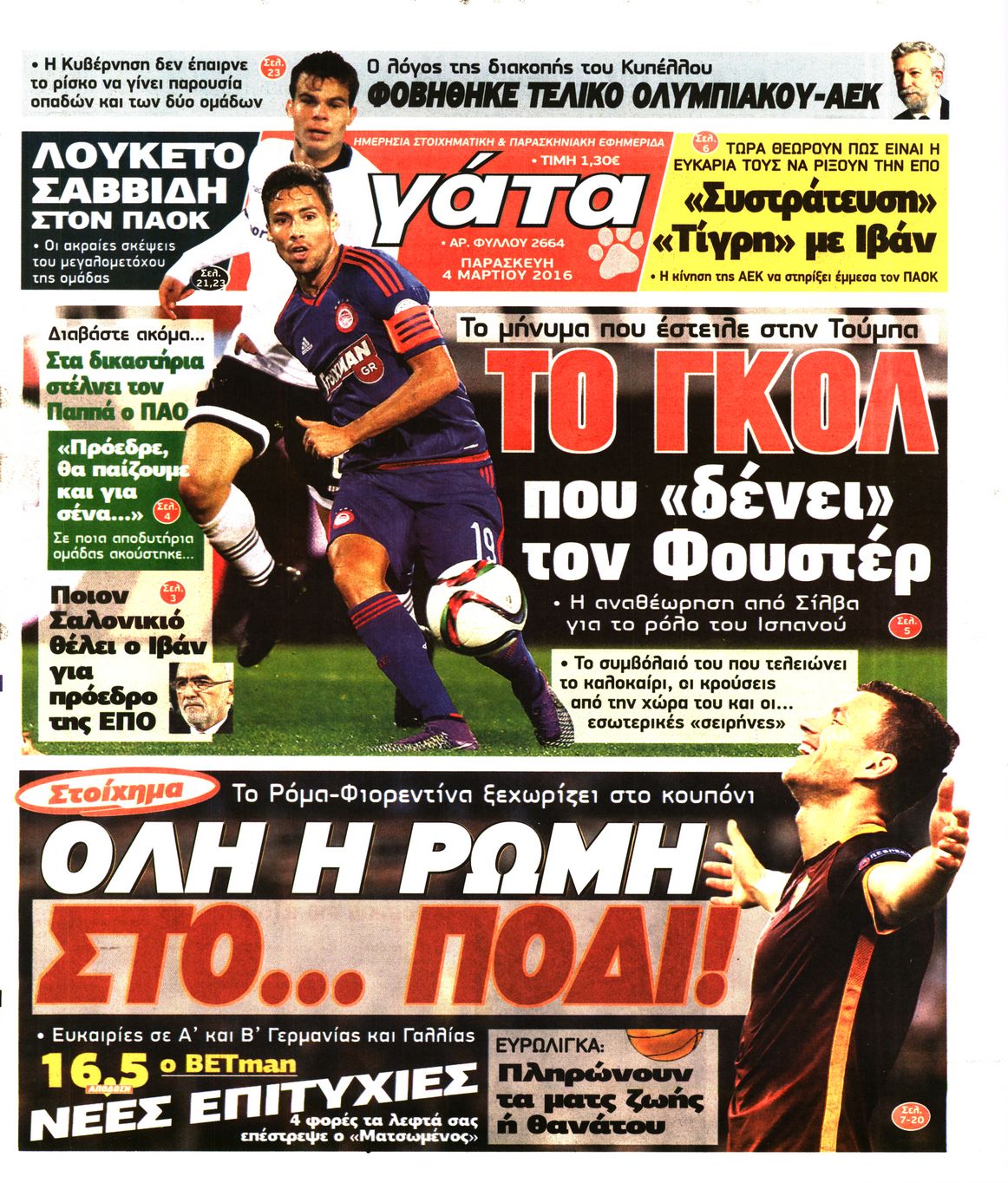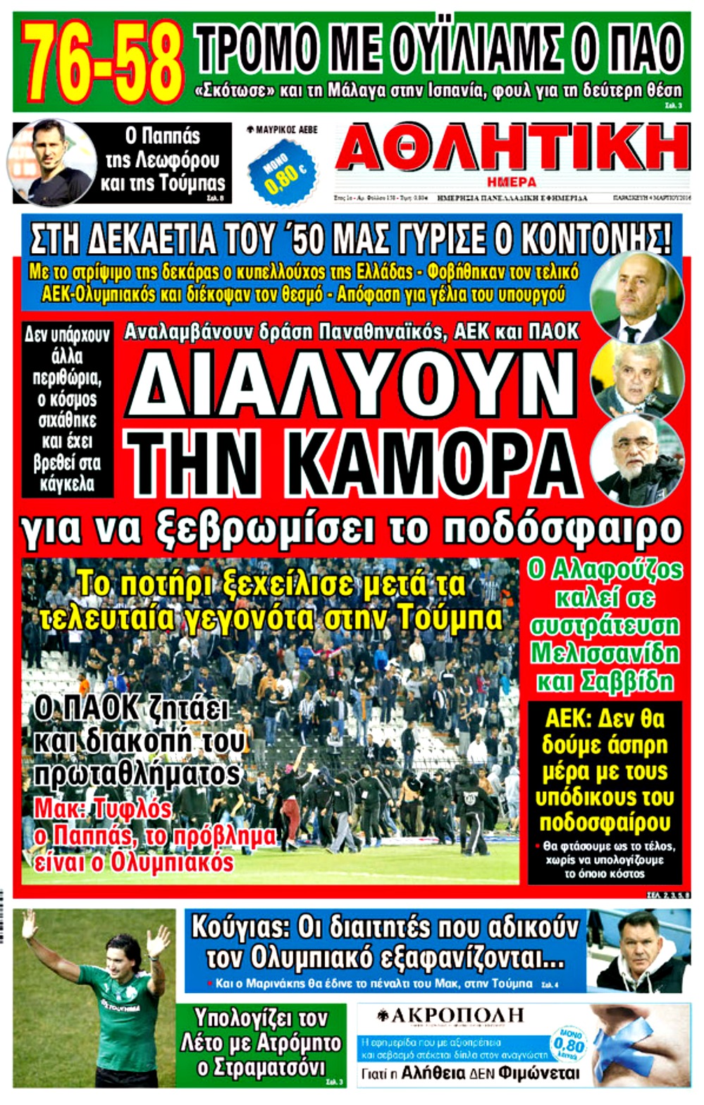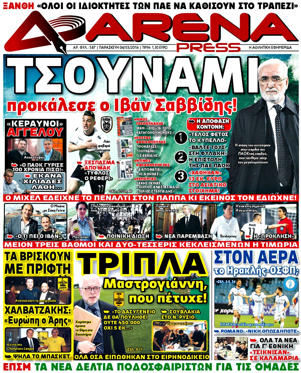 Oι αθλητικές εφημερίδες 4/3/2016 Enikos Newsroom 05:51, Παρασκευή 04 Μαρτίου 2016 Media Διαβάστε τα σημερινά πρωτοσέλιδα των αθλητικών εφημερίδων: ΑΘΛΗΤΙΚΕΣ ΕΦΗΜΕΡΙΔΕΣ ΠΡΩΤΟΣΕΛΙΔΑ Μοιράσου το: σχολίασε κι εσύ (0 σχόλια) Ακολουθήστε το enikos.gr στο Google News και μάθετε πρώτοι όλες τις ειδήσεις Δείτε όλες τις τελευταίες ειδήσεις από την Ελλάδα και τον Κόσμο στο enikos.gr Ειδήσεις Ροή Ειδήσεων 2 ώρες πριν Αυξάνουν την πίεση προς την κυβέρνηση οι αγρότες: Κλείνουν παρακαμπτήριους και ανοίγουν διόδια – Τι θα γίνει τις γιορτές 1 ώρα πριν ΟΠΕΚΕΠΕ: Προφυλακιστέος ο φερόμενος αρχηγός και ο λογιστής της εγκληματικής οργάνωσης 2 ώρες πριν Φοινικούντα: Το Σάββατο απολογείται ο 30χρονος γιος γνωστού επιχειρηματία της Πλάκας που παραδόθηκε – Όσα είπε στους αστυνομικούς και ο ρόλος του στο έγκλημα 2 ώρες πριν Μπορεί ο Μαδούρο να αντέξει τον αποκλεισμό του Τραμπ; Τι θα χρειαστεί η Ουάσινγκτον για να τον ανατρέψει 3 ώρες πριν Πρίγκιπας Ουίλιαμ – Κέιτ: Η νέα οικογενειακή φωτογραφία για τις Χριστουγεννιάτικες κάρτες του 2025 3 ώρες πριν Ύπνος: Η απλή βραδινή ρουτίνα για να προστατεύσετε τα μαλλιά σας από το κρύο κατά τη διάρκεια του χειμώνα 4 ώρες πριν Manifesting: Πώς να συναντήσετε τον σύντροφο της ζωής σας, ανάλογα με τον μήνα γέννησής σας 2 ημέρες πριν 20 χρόνια τα Χριστούγεννα ξεκινούν στα Public με μεγάλη ποικιλία σε δώρα! 2 ώρες πριν Αρχαιολόγοι ανακάλυψαν ρωμαϊκά τεχνουργήματα από μια πόλη που δεν υπήρξε ποτέ – Τα τρία εντυπωσιακά κτίρια και ο αμφορέας με τις… σαρδέλες 1 δευτερόλεπτο πριν Νέος πρέσβης της Μεγάλης Βρετανίας στις ΗΠΑ ο Κρίστιαν Τέρνερ 4 λεπτά πριν Conference League: Με Νόα, Ντρίτα, Άλκμααρ ή Τσέλιε στους «16» η ΑΕΚ 12 λεπτά πριν Conference League: Απευθείας στους «16» η ΑΕΚ Λάρνακας και η Ρακόβ των Σβάρνα και Κωνσταντόπουλου – Τα αποτελέσματα και η βαθμολογία, 3η η ΑΕΚ 22 λεπτά πριν Σε ομάδες που συνδέονται με το ρωσικό κράτος αποδίδει η Δανία δύο κυβερνοεπιθέσεις που δέχθηκε 37 λεπτά πριν Βαθμολογία UEFA: Η Πολωνία προσπέρασε την Ελλάδα ENIKOS NETWORK Σε περίοδο αυξημένης δραστηριότητας η γρίπη στην Ελλάδα-Μέτρα προστασίας από τον ΕΟΔΥ Σκέφτεστε συνέχεια συζητήσεις που έχετε κάνει; Τι σημαίνει αυτό, σύμφωνα με ειδικό Στεγαστικό: Τι λέει η ΠΟΜΙΔΑ για τα νέα μέτρα που ανακοίνωσε ο Κυριάκος Μητσοτάκης Λαγκάρντ: Αισιόδοξη για την ανάπτυξη της Ευρωζώνης, αβέβαιη για τον πληθωρισμό Χαρτογραφώντας το «σημείο χωρίς επιστροφή»: Για πρώτη φορά αποκαλύπτεται με λεπτομέρεια το ακανθώδες όριο της ατμόσφαιρας τ... Η Google καταργεί τη λειτουργία «dark web report» – Πώς θα μπορούν οι χρήστες να διαγράφουν τα δεδομένα τους περισσότερα 17:45 , Πέμπτη 18 Δεκεμβρίου 2025 ROUK ZOUK: Εορταστικό επεισόδιο με καλεσμένους τους πρωταγωνιστές του «Γιατί ρε πατέρα» Το Σάββατο 20 Δεκεμβρίου στις 21:00, η Ζέτα Μακρυπούλια υποδέχεται εκλεκτούς ηθοποιούς που όλο... 17:20 , Πέμπτη 18 Δεκεμβρίου 2025 Άγιος έρωτας: Η Χριστίνα εξομολογείται στον πατέρα Νικόλαο, απόψε στις 21:00 στον Alpha Η Νότα αποφασίζει να εκδικηθεί τον Πέτρο και τον Στέφανο, για χάρη του Λούη, όμως τα πράγματα ... 16:50 , Πέμπτη 18 Δεκεμβρίου 2025 Να μ’ αγαπάς: Ζωή και Φωτεινή συμφιλιώνονται ως μάνα με κόρη, απόψε στις 20:00 Η ταυτότητα του Άγγελου αποκαλύπτεται στο νέο επεισόδιο της σειράς “Να μ’ αγαπάς... 15:52 , Πέμπτη 18 Δεκεμβρίου 2025 Το Σπίτι Δίπλα Στο Ποτάμι: Το καθηλωτικό τελευταίο επεισόδιο για το 2025 απόψε στις 22:30 Καθηλώνει το σημερινό επεισόδιο της σειράς “Το Σπίτι Δίπλα Στο Ποτάμι” που έρχεται... ΤΕΛΕΥΤΑ