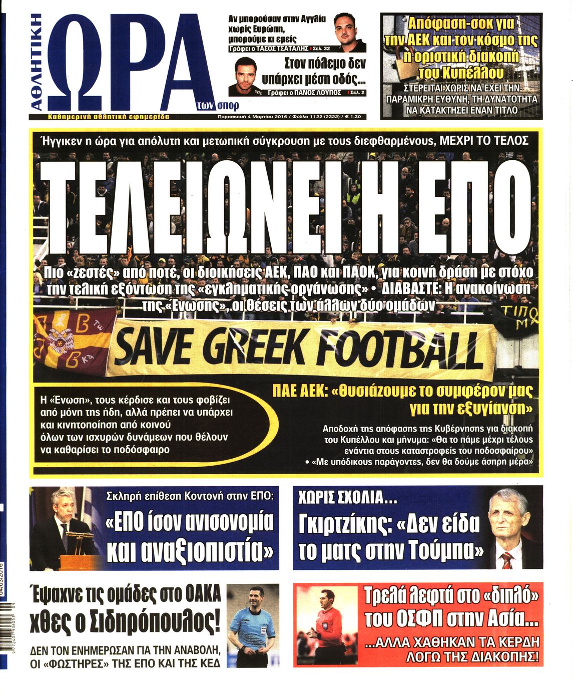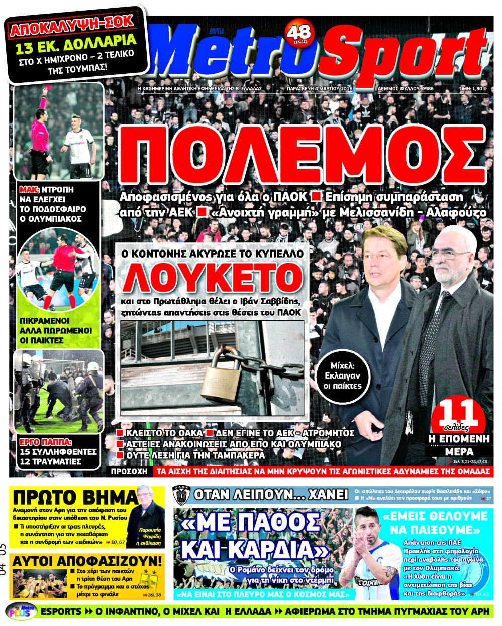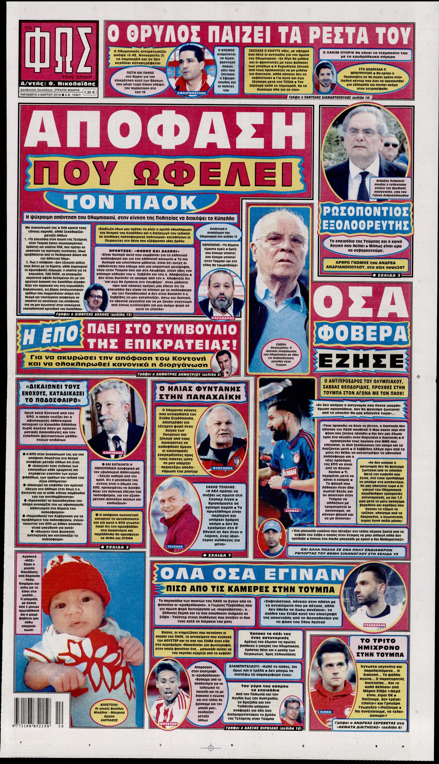 Oι αθλητικές εφημερίδες 4/3/2016 Enikos Newsroom 05:51, Παρασκευή 04 Μαρτίου 2016 Media Διαβάστε τα σημερινά πρωτοσέλιδα των αθλητικών εφημερίδων: ΑΘΛΗΤΙΚΕΣ ΕΦΗΜΕΡΙΔΕΣ ΠΡΩΤΟΣΕΛΙΔΑ Μοιράσου το: σχολίασε κι εσύ (0 σχόλια) Ακολουθήστε το enikos.gr στο Google News και μάθετε πρώτοι όλες τις ειδήσεις Δείτε όλες τις τελευταίες ειδήσεις από την Ελλάδα και τον Κόσμο στο enikos.gr Ειδήσεις Ροή Ειδήσεων 2 ώρες πριν Αυξάνουν την πίεση προς την κυβέρνηση οι αγρότες: Κλείνουν παρακαμπτήριους και ανοίγουν διόδια – Τι θα γίνει τις γιορτές 1 ώρα πριν ΟΠΕΚΕΠΕ: Προφυλακιστέος ο φερόμενος αρχηγός και ο λογιστής της εγκληματικής οργάνωσης 2 ώρες πριν Φοινικούντα: Το Σάββατο απολογείται ο 30χρονος γιος γνωστού επιχειρηματία της Πλάκας που παραδόθηκε – Όσα είπε στους αστυνομικούς και ο ρόλος του στο έγκλημα 2 ώρες πριν Μπορεί ο Μαδούρο να αντέξει τον αποκλεισμό του Τραμπ; Τι θα χρειαστεί η Ουάσινγκτον για να τον ανατρέψει 3 ώρες πριν Πρίγκιπας Ουίλιαμ – Κέιτ: Η νέα οικογενειακή φωτογραφία για τις Χριστουγεννιάτικες κάρτες του 2025 3 ώρες πριν Ύπνος: Η απλή βραδινή ρουτίνα για να προστατεύσετε τα μαλλιά σας από το κρύο κατά τη διάρκεια του χειμώνα 4 ώρες πριν Manifesting: Πώς να συναντήσετε τον σύντροφο της ζωής σας, ανάλογα με τον μήνα γέννησής σας 2 ημέρες πριν 20 χρόνια τα Χριστούγεννα ξεκινούν στα Public με μεγάλη ποικιλία σε δώρα! 2 ώρες πριν Αρχαιολόγοι ανακάλυψαν ρωμαϊκά τεχνουργήματα από μια πόλη που δεν υπήρξε ποτέ – Τα τρία εντυπωσιακά κτίρια και ο αμφορέας με τις… σαρδέλες 1 δευτερόλεπτο πριν Νέος πρέσβης της Μεγάλης Βρετανίας στις ΗΠΑ ο Κρίστιαν Τέρνερ 4 λεπτά πριν Conference League: Με Νόα, Ντρίτα, Άλκμααρ ή Τσέλιε στους «16» η ΑΕΚ 12 λεπτά πριν Conference League: Απευθείας στους «16» η ΑΕΚ Λάρνακας και η Ρακόβ των Σβάρνα και Κωνσταντόπουλου – Τα αποτελέσματα και η βαθμολογία, 3η η ΑΕΚ 22 λεπτά πριν Σε ομάδες που συνδέονται με το ρωσικό κράτος αποδίδει η Δανία δύο κυβερνοεπιθέσεις που δέχθηκε 37 λεπτά πριν Βαθμολογία UEFA: Η Πολωνία προσπέρασε την Ελλάδα ENIKOS NETWORK Σε περίοδο αυξημένης δραστηριότητας η γρίπη στην Ελλάδα-Μέτρα προστασίας από τον ΕΟΔΥ Σκέφτεστε συνέχεια συζητήσεις που έχετε κάνει; Τι σημαίνει αυτό, σύμφωνα με ειδικό Στεγαστικό: Τι λέει η ΠΟΜΙΔΑ για τα νέα μέτρα που ανακοίνωσε ο Κυριάκος Μητσοτάκης Λαγκάρντ: Αισιόδοξη για την ανάπτυξη της Ευρωζώνης, αβέβαιη για τον πληθωρισμό Χαρτογραφώντας το «σημείο χωρίς επιστροφή»: Για πρώτη φορά αποκαλύπτεται με λεπτομέρεια το ακανθώδες όριο της ατμόσφαιρας τ... Η Google καταργεί τη λειτουργία «dark web report» – Πώς θα μπορούν οι χρήστες να διαγράφουν τα δεδομένα τους περισσότερα 17:45 , Πέμπτη 18 Δεκεμβρίου 2025 ROUK ZOUK: Εορταστικό επεισόδιο με καλεσμένους τους πρωταγωνιστές του «Γιατί ρε πατέρα» Το Σάββατο 20 Δεκεμβρίου στις 21:00, η Ζέτα Μακρυπούλια υποδέχεται εκλεκτούς ηθοποιούς που όλο... 17:20 , Πέμπτη 18 Δεκεμβρίου 2025 Άγιος έρωτας: Η Χριστίνα εξομολογείται στον πατέρα Νικόλαο, απόψε στις 21:00 στον Alpha Η Νότα αποφασίζει να εκδικηθεί τον Πέτρο και τον Στέφανο, για χάρη του Λούη, όμως τα πράγματα ... 16:50 , Πέμπτη 18 Δεκεμβρίου 2025 Να μ’ αγαπάς: Ζωή και Φωτεινή συμφιλιώνονται ως μάνα με κόρη, απόψε στις 20:00 Η ταυτότητα του Άγγελου αποκαλύπτεται στο νέο επεισόδιο της σειράς “Να μ’ αγαπάς... 15:52 , Πέμπτη 18 Δεκεμβρίου 2025 Το Σπίτι Δίπλα Στο Ποτάμι: Το καθηλωτικό τελευταίο επεισόδιο για το 2025 απόψε στις 22:30 Καθηλώνει το σημερινό επεισόδιο της σειράς “Το Σπίτι Δίπλα Στο Ποτάμι” που έρχεται... ΤΕΛΕΥΤΑ