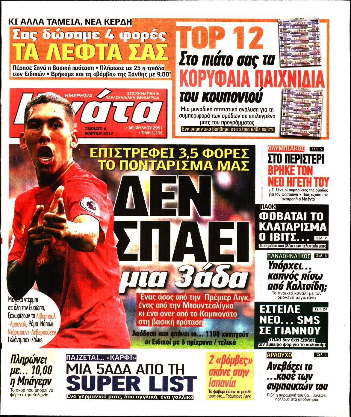 Οι αθλητικές εφημερίδες 4/3/2017 Enikos Newsroom 06:55, Σάββατο 04 Μαρτίου 2017 Media Διαβάστε τα σημερινά πρωτοσέλιδα των αθλητικών εφημερίδων: ΑΘΛΗΤΙΚΕΣ ΕΦΗΜΕΡΙΔΕΣ ΠΡΩΤΟΣΕΛΙΔΑ Μοιράσου το: σχολίασε κι εσύ (0 σχόλια) Ακολουθήστε το enikos.gr στο Google News και μάθετε πρώτοι όλες τις ειδήσεις Δείτε όλες τις τελευταίες ειδήσεις από την Ελλάδα και τον Κόσμο στο enikos.gr Ειδήσεις Ροή Ειδήσεων 6 ώρες πριν Εκτός ευρωομάδας ΣΥΡΙΖΑ ο Νίκος Παππάς μετά την επίθεση στον δημοσιογράφο Νίκο Γιαννόπουλο – Η μήνυση και οι νέες δηλώσεις 6 ώρες πριν «Αγριεύουν» οι αγρότες: «Δεν συντρέχει λόγος συνάντησης με τον πρωθυπουργό» – Ώρα αποφάσεων στη σύσκεψη της Πέμπτης 6 ώρες πριν Κυψέλη: Χωρίς την οικογένειά της δίπλα της απολογήθηκε η 16χρονη – «Της είχε επιτεθεί κάποιος για να την βιάσει, φοβήθηκε και κυκλοφορούσε με μαχαίρι» 6 ώρες πριν Politico: Το πρόβλημα της Ευρώπης δεν είναι το Βέλγιο αλλά ο Ντόναλντ Τραμπ 7 ώρες πριν Αλεξανδρούπολη: Πολυοργανική ανεπάρκεια λόγω υποσιτισμού η αιτία θανάτου του 3χρονου αγοριού 6 ώρες πριν Μυστήριο με τεράστιες κυκλικές πέτρες 200 κιλών – Ανακαλύφθηκαν τυχαία κατά τη διάρκεια οδικών έργων και κανείς δεν ξέρει από πού προέρχονται 7 ώρες πριν Ύπνος: Ειδικός εξηγεί τον πραγματικό λόγο που ξυπνάτε στις 4 τα ξημερώματα – Ο ρόλος των ορμονών και του κιρκάδιου ρυθμού 8 ώρες πριν Αριθμολογία: Οι άνθρωποι που έχουν γεννηθεί αυτές τις 4 ημερομηνίες, είναι τρυφεροί και αγαπούν ανιδιοτελώς 20 ώρες πριν 20 χρόνια τα Χριστούγεννα ξεκινούν στα Public με μεγάλη ποικιλία σε δώρα! 13 λεπτά πριν Ντόναλντ Τραμπ: Παρουσίασε τα επιτεύγματα της διακυβέρνησής του – Σκληρή κριτική στον Τζο Μπάιντεν 28 λεπτά πριν Κτηνοτρόφοι: Με δάκρυα στα μάτια ζουν τον εφιάλτη των άδειων στάβλων – «Καταστράφηκαν οι ζωές μας» 42 λεπτά πριν Νέο αμερικανικό πλήγμα σε σκάφος που φέρεται να μετέφερε ναρκωτικά στον Ειρηνικό – Τέσσερις νεκροί 58 λεπτά πριν Αλ Τσαντίρι Νιουζ: «Λύγισε» ο Δημήτρης Λάλος για τον Δημήτρη Ήμελλο – «Τον μνημονεύω, να ‘ναι καλά εκεί που είναι» 1 ώρα πριν GNTM: Με δάκρυα τον αποχαιρέτησε η Ηλιάνα Παπαγεωργίου πριν από τον ημιτελικό – «Αισθάνομαι πολύ παράξενα» ENIKOS NETWORK Αϋπνία: Το κόλπο που θα σας βοηθήσει να κοιμηθείτε απόψε – Είναι απλό και έχει αποτέλεσμα 2,6 εκατομμύρια πολίτες έχουν ήδη εμβολιαστεί κατά της γρίπης ΕΛΣΤΑΤ: Τι δείχνουν τα νέα στοιχεία για τις ηλεκτρονικές παραγγελίες των επιχειρήσεων ΚΕΠΕ: Οι 3 διακριτές συμβολές των ΜμΕ και της μεταποίησης στην ελληνική οικονομία Χαρτογραφώντας το «σημείο χωρίς επιστροφή»: Για πρώτη φορά αποκαλύπτεται με λεπτομέρεια το ακανθώδες όριο της ατμόσφαιρας τ... Η Google καταργεί τη λειτουργία «dark web report» – Πώς θα μπορούν οι χρήστες να διαγράφουν τα δεδομένα τους περισσότερα 02:30 , Πέμπτη 18 Δεκεμβρίου 2025 Αλ Τσαντίρι Νιουζ: Η κόρη της Πάολα στο κοινό – Η ατάκα Λαζόπουλου που την έκανε να «κοκκινήσει» Γιορτινή διάθεση και ευχάριστες στιγμές γέμισε η αποψινή, τελευταία για το 2025, εκπομπή του «... 22:24 , Τετάρτη 17 Δεκεμβρίου 2025 Το Σπίτι Δίπλα Στο Ποτάμι: Σε κίνδυνο η υγεία του Απόστολου – Τι θα δούμε απόψε “Το Σπίτι Δίπλα στο Ποτάμι” ξετυλίγει το νήμα της ζωής των πέντε αδελφών με καταισ... 21:14 , Τετάρτη 17 Δεκεμβρίου 2025 Παιχνίδια Εκδίκησης: Θα καταφέρει ο Χρήστος να κλονίσει την εμπιστοσύνη της Μάγιας απέναντι στον Άγη; Τα «Παιχνίδια Εκδίκησης» έρχονται απόψε στις 22:30, στον Αντ1, με το τελευταίο επεισόδιο της χ... 20:57 , Τετάρτη 17 Δεκεμβρίου 2025 Άγιος Έρωτ