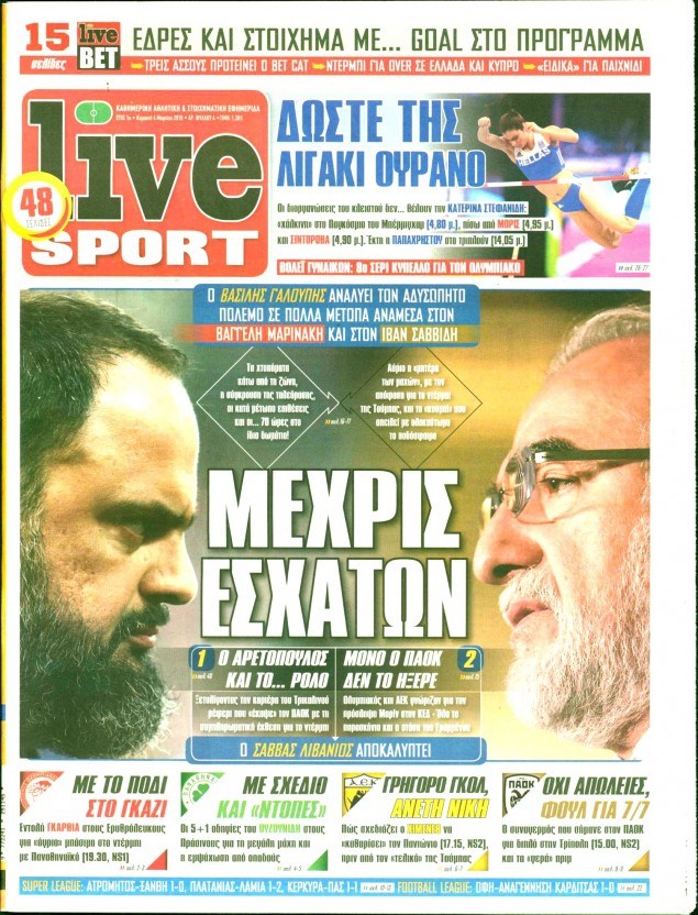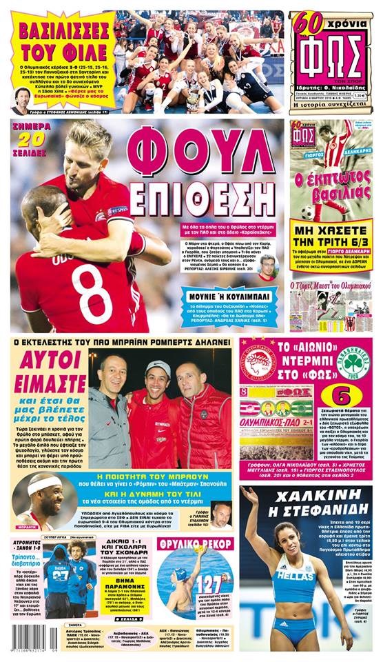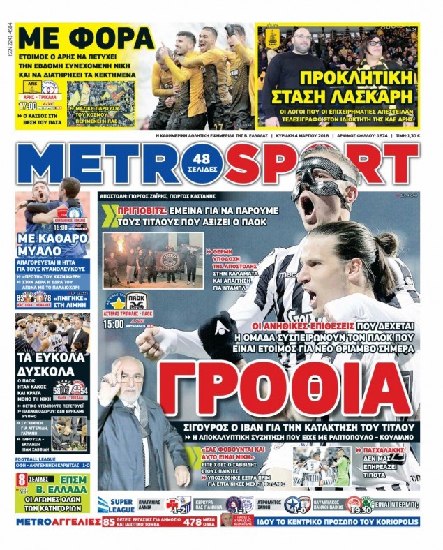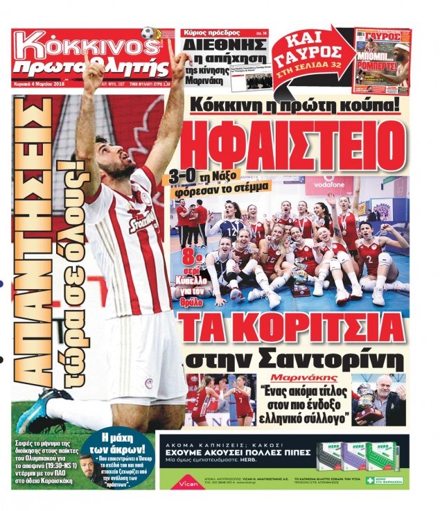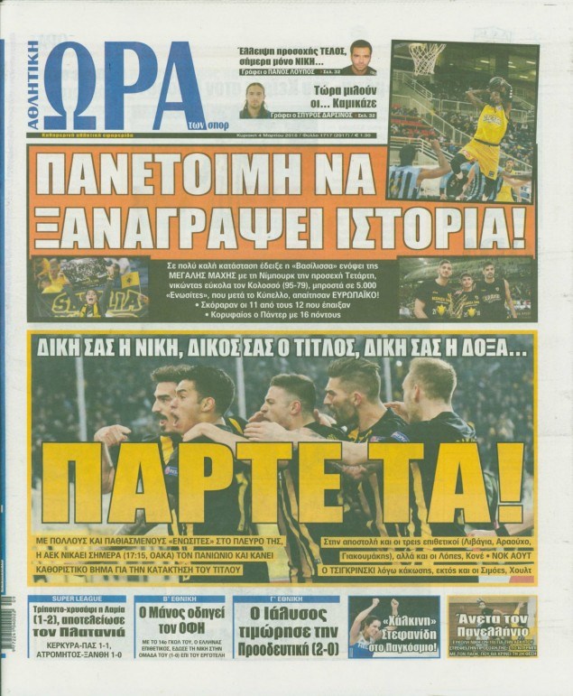 Οι αθλητικές εφημερίδες 4/3/2018 Κώστας Τεό 07:16, Κυριακή 04 Μαρτίου 2018 Media Διαβάστε τα σημερινά πρωτοσέλιδα των αθλητικών εφημερίδων: ΑΘΛΗΤΙΚΕΣ ΕΦΗΜΕΡΙΔΕΣ ΠΡΩΤΟΣΕΛΙΔΑ Μοιράσου το: σχολίασε κι εσύ (0 σχόλια) Ακολουθήστε το enikos.gr στο Google News και μάθετε πρώτοι όλες τις ειδήσεις Δείτε όλες τις τελευταίες ειδήσεις από την Ελλάδα και τον Κόσμο στο enikos.gr Ειδήσεις Ροή Ειδήσεων 2 ώρες πριν Χριστούγεννα στα μπλόκα: Επιμένουν στις κινητοποιήσεις τους οι αγρότες – Ανοίγουν τα διόδια το Σαββατοκύριακο 2 ώρες πριν Ουκρανία: Η άνευ προηγουμένου επίθεση σε ρωσικό τάνκερ στη Μεσόγειο και το μήνυμα προς στον Πούτιν – Το «μακρύ χέρι» του Κιέβου 2 ώρες πριν Πούτιν: Τα μηνύματα σε Ευρώπη και ΝΑΤΟ από το μαραθώνιο «σόου» του – Η απαίτηση για «σεβασμό» και η ειρήνη «με τους όρους» της Μόσχας 3 ώρες πριν Τραμπ: Δεν αποκλείει την πιθανότητα ενός πολέμου στη Βενεζουέλα – «Ο Μαδούρο ξέρει καλύτερα από τον καθένα τι ακριβώς θέλω» 3 ώρες πριν Συνεχίζει να προκαλεί ο Μίτσκοσκι: «Για μένα το όνομα Μακεδονία είναι ιερό» 2 ώρες πριν Ανακαλύφθηκαν αρχαία χρυσά νομίσματα 2.200 ετών που απεικονίζουν τον θεό Απόλλωνα – Η άγνωστη σύνδεση με τον Φίλιππο Β΄ της Μακεδονίας 3 ώρες πριν Ύπνος: Μια κρυφή κατάσταση του εγκεφάλου πριν από τον ύπνο μπορεί να είναι το “κλειδί” για υψηλή ευφυΐα και δημιουργικότητα 4 ώρες πριν Αριθμολογία: Οι άνθρωποι που έχουν γεννηθεί αυτές τις 4 ημερομηνίες, συχνά παρεξηγούνται – «Η καλοσύνη τους κρύβει τεράστια δύναμη» 5 ώρες πριν Ξεχάστε το καθάρισμα το Σαββατοκύριακο: Ο «κανόνας των 20 λεπτών» που θα σας λύσει τα χέρια 13 λεπτά πριν Φαίη Σκορδά: «Παλιότερα τα κομπλιμέντα τα προσπερνούσα, τώρα τα έχω ανάγκη» 29 λεπτά πριν Βασίλης Σπανούλης: Δεν εμφανίστηκε ούτε ένας δημοσιογράφος στην συνέντευξη Τύπου – «Καλησπέρα στον… κανέναν», δείτε βίντεο 40 λεπτά πριν Πόλεμος στην Ουκρανία: Εφτά νεκροί από ρωσική πυραυλική επίθεση στο λιμάνι της Οδησσού 44 λεπτά πριν ΗΠΑ: Η κυβέρνηση του Ντόναλντ Τραμπ άρχισε να δημοσιοποιεί τα αρχεία Έπσταϊν 55 λεπτά πριν Σάμος: Άνοιξε το μπλόκο των αγροτών στον κόμβο Κοκκαρίου – Σε νέα συνεδρίαση θα καθορίσουν την στάση τους ENIKOS NETWORK Το ΕΚΑΒ τιμήθηκε από την Ακαδημία Αθηνών για τα 40 χρόνια προσφοράς του Έχετε πραγματικά μεγάλη καρδιά; 10 χαρακτηριστικά όσων έχουν καλοσύνη Αναστολή μέτρων αναγκαστικής εκτέλεσης για κτηνοτρόφους που πλήττονται από την ευλογιά των αιγοπροβάτων Πλήρης επάρκεια προϊόντων στις λαϊκές της Αττικής, παρά τις αγροτικές κινητοποιήσεις – Τι απαντούν οι πωλητές Χαρτογραφώντας το «σημείο χωρίς επιστροφή»: Για πρώτη φορά αποκαλύπτεται με λεπτομέρεια το ακανθώδες όριο της ατμόσφαιρας τ... Η Google καταργεί τη λειτουργία «dark web report» – Πώς θα μπορούν οι χρήστες να διαγράφουν τα δεδομένα τους περισσότερα 22:42 , Παρασκευή 19 Δεκεμβρίου 2025 Γιώργος Γιαννόπουλος για “Το σόι σου”: “Είναι ευτυχία και ευλογία αυτή η σειρά” «Είναι ευτυχία και ευλογία η συγκυρία αυτής της σειράς», θα πει ο Γιώργος Γιαννόπουλος -ο αγαπ... 20:37 , Παρασκευή 19 Δεκεμβρίου 2025 Don’t Forget The Lyrics: Η Έλλη Κοκκίνου υποδέχεται 4 παίκτες που θα κάνουν τα πάντα για να μη χάσουν ούτε… μισή λέξη από τους στίχους Το «Don’t Forget The Lyrics» επιστρέφει απόψε, Παρασκευή 19 Δεκεμβρίου, στις 21:00 με νέο επει... 19:31 , Παρασκευή 19 Δεκεμβρίου 2025 GNTM: Απόψε ο μεγάλος τελικός για τους 4 φιναλίστ Έπειτα από μήνες γεμάτους μόδα, δημιουργία και έντονες αναμετρήσεις, το GNTM 2025 κορυφώνεται,... 18:11 , Πα