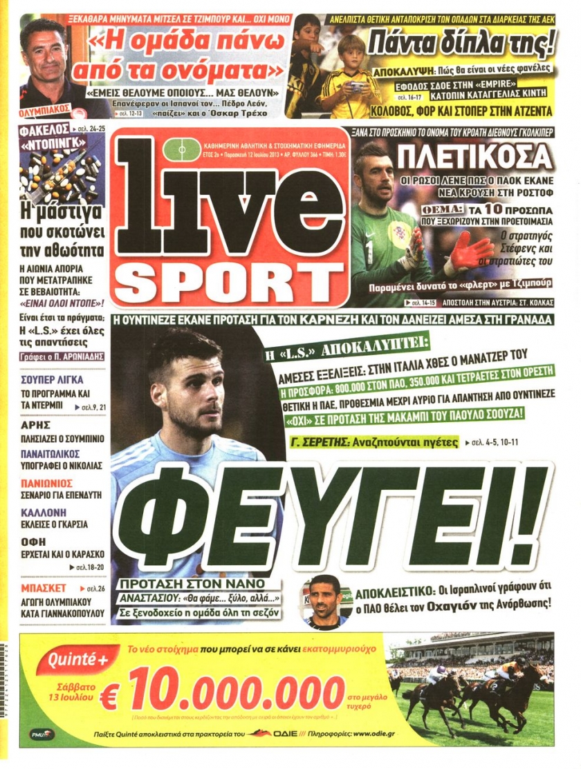 Οι αθλητικές εφημερίδες Enikos Newsroom 08:36, Παρασκευή 12 Ιουλίου 2013 Media Οι αθλητικές εφημερίδες Διαβάστε τα πρωτοσέλιδα των αθλητικών εφημερίδων: ` ΑΘΛΗΤΙΚΕΣ ΕΦΗΜΕΡΙΔΕΣ ΕΦΗΜΕΡΙΔΕΣ ΠΡΩΤΟΣΕΛΙΔΑ Μοιράσου το: σχολίασε κι εσύ (0 σχόλια) Ακολουθήστε το enikos.gr στο Google News και μάθετε πρώτοι όλες τις ειδήσεις Δείτε όλες τις τελευταίες ειδήσεις από την Ελλάδα και τον Κόσμο στο enikos.gr Ειδήσεις Ροή Ειδήσεων 3 ώρες πριν Ακίλα Σάλεχ: «Άκυρο» το τουρκολιβυκό μνημόνιο λέει ο πρόεδρος της λιβυκής Βουλής – Ανοίγει ο διάλογος με Ελλάδα, Αίγυπτο και Τουρκία 7 ώρες πριν Αγρότες: Την Τρίτη η απόφαση για διάλογο ή κλιμάκωση των κινητοποιήσεών τους – Πώς χαρακτηρίζουν τις ανακοινώσεις Τσιάρα και οι επόμενες κινήσεις 7 ώρες πριν Τραμπ για Ουκρανία: «Είμαστε πιο κοντά σε συμφωνία από ποτέ» – «Πολυεθνική δύναμη» προτείνουν οι Ευρωπαίοι 7 ώρες πριν Κυψέλη: Η 16χρονη που μαχαίρωσε την 14χρονη είχε συλληφθεί 3 φορές στο παρελθόν – Έβριζε καθηγητές, έβαζε φωτιές σε κάδους και εκβίαζε συμμαθητές της 6 ώρες πριν Τρομοκρατική επίθεση στο Σίδνεϊ: Θλίψη για τα 15 θύματα – Οργή στην εβραϊκή κοινότητα που προειδοποιούσε επί δύο χρόνια 7 ώρες πριν Επιστήμονες ίσως έλυσαν το μυστήριο γύρω από τα Χόμπιτ – Νέα έρευνα αποκαλύπτει πώς εξαφανίστηκαν 8 ώρες πριν Ύπνος: Η αρχαία μορφή άσκησης που αποδεικνύεται αποτελεσματική στην αντιμετώπιση της αϋπνίας, σύμφωνα με μελέτη 9 ώρες πριν Αριθμολογία: Ο τυχερός σας αριθμός, ανάλογα με τον μήνα γέννησής σας 10 ώρες πριν Πώς να μην μαραίνονται γρήγορα τα κομμένα λουλούδια: Το λάθος στην τοποθέτηση του βάζου που πρέπει να αποφεύγετε 13 δευτερόλεπτα πριν Οι οικονομικές εφημερίδες 16/12/2025 5 λεπτά πριν Οι αθλητικές εφημερίδες 16/12/2025 10 λεπτά πριν Οι πολιτικές εφημερίδες 16/12/2025 18 λεπτά πριν Τα ζώδια σήμερα, Τρίτη 16 Δεκεμβρίου: Ιχθύες, δεν χρειάζεται να έχετε όλες τις απαντήσεις 26 λεπτά πριν Εφημερεύοντα φαρμακεία σε Αθήνα και Θεσσαλονίκη (16/12) ENIKOS NETWORK Πότε το χρόνιο ροχαλητό να αποτελέσει ένδειξη κινδύνου για την καρδιά; Τι λένε οι ειδικοί Μάριος Θεμιστοκλέους: Το ΕΣΥ ενισχύεται, εκσυγχρονίζεται, αλλάζει ΕΒΕΠ για αγροτικές κινητοποιήσεις: Κάθε επιπλέον εβδομάδα προσθέτει περίπου 200 εκατ. ευρώ ζημιά Τι προβλέπει το νομοσχέδιο του υπουργείου Εθνικής Άμυνας – Oι αλλαγές στους μισθούς Σύγχρονος Νοστράδαμος: Προειδοποιεί για «μεγάλο γεγονός» τους επόμενους μήνες που θα συγκλονίσει τη Βρετανία και τον κόσμο Τεστ παρατηρητικότητας: Μπορείτε να βρείτε τις 3 διαφορές στις εικόνες με έναν πιγκουίνο σε 14 δευτερόλεπτα περισσότερα 05:48 , Τρίτη 16 Δεκεμβρίου 2025 Οι οικονομικές εφημερίδες 16/12/2025 Διαβάστε τα πρωτοσέλιδα από τις οικονομικές εφημερίδες, σήμερα 16/12/2025. 05:43 , Τρίτη 16 Δεκεμβρίου 2025 Οι αθλητικές εφημερίδες 16/12/2025 Διαβάστε τα πρωτοσέλιδα από τις αθλητικές εφημερίδες, σήμερα 16/12/2025. 05:38 , Τρίτη 16 Δεκεμβρίου 2025 Οι πολιτικές εφημερίδες 16/12/2025 Διαβάστε τα πρωτοσέλιδα από τις πολιτικές εφημερίδες, σήμερα 16/12/2025. 21:35 , Δευτέρα 15 Δεκεμβρίου 2025 Το Σπίτι Δίπλα Στο Ποτάμι: Η Ιουλία και ο Φωκάς μετακομίζουν στη Ρόδο – Δύο νέοι χαρακτήρες μπαίνουν στη σειρά Δύο νέοι, κομβικοί χαρακτήρες κάνουν την εμφάνισή τους αυτή την εβδομάδα στην αγαπημένη σειρά ... ΤΕΛΕΥΤΑΙΕΣ ΕΙΔΗΣΕΙΣ 5 λεπτά πριν Οι αθλητικές εφημερίδες 16/12/2025 10 λεπτά πριν Οι πολιτικές εφημερίδες 16/12/2025 18 λεπτά πριν Τα ζώδια σήμερα, Τρίτη 16 Δεκεμβρίου: Ιχθύες, δεν... 26 λεπτά πριν Εφημερεύοντα φαρμακεία σε Αθήνα και Θεσσαλονίκη (16/1