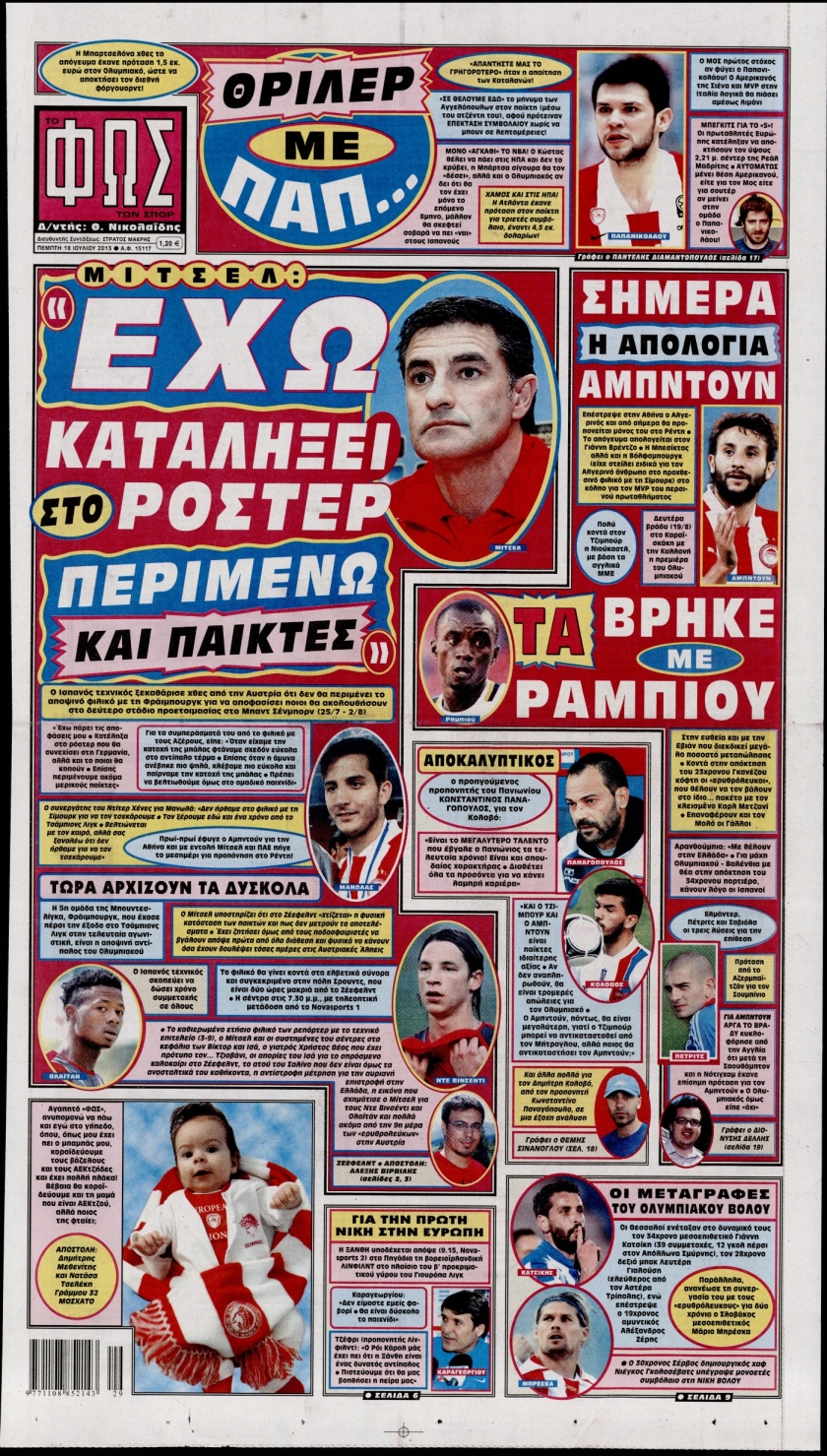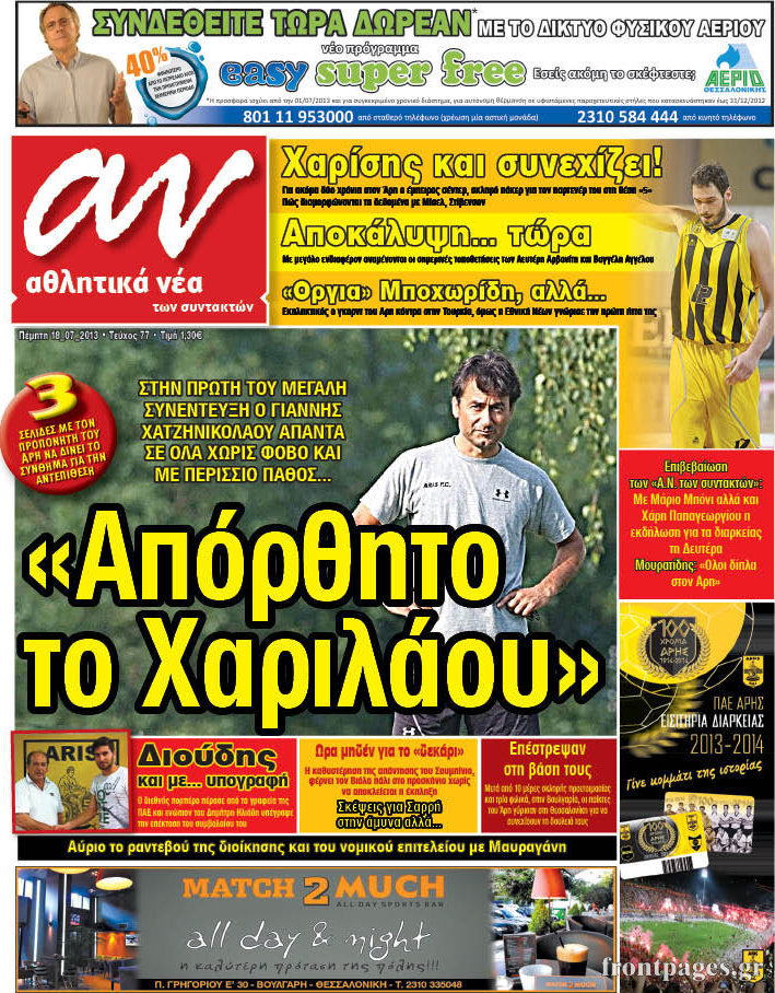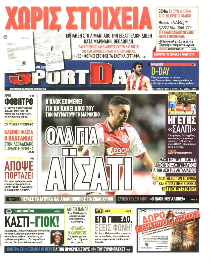 Οι αθλητικές εφημερίδες Enikos Newsroom 08:44, Πέμπτη 18 Ιουλίου 2013 Media Οι αθλητικές εφημερίδες Διαβάστε τα πρωτοσέλιδα των αθλητικών εφημερίδων: ΑΘΛΗΤΙΚΕΣ ΕΦΗΜΕΡΙΔΕΣ ΕΦΗΜΕΡΙΔΕΣ ΠΡΩΤΟΣΕΛΙΔΑ Μοιράσου το: σχολίασε κι εσύ (0 σχόλια) Ακολουθήστε το enikos.gr στο Google News και μάθετε πρώτοι όλες τις ειδήσεις Δείτε όλες τις τελευταίες ειδήσεις από την Ελλάδα και τον Κόσμο στο enikos.gr Ειδήσεις Ροή Ειδήσεων 3 ώρες πριν Ακίλα Σάλεχ: «Άκυρο» το τουρκολιβυκό μνημόνιο λέει ο πρόεδρος της λιβυκής Βουλής – Ανοίγει ο διάλογος με Ελλάδα, Αίγυπτο και Τουρκία 8 ώρες πριν Αγρότες: Την Τρίτη η απόφαση για διάλογο ή κλιμάκωση των κινητοποιήσεών τους – Πώς χαρακτηρίζουν τις ανακοινώσεις Τσιάρα και οι επόμενες κινήσεις 7 ώρες πριν Τραμπ για Ουκρανία: «Είμαστε πιο κοντά σε συμφωνία από ποτέ» – «Πολυεθνική δύναμη» προτείνουν οι Ευρωπαίοι 7 ώρες πριν Κυψέλη: Η 16χρονη που μαχαίρωσε την 14χρονη είχε συλληφθεί 3 φορές στο παρελθόν – Έβριζε καθηγητές, έβαζε φωτιές σε κάδους και εκβίαζε συμμαθητές της 7 ώρες πριν Τρομοκρατική επίθεση στο Σίδνεϊ: Θλίψη για τα 15 θύματα – Οργή στην εβραϊκή κοινότητα που προειδοποιούσε επί δύο χρόνια 7 ώρες πριν Επιστήμονες ίσως έλυσαν το μυστήριο γύρω από τα Χόμπιτ – Νέα έρευνα αποκαλύπτει πώς εξαφανίστηκαν 8 ώρες πριν Ύπνος: Η αρχαία μορφή άσκησης που αποδεικνύεται αποτελεσματική στην αντιμετώπιση της αϋπνίας, σύμφωνα με μελέτη 9 ώρες πριν Αριθμολογία: Ο τυχερός σας αριθμός, ανάλογα με τον μήνα γέννησής σας 10 ώρες πριν Πώς να μην μαραίνονται γρήγορα τα κομμένα λουλούδια: Το λάθος στην τοποθέτηση του βάζου που πρέπει να αποφεύγετε 1 λεπτό πριν Δώρο Χριστουγέννων 2025: Ποιοι εργαζόμενοι το δικαιούνται – Η online εφαρμογή της ΓΣΕΕ για να το υπολογίσετε 9 λεπτά πριν Υψηλή χοληστερίνη: Γιατρός αποκαλύπτει δύο τρόπους για να την μειώσετε χωρίς φαρμακευτική αγωγή 17 λεπτά πριν Σαν σήμερα 16 Δεκεμβρίου: Τα σημαντικότερα γεγονότα της ημέρας 21 λεπτά πριν Οι οικονομικές εφημερίδες 16/12/2025 27 λεπτά πριν Οι αθλητικές εφημερίδες 16/12/2025 ENIKOS NETWORK Πότε το χρόνιο ροχαλητό να αποτελέσει ένδειξη κινδύνου για την καρδιά; Τι λένε οι ειδικοί Μάριος Θεμιστοκλέους: Το ΕΣΥ ενισχύεται, εκσυγχρονίζεται, αλλάζει ΕΒΕΠ για αγροτικές κινητοποιήσεις: Κάθε επιπλέον εβδομάδα προσθέτει περίπου 200 εκατ. ευρώ ζημιά Τι προβλέπει το νομοσχέδιο του υπουργείου Εθνικής Άμυνας – Oι αλλαγές στους μισθούς Σύγχρονος Νοστράδαμος: Προειδοποιεί για «μεγάλο γεγονός» τους επόμενους μήνες που θα συγκλονίσει τη Βρετανία και τον κόσμο Τεστ παρατηρητικότητας: Μπορείτε να βρείτε τις 3 διαφορές στις εικόνες με έναν πιγκουίνο σε 14 δευτερόλεπτα περισσότερα 05:48 , Τρίτη 16 Δεκεμβρίου 2025 Οι οικονομικές εφημερίδες 16/12/2025 Διαβάστε τα πρωτοσέλιδα από τις οικονομικές εφημερίδες, σήμερα 16/12/2025. 05:43 , Τρίτη 16 Δεκεμβρίου 2025 Οι αθλητικές εφημερίδες 16/12/2025 Διαβάστε τα πρωτοσέλιδα από τις αθλητικές εφημερίδες, σήμερα 16/12/2025. 05:38 , Τρίτη 16 Δεκεμβρίου 2025 Οι πολιτικές εφημερίδες 16/12/2025 Διαβάστε τα πρωτοσέλιδα από τις πολιτικές εφημερίδες, σήμερα 16/12/2025. 21:35 , Δευτέρα 15 Δεκεμβρίου 2025 Το Σπίτι Δίπλα Στο Ποτάμι: Η Ιουλία και ο Φωκάς μετακομίζουν στη Ρόδο – Δύο νέοι χαρακτήρες μπαίνουν στη σειρά Δύο νέοι, κομβικοί χαρακτήρες κάνουν την εμφάνισή τους αυτή την εβδομάδα στην αγαπημένη σειρά ... ΤΕΛΕΥΤΑΙΕΣ ΕΙΔΗΣΕΙΣ 9 λεπτά πριν Υψηλή χοληστερίνη: Γιατρός αποκαλύπτει δύο τρόπους... 17 λεπτά πριν Σαν σήμερα 16 Δεκεμβρίου: Τα σημαντικότερα γεγονότα... 21 