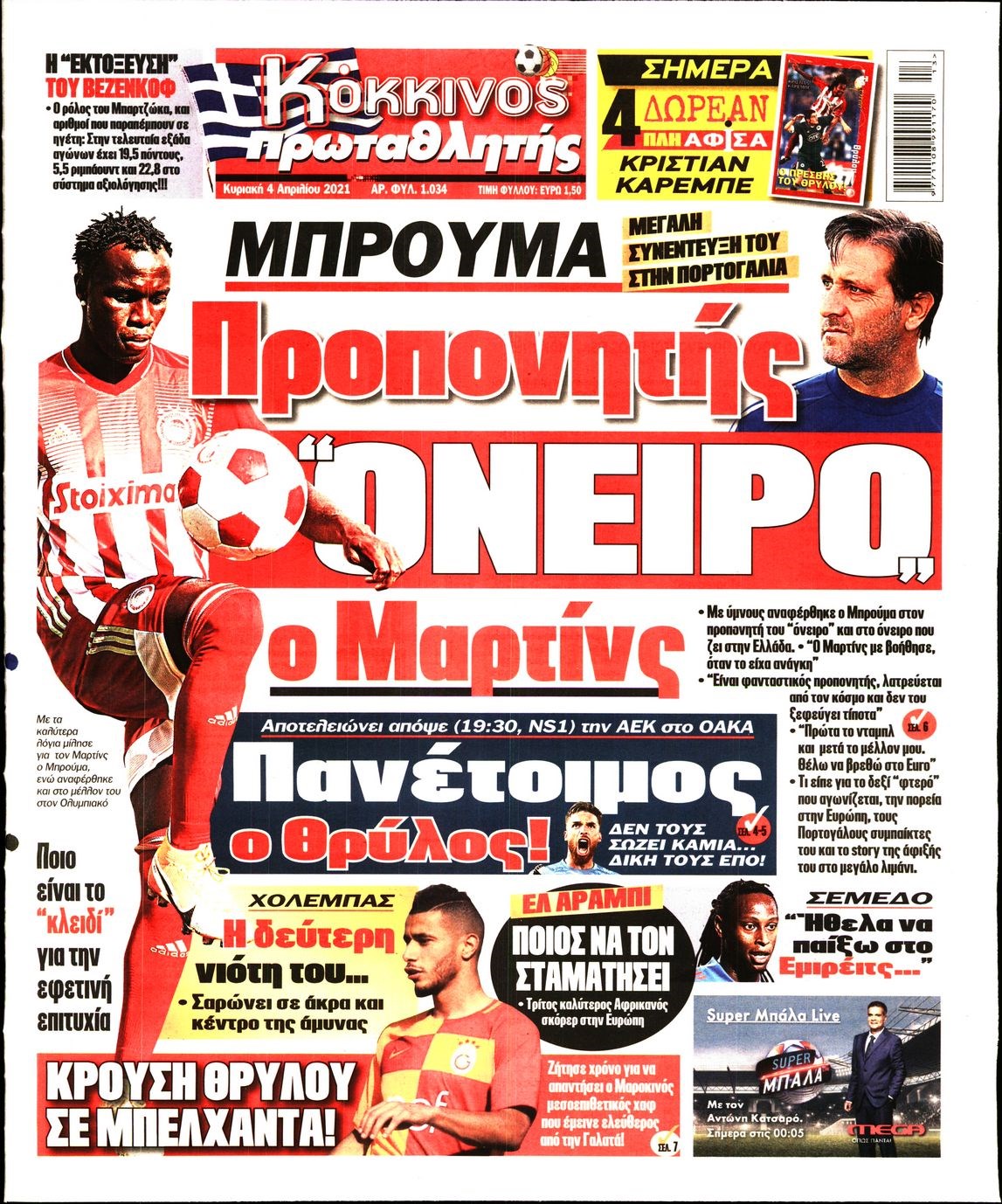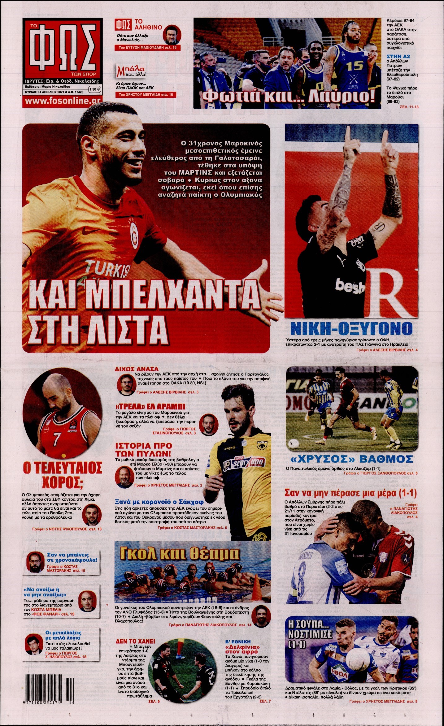 Οι αθλητικές εφημερίδες 4/4/2021 Διονύσης Νίκκας 07:44, Κυριακή 04 Απριλίου 2021 Media Διαβάστε τα πρωτοσέλιδα των αθλητικών εφημερίδων… ΑΘΛΗΤΙΚΕΣ ΕΦΗΜΕΡΙΔΕΣ Μοιράσου το: σχολίασε κι εσύ (0 σχόλια) Ακολουθήστε το enikos.gr στο Google News και μάθετε πρώτοι όλες τις ειδήσεις Δείτε όλες τις τελευταίες ειδήσεις από την Ελλάδα και τον Κόσμο στο enikos.gr Ειδήσεις Ροή Ειδήσεων 1 ώρα πριν Μεσόγειος: Η διαδρομή του ρωσικού τάνκερ «Qendil» και η στοχευμένη επίθεση της Ουκρανίας με drone – Ο Πούτιν προειδοποίησε για αντίποινα 1 ώρα πριν Αττική: Θρίλερ με νεκρό βρέφος 5 μηνών – Κοιμόταν στο ίδιο κρεβάτι με τους γονείς του 2 ώρες πριν Από το Ορμένιο ως τα Μάλγαρα κι από τη Σιάτιστα μέχρι τη Νίκαια: Μπλόκα σε όλη την Ελλάδα – Το Σάββατο ανοίγουν τα διόδια οι αγρότες 2 ώρες πριν «Έλληνας Εσκομπάρ»: Φωτογραφίες με τους 4 τόνους κοκαΐνης που κατασχέθηκαν από το σκάφος «Ουρανία» 4 ώρες πριν Πούτιν: Σαρκαστικά μηνύματα, παράπονα και απρόοπτα στη συνέντευξη Τύπου – Η πρόταση γάμου on air και οι ερωτήσεις για τα αγγούρια και τους… εξωγήινους 3 ώρες πριν Τα 5 ζώδια που ευνοούνται στην ερωτική ζωή τους την επόμενη εβδομάδα – «Η ενέργεια του Αιγόκερου φέρνει αγάπη και σταθερότητα» 7 ώρες πριν Ειδικός μοιράζεται 6 κόλπα για να διατηρείστε σε φόρμα με πάνω από 40 ώρες εργασίας την εβδομάδα: «Προπονηθείτε πριν από τη δουλειά, όχι μετά» 4 ώρες πριν Αυτό το έξυπνο μαθηματικό κόλπο θα μπορούσε να αλλάξει τον τρόπο με τον οποίο οι επιστήμονες μελετούν τους σεισμούς 2 ώρες πριν Κουίζ για την παλιά Αθήνα: Αναγνωρίζετε την περιοχή; Έχετε περάσει 100% από εκεί 3 λεπτά πριν ΗΠΑ: Νέος γύρος συνομιλιών στο Μαϊάμι – Σήμερα συνάντηση Γουίτκοφ με Ουκρανούς και Ευρωπαίους διαπραγματευτές, το Σαββατοκύριακο με Ρώσους αξιωματούχους 8 λεπτά πριν Νέα σειρά γραμματοσήμων «ΕΛΠΙΔΑ-Μαριάννα Β. Βαρδινογιάννη» 12 λεπτά πριν Ιταλία: Με εισιτήριο από την 1η Φεβρουαρίου 2026 η πρόσβαση στη Φοντάνα ντι Τρέβι – Πόσο θα κοστίζει 20 λεπτά πριν Μήπως έχετε χάσει τον εαυτό σας στη σχέση σας; 7 «αθόρυβες» υποχωρήσεις που μάλλον κάνατε, χωρίς να το συνειδητοποιήσετε 26 λεπτά πριν Λάρισα: Ασθενοφόρο έπεσε πάνω σε κλούβα της ΕΛ.ΑΣ στον Πλατύκαμπο – Τραυματίστηκε ο συνοδηγός – ΒΙΝΤΕΟ ENIKOS NETWORK «Η σούπερ» γρίπη εξαπλώνεται στην Ευρώπη-Στοιχεία από το ECDC για την αποτελεσματικότητα του εμβολίου ΕΛΣΤΑΤ: Αύξηση κατά 1,7% των επαγγελματιών υγείας το 2024 Προκήρυξη ΑΣΕΠ για 397 μόνιμες προσλήψεις στο Δημόσιο: Βγήκαν τα προσωρινά αποτελέσματα – Πότε αρχίζει η υποβολή ενστάσεων Η απάντηση της κυβέρνησης στα αιτήματα των αγροτών: 16 έχουν ικανοποιηθεί, 4 βρίσκονται υπό επεξεργασία και 7 δεν είναι εφι... Χαρτογραφώντας το «σημείο χωρίς επιστροφή»: Για πρώτη φορά αποκαλύπτεται με λεπτομέρεια το ακανθώδες όριο της ατμόσφαιρας τ... Η Google καταργεί τη λειτουργία «dark web report» – Πώς θα μπορούν οι χρήστες να διαγράφουν τα δεδομένα τους περισσότερα 18:11 , Παρασκευή 19 Δεκεμβρίου 2025 Το σόι σου: Ο Άρης έρχεται στην Ελλάδα για τις γιορτές των Χριστουγέννων – Τι θα δούμε στο αποψινό εορταστικό επεισόδιο Ένα απολαυστικό, εορταστικό επεισόδιο της σειράς “Το σόι σου”, γεμάτο ευτράπελα αλ... 15:15 , Παρασκευή 19 Δεκεμβρίου 2025 Την Κυριακή με τη Realnews: Ό,τι και αν αγοράσεις, σκανάρεις και κερδίζεις! Την Κυριακή με τη Realnews: Ό,τι και αν αγοράσεις, σκανάρεις και κερδίζεις! Με το PADU app, το... 08:00 , Παρασκευή 19 Δεκεμβρίου 2025 Την Κυριακή με τη Realnews: Δωροεπιταγή 10€ Δωροεπιταγή αξίας 10€ για αγορές άνω