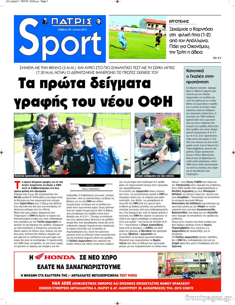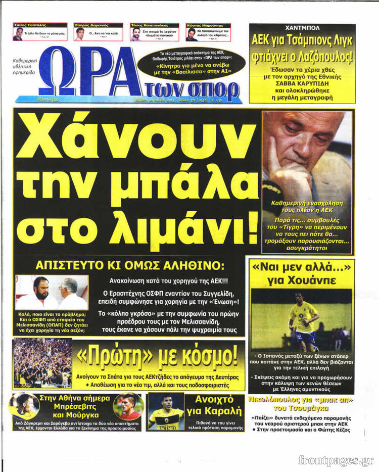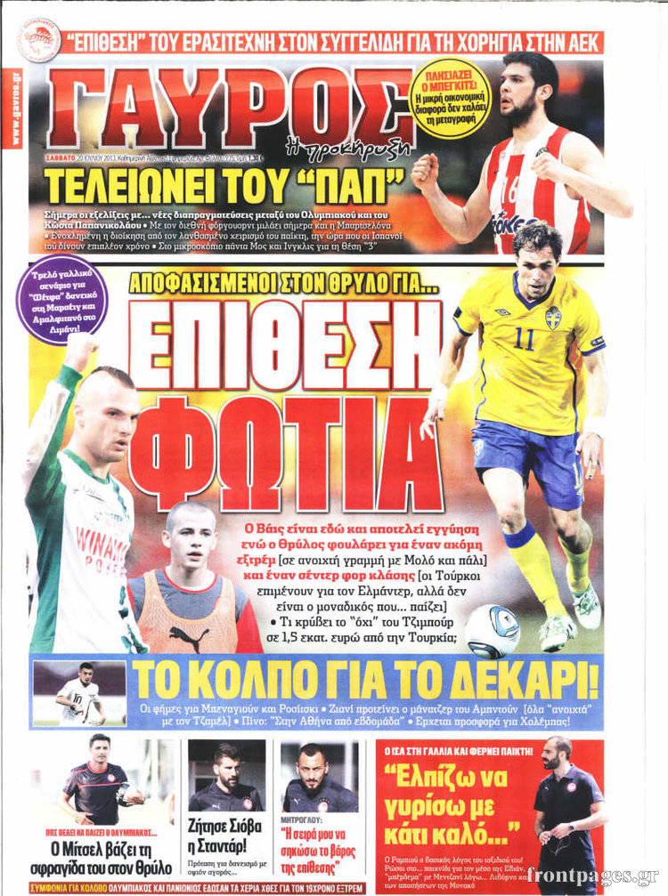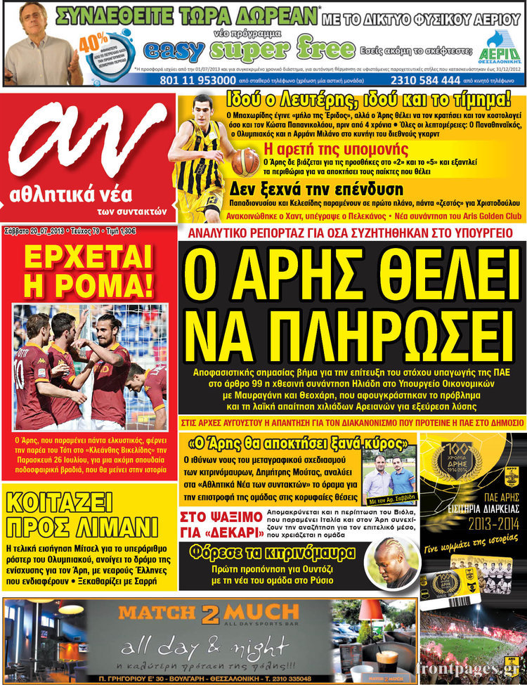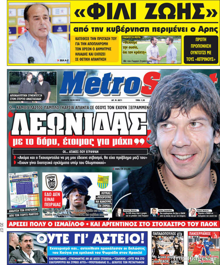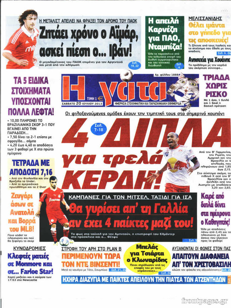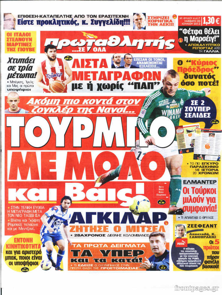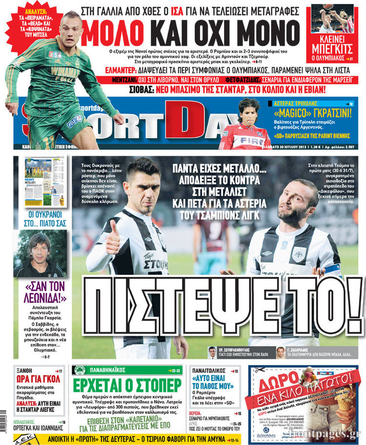 Οι αθλητικές εφημερίδες Enikos Newsroom 08:49, Σάββατο 20 Ιουλίου 2013 Media Οι αθλητικές εφημερίδες Διαβάστε τα πρωτοσέλιδα των αθλητικών εφημερίδων. ΑΘΛΗΤΙΚΕΣ ΕΦΗΜΕΡΙΔΕΣ ΕΦΗΜΕΡΙΔΕΣ Μοιράσου το: σχολίασε κι εσύ (0 σχόλια) Ακολουθήστε το enikos.gr στο Google News και μάθετε πρώτοι όλες τις ειδήσεις Δείτε όλες τις τελευταίες ειδήσεις από την Ελλάδα και τον Κόσμο στο enikos.gr Ειδήσεις Ροή Ειδήσεων 1 ώρα πριν Δημοσκόπηση Metron Analysis: Στις 10 μονάδες η διαφορά ΝΔ-ΠΑΣΟΚ, στην 3η θέση η Πλεύση Ελευθερίας – 8 στους 10 στηρίζουν τον αγώνα των αγροτών 6 ώρες πριν Αγρότες: «Όχι στον διάλογο, μας εμπαίζει η κυβέρνηση» – Αποφάσισαν κλιμάκωση των κινητοποιήσεων, τι θα γίνει τα Χριστούγεννα 1 ώρα πριν Νίκος Παππάς στον ΑΝΤ1: «Δεν κρύβομαι – Μετά το συμβάν ακολούθησα κανονικά το πρόγραμμά μου» – ΒΙΝΤΕΟ 3 ώρες πριν Αθήνα: Εξαρθρώθηκε εγκληματική οργάνωση που διακινούσε ναρκωτικά σε μορφή σοκολάτας – Δύο τράπερ ανάμεσα στους 4 συλληφθέντες – ΒΙΝΤΕΟ 1 ώρα πριν Διαμαντής Καραναστάσης: Οδηγούσε υπό την επήρεια αλκοόλ – Του αφαιρέθηκε το δίπλωμα και του επιβλήθηκε πρόστιμο 350 ευρώ 2 ώρες πριν Manifesting: Πώς να συναντήσετε τον σύντροφο της ζωής σας, ανάλογα με τον μήνα γέννησής σας 4 ώρες πριν Γάμος: 11 ψυχρές αλλά ευγενικές φράσεις, που λέει ένας άνδρας όταν σκέφτεται τον χωρισμό 3 ώρες πριν Σφουγγάρισμα: Η συνήθεια που θα σας βοηθήσει να διατηρήσετε το σπίτι σας καθαρό και τακτοποιημένο 2 ημέρες πριν 20 χρόνια τα Χριστούγεννα ξεκινούν στα Public με μεγάλη ποικιλία σε δώρα! 2 λεπτά πριν Αυξάνουν την πίεση προς την κυβέρνηση οι αγρότες: Κλείνουν παρακαμπτήριους και ανοίγουν διόδια – Τι θα γίνει τις γιορτές 7 λεπτά πριν Ελισάβετ Κωνσταντινίδου για τον Γεράσιμο Μιχελή και την Πόπη Χριστοδούλου: «Ξέρω ότι έχουν πάει απλώς κάπου αλλού, ότι δεν είναι ο θάνατος έτσι όπως τον έχουμε στο μυαλό μας» 11 λεπτά πριν Κρήτη: Νέες αποκαλύψεις για τον 54χρονο που κατηγορείται ότι εξαπάτησε τους γονείς του 33χρονου – Ζητούσε τρίχες αγνοουμένων 18 λεπτά πριν Τσιάρας: Δεν θα κινδυνέψουν οι πληρωμές των αγροτών – Χρειαζόμαστε μια νέα πολιτική, ένα restart 25 λεπτά πριν Δέσποινα Βανδή: Το βίντεο που δημοσίευσε με τον Γιώργο Νικολαΐδη – «Έχουμε καταστραφεί από τα μελομακάρονά σου» ENIKOS NETWORK Σε περίοδο αυξημένης δραστηριότητας η γρίπη στην Ελλάδα-Μέτρα προστασίας από τον ΕΟΔΥ Σκέφτεστε συνέχεια συζητήσεις που έχετε κάνει; Τι σημαίνει αυτό, σύμφωνα με ειδικό ΑΣΕΠ 2ΓΒ/2025: Σήμερα αρχίζει η υποβολή ενστάσεων – Πότε θα βγουν τα οριστικά αποτελέσματα ΕΛΤΑ: Αυτό είναι το νέο σχέδιο μετασχηματισμού του Οργανισμού- Τι δήλωσαν Πιερρακάκης και Παπαστεργίου Χαρτογραφώντας το «σημείο χωρίς επιστροφή»: Για πρώτη φορά αποκαλύπτεται με λεπτομέρεια το ακανθώδες όριο της ατμόσφαιρας τ... Η Google καταργεί τη λειτουργία «dark web report» – Πώς θα μπορούν οι χρήστες να διαγράφουν τα δεδομένα τους περισσότερα 17:45 , Πέμπτη 18 Δεκεμβρίου 2025 ROUK ZOUK: Εορταστικό επεισόδιο με καλεσμένους τους πρωταγωνιστές του «Γιατί ρε πατέρα» Το Σάββατο 20 Δεκεμβρίου στις 21:00, η Ζέτα Μακρυπούλια υποδέχεται εκλεκτούς ηθοποιούς που όλο... 17:20 , Πέμπτη 18 Δεκεμβρίου 2025 Άγιος έρωτας: Η Χριστίνα εξομολογείται στον πατέρα Νικόλαο, απόψε στις 21:00 στον Alpha Η Νότα αποφασίζει να εκδικηθεί τον Πέτρο και τον Στέφανο, για χάρη του Λούη, όμως τα πράγματα ... 16:50 , Πέμπτη 18 Δεκεμβρίου 2025 Να μ’ αγαπάς: Ζωή και Φωτεινή συμφιλιώνονται ως μάνα με κόρη, απόψε στις 20:00 Η ταυτότητα του Άγγελου αποκαλύπτεται στο 