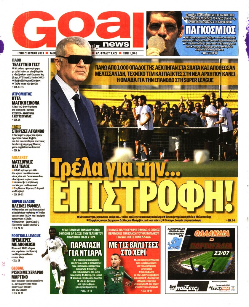 Οι αθλητικές εφημερίδες Enikos Newsroom 08:58, Τρίτη 23 Ιουλίου 2013 Media Οι αθλητικές εφημερίδες Διαβάστε τα πρωτοσέλιδα των αθλητικών εφημερίδων: ΑΘΛΗΤΙΚΕΣ ΕΦΗΜΕΡΙΔΕΣ ΕΦΗΜΕΡΙΔΕΣ ΠΡΩΤΟΣΕΛΙΔΑ Μοιράσου το: σχολίασε κι εσύ (0 σχόλια) Ακολουθήστε το enikos.gr στο Google News και μάθετε πρώτοι όλες τις ειδήσεις Δείτε όλες τις τελευταίες ειδήσεις από την Ελλάδα και τον Κόσμο στο enikos.gr Ειδήσεις Ροή Ειδήσεων 3 ώρες πριν Ακίλα Σάλεχ: «Άκυρο» το τουρκολιβυκό μνημόνιο λέει ο πρόεδρος της λιβυκής Βουλής – Ανοίγει ο διάλογος με Ελλάδα, Αίγυπτο και Τουρκία 7 ώρες πριν Αγρότες: Την Τρίτη η απόφαση για διάλογο ή κλιμάκωση των κινητοποιήσεών τους – Πώς χαρακτηρίζουν τις ανακοινώσεις Τσιάρα και οι επόμενες κινήσεις 7 ώρες πριν Τραμπ για Ουκρανία: «Είμαστε πιο κοντά σε συμφωνία από ποτέ» – «Πολυεθνική δύναμη» προτείνουν οι Ευρωπαίοι 7 ώρες πριν Κυψέλη: Η 16χρονη που μαχαίρωσε την 14χρονη είχε συλληφθεί 3 φορές στο παρελθόν – Έβριζε καθηγητές, έβαζε φωτιές σε κάδους και εκβίαζε συμμαθητές της 6 ώρες πριν Τρομοκρατική επίθεση στο Σίδνεϊ: Θλίψη για τα 15 θύματα – Οργή στην εβραϊκή κοινότητα που προειδοποιούσε επί δύο χρόνια 7 ώρες πριν Επιστήμονες ίσως έλυσαν το μυστήριο γύρω από τα Χόμπιτ – Νέα έρευνα αποκαλύπτει πώς εξαφανίστηκαν 8 ώρες πριν Ύπνος: Η αρχαία μορφή άσκησης που αποδεικνύεται αποτελεσματική στην αντιμετώπιση της αϋπνίας, σύμφωνα με μελέτη 9 ώρες πριν Αριθμολογία: Ο τυχερός σας αριθμός, ανάλογα με τον μήνα γέννησής σας 10 ώρες πριν Πώς να μην μαραίνονται γρήγορα τα κομμένα λουλούδια: Το λάθος στην τοποθέτηση του βάζου που πρέπει να αποφεύγετε 24 δευτερόλεπτα πριν Οι οικονομικές εφημερίδες 16/12/2025 6 λεπτά πριν Οι αθλητικές εφημερίδες 16/12/2025 11 λεπτά πριν Οι πολιτικές εφημερίδες 16/12/2025 18 λεπτά πριν Τα ζώδια σήμερα, Τρίτη 16 Δεκεμβρίου: Ιχθύες, δεν χρειάζεται να έχετε όλες τις απαντήσεις 26 λεπτά πριν Εφημερεύοντα φαρμακεία σε Αθήνα και Θεσσαλονίκη (16/12) ENIKOS NETWORK Πότε το χρόνιο ροχαλητό να αποτελέσει ένδειξη κινδύνου για την καρδιά; Τι λένε οι ειδικοί Μάριος Θεμιστοκλέους: Το ΕΣΥ ενισχύεται, εκσυγχρονίζεται, αλλάζει ΕΒΕΠ για αγροτικές κινητοποιήσεις: Κάθε επιπλέον εβδομάδα προσθέτει περίπου 200 εκατ. ευρώ ζημιά Τι προβλέπει το νομοσχέδιο του υπουργείου Εθνικής Άμυνας – Oι αλλαγές στους μισθούς Σύγχρονος Νοστράδαμος: Προειδοποιεί για «μεγάλο γεγονός» τους επόμενους μήνες που θα συγκλονίσει τη Βρετανία και τον κόσμο Τεστ παρατηρητικότητας: Μπορείτε να βρείτε τις 3 διαφορές στις εικόνες με έναν πιγκουίνο σε 14 δευτερόλεπτα περισσότερα 05:48 , Τρίτη 16 Δεκεμβρίου 2025 Οι οικονομικές εφημερίδες 16/12/2025 Διαβάστε τα πρωτοσέλιδα από τις οικονομικές εφημερίδες, σήμερα 16/12/2025. 05:43 , Τρίτη 16 Δεκεμβρίου 2025 Οι αθλητικές εφημερίδες 16/12/2025 Διαβάστε τα πρωτοσέλιδα από τις αθλητικές εφημερίδες, σήμερα 16/12/2025. 05:38 , Τρίτη 16 Δεκεμβρίου 2025 Οι πολιτικές εφημερίδες 16/12/2025 Διαβάστε τα πρωτοσέλιδα από τις πολιτικές εφημερίδες, σήμερα 16/12/2025. 21:35 , Δευτέρα 15 Δεκεμβρίου 2025 Το Σπίτι Δίπλα Στο Ποτάμι: Η Ιουλία και ο Φωκάς μετακομίζουν στη Ρόδο – Δύο νέοι χαρακτήρες μπαίνουν στη σειρά Δύο νέοι, κομβικοί χαρακτήρες κάνουν την εμφάνισή τους αυτή την εβδομάδα στην αγαπημένη σειρά ... ΤΕΛΕΥΤΑΙΕΣ ΕΙΔΗΣΕΙΣ 6 λεπτά πριν Οι αθλητικές εφημερίδες 16/12/2025 11 λεπτά πριν Οι πολιτικές εφημερίδες 16/12/2025 18 λεπτά πριν Τα ζώδια σήμερα, Τρίτη 16 Δεκεμβρίου: Ιχθύες, δεν... 26 λεπτά πριν Εφημερεύοντα φαρμακεία σε Αθήνα και Θεσσαλονίκη (16/12) 33 λε