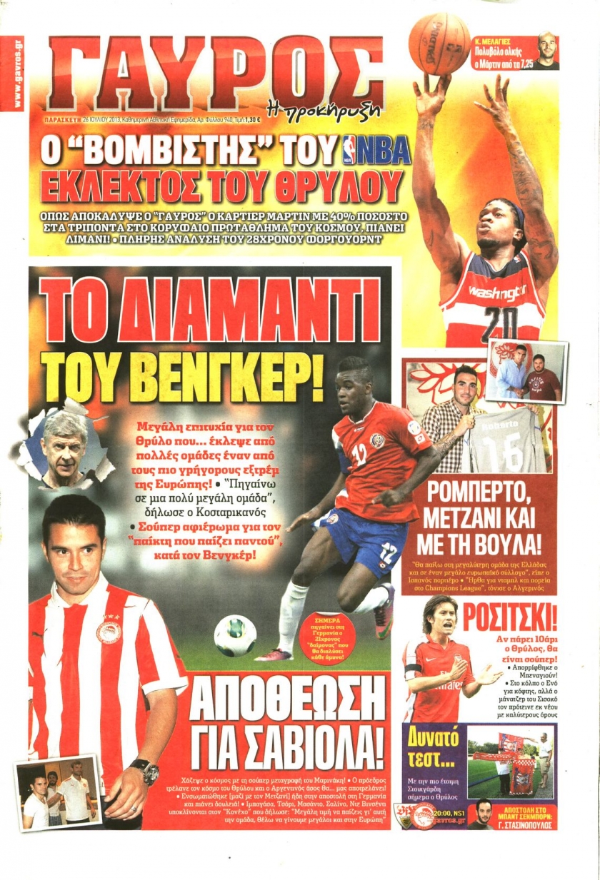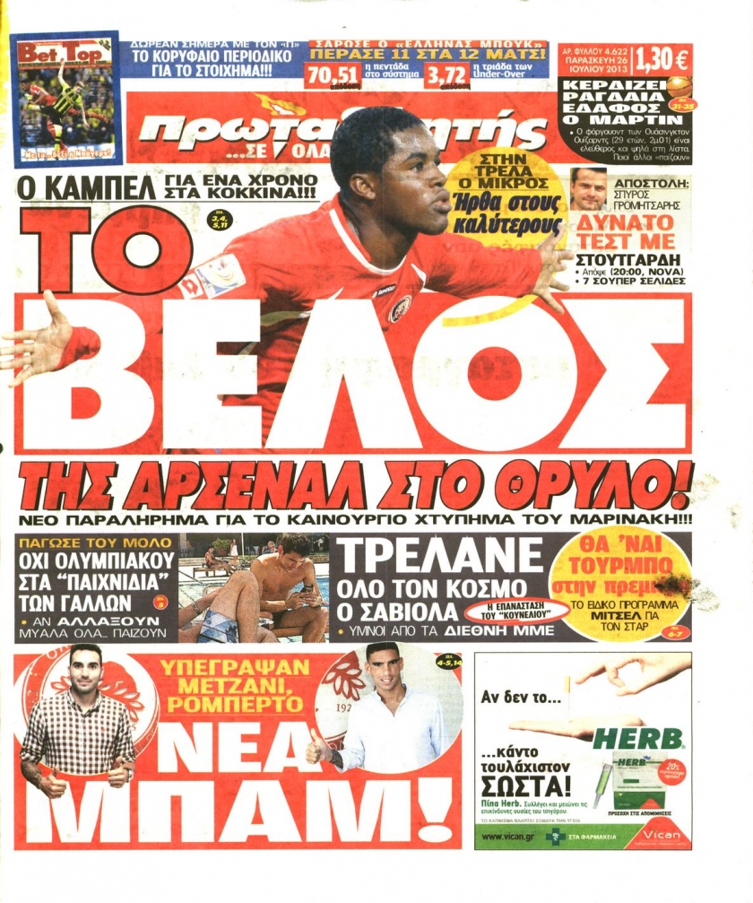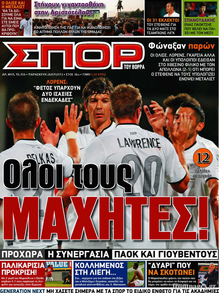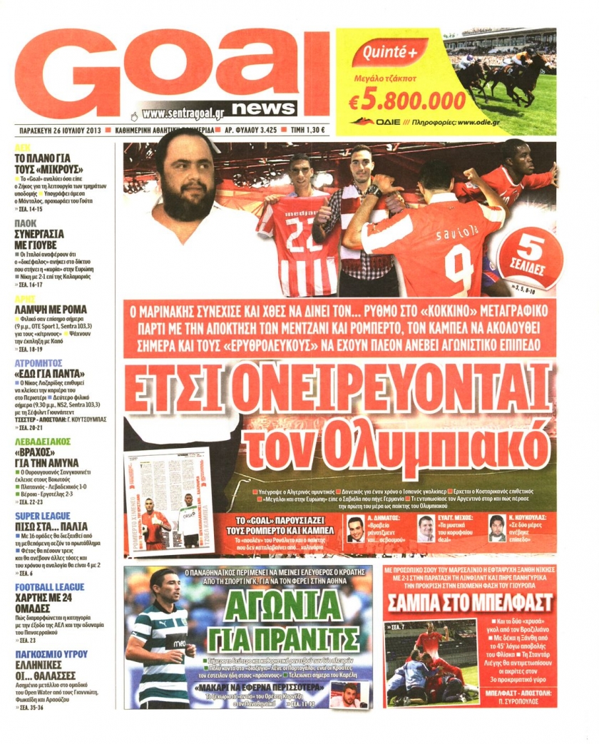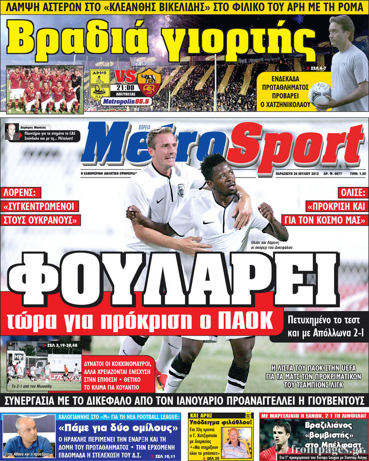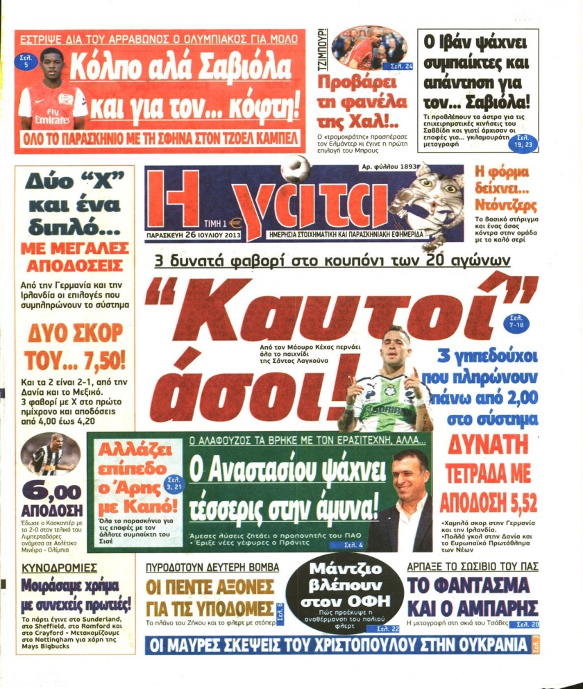 Οι αθλητικές εφημερίδες Enikos Newsroom 08:52, Παρασκευή 26 Ιουλίου 2013 Media Οι αθλητικές εφημερίδες Διαβάστε τα πρωτοσέλιδα των αθλητικών εφημερίδων. ΑΘΛΗΤΙΚΕΣ ΕΦΗΜΕΡΙΔΕΣ ΕΦΗΜΕΡΙΔΕΣ ΠΡΩΤΟΣΕΛΙΔΑ Μοιράσου το: σχολίασε κι εσύ (0 σχόλια) Ακολουθήστε το enikos.gr στο Google News και μάθετε πρώτοι όλες τις ειδήσεις Δείτε όλες τις τελευταίες ειδήσεις από την Ελλάδα και τον Κόσμο στο enikos.gr Ειδήσεις Ροή Ειδήσεων 4 ώρες πριν Αυξάνουν την πίεση προς την κυβέρνηση οι αγρότες: Κλείνουν παρακαμπτήριους και ανοίγουν διόδια – Τι θα γίνει τις γιορτές 3 ώρες πριν ΟΠΕΚΕΠΕ: Προφυλακιστέος ο φερόμενος αρχηγός και ο λογιστής της εγκληματικής οργάνωσης 4 ώρες πριν Φοινικούντα: Το Σάββατο απολογείται ο 30χρονος γιος γνωστού επιχειρηματία της Πλάκας που παραδόθηκε – Όσα είπε στους αστυνομικούς και ο ρόλος του στο έγκλημα 4 ώρες πριν Μπορεί ο Μαδούρο να αντέξει τον αποκλεισμό του Τραμπ; Τι θα χρειαστεί η Ουάσινγκτον για να τον ανατρέψει 3 ώρες πριν ΑΕΚ – Κραϊόβα 3-2: Επική ανατροπή και πρόκριση στους «16» του Conference League η Ένωση 4 ώρες πριν Αρχαιολόγοι ανακάλυψαν ρωμαϊκά τεχνουργήματα από μια πόλη που δεν υπήρξε ποτέ – Τα τρία εντυπωσιακά κτίρια και ο αμφορέας με τις… σαρδέλες 5 ώρες πριν Ύπνος: Η απλή βραδινή ρουτίνα για να προστατεύσετε τα μαλλιά σας από το κρύο κατά τη διάρκεια του χειμώνα 6 ώρες πριν Manifesting: Πώς να συναντήσετε τον σύντροφο της ζωής σας, ανάλογα με τον μήνα γέννησής σας 2 ημέρες πριν 20 χρόνια τα Χριστούγεννα ξεκινούν στα Public με μεγάλη ποικιλία σε δώρα! 19 λεπτά πριν Γιώργος Μαζωνάκης: Αποθεώθηκε στην πρεμιέρα του στην «Ακτή Πειραιώς» λίγες ώρες μετά τις καταγγελίες – «Είμαι αληθινός», είπε με νόημα 35 λεπτά πριν Πόλεμος στην Ουκρανία: Ρωσικά drones έπληξαν την Οδησσό – Μία νεκρή και ζημιές σε ενεργειακές υποδομές 42 λεπτά πριν ΑΕΚ-Κραϊόβα: Τα highlights της μυθικής ανατροπής της «Ένωσης» 57 λεπτά πριν Μιχάλης Χρυσοχοΐδης από την Κωνσταντινούπολη: Κοινές επιχειρήσεις Ελλάδας – Τουρκίας ενάντια στο οργανωμένο έγκλημα 1 ώρα πριν Μάρκο Νίκολιτς: «Είμαι περήφανος για τους παίκτες μου, όποιος αντίπαλος και να έρθει θα προετοιμαστούμε» ENIKOS NETWORK Σε περίοδο αυξημένης δραστηριότητας η γρίπη στην Ελλάδα-Μέτρα προστασίας από τον ΕΟΔΥ Σκέφτεστε συνέχεια συζητήσεις που έχετε κάνει; Τι σημαίνει αυτό, σύμφωνα με ειδικό Στεγαστικό: Τι λέει η ΠΟΜΙΔΑ για τα νέα μέτρα που ανακοίνωσε ο Κυριάκος Μητσοτάκης Λαγκάρντ: Αισιόδοξη για την ανάπτυξη της Ευρωζώνης, αβέβαιη για τον πληθωρισμό Χαρτογραφώντας το «σημείο χωρίς επιστροφή»: Για πρώτη φορά αποκαλύπτεται με λεπτομέρεια το ακανθώδες όριο της ατμόσφαιρας τ... Η Google καταργεί τη λειτουργία «dark web report» – Πώς θα μπορούν οι χρήστες να διαγράφουν τα δεδομένα τους περισσότερα 17:45 , Πέμπτη 18 Δεκεμβρίου 2025 ROUK ZOUK: Εορταστικό επεισόδιο με καλεσμένους τους πρωταγωνιστές του «Γιατί ρε πατέρα» Το Σάββατο 20 Δεκεμβρίου στις 21:00, η Ζέτα Μακρυπούλια υποδέχεται εκλεκτούς ηθοποιούς που όλο... 17:20 , Πέμπτη 18 Δεκεμβρίου 2025 Άγιος έρωτας: Η Χριστίνα εξομολογείται στον πατέρα Νικόλαο, απόψε στις 21:00 στον Alpha Η Νότα αποφασίζει να εκδικηθεί τον Πέτρο και τον Στέφανο, για χάρη του Λούη, όμως τα πράγματα ... 16:50 , Πέμπτη 18 Δεκεμβρίου 2025 Να μ’ αγαπάς: Ζωή και Φωτεινή συμφιλιώνονται ως μάνα με κόρη, απόψε στις 20:00 Η ταυτότητα του Άγγελου αποκαλύπτεται στο νέο επεισόδιο της σειράς “Να μ’ αγαπάς... 15:52 , Πέμπτη 18 Δεκεμβρίου 2025 Το Σπίτι Δίπλα Στο Ποτάμι: Το καθηλωτικό τελευταίο επεισόδιο γ