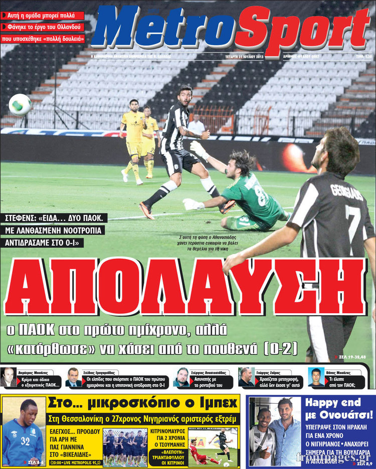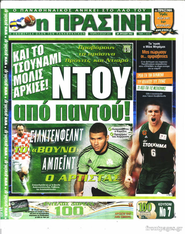 Oι αθλητικές εφημερίδες Enikos Newsroom 08:27, Τετάρτη 31 Ιουλίου 2013 Media Oι αθλητικές εφημερίδες Τα πρωτοσέλιδα των αθλητικών εφημερίδων. ΑΘΛΗΤΙΚΕΣ ΕΦΗΜΕΡΙΔΕΣ ΕΦΗΜΕΡΙΔΕΣ Μοιράσου το: σχολίασε κι εσύ (0 σχόλια) Ακολουθήστε το enikos.gr στο Google News και μάθετε πρώτοι όλες τις ειδήσεις Δείτε όλες τις τελευταίες ειδήσεις από την Ελλάδα και τον Κόσμο στο enikos.gr Ειδήσεις Ροή Ειδήσεων 3 ώρες πριν Ακίλα Σάλεχ: «Άκυρο» το τουρκολιβυκό μνημόνιο λέει ο πρόεδρος της λιβυκής Βουλής – Ανοίγει ο διάλογος με Ελλάδα, Αίγυπτο και Τουρκία 7 ώρες πριν Αγρότες: Την Τρίτη η απόφαση για διάλογο ή κλιμάκωση των κινητοποιήσεών τους – Πώς χαρακτηρίζουν τις ανακοινώσεις Τσιάρα και οι επόμενες κινήσεις 7 ώρες πριν Τραμπ για Ουκρανία: «Είμαστε πιο κοντά σε συμφωνία από ποτέ» – «Πολυεθνική δύναμη» προτείνουν οι Ευρωπαίοι 7 ώρες πριν Κυψέλη: Η 16χρονη που μαχαίρωσε την 14χρονη είχε συλληφθεί 3 φορές στο παρελθόν – Έβριζε καθηγητές, έβαζε φωτιές σε κάδους και εκβίαζε συμμαθητές της 6 ώρες πριν Τρομοκρατική επίθεση στο Σίδνεϊ: Θλίψη για τα 15 θύματα – Οργή στην εβραϊκή κοινότητα που προειδοποιούσε επί δύο χρόνια 7 ώρες πριν Επιστήμονες ίσως έλυσαν το μυστήριο γύρω από τα Χόμπιτ – Νέα έρευνα αποκαλύπτει πώς εξαφανίστηκαν 8 ώρες πριν Ύπνος: Η αρχαία μορφή άσκησης που αποδεικνύεται αποτελεσματική στην αντιμετώπιση της αϋπνίας, σύμφωνα με μελέτη 9 ώρες πριν Αριθμολογία: Ο τυχερός σας αριθμός, ανάλογα με τον μήνα γέννησής σας 10 ώρες πριν Πώς να μην μαραίνονται γρήγορα τα κομμένα λουλούδια: Το λάθος στην τοποθέτηση του βάζου που πρέπει να αποφεύγετε 4 λεπτά πριν Οι αθλητικές εφημερίδες 16/12/2025 9 λεπτά πριν Οι πολιτικές εφημερίδες 16/12/2025 16 λεπτά πριν Τα ζώδια σήμερα, Τρίτη 16 Δεκεμβρίου: Ιχθύες, δεν χρειάζεται να έχετε όλες τις απαντήσεις 24 λεπτά πριν Εφημερεύοντα φαρμακεία σε Αθήνα και Θεσσαλονίκη (16/12) 31 λεπτά πριν Οκτώ νεκροί σε πλήγματα των ΗΠΑ κατά τριών σκαφών που φέρεται να μετέφεραν ναρκωτικά στον Ανατολικό Ειρηνικό ENIKOS NETWORK Πότε το χρόνιο ροχαλητό να αποτελέσει ένδειξη κινδύνου για την καρδιά; Τι λένε οι ειδικοί Μάριος Θεμιστοκλέους: Το ΕΣΥ ενισχύεται, εκσυγχρονίζεται, αλλάζει ΕΒΕΠ για αγροτικές κινητοποιήσεις: Κάθε επιπλέον εβδομάδα προσθέτει περίπου 200 εκατ. ευρώ ζημιά Τι προβλέπει το νομοσχέδιο του υπουργείου Εθνικής Άμυνας – Oι αλλαγές στους μισθούς Σύγχρονος Νοστράδαμος: Προειδοποιεί για «μεγάλο γεγονός» τους επόμενους μήνες που θα συγκλονίσει τη Βρετανία και τον κόσμο Τεστ παρατηρητικότητας: Μπορείτε να βρείτε τις 3 διαφορές στις εικόνες με έναν πιγκουίνο σε 14 δευτερόλεπτα περισσότερα 05:43 , Τρίτη 16 Δεκεμβρίου 2025 Οι αθλητικές εφημερίδες 16/12/2025 Διαβάστε τα πρωτοσέλιδα από τις αθλητικές εφημερίδες, σήμερα 16/12/2025. 05:38 , Τρίτη 16 Δεκεμβρίου 2025 Οι πολιτικές εφημερίδες 16/12/2025 Διαβάστε τα πρωτοσέλιδα από τις πολιτικές εφημερίδες, σήμερα 16/12/2025. 21:35 , Δευτέρα 15 Δεκεμβρίου 2025 Το Σπίτι Δίπλα Στο Ποτάμι: Η Ιουλία και ο Φωκάς μετακομίζουν στη Ρόδο – Δύο νέοι χαρακτήρες μπαίνουν στη σειρά Δύο νέοι, κομβικοί χαρακτήρες κάνουν την εμφάνισή τους αυτή την εβδομάδα στην αγαπημένη σειρά ... 19:46 , Δευτέρα 15 Δεκεμβρίου 2025 Άγιος έρωτας: Η Χριστίνα λέει την αλήθεια στον Αντρέα Ο Βασίλης δέχεται επίθεση από τους συμμαθητές του, η Αναστασία είναι συντετριμμένη με την απώλ... ΤΕΛΕΥΤΑΙΕΣ ΕΙΔΗΣΕΙΣ 4 λεπτά πριν Οι αθλητικές εφημερίδες 16/12/2025 9 λεπτά πριν Οι πολιτικές εφημερίδες 16/12/2025 16 λεπτά πριν Τα ζώδια σήμερα, Τρίτη 