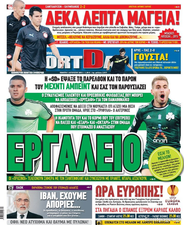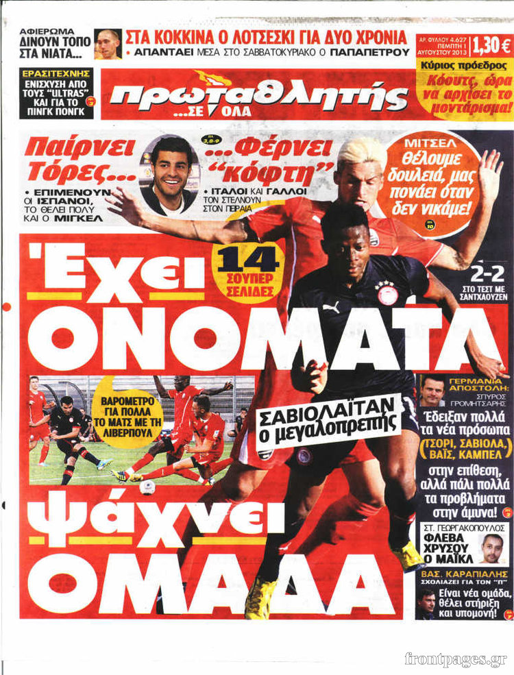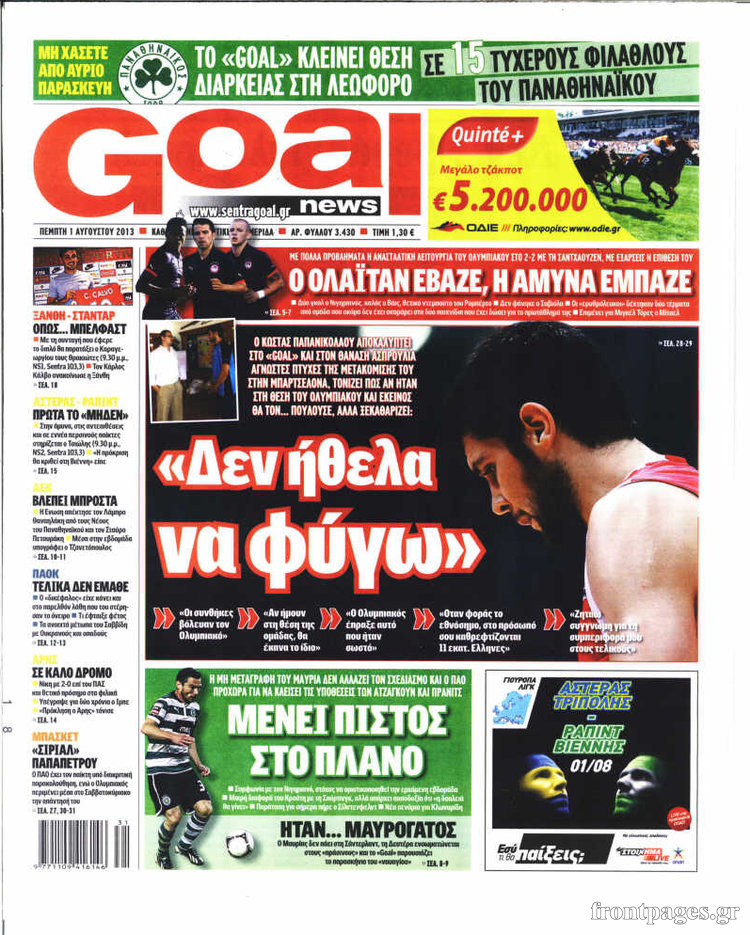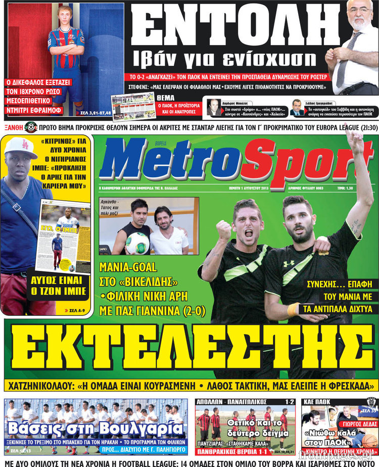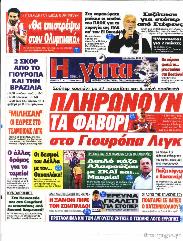 Οι αθλητικές εφημερίδες Enikos Newsroom 09:01, Πέμπτη 01 Αυγούστου 2013 Media Οι αθλητικές εφημερίδες ΑΘΛΗΤΙΚΕΣ ΕΦΗΜΕΡΙΔΕΣ ΕΦΗΜΕΡΙΔΕΣ Μοιράσου το: σχολίασε κι εσύ (0 σχόλια) Ακολουθήστε το enikos.gr στο Google News και μάθετε πρώτοι όλες τις ειδήσεις Δείτε όλες τις τελευταίες ειδήσεις από την Ελλάδα και τον Κόσμο στο enikos.gr Ειδήσεις Ροή Ειδήσεων 3 ώρες πριν Ακίλα Σάλεχ: «Άκυρο» το τουρκολιβυκό μνημόνιο λέει ο πρόεδρος της λιβυκής Βουλής – Ανοίγει ο διάλογος με Ελλάδα, Αίγυπτο και Τουρκία 7 ώρες πριν Αγρότες: Την Τρίτη η απόφαση για διάλογο ή κλιμάκωση των κινητοποιήσεών τους – Πώς χαρακτηρίζουν τις ανακοινώσεις Τσιάρα και οι επόμενες κινήσεις 7 ώρες πριν Τραμπ για Ουκρανία: «Είμαστε πιο κοντά σε συμφωνία από ποτέ» – «Πολυεθνική δύναμη» προτείνουν οι Ευρωπαίοι 7 ώρες πριν Κυψέλη: Η 16χρονη που μαχαίρωσε την 14χρονη είχε συλληφθεί 3 φορές στο παρελθόν – Έβριζε καθηγητές, έβαζε φωτιές σε κάδους και εκβίαζε συμμαθητές της 6 ώρες πριν Τρομοκρατική επίθεση στο Σίδνεϊ: Θλίψη για τα 15 θύματα – Οργή στην εβραϊκή κοινότητα που προειδοποιούσε επί δύο χρόνια 7 ώρες πριν Επιστήμονες ίσως έλυσαν το μυστήριο γύρω από τα Χόμπιτ – Νέα έρευνα αποκαλύπτει πώς εξαφανίστηκαν 8 ώρες πριν Ύπνος: Η αρχαία μορφή άσκησης που αποδεικνύεται αποτελεσματική στην αντιμετώπιση της αϋπνίας, σύμφωνα με μελέτη 9 ώρες πριν Αριθμολογία: Ο τυχερός σας αριθμός, ανάλογα με τον μήνα γέννησής σας 10 ώρες πριν Πώς να μην μαραίνονται γρήγορα τα κομμένα λουλούδια: Το λάθος στην τοποθέτηση του βάζου που πρέπει να αποφεύγετε 27 δευτερόλεπτα πριν Οι οικονομικές εφημερίδες 16/12/2025 6 λεπτά πριν Οι αθλητικές εφημερίδες 16/12/2025 11 λεπτά πριν Οι πολιτικές εφημερίδες 16/12/2025 18 λεπτά πριν Τα ζώδια σήμερα, Τρίτη 16 Δεκεμβρίου: Ιχθύες, δεν χρειάζεται να έχετε όλες τις απαντήσεις 27 λεπτά πριν Εφημερεύοντα φαρμακεία σε Αθήνα και Θεσσαλονίκη (16/12) ENIKOS NETWORK Πότε το χρόνιο ροχαλητό να αποτελέσει ένδειξη κινδύνου για την καρδιά; Τι λένε οι ειδικοί Μάριος Θεμιστοκλέους: Το ΕΣΥ ενισχύεται, εκσυγχρονίζεται, αλλάζει ΕΒΕΠ για αγροτικές κινητοποιήσεις: Κάθε επιπλέον εβδομάδα προσθέτει περίπου 200 εκατ. ευρώ ζημιά Τι προβλέπει το νομοσχέδιο του υπουργείου Εθνικής Άμυνας – Oι αλλαγές στους μισθούς Σύγχρονος Νοστράδαμος: Προειδοποιεί για «μεγάλο γεγονός» τους επόμενους μήνες που θα συγκλονίσει τη Βρετανία και τον κόσμο Τεστ παρατηρητικότητας: Μπορείτε να βρείτε τις 3 διαφορές στις εικόνες με έναν πιγκουίνο σε 14 δευτερόλεπτα περισσότερα 05:48 , Τρίτη 16 Δεκεμβρίου 2025 Οι οικονομικές εφημερίδες 16/12/2025 Διαβάστε τα πρωτοσέλιδα από τις οικονομικές εφημερίδες, σήμερα 16/12/2025. 05:43 , Τρίτη 16 Δεκεμβρίου 2025 Οι αθλητικές εφημερίδες 16/12/2025 Διαβάστε τα πρωτοσέλιδα από τις αθλητικές εφημερίδες, σήμερα 16/12/2025. 05:38 , Τρίτη 16 Δεκεμβρίου 2025 Οι πολιτικές εφημερίδες 16/12/2025 Διαβάστε τα πρωτοσέλιδα από τις πολιτικές εφημερίδες, σήμερα 16/12/2025. 21:35 , Δευτέρα 15 Δεκεμβρίου 2025 Το Σπίτι Δίπλα Στο Ποτάμι: Η Ιουλία και ο Φωκάς μετακομίζουν στη Ρόδο – Δύο νέοι χαρακτήρες μπαίνουν στη σειρά Δύο νέοι, κομβικοί χαρακτήρες κάνουν την εμφάνισή τους αυτή την εβδομάδα στην αγαπημένη σειρά ... ΤΕΛΕΥΤΑΙΕΣ ΕΙΔΗΣΕΙΣ 6 λεπτά πριν Οι αθλητικές εφημερίδες 16/12/2025 11 λεπτά πριν Οι πολιτικές εφημερίδες 16/12/2025 18 λεπτά πριν Τα ζώδια σήμερα, Τρίτη 16 Δεκεμβρίου: Ιχθύες, δεν... 27 λεπτά πριν Εφημερεύοντα φαρμακεία σε Αθήνα και Θεσσαλονίκη (16/12) 33 λεπτά πριν Οκτώ νεκροί σε πλήγματα των ΗΠΑ κατά τριών σκαφών π