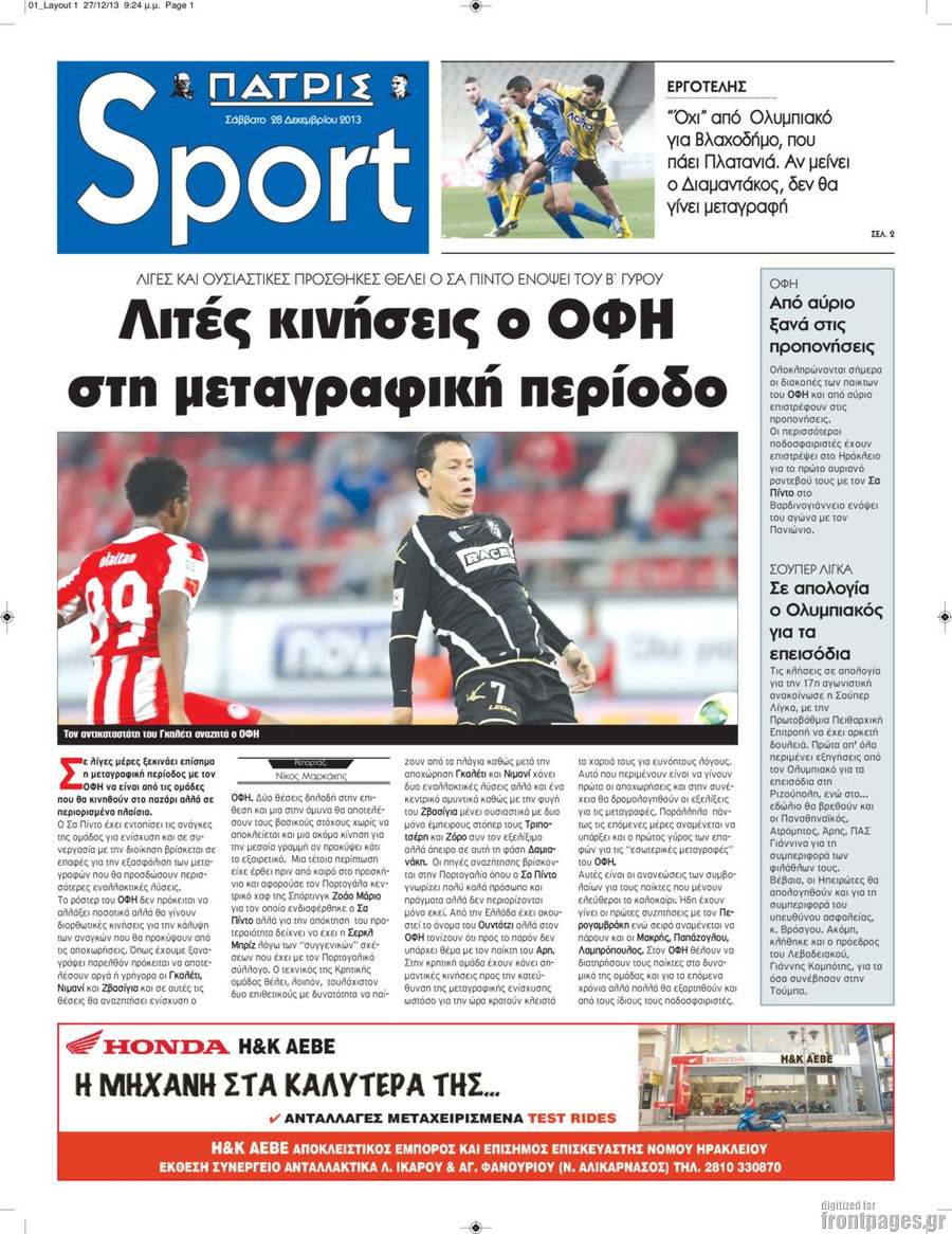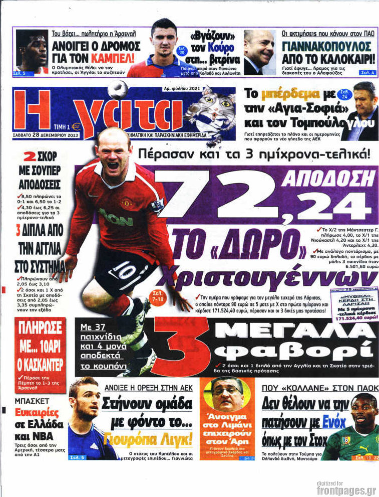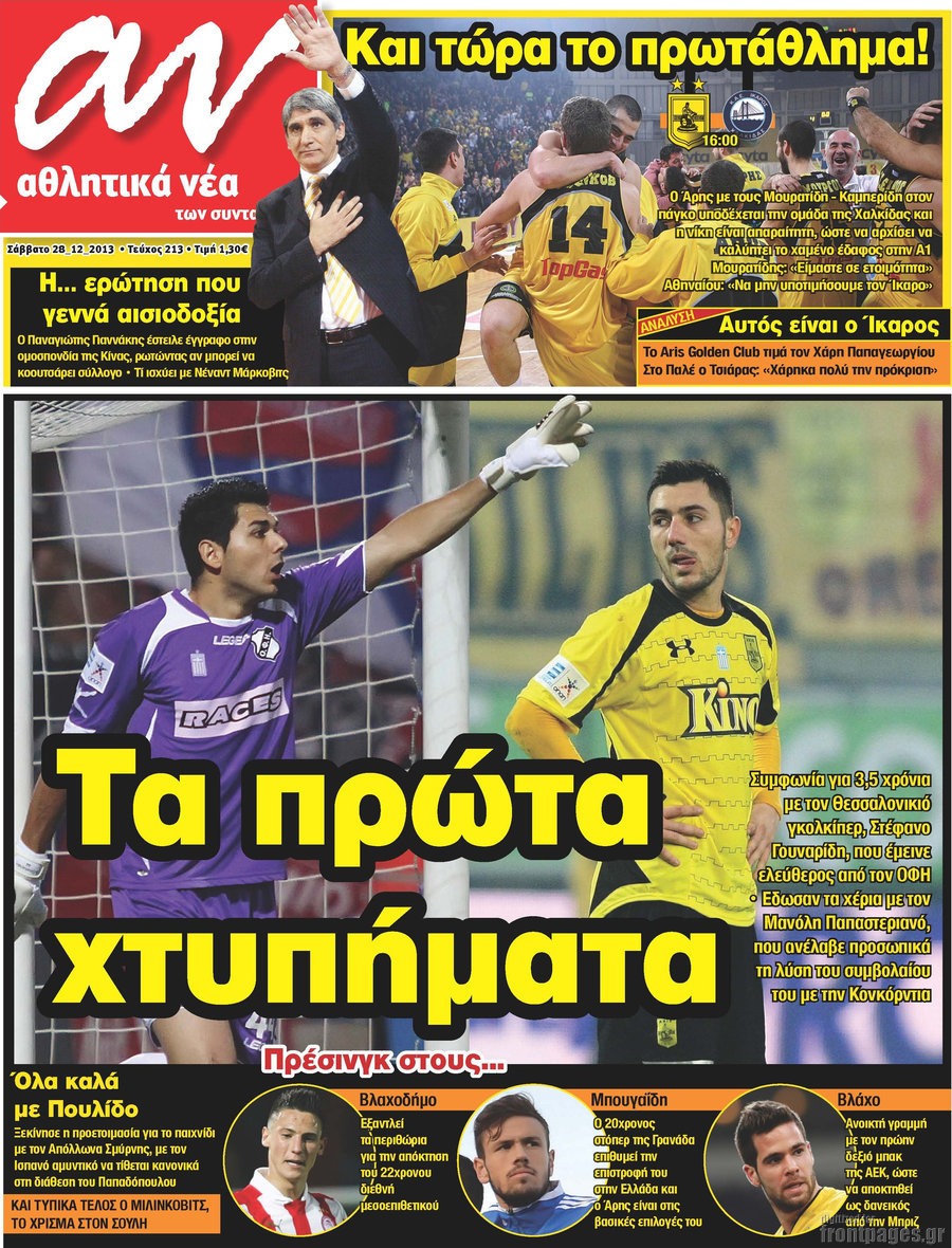 Οι αθλητικές εφημερίδες Enikos Newsroom 09:35, Σάββατο 28 Δεκεμβρίου 2013 Media Οι αθλητικές εφημερίδες ΑΘΛΗΤΙΚΕΣ ΕΦΗΜΕΡΙΔΕΣ ΕΦΗΜΕΡΙΔΕΣ ΠΡΩΤΟΣΕΛΙΔΑ Μοιράσου το: σχολίασε κι εσύ (0 σχόλια) Ακολουθήστε το enikos.gr στο Google News και μάθετε πρώτοι όλες τις ειδήσεις Δείτε όλες τις τελευταίες ειδήσεις από την Ελλάδα και τον Κόσμο στο enikos.gr Ειδήσεις Ροή Ειδήσεων 1 ώρα πριν Κλιμακώνουν από σήμερα τις κινητοποιήσεις οι αγρότες: Νέα μπλόκα, κλείσιμο παρακαμπτηρίων και άνοιγμα διοδίων – Το νέο μήνυμα Μητσοτάκη 36 λεπτά πριν Ευρωπαϊκό Συμβούλιο: Όλες οι λεπτομέρειες για το δάνειο των 90 δισ. ευρώ στην Ουκρανία – Τα συμπεράσματα της Συνόδου Κορυφής 2 ώρες πριν Συντάξεις: Οι κερδισμένοι και οι χαμένοι από τις αυξήσεις – Αναλυτικός οδηγός και παραδείγματα 2 ώρες πριν Θανατηφόρο τροχαίο στη Νέα Φιλαδέλφεια: Νεκρός 27χρονος οδηγός μηχανής ύστερα από σύγκρουση με τρόλεϊ 39 λεπτά πριν Peter Greene: Ο πρωταγωνιστής του «Pulp Fiction» είχε τραύματα στο σώμα του όταν βρέθηκε νεκρός στο αιματοβαμμένο διαμέρισμα 3 ώρες πριν Κρύα χέρια και πόδια: Γιατρός εξηγεί ποια είναι η αίτια και πότε πρέπει να ανησυχήσετε 4 ώρες πριν Τα ζώδια σήμερα, Παρασκευή 19 Δεκεμβρίου: Τοξότες, με τη Νέα Σελήνη έρχεται η προσωπική ανανέωσή σας 1 ώρα πριν Πώς το αρχαίο DNA του κυνηγού – συλλέκτη ξεκλείδωσε τα μυστικά της μακροζωίας 2 ημέρες πριν 20 χρόνια τα Χριστούγεννα ξεκινούν στα Public με μεγάλη ποικιλία σε δώρα! 3 λεπτά πριν Ηρώ Κυριακάκη: Η σπάνια δημόσια εμφάνιση της 94χρονης ηθοποιού – «Είναι τόσο μεγάλη η συγκίνησή μου» 9 λεπτά πριν Πούτιν: Σήμερα η μαραθώνια συνέντευξη Τύπου για τον ετήσιο απολογισμό του – Τι αναμένεται να πει 14 λεπτά πριν Ο σύζυγός της συμπεριφέρεται όπως το παιδί τους – «Χρησιμοποιεί αστείες δικαιολογίες για να μην κάνει δουλειές και να ξοδεύει λεφτά» 18 λεπτά πριν Νίκος Παππάς: Δρομολογήθηκαν οι διαδικασίες για τη διαγραφή του από τον ΣΥΡΙΖΑ μέσα στις γιορτές 23 λεπτά πριν Τραγωδία στη Θεσσαλονίκη: Νεκρός 19χρονος που έπεσε από μπαλκόνι τετάρτου ορόφου ENIKOS NETWORK 24χρονη που έπασχε από καρκίνο του εντέρου αγνόησε 3 βασικά συμπτώματα: «Μην κάνετε το ίδιο λάθος με μένα» Άνοια: Ειδικοί προειδοποιούν για 5 κοινές συνήθειες που μπορεί να αυξήσουν τον κίνδυνο Συντάξεις: Οι κερδισμένοι και οι χαμένοι από τις αυξήσεις – Αναλυτικός οδηγός Στεγαστικό: Τι λέει η ΠΟΜΙΔΑ για τα νέα μέτρα που ανακοίνωσε ο Κυριάκος Μητσοτάκης Χαρτογραφώντας το «σημείο χωρίς επιστροφή»: Για πρώτη φορά αποκαλύπτεται με λεπτομέρεια το ακανθώδες όριο της ατμόσφαιρας τ... Η Google καταργεί τη λειτουργία «dark web report» – Πώς θα μπορούν οι χρήστες να διαγράφουν τα δεδομένα τους περισσότερα 08:00 , Παρασκευή 19 Δεκεμβρίου 2025 Την Κυριακή με τη Realnews: Δωροεπιταγή 10€ Δωροεπιταγή αξίας 10€ για αγορές άνω των 60€ από τα πολυκαταστήματα FactoryOutlet H προσφορά ι... 05:48 , Παρασκευή 19 Δεκεμβρίου 2025 Οι οικονομικές εφημερίδες 19/12/2025 Διαβάστε τα πρωτοσέλιδα από τις οικονομικές εφημερίδες, σήμερα 19/12/2025. 05:43 , Παρασκευή 19 Δεκεμβρίου 2025 Οι αθλητικές εφημερίδες 19/12/2025 Διαβάστε τα πρωτοσέλιδα από τις αθλητικές εφημερίδες, σήμερα 19/12/2025. 05:38 , Παρασκευή 19 Δεκεμβρίου 2025 Οι πολιτικές εφημερίδες 19/12/2025 Διαβάστε τα πρωτοσέλιδα από τις πολιτικές εφημερίδες, σήμερα 19/12/2025. ΤΕΛΕΥΤΑΙΕΣ ΕΙΔΗΣΕΙΣ 3 λεπτά πριν Ηρώ Κυριακάκη: Η σπάνια δημόσια εμφάνιση της 94χρονης... 9 λεπτά πριν Πούτιν: Σήμερα η μαραθώνια συνέντευξη Τύπου για τον... 14 λεπτά πριν Ο σύζυγός της συμπεριφέρεται όπως το παιδί του