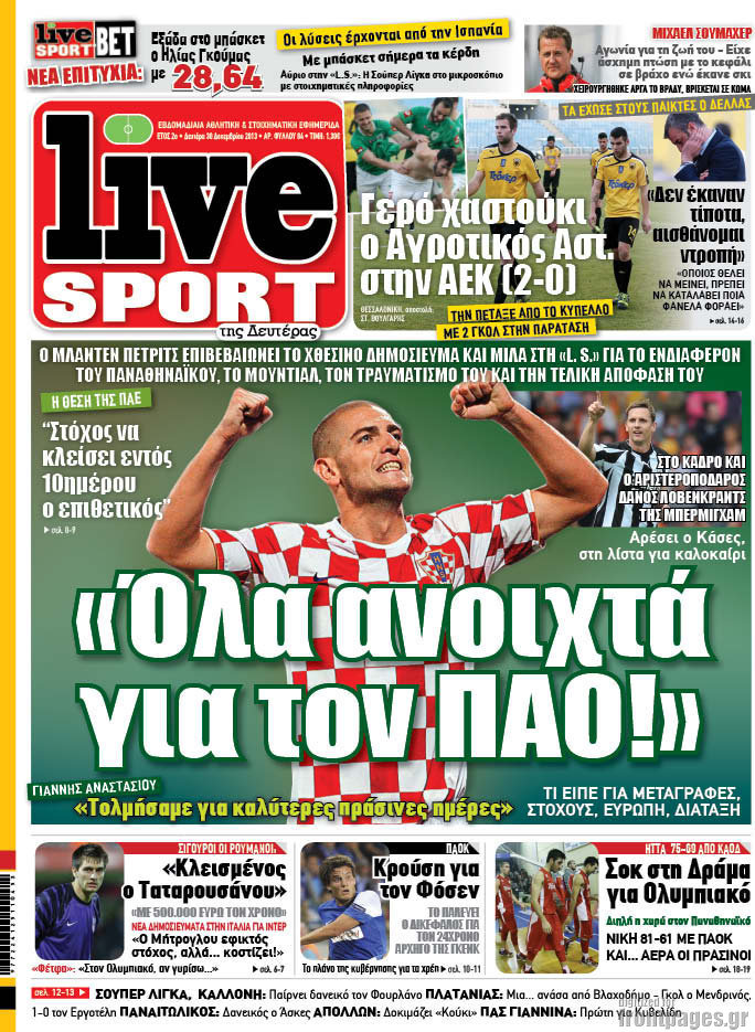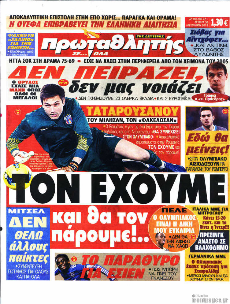 Οι αθλητικές εφημερίδες Enikos Newsroom 08:43, Δευτέρα 30 Δεκεμβρίου 2013 Media Οι αθλητικές εφημερίδες ΑΘΛΗΤΙΚΕΣ ΕΦΗΜΕΡΙΔΕΣ ΕΦΗΜΕΡΙΔΕΣ ΠΡΩΤΟΣΕΛΙΔΑ Μοιράσου το: σχολίασε κι εσύ (0 σχόλια) Ακολουθήστε το enikos.gr στο Google News και μάθετε πρώτοι όλες τις ειδήσεις Δείτε όλες τις τελευταίες ειδήσεις από την Ελλάδα και τον Κόσμο στο enikos.gr Ειδήσεις Ροή Ειδήσεων 5 λεπτά πριν Φοροδιαφυγή: Ποιοι φορολογούμενοι κινδυνεύουν να πληρώσουν «τσουχτερά» πρόστιμα 8 ώρες πριν Εκτός ευρωομάδας ΣΥΡΙΖΑ ο Νίκος Παππάς μετά την επίθεση στον δημοσιογράφο Νίκο Γιαννόπουλο – Η μήνυση και οι νέες δηλώσεις 9 ώρες πριν «Αγριεύουν» οι αγρότες: «Δεν συντρέχει λόγος συνάντησης με τον πρωθυπουργό» – Ώρα αποφάσεων στη σύσκεψη της Πέμπτης 9 ώρες πριν Κυψέλη: Χωρίς την οικογένειά της δίπλα της απολογήθηκε η 16χρονη – «Της είχε επιτεθεί κάποιος για να την βιάσει, φοβήθηκε και κυκλοφορούσε με μαχαίρι» 8 ώρες πριν Politico: Το πρόβλημα της Ευρώπης δεν είναι το Βέλγιο αλλά ο Ντόναλντ Τραμπ 1 ώρα πριν Καούρα: Το μπαχαρικό που είναι «εξίσου αποτελεσματικό» με την ομεπραζόλη, σύμφωνα με ειδικούς 2 ώρες πριν Τα ζώδια σήμερα, Πέμπτη 18 Δεκεμβρίου: Λέοντες, η καρδιά σας θέλει να εκφραστεί 8 ώρες πριν Μυστήριο με τεράστιες κυκλικές πέτρες 200 κιλών – Ανακαλύφθηκαν τυχαία κατά τη διάρκεια οδικών έργων και κανείς δεν ξέρει από πού προέρχονται 22 ώρες πριν 20 χρόνια τα Χριστούγεννα ξεκινούν στα Public με μεγάλη ποικιλία σε δώρα! 2 λεπτά πριν Καιρός: Ηλιοφάνεια σήμερα με παροδικές νεφώσεις – Αναλυτική πρόγνωση ανά περιοχή 5 λεπτά πριν Φοροδιαφυγή: Ποιοι φορολογούμενοι κινδυνεύουν να πληρώσουν «τσουχτερά» πρόστιμα 17 λεπτά πριν Εορτολόγιο: Ποιοι γιορτάζουν σήμερα 18 Δεκεμβρίου 28 λεπτά πριν Επιχειρήσεις: Έρχονται νέα μέτρα φορολογικών ελαφρύνσεων – Τα σχέδια για την προκαταβολή φόρου και το τέλος επιτηδεύματος 36 λεπτά πριν ΗΠΑ: Οριστική άρση κυρώσεων κατά της Συρίας – Ανοίγει ο δρόμος για επενδύσεις ENIKOS NETWORK Μπορείτε να εντοπίσετε το ποντικάκι που κρύβεται πίσω από όλα τα μανιτάρια; Μόνο όσοι έχουν τα μάτια γερακιού μπορούν να λύ... Το «λουλούδι σκαντζόχοιρος» που μπορεί να ενισχύσει το ανοσοποιητικό, να μειώσει τη φλεγμονή και να ρυθμίσει το σάκχαρο Φοροδιαφυγή: Ποιοι φορολογούμενοι κινδυνεύουν να πληρώσουν «τσουχτερά» πρόστιμα ΕΛΣΤΑΤ: Τι δείχνουν τα νέα στοιχεία για τις ηλεκτρονικές παραγγελίες των επιχειρήσεων Χαρτογραφώντας το «σημείο χωρίς επιστροφή»: Για πρώτη φορά αποκαλύπτεται με λεπτομέρεια το ακανθώδες όριο της ατμόσφαιρας τ... Η Google καταργεί τη λειτουργία «dark web report» – Πώς θα μπορούν οι χρήστες να διαγράφουν τα δεδομένα τους περισσότερα 05:48 , Πέμπτη 18 Δεκεμβρίου 2025 Οι οικονομικές εφημερίδες 18/12/2025 Διαβάστε τα πρωτοσέλιδα από τις οικονομικές εφημερίδες, σήμερα 18/12/2025. 05:43 , Πέμπτη 18 Δεκεμβρίου 2025 Οι αθλητικές εφημερίδες 18/12/2025 Διαβάστε τα πρωτοσέλιδα από τις αθλητικές εφημερίδες, σήμερα 18/12/2025. 05:38 , Πέμπτη 18 Δεκεμβρίου 2025 Οι πολιτικές εφημερίδες 18/12/2025 Διαβάστε τα πρωτοσέλιδα από τις πολιτικές εφημερίδες, σήμερα 18/12/2025. 05:22 , Πέμπτη 18 Δεκεμβρίου 2025 Το Ποντίκι σήμερα Πέμπτη 18/12/2025 Διαβάστε το πρωτοσέλιδο της εφημερίδας «Το Ποντίκι» σήμερα 18/12/2025. ΤΕΛΕΥΤΑΙΕΣ ΕΙΔΗΣΕΙΣ 2 λεπτά πριν Καιρός: Ηλιοφάνεια σήμερα με παροδικές νεφώσεις –... 5 λεπτά πριν Φοροδιαφυγή: Ποιοι φορολογούμενοι κινδυνεύουν να... 17 λεπτά πριν Εορτολόγιο: Ποιοι γιορτάζουν σήμερα 18 Δεκεμβρίου 28 λεπτά πριν Επιχειρήσεις: Έρχονται νέα μέτρα φορολογι