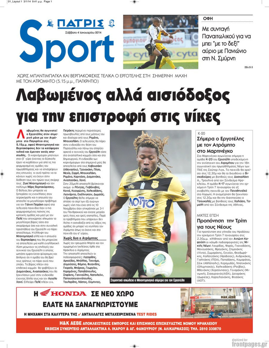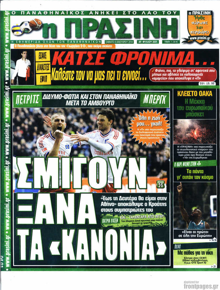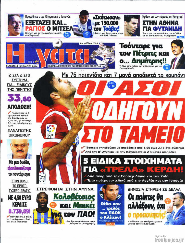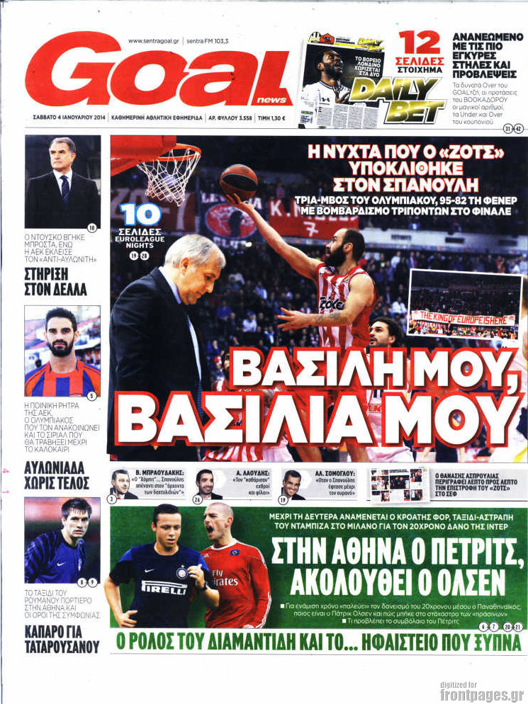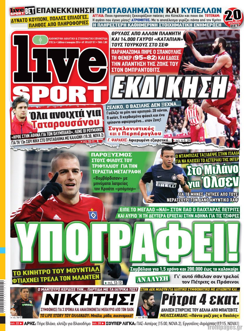 Οι αθλητικές εφημερίδες Enikos Newsroom 08:58, Σάββατο 04 Ιανουαρίου 2014 Media Οι αθλητικές εφημερίδες ΑΘΛΗΤΙΚΕΣ ΕΦΗΜΕΡΙΔΕΣ ΕΦΗΜΕΡΙΔΕΣ Μοιράσου το: σχολίασε κι εσύ (0 σχόλια) Ακολουθήστε το enikos.gr στο Google News και μάθετε πρώτοι όλες τις ειδήσεις Δείτε όλες τις τελευταίες ειδήσεις από την Ελλάδα και τον Κόσμο στο enikos.gr Ειδήσεις Ροή Ειδήσεων 3 ώρες πριν Εκτός ευρωομάδας ΣΥΡΙΖΑ ο Νίκος Παππάς μετά την επίθεση στον δημοσιογράφο Νίκο Γιαννόπουλο – Η μήνυση και οι νέες δηλώσεις 4 ώρες πριν «Αγριεύουν» οι αγρότες: «Δεν συντρέχει λόγος συνάντησης με τον πρωθυπουργό» – Ώρα αποφάσεων στη σύσκεψη της Πέμπτης 4 ώρες πριν Κυψέλη: Χωρίς την οικογένειά της δίπλα της απολογήθηκε η 16χρονη – «Της είχε επιτεθεί κάποιος για να την βιάσει, φοβήθηκε και κυκλοφορούσε με μαχαίρι» 3 ώρες πριν Politico: Το πρόβλημα της Ευρώπης δεν είναι το Βέλγιο αλλά ο Ντόναλντ Τραμπ 5 ώρες πριν Αλεξανδρούπολη: Πολυοργανική ανεπάρκεια λόγω υποσιτισμού η αιτία θανάτου του 3χρονου αγοριού 3 ώρες πριν Μυστήριο με τεράστιες κυκλικές πέτρες 200 κιλών – Ανακαλύφθηκαν τυχαία κατά τη διάρκεια οδικών έργων και κανείς δεν ξέρει από πού προέρχονται 4 ώρες πριν Ύπνος: Ειδικός εξηγεί τον πραγματικό λόγο που ξυπνάτε στις 4 τα ξημερώματα – Ο ρόλος των ορμονών και του κιρκάδιου ρυθμού 5 ώρες πριν Αριθμολογία: Οι άνθρωποι που έχουν γεννηθεί αυτές τις 4 ημερομηνίες, είναι τρυφεροί και αγαπούν ανιδιοτελώς 17 ώρες πριν 20 χρόνια τα Χριστούγεννα ξεκινούν στα Public με μεγάλη ποικιλία σε δώρα! 9 λεπτά πριν Ρωσία: Ουκρανικές δυνάμεις έπληξαν πλοίο στο λιμάνι του Ροστόφ – Αναφορές για θύματα 24 λεπτά πριν Βρυξέλλες: Νυχτερινό… μπλόκο αγροτών μπροστά από το κτίριο της Ευρωπαϊκής Επιτροπής – Πάνω από 100 τρακτέρ απέκλεισαν την λεωφόρο 40 λεπτά πριν Euroleague: Απρόσμενη ήττα για την Μονακό του Βασίλη Σπανούλη – Η βαθμολογία μετά το τέλος της 16ης αγωνιστικής 55 λεπτά πριν Μουντιάλ 2026: Η νέα ταξιδιωτική απαγόρευση του Ντόναλντ Τραμπ πλήττει (και) τους οπαδούς Σενεγάλης – Ακτής Ελεφαντοστού 1 ώρα πριν Κυριάκος Μητσοτάκης: Στις Βρυξέλλες για την Σύνοδο Κορυφής ΕΕ και Δυτικών Βαλκανίων – Δείτε φωτογραφίες ENIKOS NETWORK Αϋπνία: Το κόλπο που θα σας βοηθήσει να κοιμηθείτε απόψε – Είναι απλό και έχει αποτέλεσμα 2,6 εκατομμύρια πολίτες έχουν ήδη εμβολιαστεί κατά της γρίπης ΕΛΣΤΑΤ: Τι δείχνουν τα νέα στοιχεία για τις ηλεκτρονικές παραγγελίες των επιχειρήσεων ΚΕΠΕ: Οι 3 διακριτές συμβολές των ΜμΕ και της μεταποίησης στην ελληνική οικονομία Χαρτογραφώντας το «σημείο χωρίς επιστροφή»: Για πρώτη φορά αποκαλύπτεται με λεπτομέρεια το ακανθώδες όριο της ατμόσφαιρας τ... Η Google καταργεί τη λειτουργία «dark web report» – Πώς θα μπορούν οι χρήστες να διαγράφουν τα δεδομένα τους περισσότερα 22:24 , Τετάρτη 17 Δεκεμβρίου 2025 Το Σπίτι Δίπλα Στο Ποτάμι: Σε κίνδυνο η υγεία του Απόστολου – Τι θα δούμε απόψε “Το Σπίτι Δίπλα στο Ποτάμι” ξετυλίγει το νήμα της ζωής των πέντε αδελφών με καταισ... 21:14 , Τετάρτη 17 Δεκεμβρίου 2025 Παιχνίδια Εκδίκησης: Θα καταφέρει ο Χρήστος να κλονίσει την εμπιστοσύνη της Μάγιας απέναντι στον Άγη; Τα «Παιχνίδια Εκδίκησης» έρχονται απόψε στις 22:30, στον Αντ1, με το τελευταίο επεισόδιο της χ... 20:57 , Τετάρτη 17 Δεκεμβρίου 2025 Άγιος Έρωτας: Η Χλόη καταθέτει εναντίον του πατέρα της και ο Χάρης αποκαλύπτει στον Κλεάνθη ότι δεν είναι ο βιολογικός του πατέρας. Γεμάτο αποκαλύψεις είναι το νέο επεισόδιο της σειράς “Άγιος Έρωτας” απόψε στις 21:... 20:15 , Τετάρτη 17 Δεκεμβρίου
