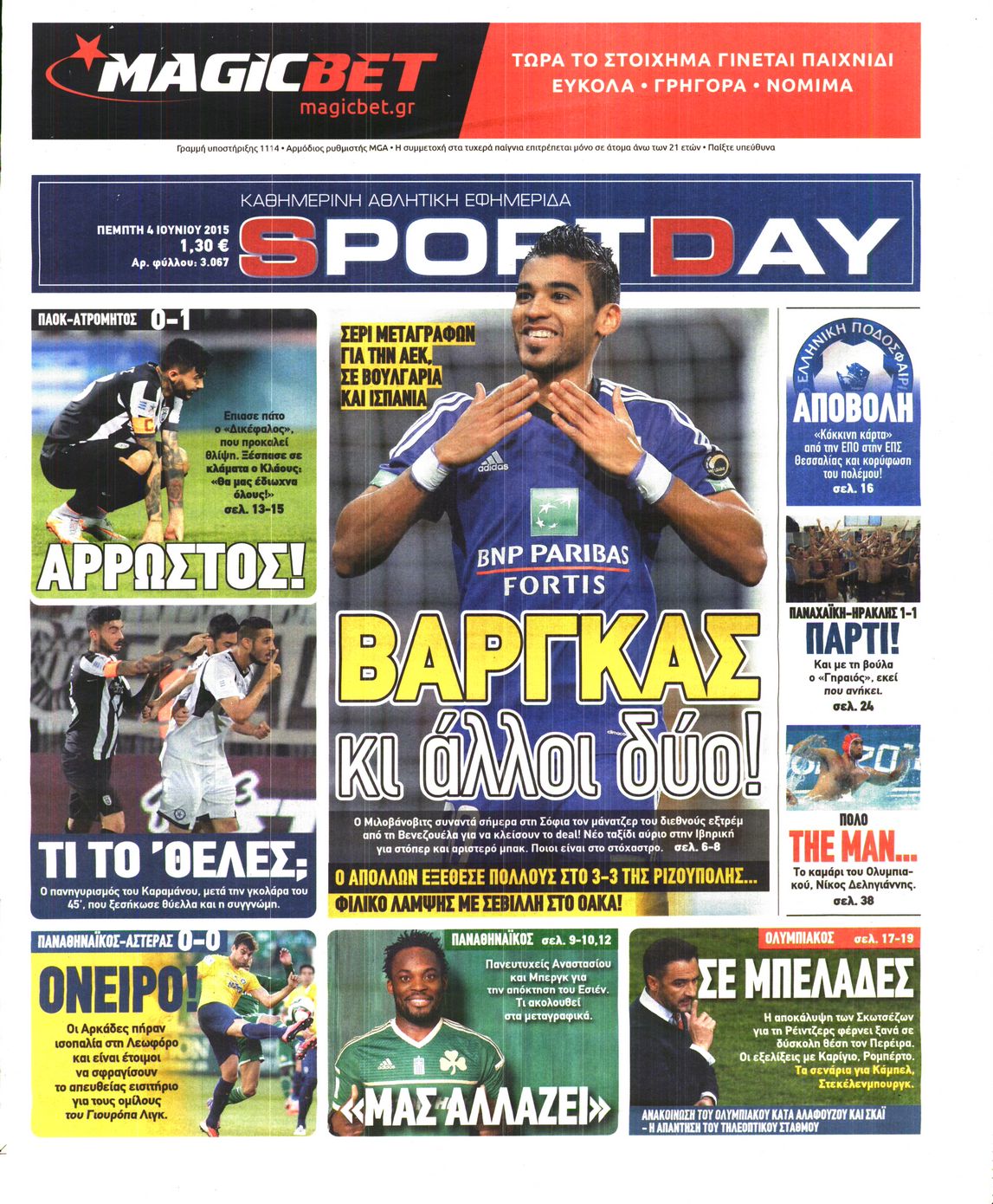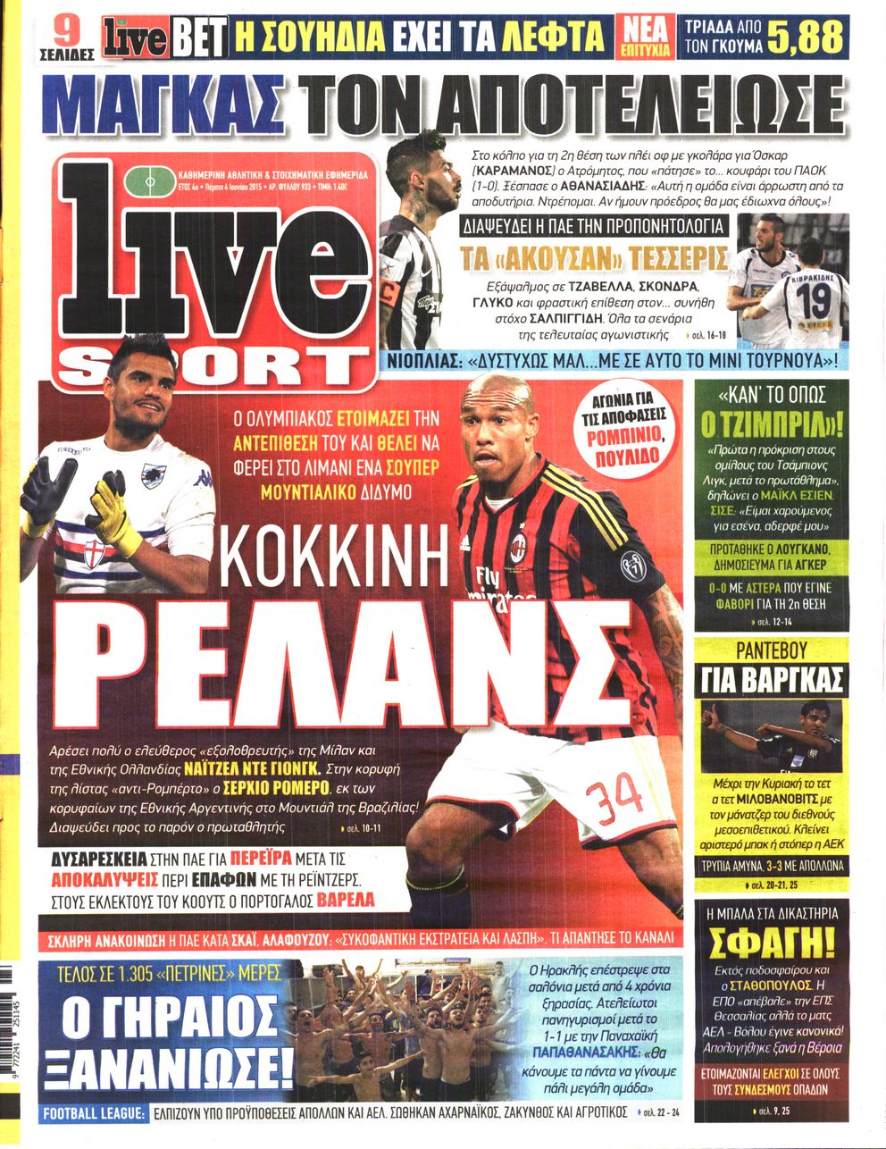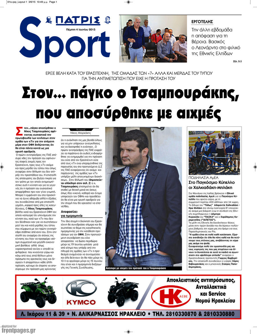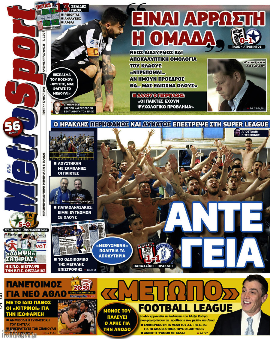 Οι αθλητικές εφημερίδες 4/6/2015 Enikos Newsroom 07:05, Πέμπτη 04 Ιουνίου 2015 Media Διαβάστε τα σημερινά πρωτοσέλιδα των αθλητικών εφημερίδων: ΑΘΛΗΤΙΚΕΣ ΕΦΗΜΕΡΙΔΕΣ ΠΡΩΤΟΣΕΛΙΔΑ Μοιράσου το: σχολίασε κι εσύ (0 σχόλια) Ακολουθήστε το enikos.gr στο Google News και μάθετε πρώτοι όλες τις ειδήσεις Δείτε όλες τις τελευταίες ειδήσεις από την Ελλάδα και τον Κόσμο στο enikos.gr Ειδήσεις Ροή Ειδήσεων 2 ώρες πριν Αγρότες: Πολύωροι αποκλεισμοί στα τελωνεία Προμαχώνα, Εξοχής, Ευζώνων και Νίκης – Κλείνουν τον κόμβο Φιλώτα οι παραγωγοί στη Δυτική Μακεδονία 1 ώρα πριν Νίκος Παππάς: Ζητώ συγγνώμη για αυτό το επεισόδιο – Δεν τον γρονθοκόπησα 3 ώρες πριν Ευρωπαϊκό Συμβούλιο: Όλες οι λεπτομέρειες για το δάνειο των 90 δισ. ευρώ στην Ουκρανία – Τα συμπεράσματα της Συνόδου Κορυφής 3 ώρες πριν Αίγιο: 22χρονη κατήγγειλε ότι έπεσε θύμα βιασμού και ληστείας από συγγενικά της πρόσωπα 1 ώρα πριν Τρομακτικό βίντεο: Η στιγμή της έκρηξης στο τζετ που μετέφερε τον οδηγό του NASCAR, Γκρεγκ Μπιφλ και την οικογένειά του 2 ώρες πριν Αλλαγή σελίδας για 3 ζώδια – «Μία δύσκολη περίοδος φτάνει στο τέλος της» 2 ημέρες πριν 20 χρόνια τα Χριστούγεννα ξεκινούν στα Public με μεγάλη ποικιλία σε δώρα! 3 ώρες πριν Ο σύζυγός της συμπεριφέρεται όπως το παιδί τους – «Χρησιμοποιεί αστείες δικαιολογίες για να μην κάνει δουλειές και να ξοδεύει λεφτά» 56 λεπτά πριν Γεμάτος νεροχύτης; 5 σοβαρές ευθύνες που «φοβίζουν» όσους αφήνουν άπλυτα πιάτα 4 λεπτά πριν Γονείς για πρώτη φορά ο Πιτ Ντέιβιντσον και η Έλσι Χιούιτ 9 λεπτά πριν Πούτιν: Η Ουκρανία δεν είναι έτοιμη για ειρηνευτικές συνομιλίες – ο ρωσικός στρατός προελαύνει σε όλα τα μέτωπα 15 λεπτά πριν Βουλή: Αποσύρθηκε προσθήκη για έργα του Ταμειακού Προγράμματος Ανάπτυξης της Γ.Γ. Αθλητισμού μετά τις αντιδράσεις της αντιπολίτευσης 20 λεπτά πριν Νορβηγία: Η πριγκίπισσα Μέτε-Μάριτ πιθανότατα θα υποβληθεί σε μεταμόσχευση πνεύμονα 32 λεπτά πριν Ενίσχυση δρομολογίων του Μετρό τις Κυριακές 21 και 28 Δεκεμβρίου – Κυκλοφοριακές ρυθμίσεις αύριο στη Γραμμή 7 του τραμ λόγω εορταστικών εκδηλώσεων ENIKOS NETWORK Κίνδυνος παραπλάνησης από διαφημίσεις οδοντικών εμφυτευμάτων Καρκίνος του πνεύμονα: Έως 8.000 ζωές μπορούν να σωθούν με την έγκαιρη διάγνωση Επιδόματα και παροχές από τον ΟΠΕΚΑ: Τι πιστώνεται σήμερα στους τραπεζικούς λογαριασμούς Απειλή για τον Προϋπολογισμό τα ληξιπρόθεσμα χρέη των ιδιωτών προς την εφορία – Τι δείχνουν τα στοιχεία Χαρτογραφώντας το «σημείο χωρίς επιστροφή»: Για πρώτη φορά αποκαλύπτεται με λεπτομέρεια το ακανθώδες όριο της ατμόσφαιρας τ... Η Google καταργεί τη λειτουργία «dark web report» – Πώς θα μπορούν οι χρήστες να διαγράφουν τα δεδομένα τους περισσότερα 08:00 , Παρασκευή 19 Δεκεμβρίου 2025 Την Κυριακή με τη Realnews: Δωροεπιταγή 10€ Δωροεπιταγή αξίας 10€ για αγορές άνω των 60€ από τα πολυκαταστήματα FactoryOutlet H προσφορά ι... 05:48 , Παρασκευή 19 Δεκεμβρίου 2025 Οι οικονομικές εφημερίδες 19/12/2025 Διαβάστε τα πρωτοσέλιδα από τις οικονομικές εφημερίδες, σήμερα 19/12/2025. 05:43 , Παρασκευή 19 Δεκεμβρίου 2025 Οι αθλητικές εφημερίδες 19/12/2025 Διαβάστε τα πρωτοσέλιδα από τις αθλητικές εφημερίδες, σήμερα 19/12/2025. 05:38 , Παρασκευή 19 Δεκεμβρίου 2025 Οι πολιτικές εφημερίδες 19/12/2025 Διαβάστε τα πρωτοσέλιδα από τις πολιτικές εφημερίδες, σήμερα 19/12/2025. ΤΕΛΕΥΤΑΙΕΣ ΕΙΔΗΣΕΙΣ 4 λεπτά πριν Γονείς για πρώτη φορά ο Πιτ Ντέιβιντσον και η Έλσι... 9 λεπτά πριν Πούτιν: Η Ουκρανία δεν είναι έτοιμη για ειρηνευτικές... 15 λεπτά πριν Βουλή: Αποσύρθηκε προσθ