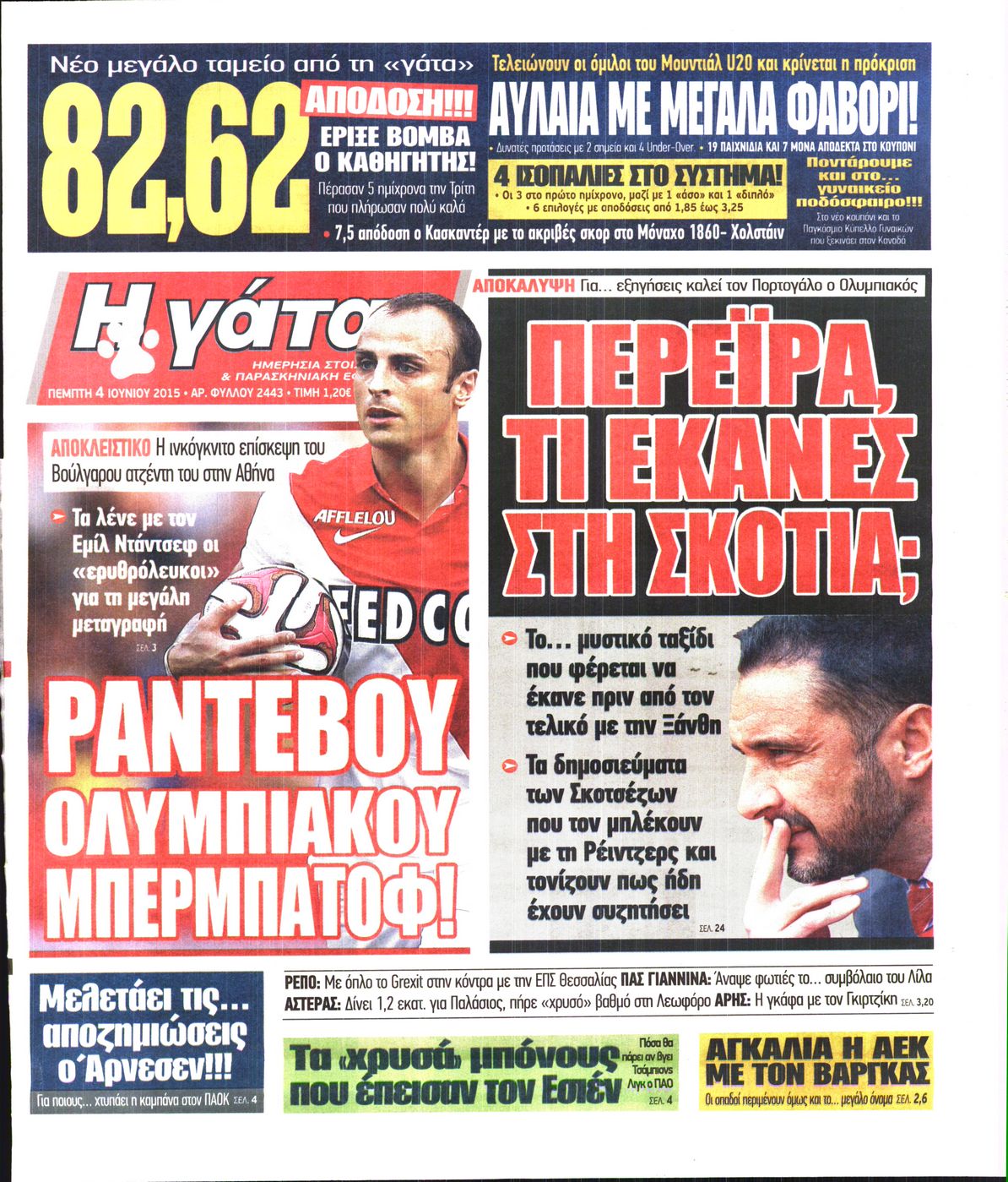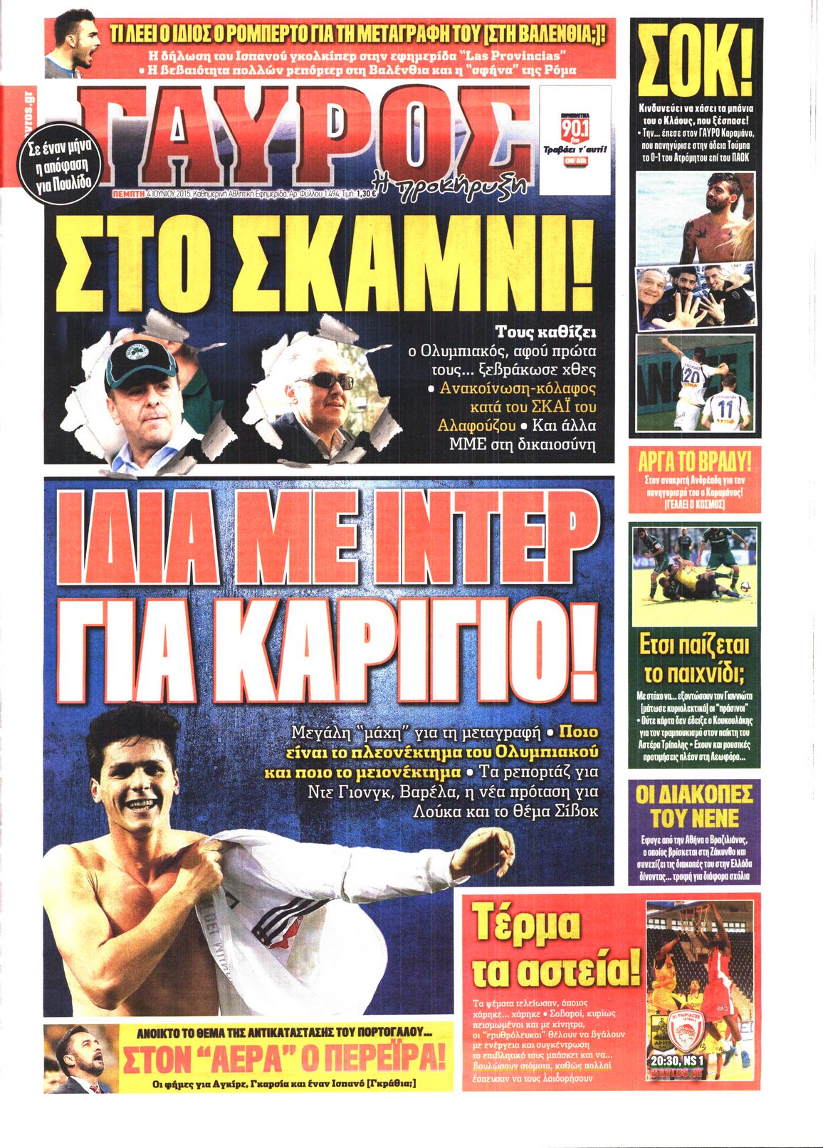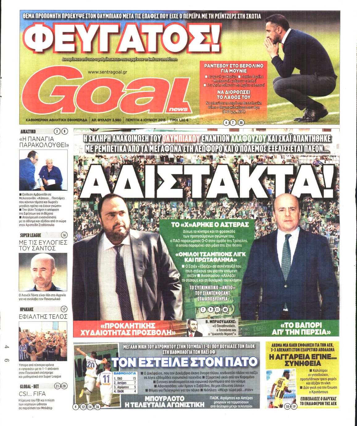 Οι αθλητικές εφημερίδες 4/6/2015 Enikos Newsroom 07:05, Πέμπτη 04 Ιουνίου 2015 Media Διαβάστε τα σημερινά πρωτοσέλιδα των αθλητικών εφημερίδων: ΑΘΛΗΤΙΚΕΣ ΕΦΗΜΕΡΙΔΕΣ ΠΡΩΤΟΣΕΛΙΔΑ Μοιράσου το: σχολίασε κι εσύ (0 σχόλια) Ακολουθήστε το enikos.gr στο Google News και μάθετε πρώτοι όλες τις ειδήσεις Δείτε όλες τις τελευταίες ειδήσεις από την Ελλάδα και τον Κόσμο στο enikos.gr Ειδήσεις Ροή Ειδήσεων 2 ώρες πριν Αγρότες: Πολύωροι αποκλεισμοί στα τελωνεία Προμαχώνα, Εξοχής, Ευζώνων και Νίκης – Κλείνουν τον κόμβο Φιλώτα οι παραγωγοί στη Δυτική Μακεδονία 1 ώρα πριν Νίκος Παππάς: Ζητώ συγγνώμη για αυτό το επεισόδιο – Δεν τον γρονθοκόπησα 3 ώρες πριν Ευρωπαϊκό Συμβούλιο: Όλες οι λεπτομέρειες για το δάνειο των 90 δισ. ευρώ στην Ουκρανία – Τα συμπεράσματα της Συνόδου Κορυφής 3 ώρες πριν Αίγιο: 22χρονη κατήγγειλε ότι έπεσε θύμα βιασμού και ληστείας από συγγενικά της πρόσωπα 1 ώρα πριν Τρομακτικό βίντεο: Η στιγμή της έκρηξης στο τζετ που μετέφερε τον οδηγό του NASCAR, Γκρεγκ Μπιφλ και την οικογένειά του 2 ώρες πριν Αλλαγή σελίδας για 3 ζώδια – «Μία δύσκολη περίοδος φτάνει στο τέλος της» 2 ημέρες πριν 20 χρόνια τα Χριστούγεννα ξεκινούν στα Public με μεγάλη ποικιλία σε δώρα! 3 ώρες πριν Ο σύζυγός της συμπεριφέρεται όπως το παιδί τους – «Χρησιμοποιεί αστείες δικαιολογίες για να μην κάνει δουλειές και να ξοδεύει λεφτά» 56 λεπτά πριν Γεμάτος νεροχύτης; 5 σοβαρές ευθύνες που «φοβίζουν» όσους αφήνουν άπλυτα πιάτα 4 λεπτά πριν Γονείς για πρώτη φορά ο Πιτ Ντέιβιντσον και η Έλσι Χιούιτ 9 λεπτά πριν Πούτιν: Η Ουκρανία δεν είναι έτοιμη για ειρηνευτικές συνομιλίες – ο ρωσικός στρατός προελαύνει σε όλα τα μέτωπα 15 λεπτά πριν Βουλή: Αποσύρθηκε προσθήκη για έργα του Ταμειακού Προγράμματος Ανάπτυξης της Γ.Γ. Αθλητισμού μετά τις αντιδράσεις της αντιπολίτευσης 20 λεπτά πριν Νορβηγία: Η πριγκίπισσα Μέτε-Μάριτ πιθανότατα θα υποβληθεί σε μεταμόσχευση πνεύμονα 32 λεπτά πριν Ενίσχυση δρομολογίων του Μετρό τις Κυριακές 21 και 28 Δεκεμβρίου – Κυκλοφοριακές ρυθμίσεις αύριο στη Γραμμή 7 του τραμ λόγω εορταστικών εκδηλώσεων ENIKOS NETWORK Κίνδυνος παραπλάνησης από διαφημίσεις οδοντικών εμφυτευμάτων Καρκίνος του πνεύμονα: Έως 8.000 ζωές μπορούν να σωθούν με την έγκαιρη διάγνωση Επιδόματα και παροχές από τον ΟΠΕΚΑ: Τι πιστώνεται σήμερα στους τραπεζικούς λογαριασμούς Απειλή για τον Προϋπολογισμό τα ληξιπρόθεσμα χρέη των ιδιωτών προς την εφορία – Τι δείχνουν τα στοιχεία Χαρτογραφώντας το «σημείο χωρίς επιστροφή»: Για πρώτη φορά αποκαλύπτεται με λεπτομέρεια το ακανθώδες όριο της ατμόσφαιρας τ... Η Google καταργεί τη λειτουργία «dark web report» – Πώς θα μπορούν οι χρήστες να διαγράφουν τα δεδομένα τους περισσότερα 08:00 , Παρασκευή 19 Δεκεμβρίου 2025 Την Κυριακή με τη Realnews: Δωροεπιταγή 10€ Δωροεπιταγή αξίας 10€ για αγορές άνω των 60€ από τα πολυκαταστήματα FactoryOutlet H προσφορά ι... 05:48 , Παρασκευή 19 Δεκεμβρίου 2025 Οι οικονομικές εφημερίδες 19/12/2025 Διαβάστε τα πρωτοσέλιδα από τις οικονομικές εφημερίδες, σήμερα 19/12/2025. 05:43 , Παρασκευή 19 Δεκεμβρίου 2025 Οι αθλητικές εφημερίδες 19/12/2025 Διαβάστε τα πρωτοσέλιδα από τις αθλητικές εφημερίδες, σήμερα 19/12/2025. 05:38 , Παρασκευή 19 Δεκεμβρίου 2025 Οι πολιτικές εφημερίδες 19/12/2025 Διαβάστε τα πρωτοσέλιδα από τις πολιτικές εφημερίδες, σήμερα 19/12/2025. ΤΕΛΕΥΤΑΙΕΣ ΕΙΔΗΣΕΙΣ 4 λεπτά πριν Γονείς για πρώτη φορά ο Πιτ Ντέιβιντσον και η Έλσι... 9 λεπτά πριν Πούτιν: Η Ουκρανία δεν είναι έτοιμη για ειρηνευτικές... 15 λεπτά πριν Βουλή: Αποσύρθηκε προσθ
