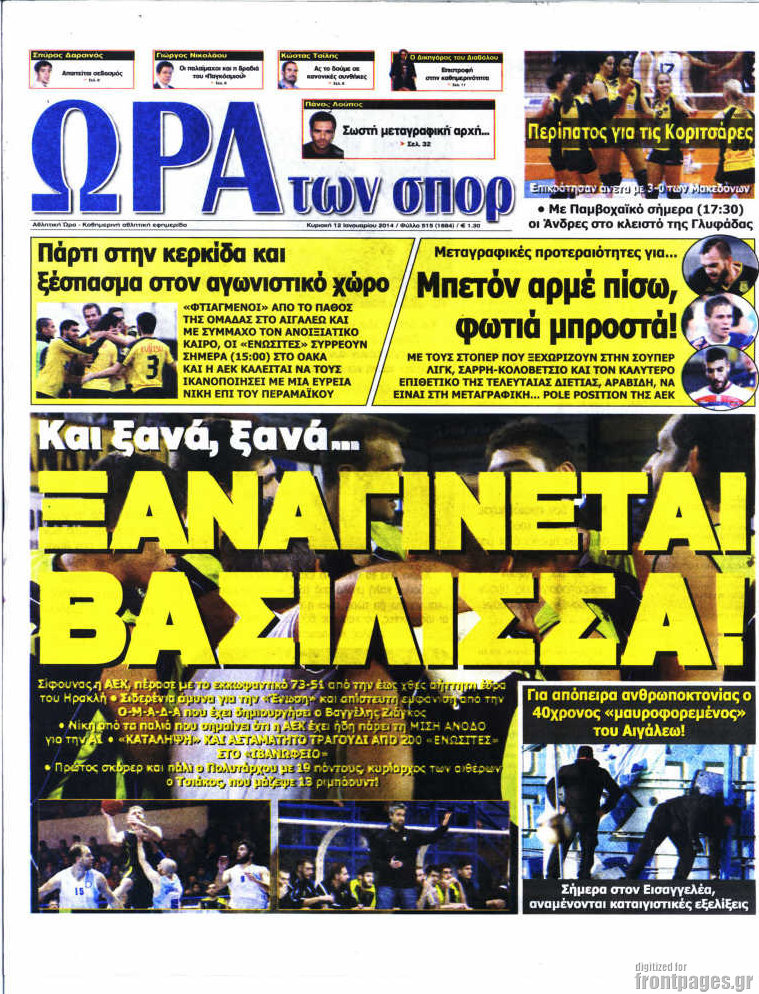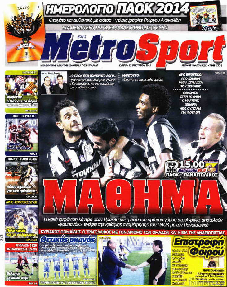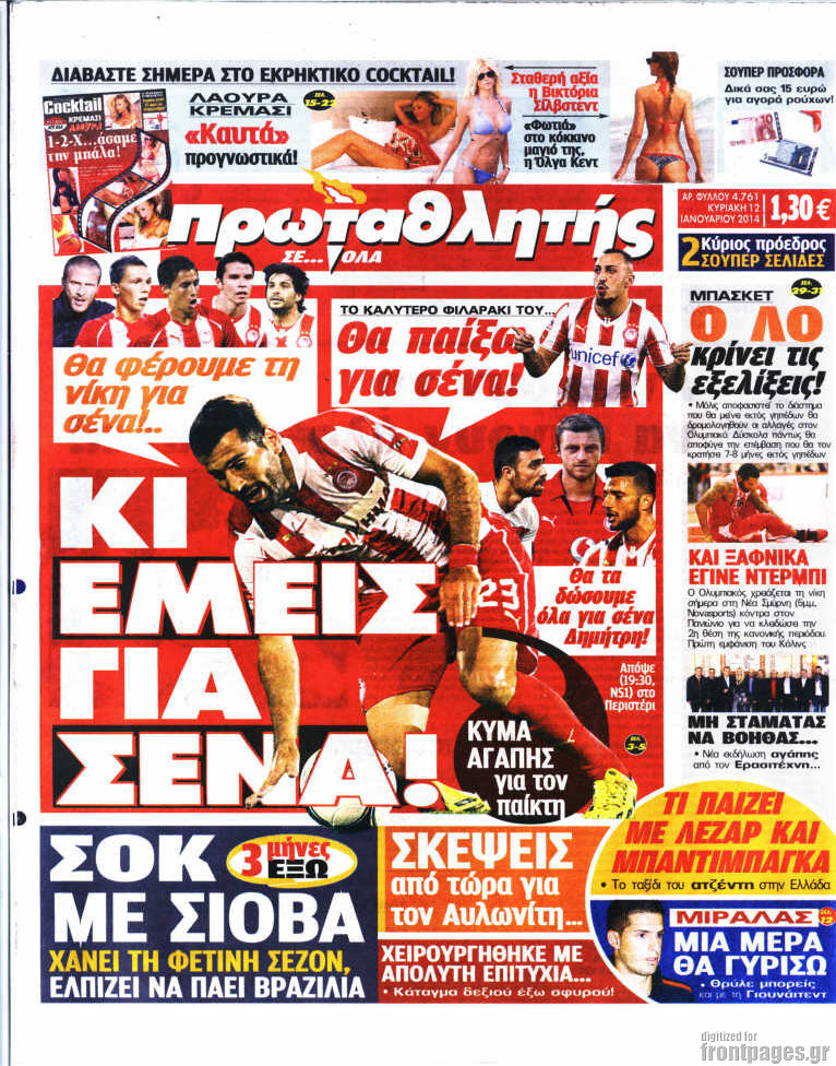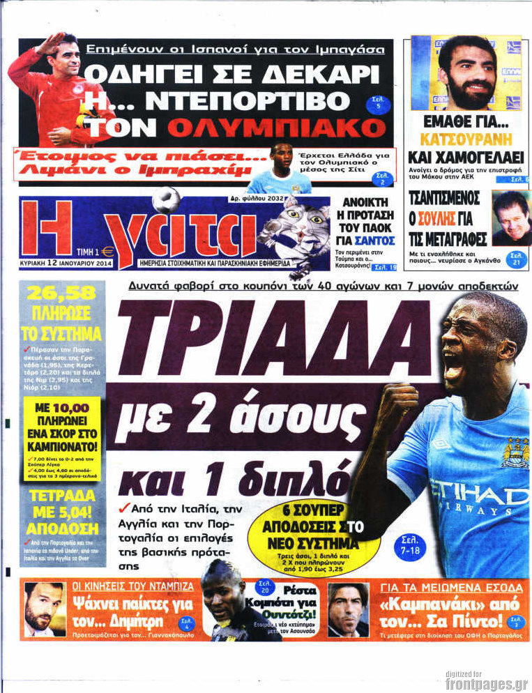 Οι αθλητικές εφημερίδες Enikos Newsroom 08:52, Κυριακή 12 Ιανουαρίου 2014 Media Οι αθλητικές εφημερίδες Διαβάστε τα πρωτοσέλιδα των αθλητικών εφημερίδων: ΑΘΛΗΤΙΚΕΣ ΕΦΗΜΕΡΙΔΕΣ ΕΦΗΜΕΡΙΔΕΣ ΠΡΩΤΟΣΕΛΙΔΑ Μοιράσου το: σχολίασε κι εσύ (0 σχόλια) Ακολουθήστε το enikos.gr στο Google News και μάθετε πρώτοι όλες τις ειδήσεις Δείτε όλες τις τελευταίες ειδήσεις από την Ελλάδα και τον Κόσμο στο enikos.gr Ειδήσεις Ροή Ειδήσεων 2 ώρες πριν Δημοσκόπηση Metron Analysis: Στις 10 μονάδες η διαφορά ΝΔ-ΠΑΣΟΚ, στην 3η θέση η Πλεύση Ελευθερίας – 8 στους 10 στηρίζουν τον αγώνα των αγροτών 6 ώρες πριν Αγρότες: «Όχι στον διάλογο, μας εμπαίζει η κυβέρνηση» – Αποφάσισαν κλιμάκωση των κινητοποιήσεων, τι θα γίνει τα Χριστούγεννα 2 ώρες πριν Νίκος Παππάς στον ΑΝΤ1: «Δεν κρύβομαι – Μετά το συμβάν ακολούθησα κανονικά το πρόγραμμά μου» – ΒΙΝΤΕΟ 3 ώρες πριν Αθήνα: Εξαρθρώθηκε εγκληματική οργάνωση που διακινούσε ναρκωτικά σε μορφή σοκολάτας – Δύο τράπερ ανάμεσα στους 4 συλληφθέντες – ΒΙΝΤΕΟ 1 ώρα πριν Διαμαντής Καραναστάσης: Οδηγούσε υπό την επήρεια αλκοόλ – Του αφαιρέθηκε το δίπλωμα και του επιβλήθηκε πρόστιμο 350 ευρώ 2 ώρες πριν Manifesting: Πώς να συναντήσετε τον σύντροφο της ζωής σας, ανάλογα με τον μήνα γέννησής σας 4 ώρες πριν Γάμος: 11 ψυχρές αλλά ευγενικές φράσεις, που λέει ένας άνδρας όταν σκέφτεται τον χωρισμό 3 ώρες πριν Σφουγγάρισμα: Η συνήθεια που θα σας βοηθήσει να διατηρήσετε το σπίτι σας καθαρό και τακτοποιημένο 2 ημέρες πριν 20 χρόνια τα Χριστούγεννα ξεκινούν στα Public με μεγάλη ποικιλία σε δώρα! 4 λεπτά πριν Ούρσουλα φον ντερ Λάιεν: Μετατίθεται για τον Ιανουάριο η υπογραφή της εμπορικής συμφωνίας «ΕΕ-MERCOSUR» 9 λεπτά πριν Φοινικούντα: Το Σάββατο απολογείται ο 30χρονος γιος γνωστού επιχειρηματία της Πλάκας που παραδόθηκε – Όσα είπε στους αστυνομικούς και ο ρόλος του στο έγκλημα 19 λεπτά πριν Αυξάνουν την πίεση προς την κυβέρνηση οι αγρότες: Κλείνουν παρακαμπτήριους και ανοίγουν διόδια – Τι θα γίνει τις γιορτές 24 λεπτά πριν Ελισάβετ Κωνσταντινίδου για τον Γεράσιμο Μιχελή και την Πόπη Χριστοδούλου: «Ξέρω ότι έχουν πάει απλώς κάπου αλλού, ότι δεν είναι ο θάνατος έτσι όπως τον έχουμε στο μυαλό μας» 28 λεπτά πριν Κρήτη: Νέες αποκαλύψεις για τον 54χρονο που κατηγορείται ότι εξαπάτησε τους γονείς του 33χρονου – Ζητούσε τρίχες αγνοουμένων ENIKOS NETWORK Σε περίοδο αυξημένης δραστηριότητας η γρίπη στην Ελλάδα-Μέτρα προστασίας από τον ΕΟΔΥ Σκέφτεστε συνέχεια συζητήσεις που έχετε κάνει; Τι σημαίνει αυτό, σύμφωνα με ειδικό Λαγκάρντ: Αισιόδοξη για την ανάπτυξη της Ευρωζώνης, αβέβαιη για τον πληθωρισμό ΑΣΕΠ 2ΓΒ/2025: Σήμερα αρχίζει η υποβολή ενστάσεων – Πότε θα βγουν τα οριστικά αποτελέσματα Χαρτογραφώντας το «σημείο χωρίς επιστροφή»: Για πρώτη φορά αποκαλύπτεται με λεπτομέρεια το ακανθώδες όριο της ατμόσφαιρας τ... Η Google καταργεί τη λειτουργία «dark web report» – Πώς θα μπορούν οι χρήστες να διαγράφουν τα δεδομένα τους περισσότερα 17:45 , Πέμπτη 18 Δεκεμβρίου 2025 ROUK ZOUK: Εορταστικό επεισόδιο με καλεσμένους τους πρωταγωνιστές του «Γιατί ρε πατέρα» Το Σάββατο 20 Δεκεμβρίου στις 21:00, η Ζέτα Μακρυπούλια υποδέχεται εκλεκτούς ηθοποιούς που όλο... 17:20 , Πέμπτη 18 Δεκεμβρίου 2025 Άγιος έρωτας: Η Χριστίνα εξομολογείται στον πατέρα Νικόλαο, απόψε στις 21:00 στον Alpha Η Νότα αποφασίζει να εκδικηθεί τον Πέτρο και τον Στέφανο, για χάρη του Λούη, όμως τα πράγματα ... 16:50 , Πέμπτη 18 Δεκεμβρίου 2025 Να μ’ αγαπάς: Ζωή και Φωτεινή συμφιλιώνονται ως μάνα με κόρη, απόψε στις 