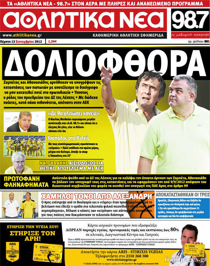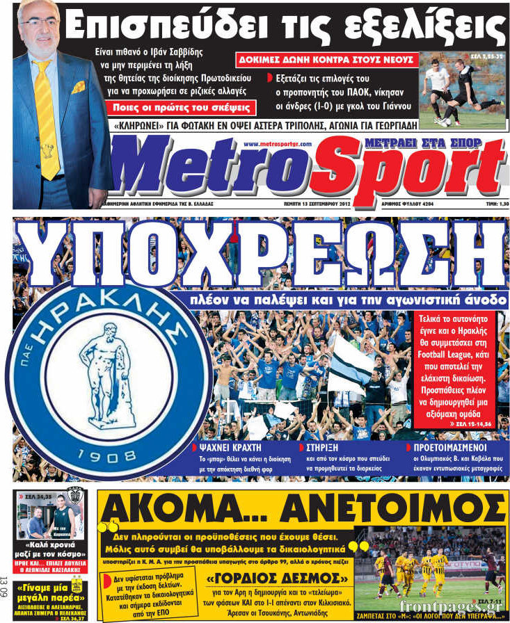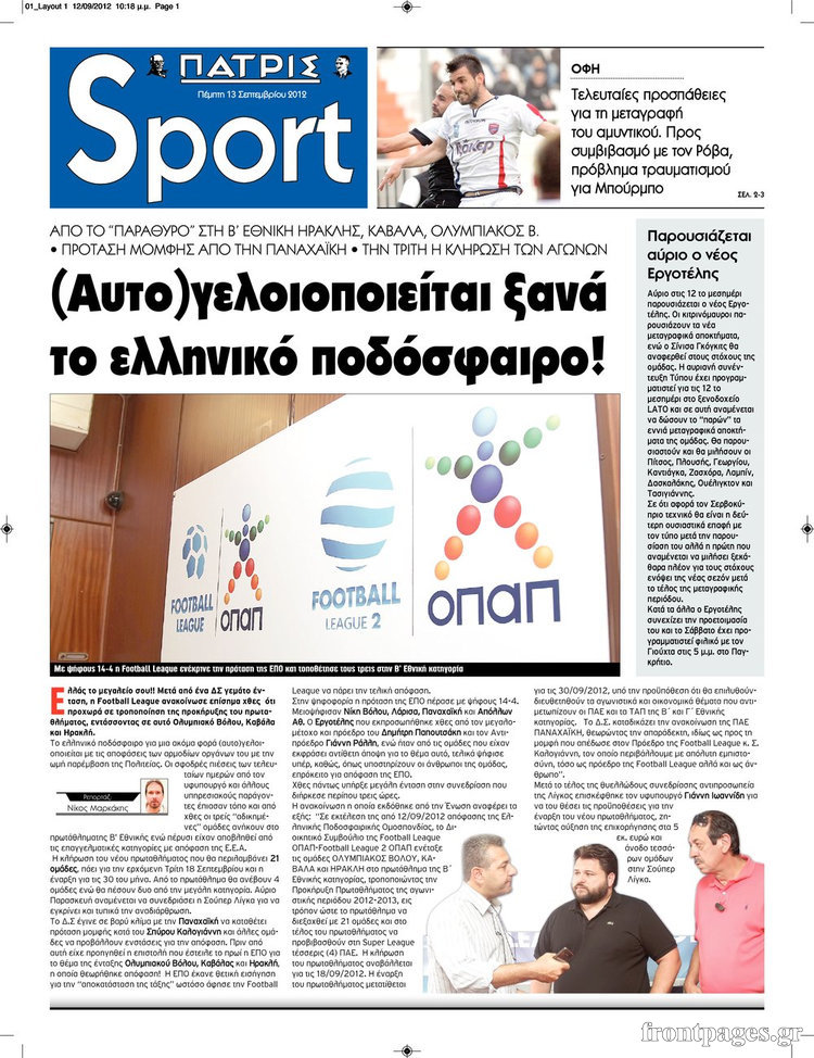 Διαβάστε τα πρωτοσέλιδα των αθλητικών εφημερίδων.