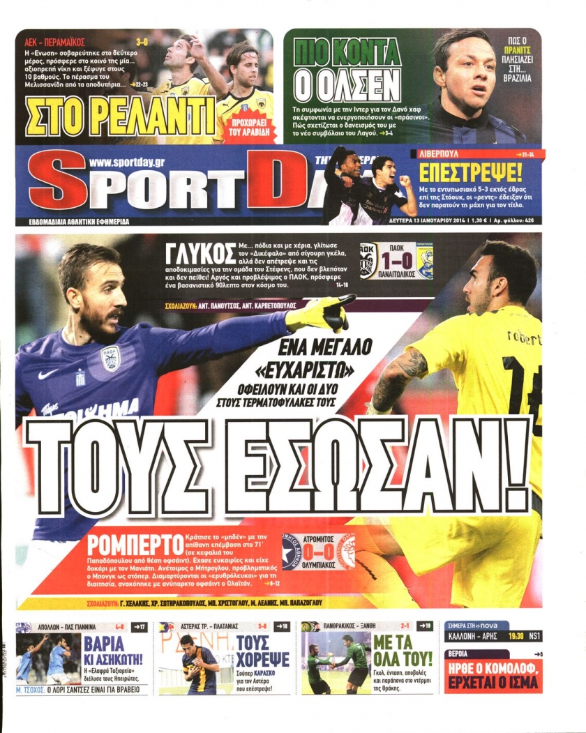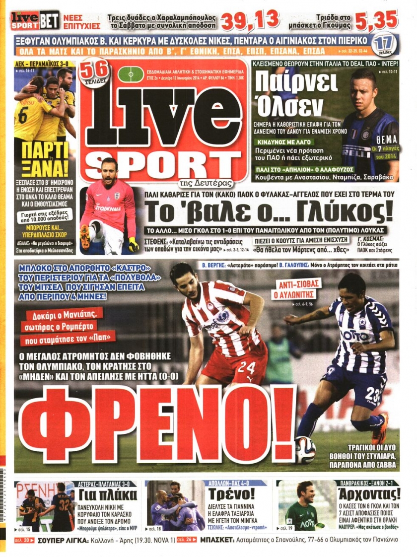 Οι αθλητικές εφημερίδες Enikos Newsroom 08:33, Δευτέρα 13 Ιανουαρίου 2014 Media Οι αθλητικές εφημερίδες Διαβάστε τα πρωτοσέλιδα των αθλητικών εφημερίδων: ΑΘΛΗΤΙΚΕΣ ΕΦΗΜΕΡΙΔΕΣ ΕΦΗΜΕΡΙΔΕΣ ΠΡΩΤΟΣΕΛΙΔΑ Μοιράσου το: σχολίασε κι εσύ (0 σχόλια) Ακολουθήστε το enikos.gr στο Google News και μάθετε πρώτοι όλες τις ειδήσεις Δείτε όλες τις τελευταίες ειδήσεις από την Ελλάδα και τον Κόσμο στο enikos.gr Ειδήσεις Ροή Ειδήσεων 7 ώρες πριν Χριστούγεννα στα μπλόκα: Επιμένουν στις κινητοποιήσεις τους οι αγρότες – Ανοίγουν τα διόδια το Σαββατοκύριακο 7 ώρες πριν Ουκρανία: Η άνευ προηγουμένου επίθεση σε ρωσικό τάνκερ στη Μεσόγειο και το μήνυμα προς στον Πούτιν – Το «μακρύ χέρι» του Κιέβου 7 ώρες πριν Πούτιν: Τα μηνύματα σε Ευρώπη και ΝΑΤΟ από το μαραθώνιο «σόου» του – Η απαίτηση για «σεβασμό» και η ειρήνη «με τους όρους» της Μόσχας 7 ώρες πριν Τραμπ: Δεν αποκλείει την πιθανότητα ενός πολέμου στη Βενεζουέλα – «Ο Μαδούρο ξέρει καλύτερα από τον καθένα τι ακριβώς θέλω» 8 ώρες πριν Συνεχίζει να προκαλεί ο Μίτσκοσκι: «Για μένα το όνομα Μακεδονία είναι ιερό» 7 λεπτά πριν Τα ζώδια σήμερα, Σάββατο 20 Δεκεμβρίου: Παρθένοι, το σύμπαν σας δίνει το κλειδί 7 ώρες πριν Ανακαλύφθηκαν αρχαία χρυσά νομίσματα 2.200 ετών που απεικονίζουν τον θεό Απόλλωνα – Η άγνωστη σύνδεση με τον Φίλιππο Β΄ της Μακεδονίας 8 ώρες πριν Ύπνος: Μια κρυφή κατάσταση του εγκεφάλου πριν από τον ύπνο μπορεί να είναι το “κλειδί” για υψηλή ευφυΐα και δημιουργικότητα 9 ώρες πριν Αριθμολογία: Οι άνθρωποι που έχουν γεννηθεί αυτές τις 4 ημερομηνίες, συχνά παρεξηγούνται – «Η καλοσύνη τους κρύβει τεράστια δύναμη» 7 λεπτά πριν Τα ζώδια σήμερα, Σάββατο 20 Δεκεμβρίου: Παρθένοι, το σύμπαν σας δίνει το κλειδί 12 λεπτά πριν Παιανία: Δυο αυτοκίνητα τυλίχτηκαν στις φλόγες – Συναγερμός στην Πυροσβεστική 16 λεπτά πριν Εφημερεύοντα φαρμακεία σε Αθήνα και Θεσσαλονίκη (20/12) 22 λεπτά πριν Γιώργος Μπαρτζώκας: «Για εμένα σημαίνει πάρα πολλά να ακούω το όνομά μου από τον κόσμο του Ολυμπιακού» 32 λεπτά πριν ΟΗΕ: Το Συμβούλιο Ασφαλείας παρατείνει για έναν χρόνο την εντολή της ειρηνευτικής δύναμης στο Κονγκό ENIKOS NETWORK Το ΕΚΑΒ τιμήθηκε από την Ακαδημία Αθηνών για τα 40 χρόνια προσφοράς του Έχετε πραγματικά μεγάλη καρδιά; 10 χαρακτηριστικά όσων έχουν καλοσύνη Αναστολή μέτρων αναγκαστικής εκτέλεσης για κτηνοτρόφους που πλήττονται από την ευλογιά των αιγοπροβάτων Πλήρης επάρκεια προϊόντων στις λαϊκές της Αττικής, παρά τις αγροτικές κινητοποιήσεις – Τι απαντούν οι πωλητές Χαρτογραφώντας το «σημείο χωρίς επιστροφή»: Για πρώτη φορά αποκαλύπτεται με λεπτομέρεια το ακανθώδες όριο της ατμόσφαιρας τ... Η Google καταργεί τη λειτουργία «dark web report» – Πώς θα μπορούν οι χρήστες να διαγράφουν τα δεδομένα τους περισσότερα 04:20 , Σάββατο 20 Δεκεμβρίου 2025 Αγγελική Νικολούλη: Τα συλλυπητήρια για την απώλεια της Ειρήνης Μαρινάκη Τα συλληπητήρια στον πρόεδρο του Mega, τον Βαγγέλη Μαρινάκη, για την απώλεια της μητέρας του Ε... 02:50 , Σάββατο 20 Δεκεμβρίου 2025 GNTM: Η Ξένια Τσίρκοβα αναδείχθηκε μεγάλη νικήτρια και πήρε τις 50.000 ευρώ – Ποιος βρέθηκε σε απόσταση αναπνοής; Με φαντασμαγορικό τρόπο ολοκληρώθηκε το βράδυ της Παρασκευής ο μεγάλος τελικός του GNTM, μέσα ... 22:42 , Παρασκευή 19 Δεκεμβρίου 2025 Γιώργος Γιαννόπουλος για “Το σόι σου”: “Είναι ευτυχία και ευλογία αυτή η σειρά” «Είναι ευτυχία και ευλογία η συγκυρία αυτής της σειράς», θα πει ο Γιώργος Γιαννόπουλος -ο αγαπ... 20:37 , Παρασκευή 19 Δεκεμβρίου 2025 Do