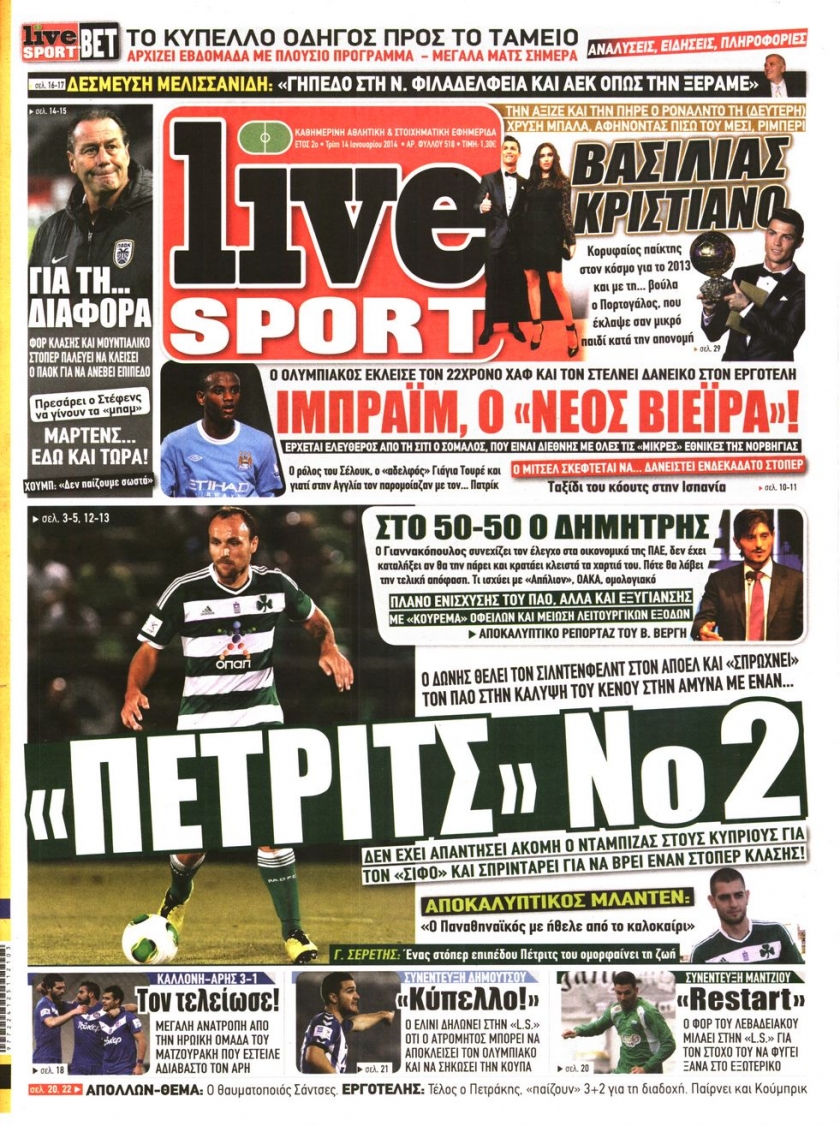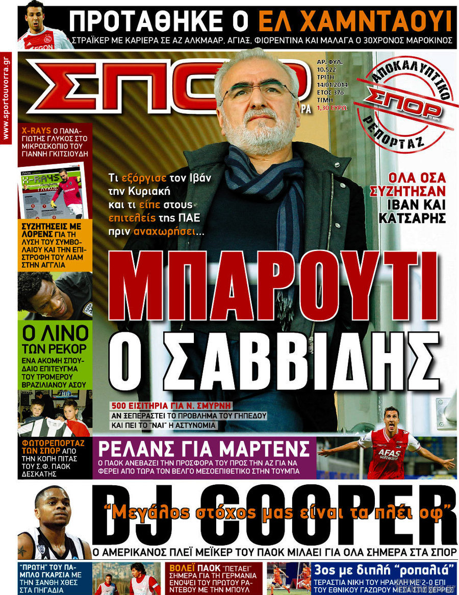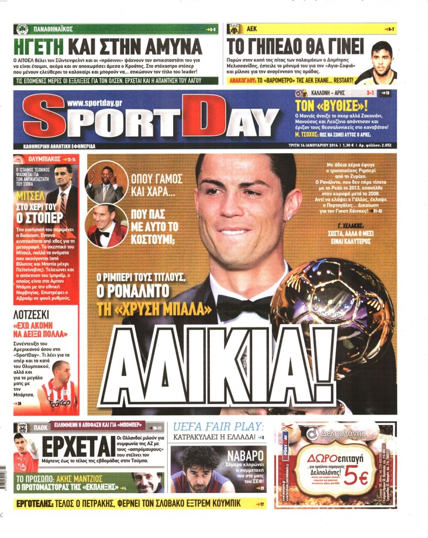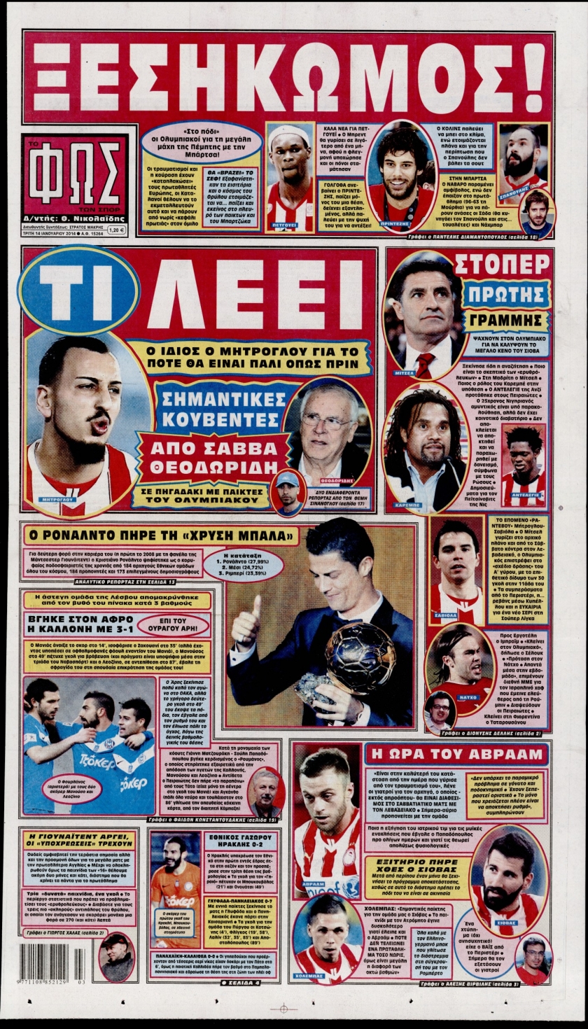 Οι αθλητικές εφημερίδες Enikos Newsroom 08:29, Τρίτη 14 Ιανουαρίου 2014 Media Οι αθλητικές εφημερίδες Διαβάστε τα πρωτοσέλιδα των αθλητικών εφημερίδων: ΑΘΛΗΤΙΚΕΣ ΕΦΗΜΕΡΙΔΕΣ ΕΦΗΜΕΡΙΔΕΣ ΠΡΩΤΟΣΕΛΙΔΑ Μοιράσου το: σχολίασε κι εσύ (0 σχόλια) Ακολουθήστε το enikos.gr στο Google News και μάθετε πρώτοι όλες τις ειδήσεις Δείτε όλες τις τελευταίες ειδήσεις από την Ελλάδα και τον Κόσμο στο enikos.gr Ειδήσεις Ροή Ειδήσεων 2 ώρες πριν Ευρωπαϊκή Ένωση: Συμφωνία για δάνειο 90 δισ. ευρώ στην Ουκρανία τη διετία 2026-2027 6 ώρες πριν ΟΠΕΚΕΠΕ: Προφυλακιστέος ο φερόμενος αρχηγός και ο λογιστής της εγκληματικής οργάνωσης 8 ώρες πριν Αυξάνουν την πίεση προς την κυβέρνηση οι αγρότες: Κλείνουν παρακαμπτήριους και ανοίγουν διόδια – Τι θα γίνει τις γιορτές 7 ώρες πριν Φοινικούντα: Το Σάββατο απολογείται ο 30χρονος γιος γνωστού επιχειρηματία της Πλάκας που παραδόθηκε – Όσα είπε στους αστυνομικούς και ο ρόλος του στο έγκλημα 6 ώρες πριν ΑΕΚ – Κραϊόβα 3-2: Επική ανατροπή και πρόκριση στους «16» του Conference League η Ένωση 7 ώρες πριν Αρχαιολόγοι ανακάλυψαν ρωμαϊκά τεχνουργήματα από μια πόλη που δεν υπήρξε ποτέ – Τα τρία εντυπωσιακά κτίρια και ο αμφορέας με τις… σαρδέλες 8 ώρες πριν Ύπνος: Η απλή βραδινή ρουτίνα για να προστατεύσετε τα μαλλιά σας από το κρύο κατά τη διάρκεια του χειμώνα 9 ώρες πριν Manifesting: Πώς να συναντήσετε τον σύντροφο της ζωής σας, ανάλογα με τον μήνα γέννησής σας 2 ημέρες πριν 20 χρόνια τα Χριστούγεννα ξεκινούν στα Public με μεγάλη ποικιλία σε δώρα! 5 λεπτά πριν Αθήνα: Βρέθηκε η 16χρονη που είχε εξαφανιστεί από τις 6 Δεκεμβρίου – Η ανακοίνωση από το «Χαμόγελο του Παιδιού» 13 λεπτά πριν Κρύα χέρια και πόδια: Γιατρός εξηγεί ποια είναι η αίτια και πότε πρέπει να ανησυχήσετε 20 λεπτά πριν Σαν σήμερα 19 Δεκεμβρίου: Τα σημαντικότερα γεγονότα της ημέρας 25 λεπτά πριν Οι οικονομικές εφημερίδες 19/12/2025 30 λεπτά πριν Οι αθλητικές εφημερίδες 19/12/2025 ENIKOS NETWORK Σε περίοδο αυξημένης δραστηριότητας η γρίπη στην Ελλάδα-Μέτρα προστασίας από τον ΕΟΔΥ Σκέφτεστε συνέχεια συζητήσεις που έχετε κάνει; Τι σημαίνει αυτό, σύμφωνα με ειδικό Στεγαστικό: Τι λέει η ΠΟΜΙΔΑ για τα νέα μέτρα που ανακοίνωσε ο Κυριάκος Μητσοτάκης Λαγκάρντ: Αισιόδοξη για την ανάπτυξη της Ευρωζώνης, αβέβαιη για τον πληθωρισμό Χαρτογραφώντας το «σημείο χωρίς επιστροφή»: Για πρώτη φορά αποκαλύπτεται με λεπτομέρεια το ακανθώδες όριο της ατμόσφαιρας τ... Η Google καταργεί τη λειτουργία «dark web report» – Πώς θα μπορούν οι χρήστες να διαγράφουν τα δεδομένα τους περισσότερα 05:48 , Παρασκευή 19 Δεκεμβρίου 2025 Οι οικονομικές εφημερίδες 19/12/2025 Διαβάστε τα πρωτοσέλιδα από τις οικονομικές εφημερίδες, σήμερα 19/12/2025. 05:43 , Παρασκευή 19 Δεκεμβρίου 2025 Οι αθλητικές εφημερίδες 19/12/2025 Διαβάστε τα πρωτοσέλιδα από τις αθλητικές εφημερίδες, σήμερα 19/12/2025. 05:38 , Παρασκευή 19 Δεκεμβρίου 2025 Οι πολιτικές εφημερίδες 19/12/2025 Διαβάστε τα πρωτοσέλιδα από τις πολιτικές εφημερίδες, σήμερα 19/12/2025. 02:50 , Παρασκευή 19 Δεκεμβρίου 2025 GNTM: «Κλείδωσαν» οι τέσσερις φιναλίστ – Μεγάλη ανατροπή στις τελευταίες αποχωρήσεις Για προτελευταία φορά εμφανίστηκαν στο πλατό του GNTM οι φιναλίστ του φετινού κύκλου, το βράδυ... ΤΕΛΕΥΤΑΙΕΣ ΕΙΔΗΣΕΙΣ 5 λεπτά πριν Αθήνα: Βρέθηκε η 16χρονη που είχε εξαφανιστεί από τις 6... 13 λεπτά πριν Κρύα χέρια και πόδια: Γιατρός εξηγεί ποια είναι η... 20 λεπτά πριν Σαν σήμερα 19 Δεκεμβρίου: Τα σημαντικότερα γεγονότα... 25 λεπτά πριν Οι οικονομικές εφημερίδες 19/12/2025 30 λεπτά πριν Οι αθλητικές εφημερίδες 19/12/2025 