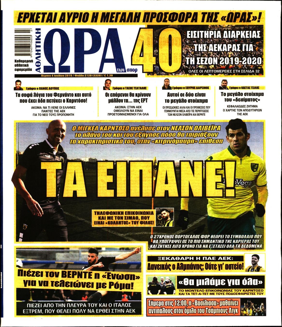 Οι αθλητικές εφημερίδες 4/7/19 Διονύσης Νίκκας 06:54, Πέμπτη 04 Ιουλίου 2019 Media Διαβάστε τα πρωτοσέλιδα των αθλητικών εφημερίδων : ΑΘΛΗΤΙΚΕΣ ΕΦΗΜΕΡΙΔΕΣ ΠΡΩΤΟΣΕΛΙΔΑ Μοιράσου το: σχολίασε κι εσύ (0 σχόλια) Ακολουθήστε το enikos.gr στο Google News και μάθετε πρώτοι όλες τις ειδήσεις Δείτε όλες τις τελευταίες ειδήσεις από την Ελλάδα και τον Κόσμο στο enikos.gr Ειδήσεις Ροή Ειδήσεων 4 ώρες πριν Μεσόγειος: Η διαδρομή του ρωσικού τάνκερ «Qendil» και η στοχευμένη επίθεση της Ουκρανίας με drone – Ο Πούτιν προειδοποίησε για αντίποινα 44 λεπτά πριν Αγρότες: Έκλεισαν για μία ώρα την παρακαμπτήρια της Ιόνιας Οδού στη θέση Χαλίκι 2 ώρες πριν Εμπλοκή και αερομαχίες με οπλισμένα τουρκικά F-16 στο Αιγαίο 2 ώρες πριν Πούτιν: «Ναι, είμαι ερωτευμένος» – Βίντεο από τη σπάνια προσωπική παραδοχή του 48 λεπτά πριν Ανδρέας Λυκουρέντζος: Υπέβαλε την παραίτησή του ο πρόεδρος του ΕΛΓΑ, αλλά δεν έγινε δεκτή – Όλο το παρασκήνιο 58 λεπτά πριν Αριθμολογία: Οι άνθρωποι που έχουν γεννηθεί αυτές τις 4 ημερομηνίες, συχνά παρεξηγούνται – «Η καλοσύνη τους κρύβει τεράστια δύναμη» 3 ώρες πριν Μήπως έχετε χάσει τον εαυτό σας στη σχέση σας; 7 «αθόρυβες» υποχωρήσεις που μάλλον κάνατε, χωρίς να το συνειδητοποιήσετε 2 ώρες πριν Ξεχάστε το καθάρισμα το Σαββατοκύριακο: Ο «κανόνας των 20 λεπτών» που θα σας λύσει τα χέρια 5 ώρες πριν Κουίζ για την παλιά Αθήνα: Αναγνωρίζετε την περιοχή; Έχετε περάσει 100% από εκεί 3 λεπτά πριν ΕΕ: «Κάποια στιγμή θα χρησιμοποιήσουμε τα ρωσικά περιουσιακά στοιχεία» δήλωσε ο πρόεδρος του ΕΛΚ 7 λεπτά πριν Conference League: Καλύτερη επίθεση η ΑΕΚ στη διοργάνωση και 2η σε προσπάθειες στην εστία – Ξεχωρίζουν Πινέδα, Ελίασον και Ρότα 9 λεπτά πριν Έγκυος η Άννα Κορακάκη: «Η οικογένειά μας μεγαλώνει…» – Η αποκάλυψη για το φύλο του μωρού 16 λεπτά πριν Τραγωδία στο Βελεστίνο: Πέθανε ο αντιδήμαρχος Γιάννης Παπαϊωάννου 20 λεπτά πριν Ολυμπιακός – Βιλερμπάν: Μάτωσε στο πρόσωπο ο Παπανικολάου έπειτα από αγκωνιά του Βοτιέ – ΦΩΤΟ ENIKOS NETWORK Το ΕΚΑΒ τιμήθηκε από την Ακαδημία Αθηνών για τα 40 χρόνια προσφοράς του Έχετε πραγματικά μεγάλη καρδιά; 10 χαρακτηριστικά όσων έχουν καλοσύνη Έρχονται νέες προσλήψεις σε Δήμο – Όλες οι λεπτομέρειες Επίδομα παιδιού: Πότε ανοίγει ξανά η πλατφόρμα για τις αιτήσεις Χαρτογραφώντας το «σημείο χωρίς επιστροφή»: Για πρώτη φορά αποκαλύπτεται με λεπτομέρεια το ακανθώδες όριο της ατμόσφαιρας τ... Η Google καταργεί τη λειτουργία «dark web report» – Πώς θα μπορούν οι χρήστες να διαγράφουν τα δεδομένα τους περισσότερα 20:37 , Παρασκευή 19 Δεκεμβρίου 2025 Don’t Forget The Lyrics: Η Έλλη Κοκκίνου υποδέχεται 4 παίκτες που θα κάνουν τα πάντα για να μη χάσουν ούτε… μισή λέξη από τους στίχους Το «Don’t Forget The Lyrics» επιστρέφει απόψε, Παρασκευή 19 Δεκεμβρίου, στις 21:00 με νέο επει... 19:31 , Παρασκευή 19 Δεκεμβρίου 2025 GNTM: Απόψε ο μεγάλος τελικός για τους 4 φιναλίστ Έπειτα από μήνες γεμάτους μόδα, δημιουργία και έντονες αναμετρήσεις, το GNTM 2025 κορυφώνεται,... 18:11 , Παρασκευή 19 Δεκεμβρίου 2025 Το σόι σου: Ο Άρης έρχεται στην Ελλάδα για τις γιορτές των Χριστουγέννων – Τι θα δούμε στο αποψινό εορταστικό επεισόδιο Ένα απολαυστικό, εορταστικό επεισόδιο της σειράς “Το σόι σου”, γεμάτο ευτράπελα αλ... 15:15 , Παρασκευή 19 Δεκεμβρίου 2025 Την Κυριακή με τη Realnews: Ό,τι και αν αγοράσεις, σκανάρεις και κερδίζεις! Την Κυριακή με τη Realnews: Ό,τι και αν αγοράσεις, σκανάρεις και κερδίζεις! Με το PADU app, το... ΤΕΛΕΥΤΑΙΕΣ ΕΙΔΗΣΕΙΣ 3 λεπτά πριν ΕΕ: «Κάποια στιγμή θα χρησιμοποιήσο