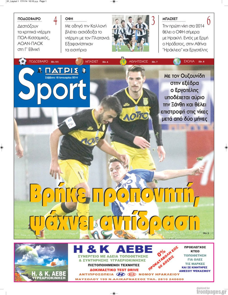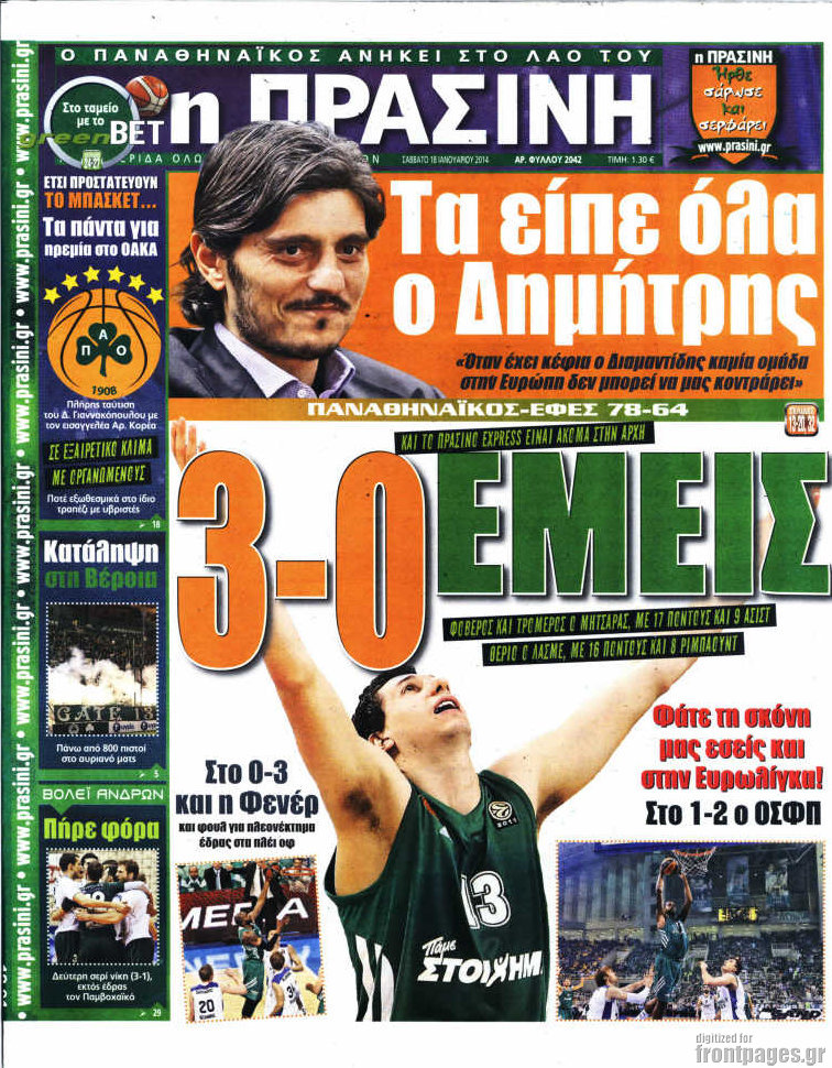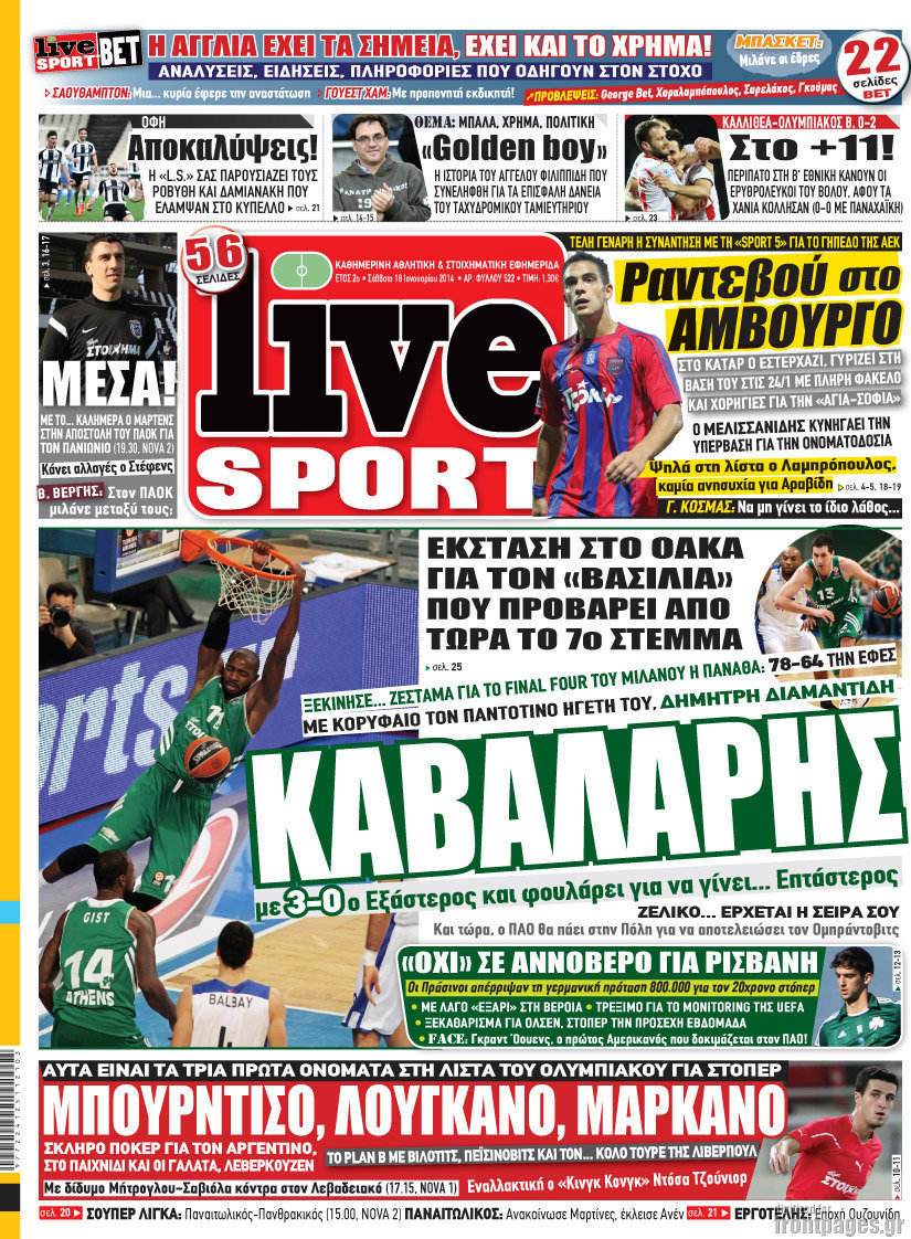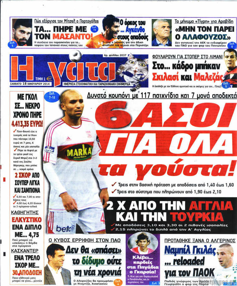 Οι αθλητικές εφημερίδες Enikos Newsroom 08:24, Σάββατο 18 Ιανουαρίου 2014 Media Οι αθλητικές εφημερίδες ΑΘΛΗΤΙΚΕΣ ΕΦΗΜΕΡΙΔΕΣ Μοιράσου το: σχολίασε κι εσύ (0 σχόλια) Ακολουθήστε το enikos.gr στο Google News και μάθετε πρώτοι όλες τις ειδήσεις Δείτε όλες τις τελευταίες ειδήσεις από την Ελλάδα και τον Κόσμο στο enikos.gr Ειδήσεις Ροή Ειδήσεων 5 ώρες πριν Αγρότες: «Όχι στον διάλογο, μας εμπαίζει η κυβέρνηση» – Αποφάσισαν κλιμάκωση των κινητοποιήσεων, τι θα γίνει τα Χριστούγεννα 1 ώρα πριν Αθήνα: Εξαρθρώθηκε εγκληματική οργάνωση που διακινούσε ναρκωτικά σε μορφή σοκολάτας – Δύο τράπερ ανάμεσα στους 4 συλληφθέντες – ΒΙΝΤΕΟ 2 ώρες πριν Στη φυλακή ο «Έλληνας Εσκομπάρ» και τρεις συνεργοί του για το φορτίο με την κοκαΐνη – Τι υποστήριξε στην απολογία του 3 ώρες πριν Γιώργος Μαζωνάκης: «Έχει υποστεί ένα σωρό εκβιαστικές πρακτικές – Του είπαν ότι θα του βάλουν τον συγκεκριμένο άνθρωπο να τον καταγγείλει» 1 ώρα πριν Γεωργιάδης για Κωνσταντοπούλου: «Έχει καταφέρει να ξεπεράσει ακόμη και τον εαυτό της – Το ερώτημα είναι “γιατί τώρα;”» 5 ώρες πριν Τα 5 ζώδια που θα ευνοηθούν στα οικονομικά τους το 2026 – «Τραβούν το χρήμα σαν μαγνήτες» 2 ώρες πριν Γάμος: 11 ψυχρές αλλά ευγενικές φράσεις, που λέει ένας άνδρας όταν σκέφτεται τον χωρισμό 1 ώρα πριν Σφουγγάρισμα: Η συνήθεια που θα σας βοηθήσει να διατηρήσετε το σπίτι σας καθαρό και τακτοποιημένο 2 ημέρες πριν 20 χρόνια τα Χριστούγεννα ξεκινούν στα Public με μεγάλη ποικιλία σε δώρα! 20 δευτερόλεπτα πριν Νίκος Παππάς στον ΑΝΤ1: «Δεν κρύβομαι – Μετά το συμβάν ακολούθησα κανονικά το πρόγραμμά μου» – ΒΙΝΤΕΟ 3 λεπτά πριν Αγρότες: Άνοιξε ο μεθοριακός σταθμός του Προμαχώνα για τα φορτηγά 12 λεπτά πριν Δημοσκόπηση Metron Analysis: Στις 10 μονάδες η διαφορά ΝΔ-ΠΑΣΟΚ, στην 3η θέση η Πλεύση Ελευθερίας – 8 στους 10 στηρίζουν τον αγώνα των αγροτών 17 λεπτά πριν Ολυμπιακός: Τι ζήτησε από τον Άγιο Βασίλη ο Χοσέ Λουίς Μεντιλίμπαρ 23 λεπτά πριν Manifesting: Πώς να συναντήσετε τον σύντροφο της ζωής σας, ανάλογα με τον μήνα γέννησής σας ENIKOS NETWORK Σε περίοδο αυξημένης δραστηριότητας η γρίπη στην Ελλάδα-Μέτρα προστασίας από τον ΕΟΔΥ Σκέφτεστε συνέχεια συζητήσεις που έχετε κάνει; Τι σημαίνει αυτό, σύμφωνα με ειδικό ΕΛΣΤΑΤ: Τι δείχνουν τα νέα στοιχεία για τον μόνιμο πληθυσμό στην Ελλάδα Servicers: Μικρή μείωση στα κόκκινα δάνεια που διαχειρίζονται – Αναλυτικά τα στοιχεία Χαρτογραφώντας το «σημείο χωρίς επιστροφή»: Για πρώτη φορά αποκαλύπτεται με λεπτομέρεια το ακανθώδες όριο της ατμόσφαιρας τ... Η Google καταργεί τη λειτουργία «dark web report» – Πώς θα μπορούν οι χρήστες να διαγράφουν τα δεδομένα τους περισσότερα 17:45 , Πέμπτη 18 Δεκεμβρίου 2025 ROUK ZOUK: Εορταστικό επεισόδιο με καλεσμένους τους πρωταγωνιστές του «Γιατί ρε πατέρα» Το Σάββατο 20 Δεκεμβρίου στις 21:00, η Ζέτα Μακρυπούλια υποδέχεται εκλεκτούς ηθοποιούς που όλο... 17:20 , Πέμπτη 18 Δεκεμβρίου 2025 Άγιος έρωτας: Η Χριστίνα εξομολογείται στον πατέρα Νικόλαο, απόψε στις 21:00 στον Alpha Η Νότα αποφασίζει να εκδικηθεί τον Πέτρο και τον Στέφανο, για χάρη του Λούη, όμως τα πράγματα ... 16:50 , Πέμπτη 18 Δεκεμβρίου 2025 Να μ’ αγαπάς: Ζωή και Φωτεινή συμφιλιώνονται ως μάνα με κόρη, απόψε στις 20:00 Η ταυτότητα του Άγγελου αποκαλύπτεται στο νέο επεισόδιο της σειράς “Να μ’ αγαπάς... 15:52 , Πέμπτη 18 Δεκεμβρίου 2025 Το Σπίτι Δίπλα Στο Ποτάμι: Το καθηλωτικό τελευταίο επεισόδιο για το 2025 απόψε στις 22:30 Καθηλώνει το σημερινό επεισόδιο της σειράς “Το Σπίτι Δίπλα Στο Ποτάμι” που έρχεται.