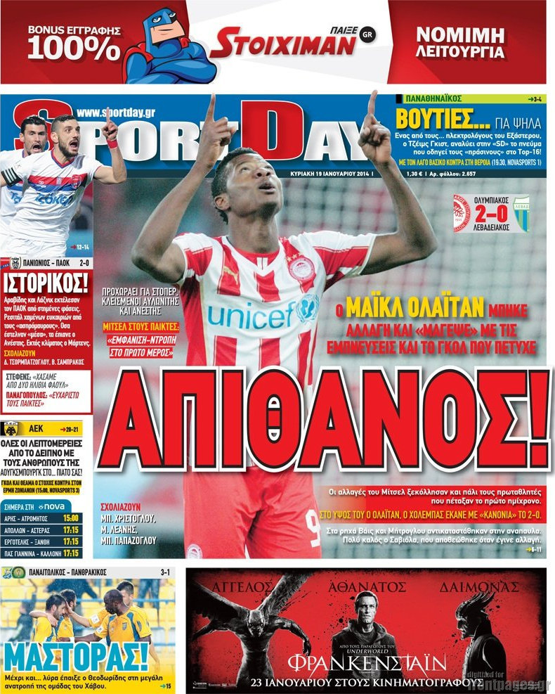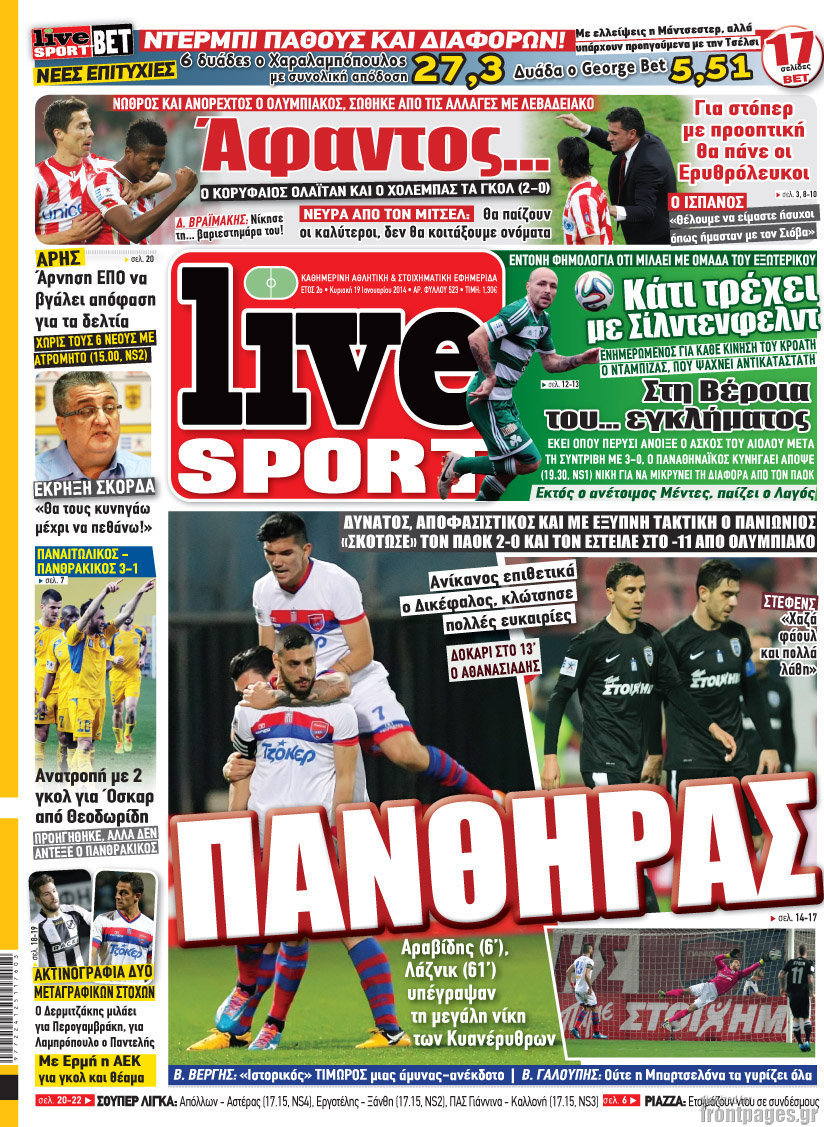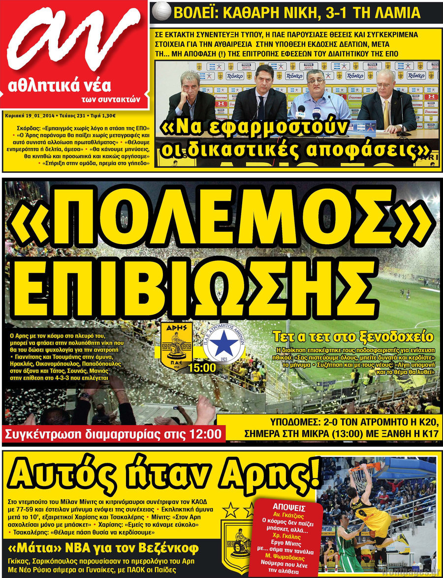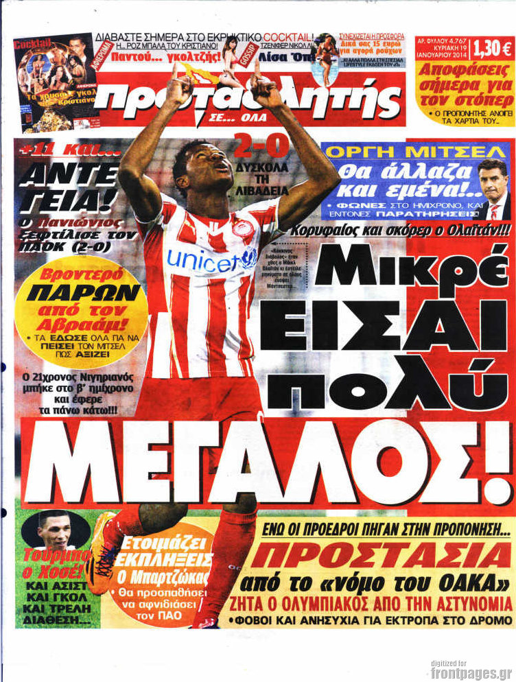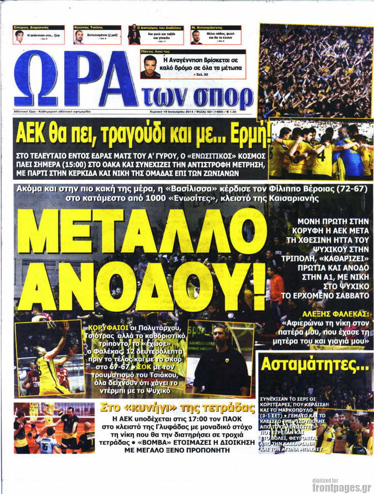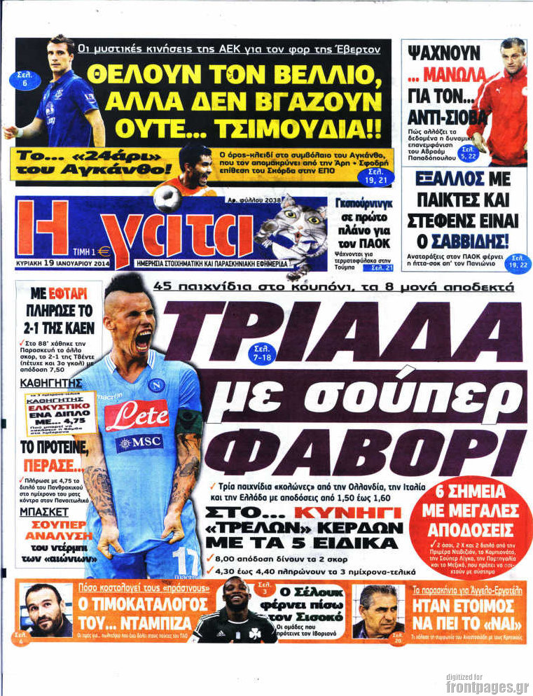 Οι αθλητικές εφημερίδες Enikos Newsroom 08:37, Κυριακή 19 Ιανουαρίου 2014 Media Οι αθλητικές εφημερίδες Διαβάστε τα πρωτοσέλιδα των αθλητικών εφημερίδων: ΑΘΛΗΤΙΚΕΣ ΕΦΗΜΕΡΙΔΕΣ ΕΦΗΜΕΡΙΔΕΣ ΠΡΩΤΟΣΕΛΙΔΑ Μοιράσου το: σχολίασε κι εσύ (0 σχόλια) Ακολουθήστε το enikos.gr στο Google News και μάθετε πρώτοι όλες τις ειδήσεις Δείτε όλες τις τελευταίες ειδήσεις από την Ελλάδα και τον Κόσμο στο enikos.gr Ειδήσεις Ροή Ειδήσεων 8 ώρες πριν Μητσοτάκης: Αναγκαία η μεταρρύθμιση του πρωτογενούς τομέα – Τα 6 νέα μέτρα για το στεγαστικό και οι αναφορές σε «Ιθάκη» και «πολιτικούς του καναπέ» 7 ώρες πριν Δάνεια σε ελβετικό φράγκο: Τα βασικά σημεία της ρύθμισης – ανάσας για 40.000 δανειολήπτες – Αναλυτικός οδηγός με ερωτήσεις και απαντήσεις 7 ώρες πριν Κυψέλη: Εξιτήριο πήρε η 14χρονη μαθήτρια που μαχαιρώθηκε από την 16χρονη σε σχολείο – «Θέλω να βοηθήσω το παιδί, έχει μπλέξει με κακές παρέες» 7 ώρες πριν Τραμπ: Γιατί κατέθεσε τώρα την αγωγή κατά του BBC – Πώς η κίνησή του εξυπηρετεί το νέο δόγμα του για «αντίσταση» στην Ευρώπη, υπέρ των συντηρητικών 8 ώρες πριν ΟΠΕΚΕΠΕ – Παράνομες επιδοτήσεις: Ελεύθεροι με περιοριστικούς όρους και οι 7 κατηγορούμενοι που απολογήθηκαν σήμερα 7 ώρες πριν Ανακαλύφθηκε βυθισμένη πέτρινη κατασκευή ανοιχτά της Κριμαίας – Αποτελεί μέρος αρχαίας ελληνικής αποικίας 8 ώρες πριν Ύπνος: Αυτό μπορεί να είναι το χειρότερο λάθος για το βιολογικό ρολόι σας, σύμφωνα με ειδικό 9 ώρες πριν Αριθμολογία: Οι άνθρωποι που έχουν γεννηθεί αυτές τις 3 ημερομηνίες, προσελκύουν μεγάλη τύχη πριν από το τέλος του 2025 11 ώρες πριν Οι 7 συμπεριφορές που μαρτυρούν ότι ένας άνδρας επενδύει μακροπρόθεσμα σε μια σχέση 1 λεπτό πριν Οι πολιτικές εφημερίδες 17/12/2025 9 λεπτά πριν Τα ζώδια σήμερα, Τετάρτη 17 Δεκεμβρίου: Κριοί, η αυτοπεποίθησή σας ενισχύεται 17 λεπτά πριν Εφημερεύοντα φαρμακεία σε Αθήνα και Θεσσαλονίκη (17/12) 23 λεπτά πριν Κόστα Ρίκα: Το Κογκρέσο απέρριψε το αίτημα για άρση της ασυλίας του προέδρου Τσάβες 31 λεπτά πριν Κολομβία: Νεκροί τέσσερις αστυνομικοί σε βομβιστικές επιθέσεις ανταρτών ENIKOS NETWORK Αίτημα ΙΣΑ για την εξαίρεση των προσωπικών γιατρών από τις κατ’ οίκον επισκέψεις Η σκανδιναβική μέθοδος στον ύπνο που μπορεί να σώσει έναν γάμο Πιερρακάκης: Ο προϋπολογισμός συμβάλλει ουσιαστικά στην ενίσχυση της αγοραστικής δύναμης της πλειονότητας των εργαζομένων e-ΕΦΚΑ: Παρατείνεται η προθεσμία για την υποβολή ΑΠΔ – Ποιους αφορά Σύγχρονος Νοστράδαμος: Προειδοποιεί για «μεγάλο γεγονός» τους επόμενους μήνες που θα συγκλονίσει τη Βρετανία και τον κόσμο Τεστ παρατηρητικότητας: Μπορείτε να βρείτε τις 3 διαφορές στις εικόνες με έναν πιγκουίνο σε 14 δευτερόλεπτα περισσότερα 05:38 , Τετάρτη 17 Δεκεμβρίου 2025 Οι πολιτικές εφημερίδες 17/12/2025 Διαβάστε τα πρωτοσέλιδα από τις πολιτικές εφημερίδες, σήμερα 17/12/2025. 20:06 , Τρίτη 16 Δεκεμβρίου 2025 Ο ΣΚΑΙ καταγγέλλει τον ΕΚΚΟΜΕΔ Επιστολή με την οποία καταγράφει την έντονη διαμαρτυρία του προς τον διευθύνοντα σύμβουλο του... 17:40 , Τρίτη 16 Δεκεμβρίου 2025 Eurovision: Στις 4 Ιανουαρίου αποκαλύπτονται τα 28 τραγούδια του ελληνικού τελικού Η αγωνία τελειώνει, η γιορτή της Eurovision αρχίζει στην ΕΡΤ από τις πρώτες ημέρες της νέας χρ... 17:09 , Τρίτη 16 Δεκεμβρίου 2025 Alter Ego Media: Βαθύτατη θλίψη και ειλικρινή συλλυπητήρια για την απώλεια της Ειρήνης Μαρινάκη Τη βαθύτατη θλίψη και τα ειλικρινή συλλυπητήριά της εκφράζει η Alter Ego Media για τον θάνατο ... ΤΕΛΕΥΤΑΙΕΣ ΕΙΔΗΣΕΙΣ 9 λεπτά πριν Τα ζώδια σήμερα, Τετάρ