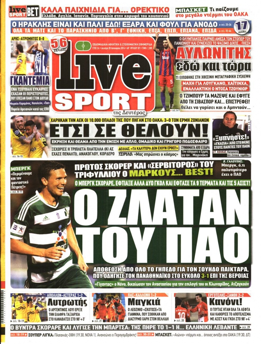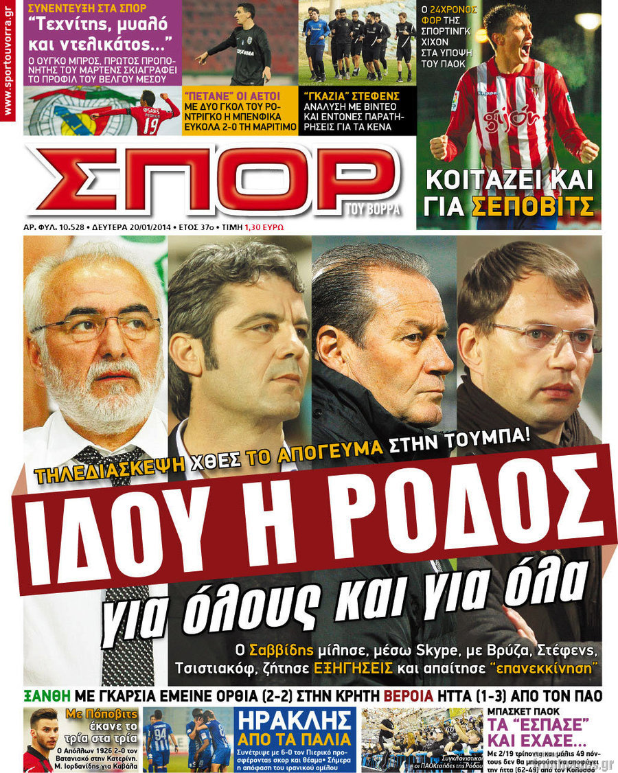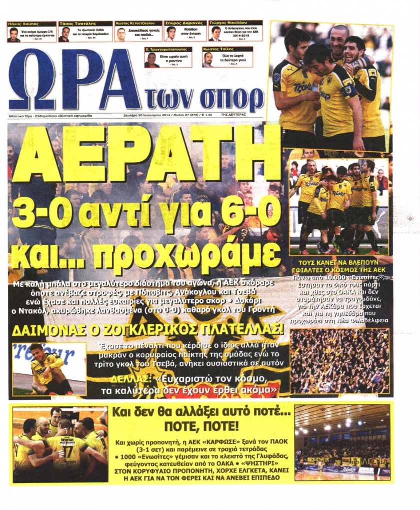 Οι αθλητικές εφημερίδες Enikos Newsroom 08:26, Δευτέρα 20 Ιανουαρίου 2014 Media Οι αθλητικές εφημερίδες Διαβάστε τα πρωτοσέλιδα των αθλητικών εφημερίδων: ΑΘΛΗΤΙΚΕΣ ΕΦΗΜΕΡΙΔΕΣ ΕΦΗΜΕΡΙΔΕΣ ΠΡΩΤΟΣΕΛΙΔΑ Μοιράσου το: σχολίασε κι εσύ (0 σχόλια) Ακολουθήστε το enikos.gr στο Google News και μάθετε πρώτοι όλες τις ειδήσεις Δείτε όλες τις τελευταίες ειδήσεις από την Ελλάδα και τον Κόσμο στο enikos.gr Ειδήσεις Ροή Ειδήσεων 8 ώρες πριν Μητσοτάκης: Αναγκαία η μεταρρύθμιση του πρωτογενούς τομέα – Τα 6 νέα μέτρα για το στεγαστικό και οι αναφορές σε «Ιθάκη» και «πολιτικούς του καναπέ» 7 ώρες πριν Δάνεια σε ελβετικό φράγκο: Τα βασικά σημεία της ρύθμισης – ανάσας για 40.000 δανειολήπτες – Αναλυτικός οδηγός με ερωτήσεις και απαντήσεις 7 ώρες πριν Κυψέλη: Εξιτήριο πήρε η 14χρονη μαθήτρια που μαχαιρώθηκε από την 16χρονη σε σχολείο – «Θέλω να βοηθήσω το παιδί, έχει μπλέξει με κακές παρέες» 7 ώρες πριν Τραμπ: Γιατί κατέθεσε τώρα την αγωγή κατά του BBC – Πώς η κίνησή του εξυπηρετεί το νέο δόγμα του για «αντίσταση» στην Ευρώπη, υπέρ των συντηρητικών 8 ώρες πριν ΟΠΕΚΕΠΕ – Παράνομες επιδοτήσεις: Ελεύθεροι με περιοριστικούς όρους και οι 7 κατηγορούμενοι που απολογήθηκαν σήμερα 7 ώρες πριν Ανακαλύφθηκε βυθισμένη πέτρινη κατασκευή ανοιχτά της Κριμαίας – Αποτελεί μέρος αρχαίας ελληνικής αποικίας 8 ώρες πριν Ύπνος: Αυτό μπορεί να είναι το χειρότερο λάθος για το βιολογικό ρολόι σας, σύμφωνα με ειδικό 9 ώρες πριν Αριθμολογία: Οι άνθρωποι που έχουν γεννηθεί αυτές τις 3 ημερομηνίες, προσελκύουν μεγάλη τύχη πριν από το τέλος του 2025 11 ώρες πριν Οι 7 συμπεριφορές που μαρτυρούν ότι ένας άνδρας επενδύει μακροπρόθεσμα σε μια σχέση 2 λεπτά πριν Οι πολιτικές εφημερίδες 17/12/2025 10 λεπτά πριν Τα ζώδια σήμερα, Τετάρτη 17 Δεκεμβρίου: Κριοί, η αυτοπεποίθησή σας ενισχύεται 18 λεπτά πριν Εφημερεύοντα φαρμακεία σε Αθήνα και Θεσσαλονίκη (17/12) 24 λεπτά πριν Κόστα Ρίκα: Το Κογκρέσο απέρριψε το αίτημα για άρση της ασυλίας του προέδρου Τσάβες 32 λεπτά πριν Κολομβία: Νεκροί τέσσερις αστυνομικοί σε βομβιστικές επιθέσεις ανταρτών ENIKOS NETWORK Αίτημα ΙΣΑ για την εξαίρεση των προσωπικών γιατρών από τις κατ’ οίκον επισκέψεις Η σκανδιναβική μέθοδος στον ύπνο που μπορεί να σώσει έναν γάμο Πιερρακάκης: Ο προϋπολογισμός συμβάλλει ουσιαστικά στην ενίσχυση της αγοραστικής δύναμης της πλειονότητας των εργαζομένων e-ΕΦΚΑ: Παρατείνεται η προθεσμία για την υποβολή ΑΠΔ – Ποιους αφορά Σύγχρονος Νοστράδαμος: Προειδοποιεί για «μεγάλο γεγονός» τους επόμενους μήνες που θα συγκλονίσει τη Βρετανία και τον κόσμο Τεστ παρατηρητικότητας: Μπορείτε να βρείτε τις 3 διαφορές στις εικόνες με έναν πιγκουίνο σε 14 δευτερόλεπτα περισσότερα 05:38 , Τετάρτη 17 Δεκεμβρίου 2025 Οι πολιτικές εφημερίδες 17/12/2025 Διαβάστε τα πρωτοσέλιδα από τις πολιτικές εφημερίδες, σήμερα 17/12/2025. 20:06 , Τρίτη 16 Δεκεμβρίου 2025 Ο ΣΚΑΙ καταγγέλλει τον ΕΚΚΟΜΕΔ Επιστολή με την οποία καταγράφει την έντονη διαμαρτυρία του προς τον διευθύνοντα σύμβουλο του... 17:40 , Τρίτη 16 Δεκεμβρίου 2025 Eurovision: Στις 4 Ιανουαρίου αποκαλύπτονται τα 28 τραγούδια του ελληνικού τελικού Η αγωνία τελειώνει, η γιορτή της Eurovision αρχίζει στην ΕΡΤ από τις πρώτες ημέρες της νέας χρ... 17:09 , Τρίτη 16 Δεκεμβρίου 2025 Alter Ego Media: Βαθύτατη θλίψη και ειλικρινή συλλυπητήρια για την απώλεια της Ειρήνης Μαρινάκη Τη βαθύτατη θλίψη και τα ειλικρινή συλλυπητήριά της εκφράζει η Alter Ego Media για τον θάνατο ... ΤΕΛΕΥΤΑΙΕΣ ΕΙΔΗΣΕΙΣ 2 λεπτά πριν Οι πολιτικές εφημερί
