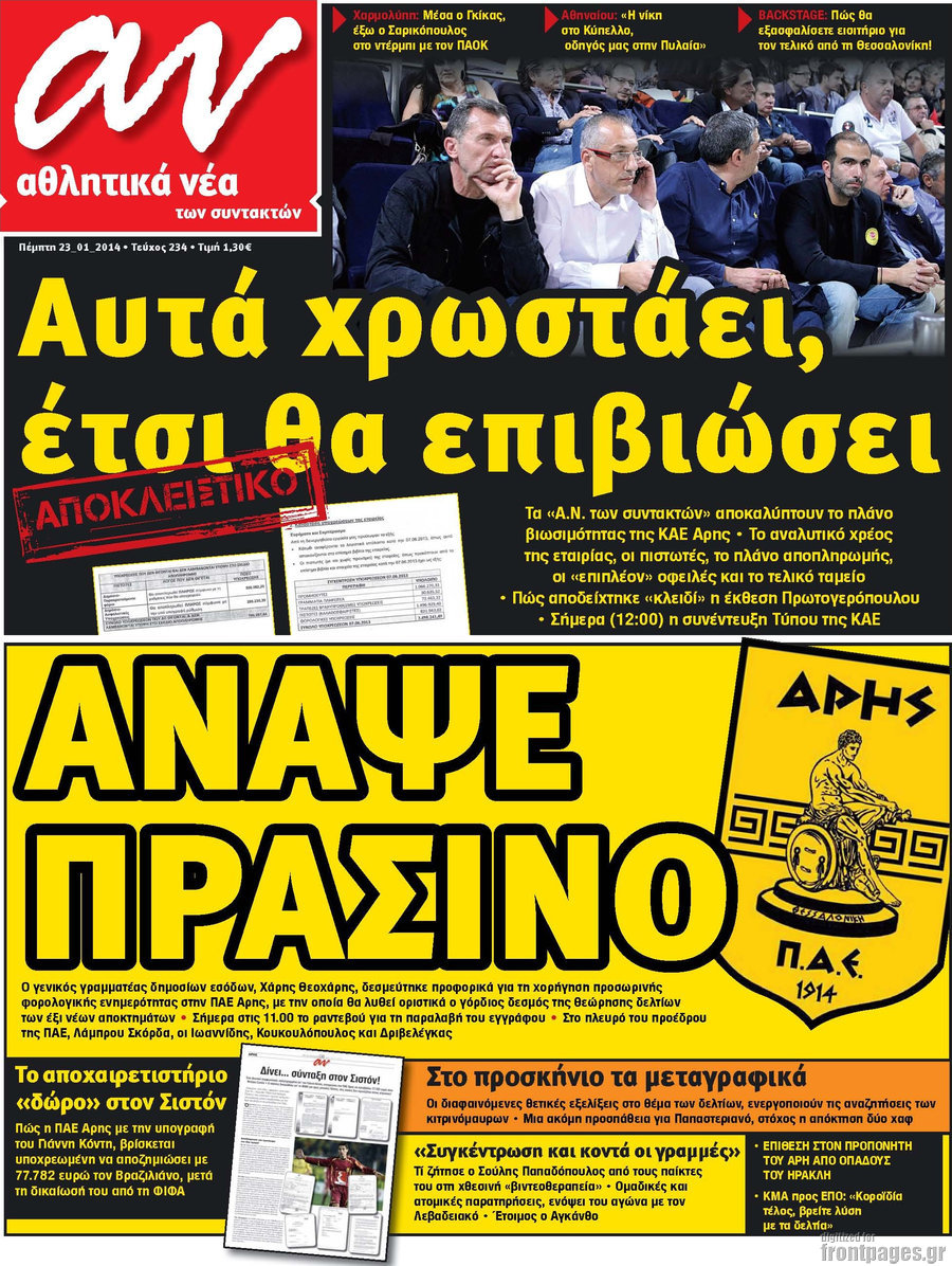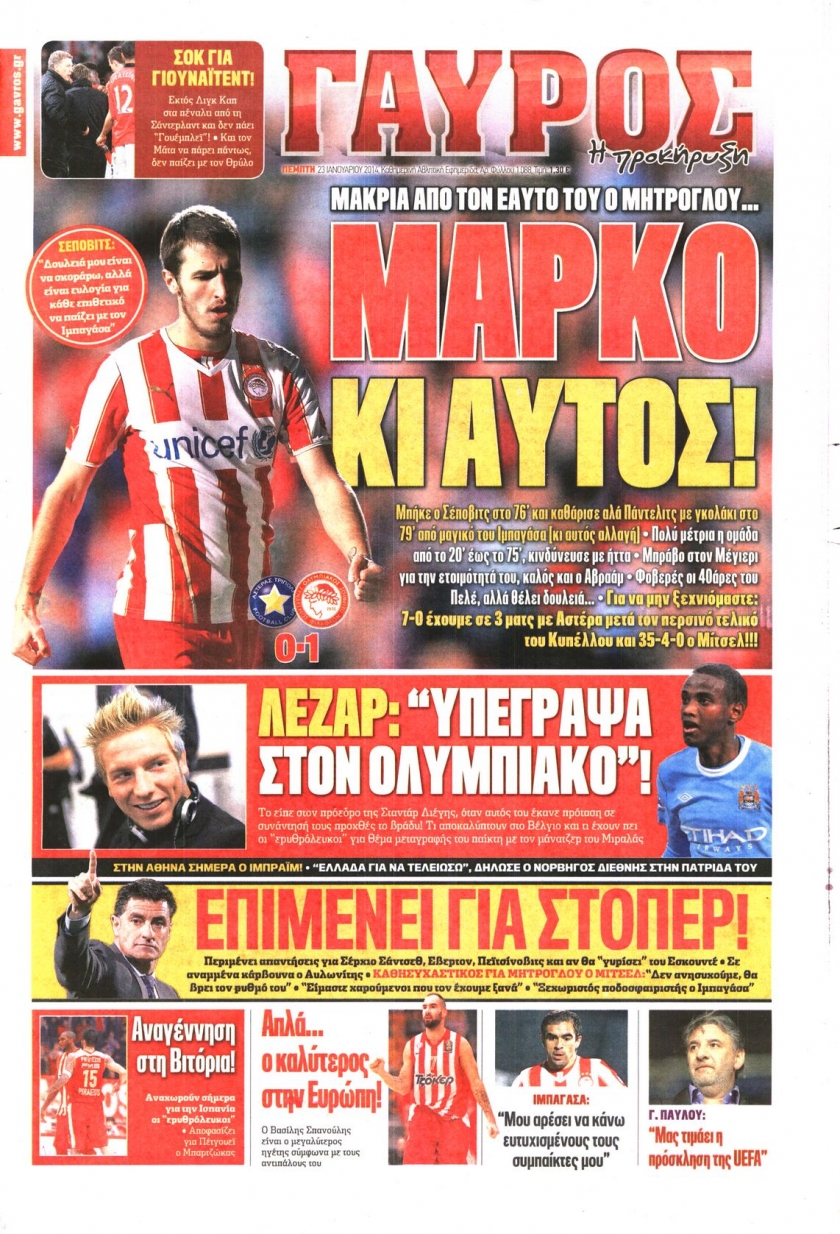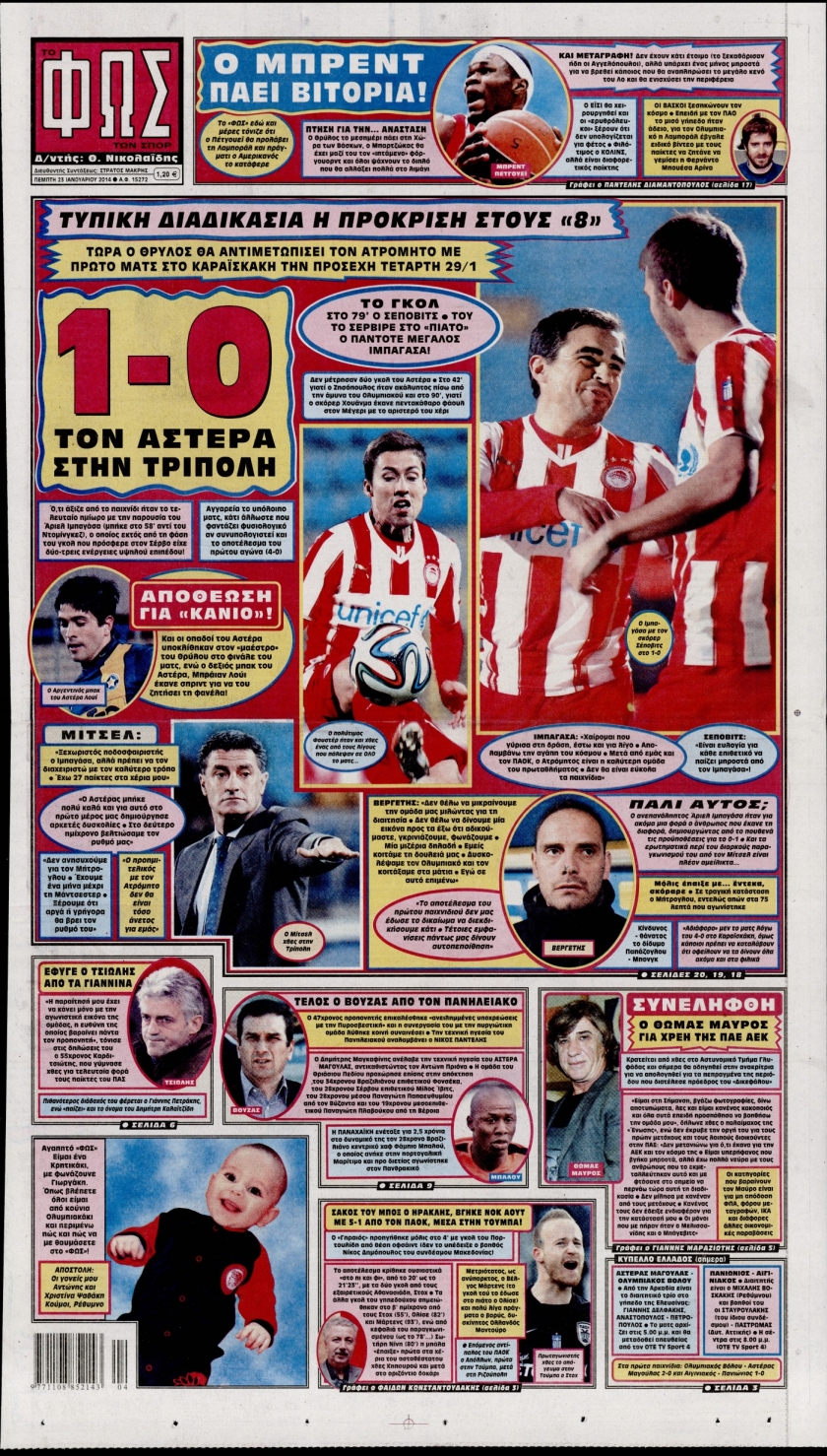 Οι αθλητικές εφημερίδες Enikos Newsroom 08:31, Πέμπτη 23 Ιανουαρίου 2014 Media Οι αθλητικές εφημερίδες Διαβάστε τα πρωτοσέλιδα των αθλητικών εφημερίδων: ΑΘΛΗΤΙΚΕΣ ΕΦΗΜΕΡΙΔΕΣ ΕΦΗΜΕΡΙΔΕΣ ΠΡΩΤΟΣΕΛΙΔΑ Μοιράσου το: σχολίασε κι εσύ (0 σχόλια) Ακολουθήστε το enikos.gr στο Google News και μάθετε πρώτοι όλες τις ειδήσεις Δείτε όλες τις τελευταίες ειδήσεις από την Ελλάδα και τον Κόσμο στο enikos.gr Ειδήσεις Ροή Ειδήσεων 52 λεπτά πριν Ευρωπαϊκή Ένωση: Χωρίς συμφωνία, για την μακροπρόθεσμη χρηματοδότηση της Ουκρανίας, ολοκληρώθηκε η Σύνοδος Κορυφής στις Βρυξέλλες 4 ώρες πριν ΟΠΕΚΕΠΕ: Προφυλακιστέος ο φερόμενος αρχηγός και ο λογιστής της εγκληματικής οργάνωσης 5 ώρες πριν Αυξάνουν την πίεση προς την κυβέρνηση οι αγρότες: Κλείνουν παρακαμπτήριους και ανοίγουν διόδια – Τι θα γίνει τις γιορτές 5 ώρες πριν Φοινικούντα: Το Σάββατο απολογείται ο 30χρονος γιος γνωστού επιχειρηματία της Πλάκας που παραδόθηκε – Όσα είπε στους αστυνομικούς και ο ρόλος του στο έγκλημα 4 ώρες πριν ΑΕΚ – Κραϊόβα 3-2: Επική ανατροπή και πρόκριση στους «16» του Conference League η Ένωση 5 ώρες πριν Αρχαιολόγοι ανακάλυψαν ρωμαϊκά τεχνουργήματα από μια πόλη που δεν υπήρξε ποτέ – Τα τρία εντυπωσιακά κτίρια και ο αμφορέας με τις… σαρδέλες 6 ώρες πριν Ύπνος: Η απλή βραδινή ρουτίνα για να προστατεύσετε τα μαλλιά σας από το κρύο κατά τη διάρκεια του χειμώνα 7 ώρες πριν Manifesting: Πώς να συναντήσετε τον σύντροφο της ζωής σας, ανάλογα με τον μήνα γέννησής σας 2 ημέρες πριν 20 χρόνια τα Χριστούγεννα ξεκινούν στα Public με μεγάλη ποικιλία σε δώρα! 5 λεπτά πριν Αιματηρή βομβιστική επίθεση στην Υεμένη: Τουλάχιστον τρεις νεκροί και 13 τραυματίες 8 λεπτά πριν Στη Φλόριντα σήμερα οι διαβουλεύσεις σχετικά με τα επόμενα στάδια για τη Λωρίδα της Γάζας 13 λεπτά πριν Σίσσυ Τουμάση: «Είμαι ασθενοφοβική πάρα πολύ και με πιάνει μια παράνοια μ’ αυτό» 37 λεπτά πριν Ντόναλντ Τραμπ: Δεν χρειάζομαι την έγκριση του Κογκρέσου για να διατάξω στρατιωτικά πλήγματα στη Βενεζουέλα 52 λεπτά πριν Ευρωπαϊκή Ένωση: Χωρίς συμφωνία, για την μακροπρόθεσμη χρηματοδότηση της Ουκρανίας, ολοκληρώθηκε η Σύνοδος Κορυφής στις Βρυξέλλες ENIKOS NETWORK Σε περίοδο αυξημένης δραστηριότητας η γρίπη στην Ελλάδα-Μέτρα προστασίας από τον ΕΟΔΥ Σκέφτεστε συνέχεια συζητήσεις που έχετε κάνει; Τι σημαίνει αυτό, σύμφωνα με ειδικό Στεγαστικό: Τι λέει η ΠΟΜΙΔΑ για τα νέα μέτρα που ανακοίνωσε ο Κυριάκος Μητσοτάκης Λαγκάρντ: Αισιόδοξη για την ανάπτυξη της Ευρωζώνης, αβέβαιη για τον πληθωρισμό Χαρτογραφώντας το «σημείο χωρίς επιστροφή»: Για πρώτη φορά αποκαλύπτεται με λεπτομέρεια το ακανθώδες όριο της ατμόσφαιρας τ... Η Google καταργεί τη λειτουργία «dark web report» – Πώς θα μπορούν οι χρήστες να διαγράφουν τα δεδομένα τους περισσότερα 02:50 , Παρασκευή 19 Δεκεμβρίου 2025 GNTM: «Κλείδωσαν» οι τέσσερις φιναλίστ – Μεγάλη ανατροπή στις τελευταίες αποχωρήσεις Για προτελευταία φορά εμφανίστηκαν στο πλατό του GNTM οι φιναλίστ του φετινού κύκλου, το βράδυ... 17:45 , Πέμπτη 18 Δεκεμβρίου 2025 ROUK ZOUK: Εορταστικό επεισόδιο με καλεσμένους τους πρωταγωνιστές του «Γιατί ρε πατέρα» Το Σάββατο 20 Δεκεμβρίου στις 21:00, η Ζέτα Μακρυπούλια υποδέχεται εκλεκτούς ηθοποιούς που όλο... 17:20 , Πέμπτη 18 Δεκεμβρίου 2025 Άγιος έρωτας: Η Χριστίνα εξομολογείται στον πατέρα Νικόλαο, απόψε στις 21:00 στον Alpha Η Νότα αποφασίζει να εκδικηθεί τον Πέτρο και τον Στέφανο, για χάρη του Λούη, όμως τα πράγματα ... 16:50 , Πέμπτη 18 Δεκεμβρίου 2025 Να μ’ αγαπάς: Ζωή και Φωτεινή σ
