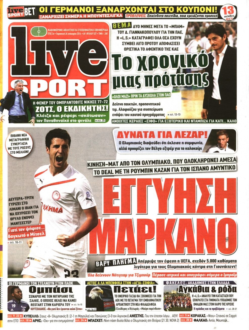 Οι αθλητικές εφημερίδες Enikos Newsroom 08:36, Παρασκευή 24 Ιανουαρίου 2014 Media Οι αθλητικές εφημερίδες Διαβάστε τα πρωτοσέλιδα των αθλητικών εφημερίδων: ΑΘΛΗΤΙΚΕΣ ΕΦΗΜΕΡΙΔΕΣ ΕΦΗΜΕΡΙΔΕΣ ΠΡΩΤΟΣΕΛΙΔΑ Μοιράσου το: σχολίασε κι εσύ (0 σχόλια) Ακολουθήστε το enikos.gr στο Google News και μάθετε πρώτοι όλες τις ειδήσεις Δείτε όλες τις τελευταίες ειδήσεις από την Ελλάδα και τον Κόσμο στο enikos.gr Ειδήσεις Ροή Ειδήσεων 6 ώρες πριν Εκτός ευρωομάδας ΣΥΡΙΖΑ ο Νίκος Παππάς μετά την επίθεση στον δημοσιογράφο Νίκο Γιαννόπουλο – Η μήνυση και οι νέες δηλώσεις 7 ώρες πριν «Αγριεύουν» οι αγρότες: «Δεν συντρέχει λόγος συνάντησης με τον πρωθυπουργό» – Ώρα αποφάσεων στη σύσκεψη της Πέμπτης 7 ώρες πριν Κυψέλη: Χωρίς την οικογένειά της δίπλα της απολογήθηκε η 16χρονη – «Της είχε επιτεθεί κάποιος για να την βιάσει, φοβήθηκε και κυκλοφορούσε με μαχαίρι» 6 ώρες πριν Politico: Το πρόβλημα της Ευρώπης δεν είναι το Βέλγιο αλλά ο Ντόναλντ Τραμπ 8 ώρες πριν Αλεξανδρούπολη: Πολυοργανική ανεπάρκεια λόγω υποσιτισμού η αιτία θανάτου του 3χρονου αγοριού 6 ώρες πριν Μυστήριο με τεράστιες κυκλικές πέτρες 200 κιλών – Ανακαλύφθηκαν τυχαία κατά τη διάρκεια οδικών έργων και κανείς δεν ξέρει από πού προέρχονται 7 ώρες πριν Ύπνος: Ειδικός εξηγεί τον πραγματικό λόγο που ξυπνάτε στις 4 τα ξημερώματα – Ο ρόλος των ορμονών και του κιρκάδιου ρυθμού 8 ώρες πριν Αριθμολογία: Οι άνθρωποι που έχουν γεννηθεί αυτές τις 4 ημερομηνίες, είναι τρυφεροί και αγαπούν ανιδιοτελώς 20 ώρες πριν 20 χρόνια τα Χριστούγεννα ξεκινούν στα Public με μεγάλη ποικιλία σε δώρα! 7 λεπτά πριν Το Ποντίκι σήμερα Πέμπτη 18/12/2025 11 λεπτά πριν Εφημερεύοντα φαρμακεία σε Αθήνα και Θεσσαλονίκη (18/12) 13 λεπτά πριν Αλεξάνδρα Ούστα: «Αυτό που με τρέλανε στον σύζυγό μου ήταν η ορθολογική του σκέψη» 21 λεπτά πριν Μιχάλης Αεράκης: «Της είπα “θέλω να κάνουμε σπιτικό, αλλά υπάρχουν τρεις προϋποθέσεις…”» 28 λεπτά πριν Αυστραλία: Κυβερνητική δέσμευση για αυστηρότερα μέτρα κατά της υποκίνησης μίσους ENIKOS NETWORK Αϋπνία: Το κόλπο που θα σας βοηθήσει να κοιμηθείτε απόψε – Είναι απλό και έχει αποτέλεσμα 2,6 εκατομμύρια πολίτες έχουν ήδη εμβολιαστεί κατά της γρίπης ΕΛΣΤΑΤ: Τι δείχνουν τα νέα στοιχεία για τις ηλεκτρονικές παραγγελίες των επιχειρήσεων ΚΕΠΕ: Οι 3 διακριτές συμβολές των ΜμΕ και της μεταποίησης στην ελληνική οικονομία Χαρτογραφώντας το «σημείο χωρίς επιστροφή»: Για πρώτη φορά αποκαλύπτεται με λεπτομέρεια το ακανθώδες όριο της ατμόσφαιρας τ... Η Google καταργεί τη λειτουργία «dark web report» – Πώς θα μπορούν οι χρήστες να διαγράφουν τα δεδομένα τους περισσότερα 05:22 , Πέμπτη 18 Δεκεμβρίου 2025 Το Ποντίκι σήμερα Πέμπτη 18/12/2025 Διαβάστε το πρωτοσέλιδο της εφημερίδας «Το Ποντίκι» σήμερα 18/12/2025. 02:30 , Πέμπτη 18 Δεκεμβρίου 2025 Αλ Τσαντίρι Νιουζ: Η κόρη της Πάολα στο κοινό – Η ατάκα Λαζόπουλου που την έκανε να «κοκκινήσει» Γιορτινή διάθεση και ευχάριστες στιγμές γέμισε η αποψινή, τελευταία για το 2025, εκπομπή του «... 22:24 , Τετάρτη 17 Δεκεμβρίου 2025 Το Σπίτι Δίπλα Στο Ποτάμι: Σε κίνδυνο η υγεία του Απόστολου – Τι θα δούμε απόψε “Το Σπίτι Δίπλα στο Ποτάμι” ξετυλίγει το νήμα της ζωής των πέντε αδελφών με καταισ... 21:14 , Τετάρτη 17 Δεκεμβρίου 2025 Παιχνίδια Εκδίκησης: Θα καταφέρει ο Χρήστος να κλονίσει την εμπιστοσύνη της Μάγιας απέναντι στον Άγη; Τα «Παιχνίδια Εκδίκησης» έρχονται απόψε στις 22:30, στον Αντ1, με το τελευταίο επεισόδιο της χ... ΤΕΛΕΥΤΑΙΕΣ ΕΙΔΗΣΕΙΣ 7 λεπτά πριν Το Ποντίκι σήμερα Πέμπτη 18/12/2025 11