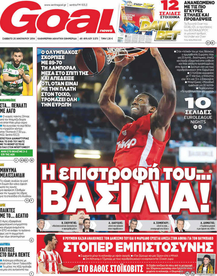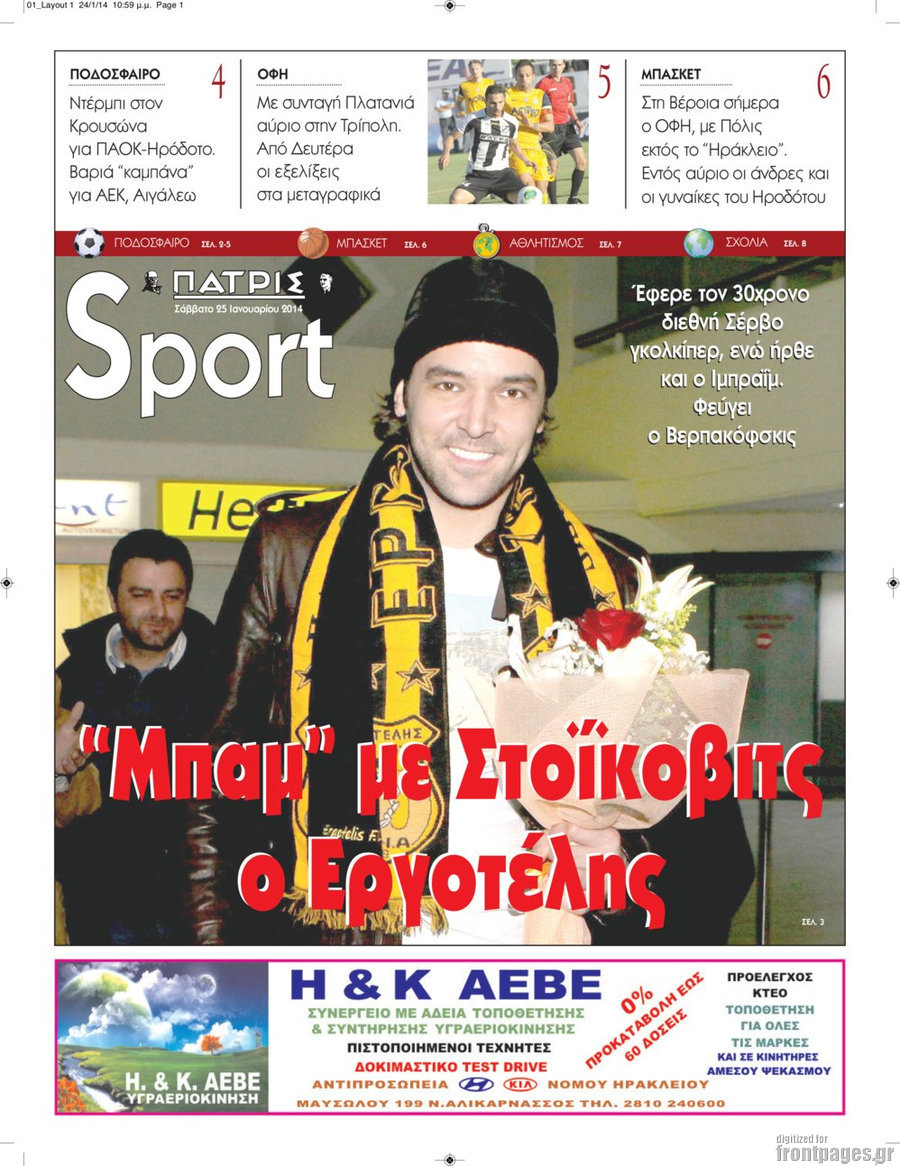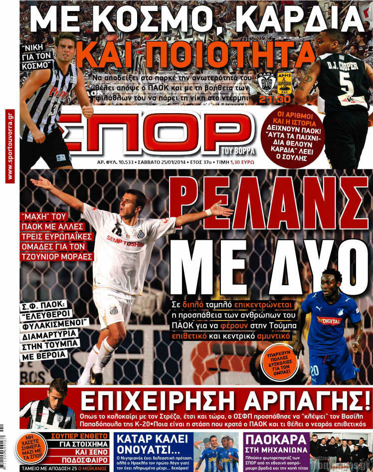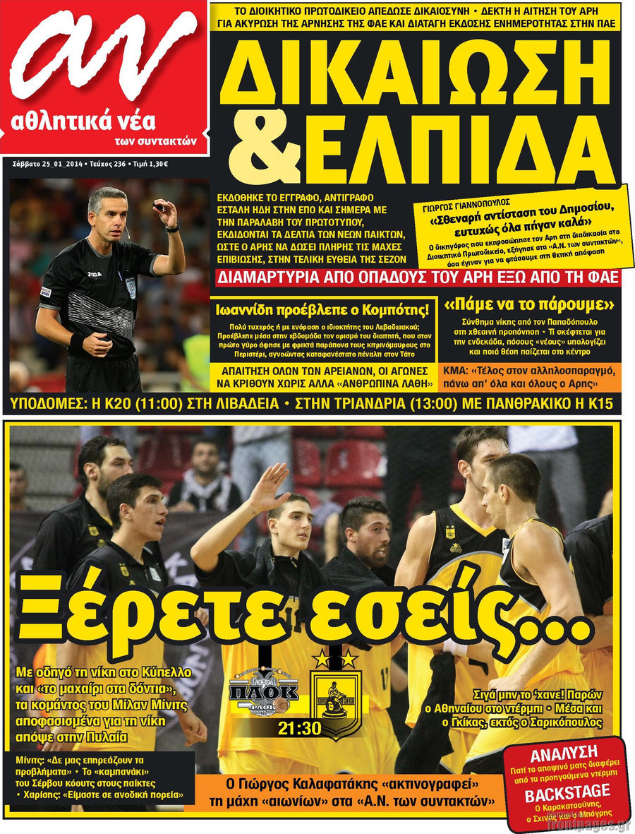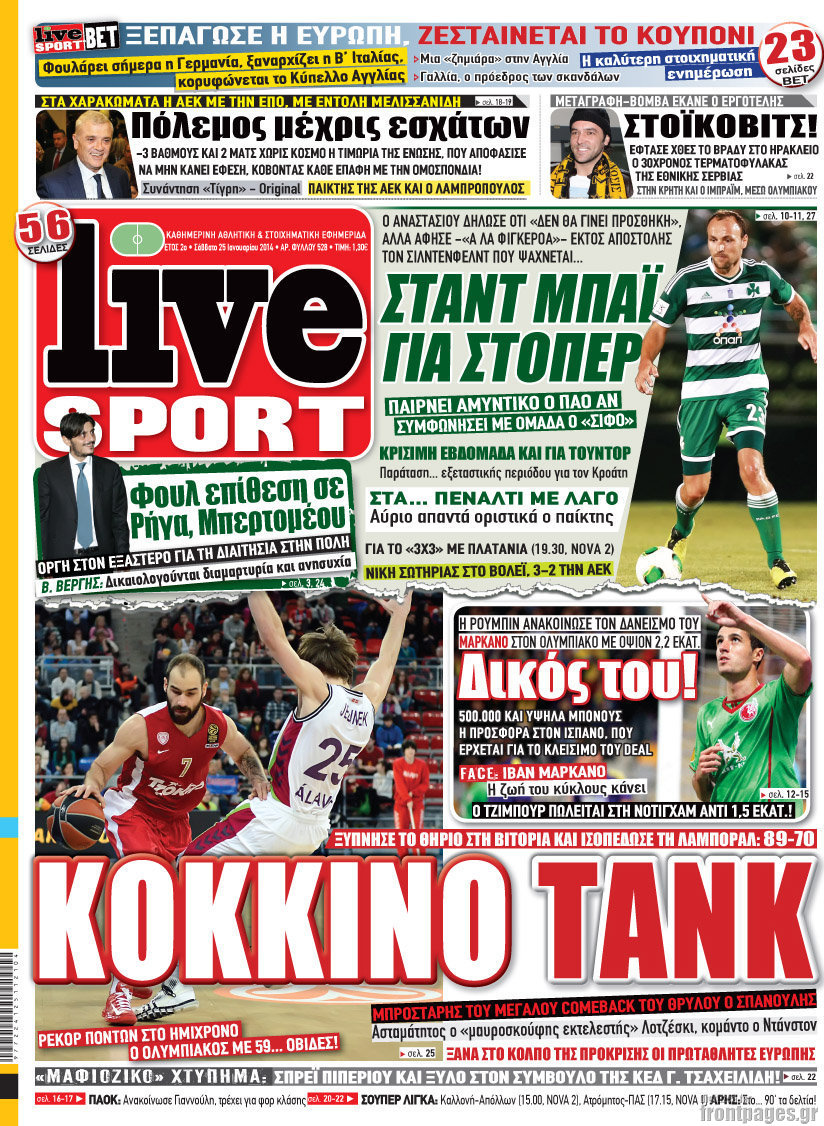 Οι αθλητικές εφημερίδες Enikos Newsroom 08:01, Σάββατο 25 Ιανουαρίου 2014 Media Οι αθλητικές εφημερίδες Διαβάστε τα πρωτοσέλιδα των αθλητικών εφημερίδων: ΑΘΛΗΤΙΚΕΣ ΕΦΗΜΕΡΙΔΕΣ ΠΡΩΤΟΣΕΛΙΔΑ Μοιράσου το: σχολίασε κι εσύ (0 σχόλια) Ακολουθήστε το enikos.gr στο Google News και μάθετε πρώτοι όλες τις ειδήσεις Δείτε όλες τις τελευταίες ειδήσεις από την Ελλάδα και τον Κόσμο στο enikos.gr Ειδήσεις Ροή Ειδήσεων 2 ώρες πριν Δημοσκόπηση Metron Analysis: Στις 10 μονάδες η διαφορά ΝΔ-ΠΑΣΟΚ, στην 3η θέση η Πλεύση Ελευθερίας – 8 στους 10 στηρίζουν τον αγώνα των αγροτών 6 ώρες πριν Αγρότες: «Όχι στον διάλογο, μας εμπαίζει η κυβέρνηση» – Αποφάσισαν κλιμάκωση των κινητοποιήσεων, τι θα γίνει τα Χριστούγεννα 2 ώρες πριν Νίκος Παππάς στον ΑΝΤ1: «Δεν κρύβομαι – Μετά το συμβάν ακολούθησα κανονικά το πρόγραμμά μου» – ΒΙΝΤΕΟ 3 ώρες πριν Αθήνα: Εξαρθρώθηκε εγκληματική οργάνωση που διακινούσε ναρκωτικά σε μορφή σοκολάτας – Δύο τράπερ ανάμεσα στους 4 συλληφθέντες – ΒΙΝΤΕΟ 2 ώρες πριν Διαμαντής Καραναστάσης: Οδηγούσε υπό την επήρεια αλκοόλ – Του αφαιρέθηκε το δίπλωμα και του επιβλήθηκε πρόστιμο 350 ευρώ 2 ώρες πριν Manifesting: Πώς να συναντήσετε τον σύντροφο της ζωής σας, ανάλογα με τον μήνα γέννησής σας 4 ώρες πριν Γάμος: 11 ψυχρές αλλά ευγενικές φράσεις, που λέει ένας άνδρας όταν σκέφτεται τον χωρισμό 3 ώρες πριν Σφουγγάρισμα: Η συνήθεια που θα σας βοηθήσει να διατηρήσετε το σπίτι σας καθαρό και τακτοποιημένο 2 ημέρες πριν 20 χρόνια τα Χριστούγεννα ξεκινούν στα Public με μεγάλη ποικιλία σε δώρα! 3 λεπτά πριν Στο ΟΑΚΑ για το «Παναθηναϊκός – Χάποελ » η Κίμπερλι Γκίλφοϊλ – ΦΩΤΟ 10 λεπτά πριν Ούρσουλα φον ντερ Λάιεν: Μετατίθεται για τον Ιανουάριο η υπογραφή της εμπορικής συμφωνίας «ΕΕ-MERCOSUR» 15 λεπτά πριν Φοινικούντα: Το Σάββατο απολογείται ο 30χρονος γιος γνωστού επιχειρηματία της Πλάκας που παραδόθηκε – Όσα είπε στους αστυνομικούς και ο ρόλος του στο έγκλημα 25 λεπτά πριν Αυξάνουν την πίεση προς την κυβέρνηση οι αγρότες: Κλείνουν παρακαμπτήριους και ανοίγουν διόδια – Τι θα γίνει τις γιορτές 30 λεπτά πριν Ελισάβετ Κωνσταντινίδου για τον Γεράσιμο Μιχελή και την Πόπη Χριστοδούλου: «Ξέρω ότι έχουν πάει απλώς κάπου αλλού, ότι δεν είναι ο θάνατος έτσι όπως τον έχουμε στο μυαλό μας» ENIKOS NETWORK Σε περίοδο αυξημένης δραστηριότητας η γρίπη στην Ελλάδα-Μέτρα προστασίας από τον ΕΟΔΥ Σκέφτεστε συνέχεια συζητήσεις που έχετε κάνει; Τι σημαίνει αυτό, σύμφωνα με ειδικό Λαγκάρντ: Αισιόδοξη για την ανάπτυξη της Ευρωζώνης, αβέβαιη για τον πληθωρισμό ΑΣΕΠ 2ΓΒ/2025: Σήμερα αρχίζει η υποβολή ενστάσεων – Πότε θα βγουν τα οριστικά αποτελέσματα Χαρτογραφώντας το «σημείο χωρίς επιστροφή»: Για πρώτη φορά αποκαλύπτεται με λεπτομέρεια το ακανθώδες όριο της ατμόσφαιρας τ... Η Google καταργεί τη λειτουργία «dark web report» – Πώς θα μπορούν οι χρήστες να διαγράφουν τα δεδομένα τους περισσότερα 17:45 , Πέμπτη 18 Δεκεμβρίου 2025 ROUK ZOUK: Εορταστικό επεισόδιο με καλεσμένους τους πρωταγωνιστές του «Γιατί ρε πατέρα» Το Σάββατο 20 Δεκεμβρίου στις 21:00, η Ζέτα Μακρυπούλια υποδέχεται εκλεκτούς ηθοποιούς που όλο... 17:20 , Πέμπτη 18 Δεκεμβρίου 2025 Άγιος έρωτας: Η Χριστίνα εξομολογείται στον πατέρα Νικόλαο, απόψε στις 21:00 στον Alpha Η Νότα αποφασίζει να εκδικηθεί τον Πέτρο και τον Στέφανο, για χάρη του Λούη, όμως τα πράγματα ... 16:50 , Πέμπτη 18 Δεκεμβρίου 2025 Να μ’ αγαπάς: Ζωή και Φωτεινή συμφιλιώνονται ως μάνα με κόρη, απόψε στις 20:00 Η ταυτότητα του Άγγελου αποκαλύπτεται στο νέο επεισόδιο της σε