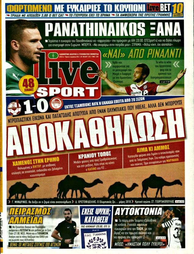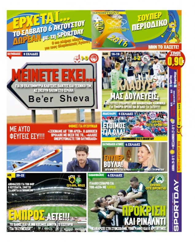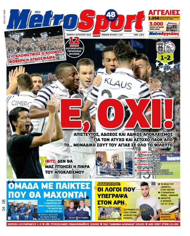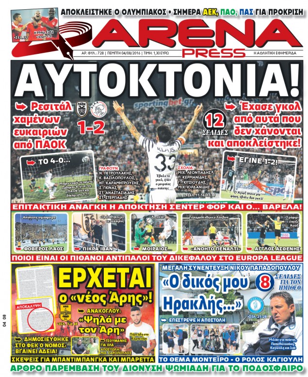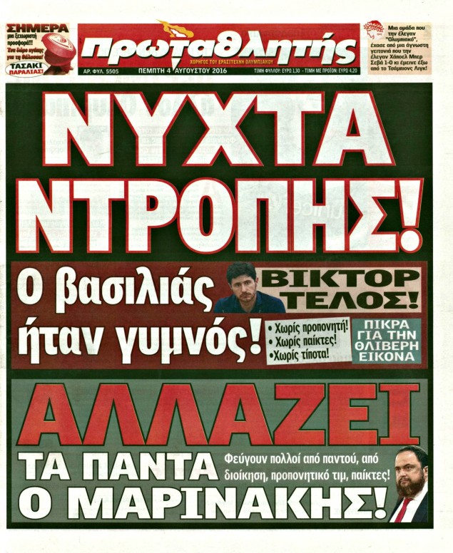 Oι αθλητικές εφημερίδες 4/8/2016 Enikos Newsroom 03:52, Πέμπτη 04 Αυγούστου 2016 Media Διαβάστε τα σημερινά πρωτοσέλιδα των αθλητικών εφημερίδων: ΑΘΛΗΤΙΚΕΣ ΕΦΗΜΕΡΙΔΕΣ ΠΡΩΤΟΣΕΛΙΔΑ Μοιράσου το: σχολίασε κι εσύ (0 σχόλια) Ακολουθήστε το enikos.gr στο Google News και μάθετε πρώτοι όλες τις ειδήσεις Δείτε όλες τις τελευταίες ειδήσεις από την Ελλάδα και τον Κόσμο στο enikos.gr Ειδήσεις Ροή Ειδήσεων 1 ώρα πριν Αγρότες: «Όχι στον διάλογο, μας εμπαίζει η κυβέρνηση» – Αποφάσισαν κλιμάκωση των κινητοποιήσεων, τι θα γίνει τα Χριστούγεννα 2 ώρες πριν Την πρώτη Belharra παρέλαβε η χώρα μας, υψώθηκε η ελληνική σημαία στη φρεγάτα «Κίμων» – Δένδιας: «Το ισχυρότερο Πολεμικό Ναυτικό που είχε ποτέ ο ελληνισμός» 4 ώρες πριν Γιώργος Μαζωνάκης: «Δεν ζήτησα χρήματα, παρά μόνο ηθική δικαίωση» – Οι πρώτες δηλώσεις του 21χρονου μετά την κατάθεση της μήνυσης 54 λεπτά πριν Μιχάλης Χουρδάκης: «Είμαι διαθέσιμος να συμβάλω στην προσωρινή κάλυψη του ιατρείου της Ψερίμου» – Η επιστολή στον Άδωνι Γεωργιάδη 1 ώρα πριν Εξώδικο Γεωργιάδη στην Κωνσταντοπούλου – «Με κατηγόρησε ότι έχω καταδικαστεί για παιδεραστία» 2 ώρες πριν Τα 5 ζώδια που θα ευνοηθούν στα οικονομικά τους το 2026 – «Τραβούν το χρήμα σαν μαγνήτες» 7 ώρες πριν Αν κάνετε συνεχώς αυτά τα 8 πράγματα με τα κατοικίδιά σας, σας λείπει η ανθρώπινη επαφή 3 ώρες πριν Αυτό που κρύβεται κάτω από τη Γροιλανδία θα μπορούσε να ανατρέψει όσα γνωρίζουμε για την άνοδο της στάθμης των θαλασσών 1 ημέρα πριν 20 χρόνια τα Χριστούγεννα ξεκινούν στα Public με μεγάλη ποικιλία σε δώρα! 2 λεπτά πριν Δίκη για υποκλοπές: Τη βίαιη προσαγωγή δύο μαρτύρων διέταξε το δικαστήριο – Τι κατέθεσε ο Τάσος Τέλλογλου 8 λεπτά πριν Σύνοδος Κορυφής: Οι Ευρωπαίοι συμφώνησαν να εξετάσουν την χρήση των ρωσικών περιουσιακών για την χρηματοδότηση της Ουκρανίας – Η δήλωση Ζελένσκι 13 λεπτά πριν Δένδιας: Έναρξη διαπραγματεύσεων για την ταχύτερη ανανέωση της Στρατηγικής Εταιρικής Σχέσης Ελλάδας – Γαλλίας 17 λεπτά πριν ROUK ZOUK: Εορταστικό επεισόδιο με καλεσμένους τους πρωταγωνιστές του «Γιατί ρε πατέρα» 23 λεπτά πριν Φιντάν: «Η Κυπριακή Δημοκρατία μας παρεμποδίζει όπου βρει την ευκαιρία» – Η πονηρή πρόταση που ανοίγει τον δρόμο για δύο κράτη ENIKOS NETWORK ΕΟΔΥ: Δωρεάν τεστ για HIV, Ηπατίτιδες, Σύφιλη, Χλαμύδια, Γονόρροια 100 χρόνια ΠΙΣ: Ένας αιώνας προσφοράς στην Ιατρική και την κοινωνία Χριστούγεννα και Πρωτοχρονιά: Δείτε πόσα χρήματα θα πάρουν ως αμοιβή όσοι εργαστούν Κρατική επιχορήγηση έως 14.500 ευρώ: Ποιοι θα λάβουν από σήμερα την προκαταβολή στον τραπεζικό λογαριασμό τους Χαρτογραφώντας το «σημείο χωρίς επιστροφή»: Για πρώτη φορά αποκαλύπτεται με λεπτομέρεια το ακανθώδες όριο της ατμόσφαιρας τ... Η Google καταργεί τη λειτουργία «dark web report» – Πώς θα μπορούν οι χρήστες να διαγράφουν τα δεδομένα τους περισσότερα 17:45 , Πέμπτη 18 Δεκεμβρίου 2025 ROUK ZOUK: Εορταστικό επεισόδιο με καλεσμένους τους πρωταγωνιστές του «Γιατί ρε πατέρα» Το Σάββατο 20 Δεκεμβρίου στις 21:00, η Ζέτα Μακρυπούλια υποδέχεται εκλεκτούς ηθοποιούς που όλο... 17:20 , Πέμπτη 18 Δεκεμβρίου 2025 Άγιος έρωτας: Η Χριστίνα εξομολογείται στον πατέρα Νικόλαο, απόψε στις 21:00 στον Alpha Η Νότα αποφασίζει να εκδικηθεί τον Πέτρο και τον Στέφανο, για χάρη του Λούη, όμως τα πράγματα ... 16:50 , Πέμπτη 18 Δεκεμβρίου 2025 Να μ’ αγαπάς: Ζωή και Φωτεινή συμφιλιώνονται ως μάνα με κόρη, απόψε στις 20:00 Η ταυτότητα του Άγγελου αποκαλύπτεται στο νέο επεισόδιο της σειράς “Να μ’ αγαπάς... 15:52 , Πέμπτη 