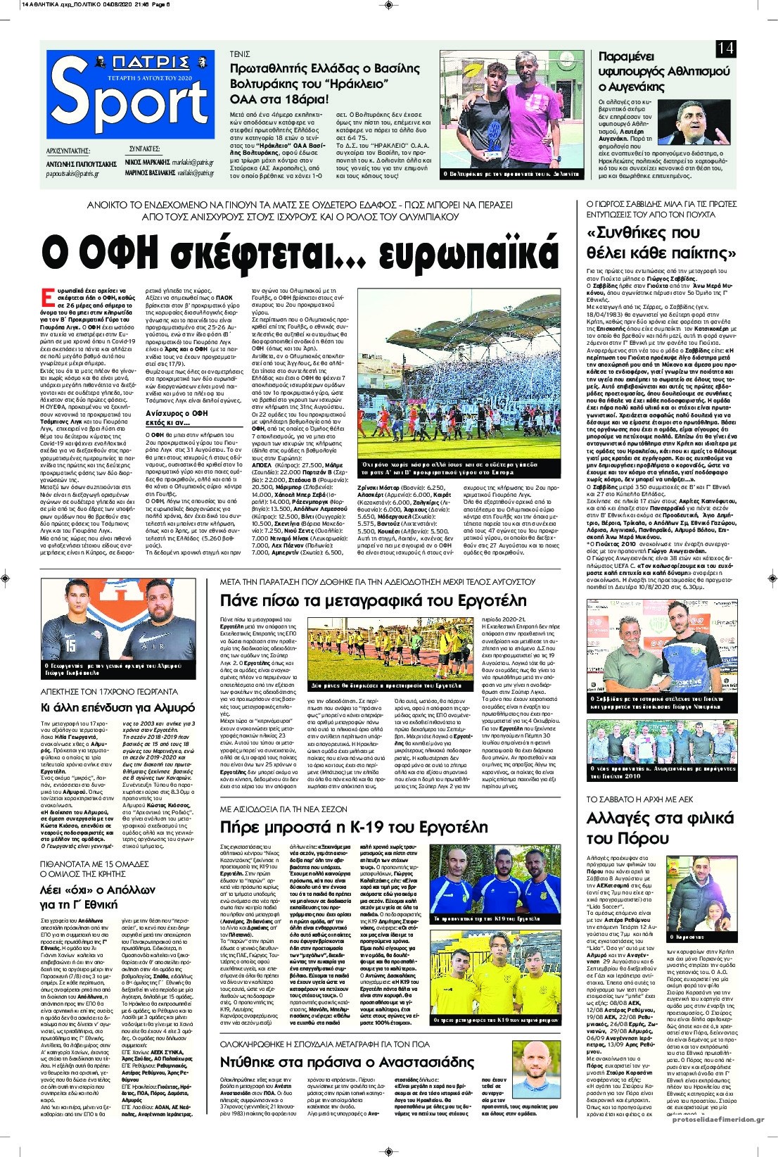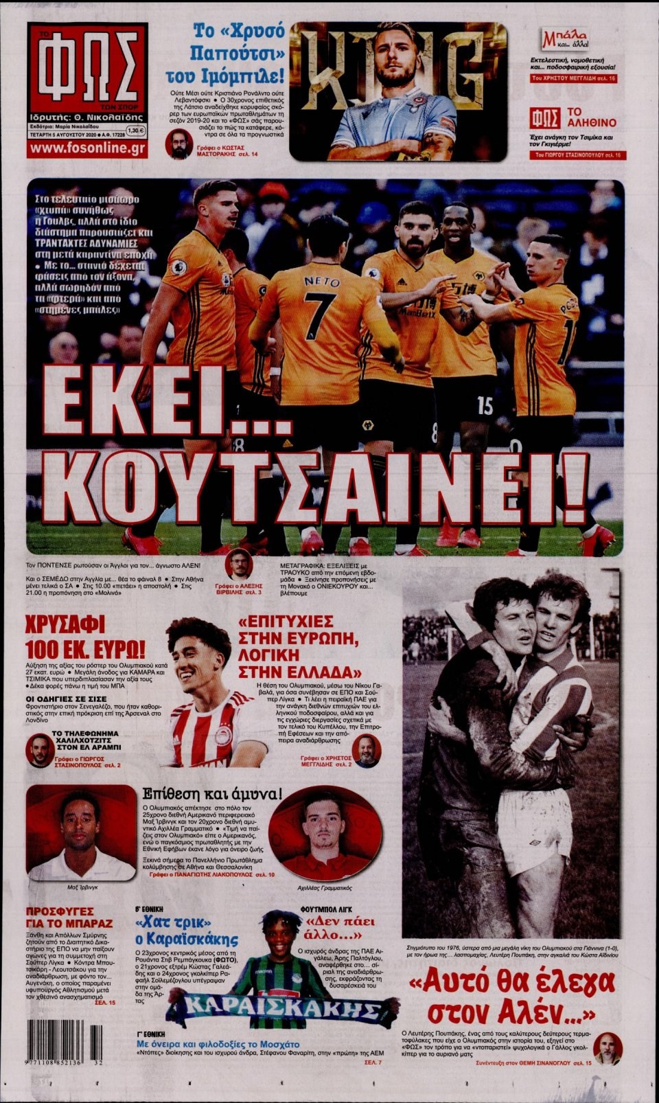 Οι αθλητικές εφημερίδες 5/8/2020 Σήφης Γαρυφαλάκης 06:27, Τετάρτη 05 Αυγούστου 2020 Media Διαβάστε τα πρωτοσέλιδα των αθλητικών εφημερίδων… ΑΘΛΗΤΙΚΕΣ ΕΦΗΜΕΡΙΔΕΣ ΕΦΗΜΕΡΙΔΕΣ ΠΡΩΤΟΣΕΛΙΔΑ ΠΡΩΤΟΣΕΛΙΔΑ ΕΦΗΜΕΡΙΔΩΝ Μοιράσου το: σχολίασε κι εσύ (0 σχόλια) Ακολουθήστε το enikos.gr στο Google News και μάθετε πρώτοι όλες τις ειδήσεις Δείτε όλες τις τελευταίες ειδήσεις από την Ελλάδα και τον Κόσμο στο enikos.gr Ειδήσεις Ροή Ειδήσεων 1 ώρα πριν Ευρωπαϊκή Ένωση: Συμφωνία για δάνειο 90 δισ. ευρώ στην Ουκρανία τη διετία 2026-2027 6 ώρες πριν ΟΠΕΚΕΠΕ: Προφυλακιστέος ο φερόμενος αρχηγός και ο λογιστής της εγκληματικής οργάνωσης 7 ώρες πριν Αυξάνουν την πίεση προς την κυβέρνηση οι αγρότες: Κλείνουν παρακαμπτήριους και ανοίγουν διόδια – Τι θα γίνει τις γιορτές 7 ώρες πριν Φοινικούντα: Το Σάββατο απολογείται ο 30χρονος γιος γνωστού επιχειρηματία της Πλάκας που παραδόθηκε – Όσα είπε στους αστυνομικούς και ο ρόλος του στο έγκλημα 5 ώρες πριν ΑΕΚ – Κραϊόβα 3-2: Επική ανατροπή και πρόκριση στους «16» του Conference League η Ένωση 6 ώρες πριν Αρχαιολόγοι ανακάλυψαν ρωμαϊκά τεχνουργήματα από μια πόλη που δεν υπήρξε ποτέ – Τα τρία εντυπωσιακά κτίρια και ο αμφορέας με τις… σαρδέλες 7 ώρες πριν Ύπνος: Η απλή βραδινή ρουτίνα για να προστατεύσετε τα μαλλιά σας από το κρύο κατά τη διάρκεια του χειμώνα 8 ώρες πριν Manifesting: Πώς να συναντήσετε τον σύντροφο της ζωής σας, ανάλογα με τον μήνα γέννησής σας 2 ημέρες πριν 20 χρόνια τα Χριστούγεννα ξεκινούν στα Public με μεγάλη ποικιλία σε δώρα! 6 λεπτά πριν Η TikTok στις ΗΠΑ πωλείται σε Oracle, Silver Lake και MGX – Οι λεπτομέρειες του «deal» 15 λεπτά πριν Αλεξάντερ Λουκασένκο: Η Λευκορωσία βρίσκεται κοντά στην αποκατάσταση των σχέσεών της με τις ΗΠΑ 30 λεπτά πριν Αυστραλία: Κήρυξε την Κυριακή (21/12) ημέρα εθνικού πένθους για τη φονική επίθεση στην παραλία Μπόνταϊ 40 λεπτά πριν Ρόδος: Δάσκαλος καράτε καταδικάστηκε για ασέλγεια σε ανήλικες αθλήτριες – Μαρτυρίες για αγγίγματα σε ευαίσθητα σημεία 54 λεπτά πριν Γουατεμάλα: Εξαρθρώθηκε κύκλωμα διακίνησης μεταναστών προς τις ΗΠΑ – Συνελήφθησαν 14 άτομα ENIKOS NETWORK Σε περίοδο αυξημένης δραστηριότητας η γρίπη στην Ελλάδα-Μέτρα προστασίας από τον ΕΟΔΥ Σκέφτεστε συνέχεια συζητήσεις που έχετε κάνει; Τι σημαίνει αυτό, σύμφωνα με ειδικό Στεγαστικό: Τι λέει η ΠΟΜΙΔΑ για τα νέα μέτρα που ανακοίνωσε ο Κυριάκος Μητσοτάκης Λαγκάρντ: Αισιόδοξη για την ανάπτυξη της Ευρωζώνης, αβέβαιη για τον πληθωρισμό Χαρτογραφώντας το «σημείο χωρίς επιστροφή»: Για πρώτη φορά αποκαλύπτεται με λεπτομέρεια το ακανθώδες όριο της ατμόσφαιρας τ... Η Google καταργεί τη λειτουργία «dark web report» – Πώς θα μπορούν οι χρήστες να διαγράφουν τα δεδομένα τους περισσότερα 02:50 , Παρασκευή 19 Δεκεμβρίου 2025 GNTM: «Κλείδωσαν» οι τέσσερις φιναλίστ – Μεγάλη ανατροπή στις τελευταίες αποχωρήσεις Για προτελευταία φορά εμφανίστηκαν στο πλατό του GNTM οι φιναλίστ του φετινού κύκλου, το βράδυ... 17:45 , Πέμπτη 18 Δεκεμβρίου 2025 ROUK ZOUK: Εορταστικό επεισόδιο με καλεσμένους τους πρωταγωνιστές του «Γιατί ρε πατέρα» Το Σάββατο 20 Δεκεμβρίου στις 21:00, η Ζέτα Μακρυπούλια υποδέχεται εκλεκτούς ηθοποιούς που όλο... 17:20 , Πέμπτη 18 Δεκεμβρίου 2025 Άγιος έρωτας: Η Χριστίνα εξομολογείται στον πατέρα Νικόλαο, απόψε στις 21:00 στον Alpha Η Νότα αποφασίζει να εκδικηθεί τον Πέτρο και τον Στέφανο, για χάρη του Λούη, όμως τα πράγματα ... 16:50 , Πέμπτη 18 Δεκεμβρίου 2025 Να μ’ αγαπάς: Ζωή και Φωτεινή συμφιλιώνονται ως μάνα με κόρη, απόψε στις 20:00 Η ταυτότητα τ