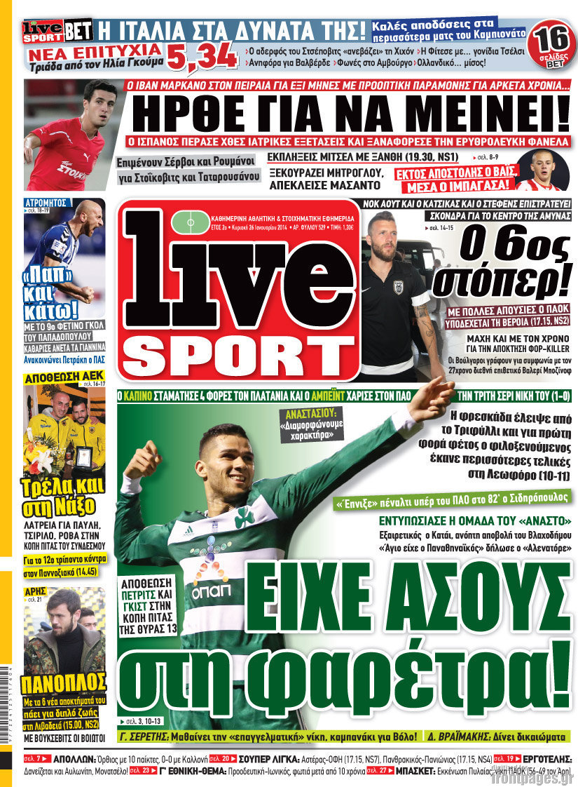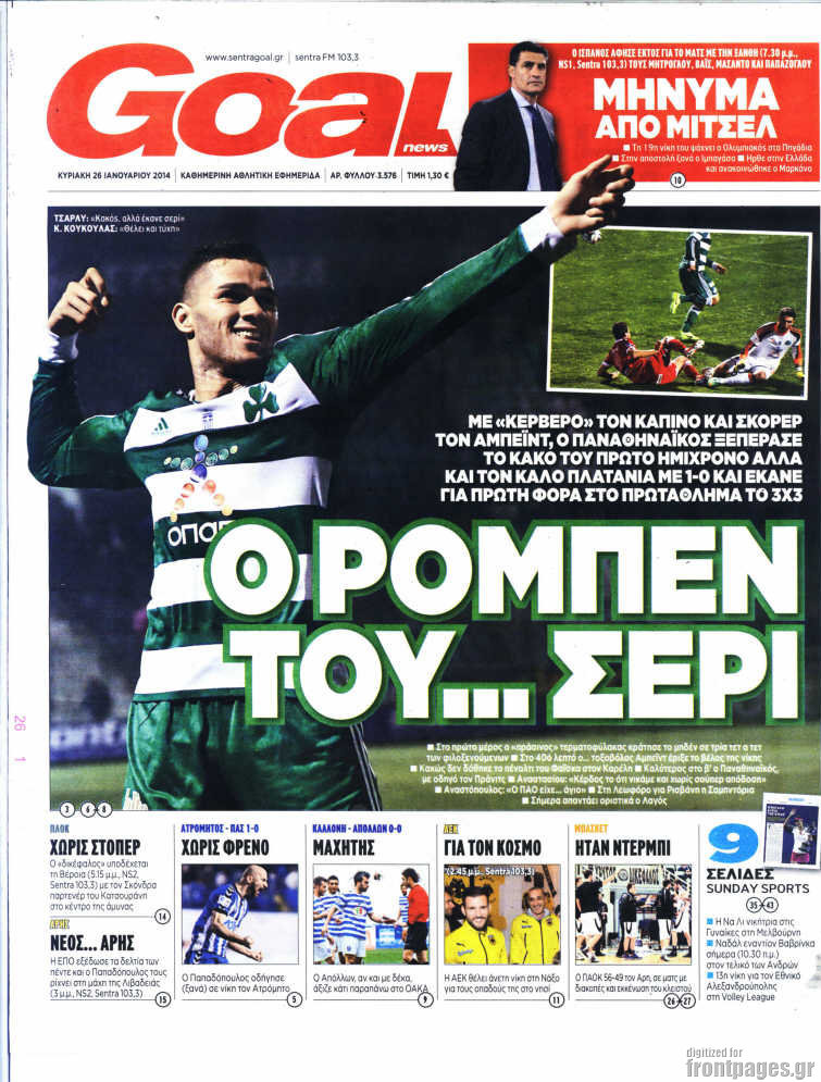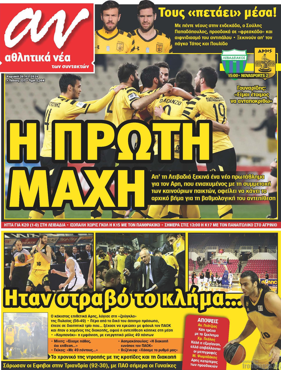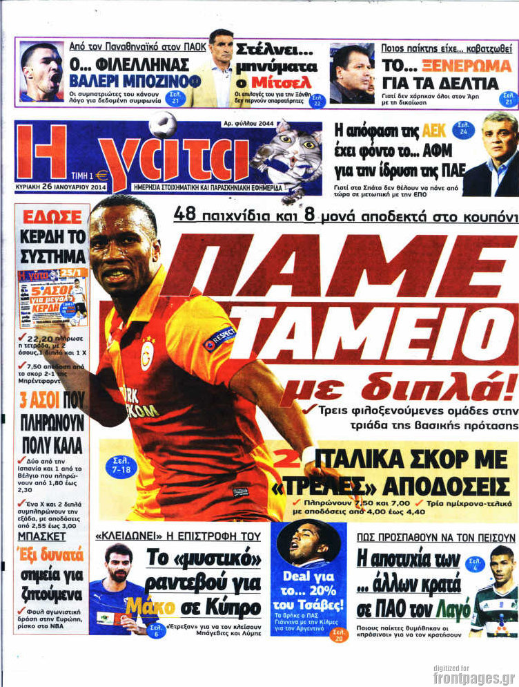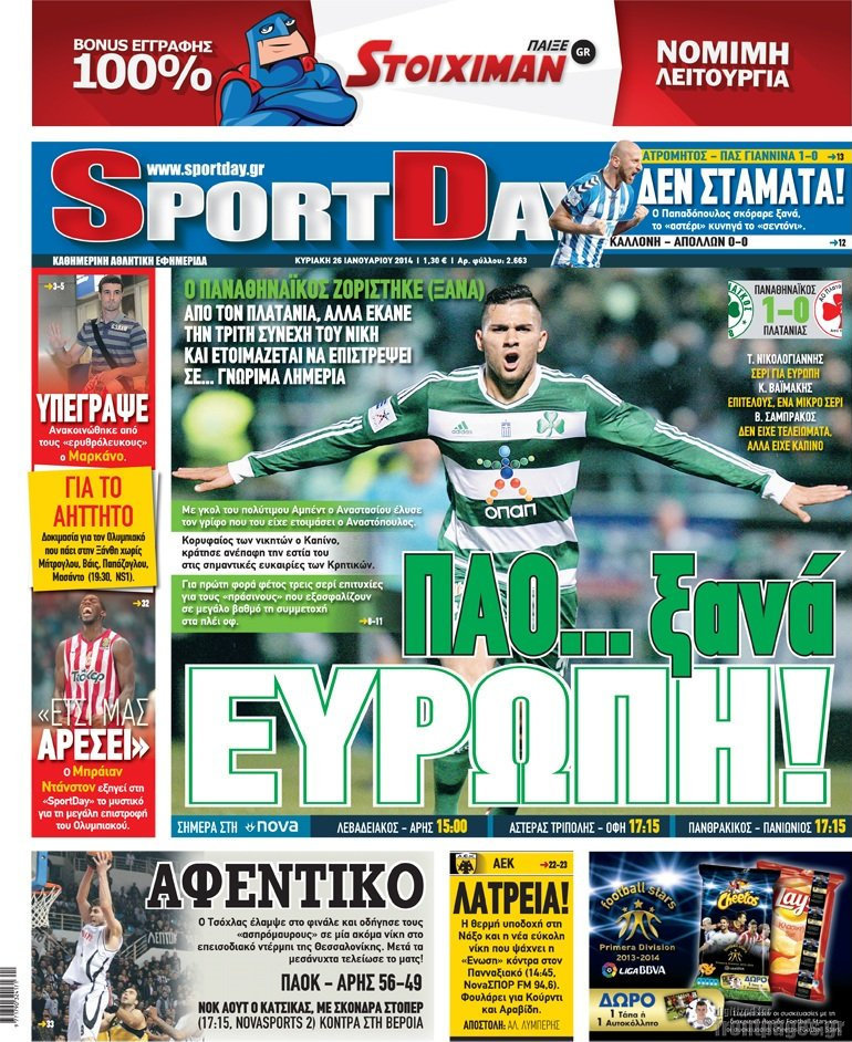 Οι αθλητικές εφημερίδες Enikos Newsroom 08:04, Κυριακή 26 Ιανουαρίου 2014 Media Οι αθλητικές εφημερίδες Διαβάστε τα πρωτοσέλιδα των αθλητικών εφημερίδων: ΑΘΛΗΤΙΚΕΣ ΕΦΗΜΕΡΙΔΕΣ ΠΡΩΤΟΣΕΛΙΔΑ Μοιράσου το: σχολίασε κι εσύ (0 σχόλια) Ακολουθήστε το enikos.gr στο Google News και μάθετε πρώτοι όλες τις ειδήσεις Δείτε όλες τις τελευταίες ειδήσεις από την Ελλάδα και τον Κόσμο στο enikos.gr Ειδήσεις Ροή Ειδήσεων 2 ώρες πριν Υπόθεση Έπσταϊν: Το Υπουργείο Δικαιοσύνης δημοσιοποίησε μια σειρά από εξαιρετικά επεξεργασμένα αρχεία – «Λείπουν τα πιο σημαντικά έγγραφα», λένε οι Δημοκρατικοί 1 ώρα πριν Ο «χάρτης» με τις αυξήσεις και τις φοροελαφρύνσεις του 2026 – Ποιοι και πόσα κερδίζουν 11 ώρες πριν Χριστούγεννα στα μπλόκα: Επιμένουν στις κινητοποιήσεις τους οι αγρότες – Ανοίγουν τα διόδια το Σαββατοκύριακο 2 ώρες πριν ΟΝΕΧ – MEGATUGS: Ξεκίνησε η ναυπήγηση ρυμουλκών στην Ελλάδα – Προθάλαμος πολεμικών πλοίων – Δείτε φωτογραφίες και βίντεο 2 ώρες πριν Καιρός: Αλλαγή σκηνικού σήμερα με βροχές και πτώση της θερμοκρασίας – Οι προβλέψεις των μετεωρολόγων για τα Χριστούγεννα 4 ώρες πριν Αυγά: Πόσα μπορείτε να τρώτε την ημέρα με ασφάλεια για μέγιστη πρόσληψη πρωτεΐνης 3 ώρες πριν Οπτική ψευδαίσθηση: Μόνο αν είσαι ο Σέρλοκ Χολμς θα βρεις τον αριθμό «87» σε 7 δευτερόλεπτα 2 ώρες πριν Αρχαιολόγοι ανακάλυψαν σε χωράφι απεικόνιση 600 ετών ενός Αγίου – Τα στοιχεία που δείχνουν ότι μαρτύρησε 39 λεπτά πριν Αγχώνεται για το χριστουγεννιάτικο δώρο που πήρε στην πλούσια σύντροφό του – «Φοβάμαι πως θα το βρει φθηνιάρικο, φοράει βραχιόλια Cartier» 6 λεπτά πριν Θεσσαλονίκη: 24ωρη λειτουργία σήμερα σε μετρό και 6 λεωφορειακές γραμμές 13 λεπτά πριν «Porto Leone: Στη γειτονιά με τα κόκκινα φανάρια» – Ο Χρόνης αποκαλύπτει στην Αλεξάνδρα το μυστικό για το παιδί της Λένας 22 λεπτά πριν Νέες αιτήσεις για ίδρυση μη κρατικών πανεπιστημίων στο πρώτο δίμηνο του 2026 – Τι είπε η Ζαχαράκη 30 λεπτά πριν Ουκρανία: Drones έπληξαν εξέδρα πετρελαίου και πολεμικό πλοίο της Ρωσίας στην Κασπία 38 λεπτά πριν Παιδική υπέρταση: Μια σιωπηλή απειλή που αυξάνεται διεθνώς ENIKOS NETWORK Πόσα κιλά παίρνουμε πραγματικά τα Χριστούγεννα, σύμφωνα με την επιστήμη – Πώς να το αποτρέψουμε; Το δημοφιλές ρόφημα που αυξάνει την πίεση πιο γρήγορα και από το αλάτι Mega χριστουγεννιάτικη φορολοταρία: «Κλείδωσε» η ημερομηνία για την κλήρωση – Ερωτήσεις και απαντήσεις Αναστολή μέτρων αναγκαστικής εκτέλεσης για κτηνοτρόφους που πλήττονται από την ευλογιά των αιγοπροβάτων Χαρτογραφώντας το «σημείο χωρίς επιστροφή»: Για πρώτη φορά αποκαλύπτεται με λεπτομέρεια το ακανθώδες όριο της ατμόσφαιρας τ... Η Google καταργεί τη λειτουργία «dark web report» – Πώς θα μπορούν οι χρήστες να διαγράφουν τα δεδομένα τους περισσότερα 09:30 , Σάββατο 20 Δεκεμβρίου 2025 «Porto Leone: Στη γειτονιά με τα κόκκινα φανάρια» – Ο Χρόνης αποκαλύπτει στην Αλεξάνδρα το μυστικό για το παιδί της Λένας Η μεγάλη δραματική σειρά του Apha «Porto Leone: Στη γειτονιά με τα κόκκινα φανάρια» μας μεταφέ... 08:14 , Σάββατο 20 Δεκεμβρίου 2025 Τρομεροί γονείς: Η Μαρία Καβογιάννη εισβάλλει στο σπίτι της οικογένειας Στεφανίδη Όσα θα δούμε στο νέο διπλό επεισόδιο της σειράς «Τρομεροί γονείς», σήμερα Σάββατο 20 Δεκεμβρίο... 05:48 , Σάββατο 20 Δεκεμβρίου 2025 Οι οικονομικές εφημερίδες 20/12/2025 Διαβάστε τα πρωτοσέλιδα από τις οικονομικές εφημερίδες, σήμερα 20/12/2025. 05:43 , Σάββατο 20 Δεκεμβρίου 2025 Οι αθλητικές εφημερίδες 20/12/2025 Διαβάστε τα πρωτοσέλιδα από τις αθλητικές ε