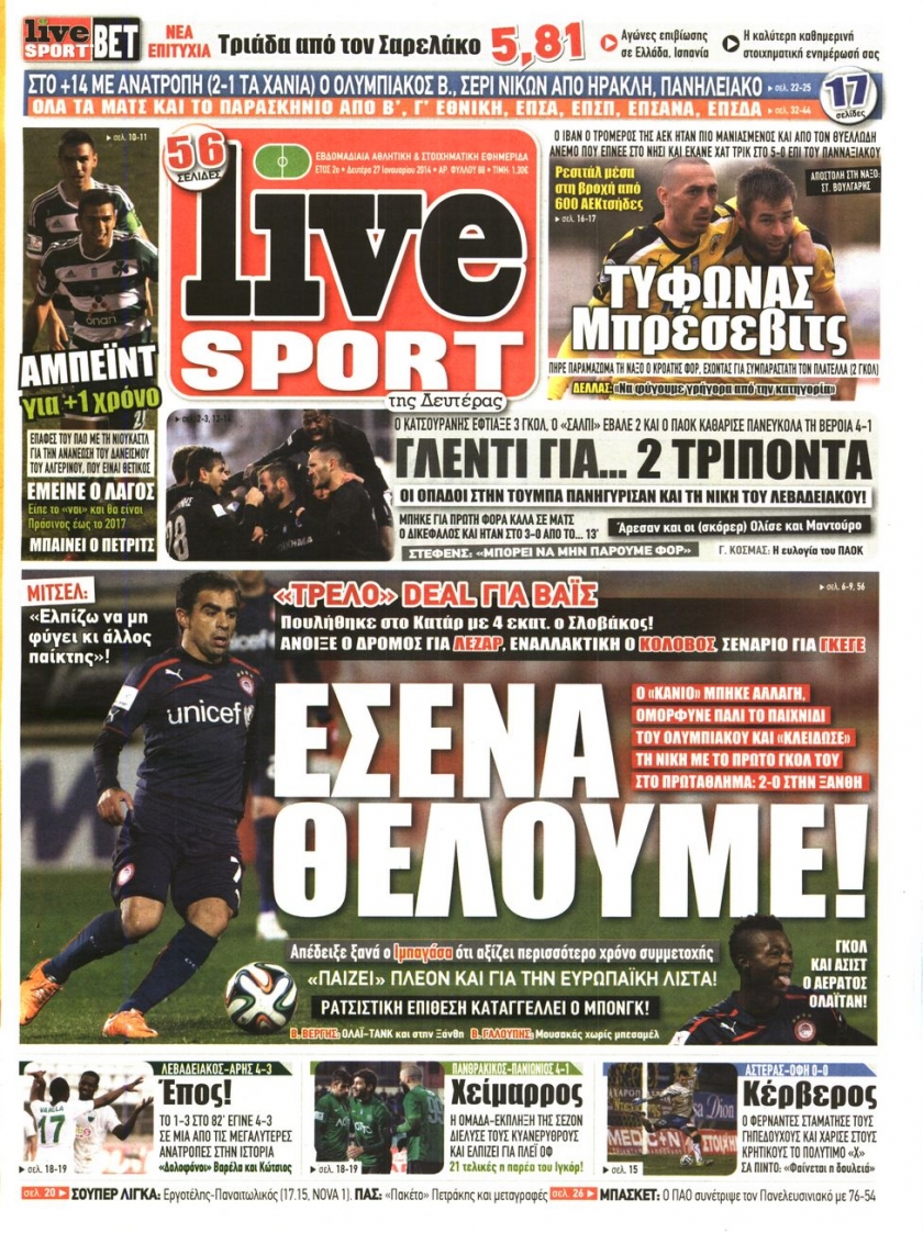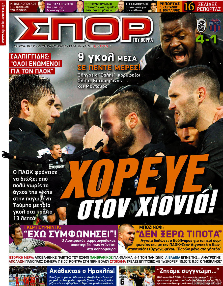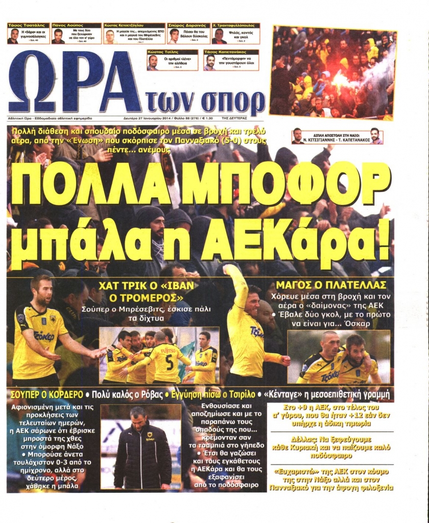 Οι αθλητικές εφημερίδες Enikos Newsroom 08:28, Δευτέρα 27 Ιανουαρίου 2014 Media Οι αθλητικές εφημερίδες Διαβάστε τα πρωτοσέλιδα των αθλητικών εφημερίδων: ΑΘΛΗΤΙΚΕΣ ΕΦΗΜΕΡΙΔΕΣ ΕΦΗΜΕΡΙΔΕΣ ΠΡΩΤΟΣΕΛΙΔΑ Μοιράσου το: σχολίασε κι εσύ (0 σχόλια) Ακολουθήστε το enikos.gr στο Google News και μάθετε πρώτοι όλες τις ειδήσεις Δείτε όλες τις τελευταίες ειδήσεις από την Ελλάδα και τον Κόσμο στο enikos.gr Ειδήσεις Ροή Ειδήσεων 49 λεπτά πριν Εκτός ευρωομάδας ΣΥΡΙΖΑ ο Νίκος Παππάς μετά την επίθεση στον δημοσιογράφο Νίκο Γιαννόπουλο – Η μήνυση και οι νέες δηλώσεις 1 ώρα πριν «Αγριεύουν» οι αγρότες: «Δεν συντρέχει λόγος συνάντησης με τον πρωθυπουργό» – Ώρα αποφάσεων στη σύσκεψη της Πέμπτης 1 ώρα πριν Κυψέλη: Χωρίς την οικογένειά της δίπλα της απολογήθηκε η 16χρονη – «Της είχε επιτεθεί κάποιος για να την βιάσει, φοβήθηκε και κυκλοφορούσε με μαχαίρι» 44 λεπτά πριν Politico: Το πρόβλημα της Ευρώπης δεν είναι το Βέλγιο αλλά ο Ντόναλντ Τραμπ 2 ώρες πριν Αλεξανδρούπολη: Πολυοργανική ανεπάρκεια λόγω υποσιτισμού η αιτία θανάτου του 3χρονου αγοριού 1 ώρα πριν Μυστήριο με τεράστιες κυκλικές πέτρες 200 κιλών – Ανακαλύφθηκαν τυχαία κατά τη διάρκεια οδικών έργων και κανείς δεν ξέρει από πού προέρχονται 2 ώρες πριν Ύπνος: Ειδικός εξηγεί τον πραγματικό λόγο που ξυπνάτε στις 4 τα ξημερώματα – Ο ρόλος των ορμονών και του κιρκάδιου ρυθμού 3 ώρες πριν Αριθμολογία: Οι άνθρωποι που έχουν γεννηθεί αυτές τις 4 ημερομηνίες, είναι τρυφεροί και αγαπούν ανιδιοτελώς 15 ώρες πριν 20 χρόνια τα Χριστούγεννα ξεκινούν στα Public με μεγάλη ποικιλία σε δώρα! 14 λεπτά πριν Ελένη Κρίτα για το reunion του «Παρά Πέντε»: «Ήταν πραγματικά σαν να μην είχαμε χαθεί ποτέ» 28 λεπτά πριν Κύπελλο Ελλάδας: Αυτά είναι τα ζευγάρια στα νοκ-άουτ, οι διασταυρώσεις στους «8» κι ο δρόμος προς τον τελικό 44 λεπτά πριν Politico: Το πρόβλημα της Ευρώπης δεν είναι το Βέλγιο αλλά ο Ντόναλντ Τραμπ 49 λεπτά πριν Εκτός ευρωομάδας ΣΥΡΙΖΑ ο Νίκος Παππάς μετά την επίθεση στον δημοσιογράφο Νίκο Γιαννόπουλο – Η μήνυση και οι νέες δηλώσεις 49 λεπτά πριν Κύπελλο Ελλάδας: Η Μαρκό έστειλε τον ΠΑΟΚ στον Ολυμπιακό… μέσω Ατρόμητου ENIKOS NETWORK Αϋπνία: Το κόλπο που θα σας βοηθήσει να κοιμηθείτε απόψε – Είναι απλό και έχει αποτέλεσμα 2,6 εκατομμύρια πολίτες έχουν ήδη εμβολιαστεί κατά της γρίπης ΕΛΣΤΑΤ: Τι δείχνουν τα νέα στοιχεία για τις ηλεκτρονικές παραγγελίες των επιχειρήσεων ΚΕΠΕ: Οι 3 διακριτές συμβολές των ΜμΕ και της μεταποίησης στην ελληνική οικονομία Χαρτογραφώντας το «σημείο χωρίς επιστροφή»: Για πρώτη φορά αποκαλύπτεται με λεπτομέρεια το ακανθώδες όριο της ατμόσφαιρας τ... Η Google καταργεί τη λειτουργία «dark web report» – Πώς θα μπορούν οι χρήστες να διαγράφουν τα δεδομένα τους περισσότερα 22:24 , Τετάρτη 17 Δεκεμβρίου 2025 Το Σπίτι Δίπλα Στο Ποτάμι: Σε κίνδυνο η υγεία του Απόστολου – Τι θα δούμε απόψε “Το Σπίτι Δίπλα στο Ποτάμι” ξετυλίγει το νήμα της ζωής των πέντε αδελφών με καταισ... 21:14 , Τετάρτη 17 Δεκεμβρίου 2025 Παιχνίδια Εκδίκησης: Θα καταφέρει ο Χρήστος να κλονίσει την εμπιστοσύνη της Μάγιας απέναντι στον Άγη; Τα «Παιχνίδια Εκδίκησης» έρχονται απόψε στις 22:30, στον Αντ1, με το τελευταίο επεισόδιο της χ... 20:57 , Τετάρτη 17 Δεκεμβρίου 2025 Άγιος Έρωτας: Η Χλόη καταθέτει εναντίον του πατέρα της και ο Χάρης αποκαλύπτει στον Κλεάνθη ότι δεν είναι ο βιολογικός του πατέρας. Γεμάτο αποκαλύψεις είναι το νέο επεισόδιο της σειράς “Άγιος Έρωτας” απόψε στις 21:... 20:15 , Τετάρτη 17 Δεκεμβρίου 2025 Η ανακοίνωση τ