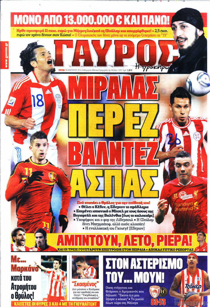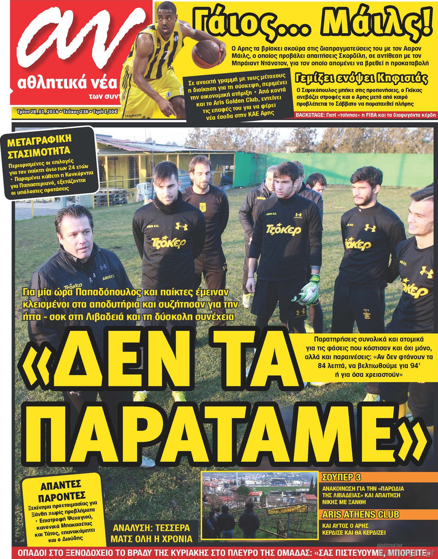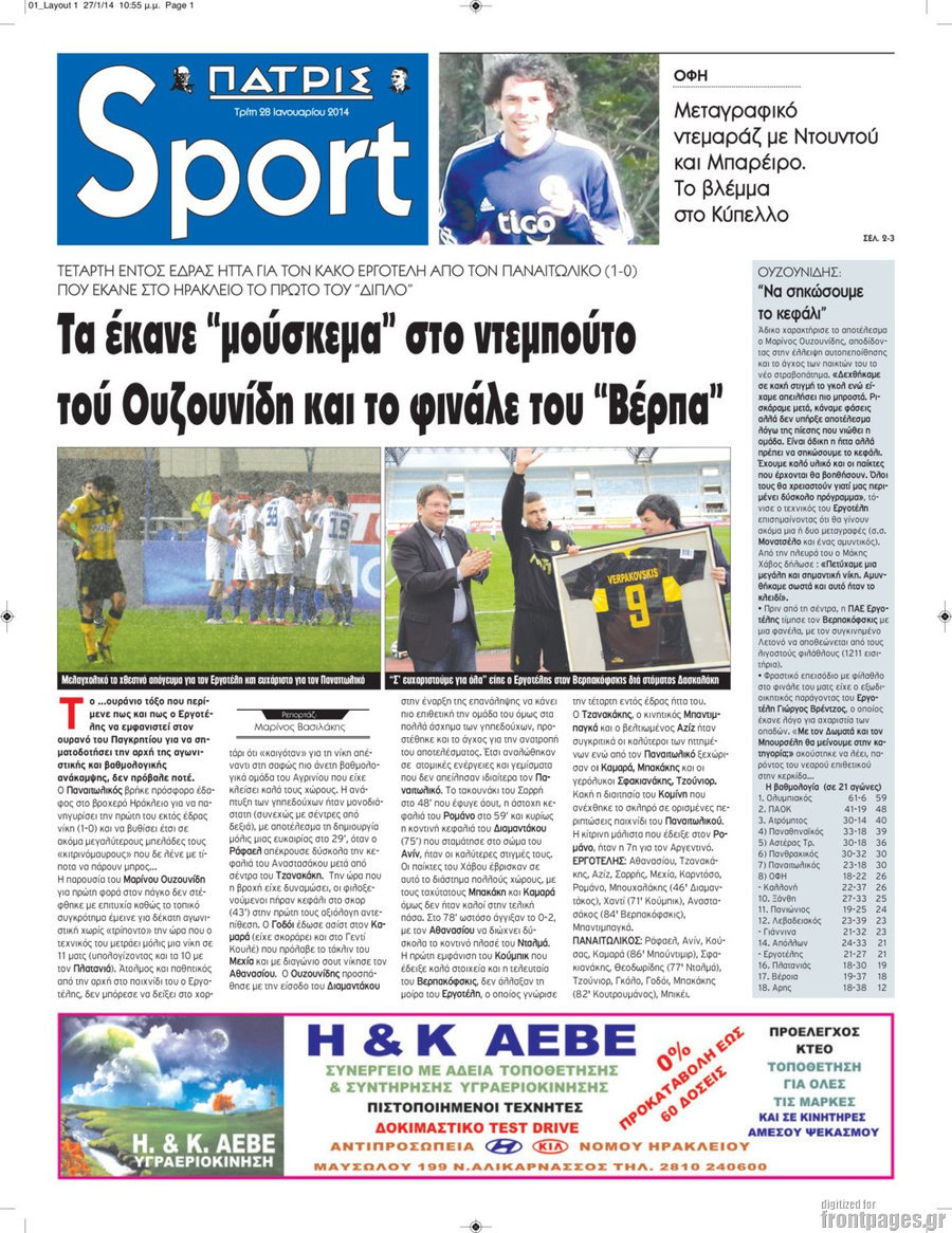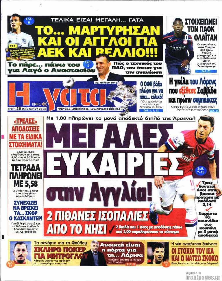 Οι αθλητικές εφημερίδες Enikos Newsroom 08:19, Τρίτη 28 Ιανουαρίου 2014 Media Οι αθλητικές εφημερίδες Διαβάστε τα πρωτοσέλιδα των αθλητικών εφημερίδων: ΑΘΛΗΤΙΚΕΣ ΕΦΗΜΕΡΙΔΕΣ ΠΡΩΤΟΣΕΛΙΔΑ Μοιράσου το: σχολίασε κι εσύ (0 σχόλια) Ακολουθήστε το enikos.gr στο Google News και μάθετε πρώτοι όλες τις ειδήσεις Δείτε όλες τις τελευταίες ειδήσεις από την Ελλάδα και τον Κόσμο στο enikos.gr Ειδήσεις Ροή Ειδήσεων 2 ώρες πριν Αυξάνουν την πίεση προς την κυβέρνηση οι αγρότες: Κλείνουν παρακαμπτήριους και ανοίγουν διόδια – Τι θα γίνει τις γιορτές 1 ώρα πριν ΟΠΕΚΕΠΕ: Προφυλακιστέος ο φερόμενος αρχηγός και ο λογιστής της εγκληματικής οργάνωσης 2 ώρες πριν Φοινικούντα: Το Σάββατο απολογείται ο 30χρονος γιος γνωστού επιχειρηματία της Πλάκας που παραδόθηκε – Όσα είπε στους αστυνομικούς και ο ρόλος του στο έγκλημα 2 ώρες πριν Μπορεί ο Μαδούρο να αντέξει τον αποκλεισμό του Τραμπ; Τι θα χρειαστεί η Ουάσινγκτον για να τον ανατρέψει 3 ώρες πριν Πρίγκιπας Ουίλιαμ – Κέιτ: Η νέα οικογενειακή φωτογραφία για τις Χριστουγεννιάτικες κάρτες του 2025 3 ώρες πριν Ύπνος: Η απλή βραδινή ρουτίνα για να προστατεύσετε τα μαλλιά σας από το κρύο κατά τη διάρκεια του χειμώνα 4 ώρες πριν Manifesting: Πώς να συναντήσετε τον σύντροφο της ζωής σας, ανάλογα με τον μήνα γέννησής σας 2 ημέρες πριν 20 χρόνια τα Χριστούγεννα ξεκινούν στα Public με μεγάλη ποικιλία σε δώρα! 2 ώρες πριν Αρχαιολόγοι ανακάλυψαν ρωμαϊκά τεχνουργήματα από μια πόλη που δεν υπήρξε ποτέ – Τα τρία εντυπωσιακά κτίρια και ο αμφορέας με τις… σαρδέλες 15 λεπτά πριν Βαθμολογία UEFA: Η Πολωνία προσπέρασε την Ελλάδα 32 λεπτά πριν Conference League: Οι ομάδες που προκρίθηκαν στους «16» και τα «ζευγαρώματα» στα νοκ άουτ 40 λεπτά πριν ΑΕΚ – Κραϊόβα 3-2: Επική ανατροπή και πρόκριση στους «16» του Conference League η Ένωση 1 ώρα πριν ΟΠΕΚΕΠΕ: Προφυλακιστέος ο φερόμενος αρχηγός και ο λογιστής της εγκληματικής οργάνωσης 1 ώρα πριν Αθηνά Μαξίμου: Η τρυφερή ανάρτηση για τα γενέθλια του Αιμίλιου Χειλάκη – «Είναι η εκλεκτική συγγένειά μου, η επιλογή και η ευθύνη μου» ENIKOS NETWORK Σε περίοδο αυξημένης δραστηριότητας η γρίπη στην Ελλάδα-Μέτρα προστασίας από τον ΕΟΔΥ Σκέφτεστε συνέχεια συζητήσεις που έχετε κάνει; Τι σημαίνει αυτό, σύμφωνα με ειδικό Στεγαστικό: Τι λέει η ΠΟΜΙΔΑ για τα νέα μέτρα που ανακοίνωσε ο Κυριάκος Μητσοτάκης Λαγκάρντ: Αισιόδοξη για την ανάπτυξη της Ευρωζώνης, αβέβαιη για τον πληθωρισμό Χαρτογραφώντας το «σημείο χωρίς επιστροφή»: Για πρώτη φορά αποκαλύπτεται με λεπτομέρεια το ακανθώδες όριο της ατμόσφαιρας τ... Η Google καταργεί τη λειτουργία «dark web report» – Πώς θα μπορούν οι χρήστες να διαγράφουν τα δεδομένα τους περισσότερα 17:45 , Πέμπτη 18 Δεκεμβρίου 2025 ROUK ZOUK: Εορταστικό επεισόδιο με καλεσμένους τους πρωταγωνιστές του «Γιατί ρε πατέρα» Το Σάββατο 20 Δεκεμβρίου στις 21:00, η Ζέτα Μακρυπούλια υποδέχεται εκλεκτούς ηθοποιούς που όλο... 17:20 , Πέμπτη 18 Δεκεμβρίου 2025 Άγιος έρωτας: Η Χριστίνα εξομολογείται στον πατέρα Νικόλαο, απόψε στις 21:00 στον Alpha Η Νότα αποφασίζει να εκδικηθεί τον Πέτρο και τον Στέφανο, για χάρη του Λούη, όμως τα πράγματα ... 16:50 , Πέμπτη 18 Δεκεμβρίου 2025 Να μ’ αγαπάς: Ζωή και Φωτεινή συμφιλιώνονται ως μάνα με κόρη, απόψε στις 20:00 Η ταυτότητα του Άγγελου αποκαλύπτεται στο νέο επεισόδιο της σειράς “Να μ’ αγαπάς... 15:52 , Πέμπτη 18 Δεκεμβρίου 2025 Το Σπίτι Δίπλα Στο Ποτάμι: Το καθηλωτικό τελευταίο επεισόδιο για το 2025 απόψε στις 22:30 Καθηλώνει το σημερινό επεισόδιο της σειράς “Το Σπίτι Δίπλα Στο Π