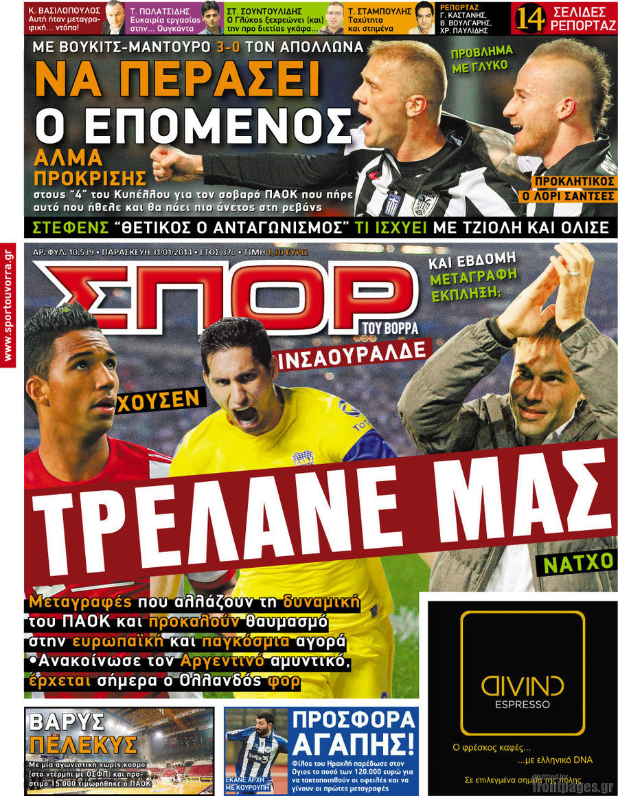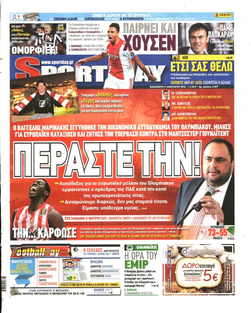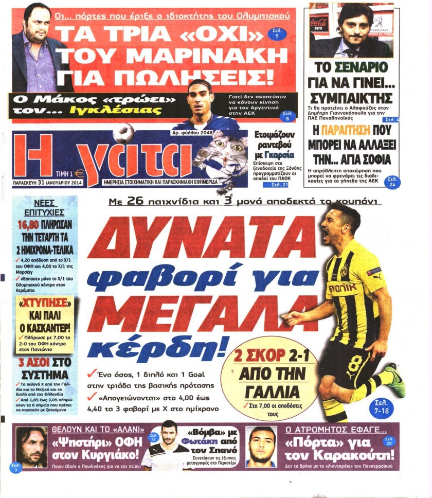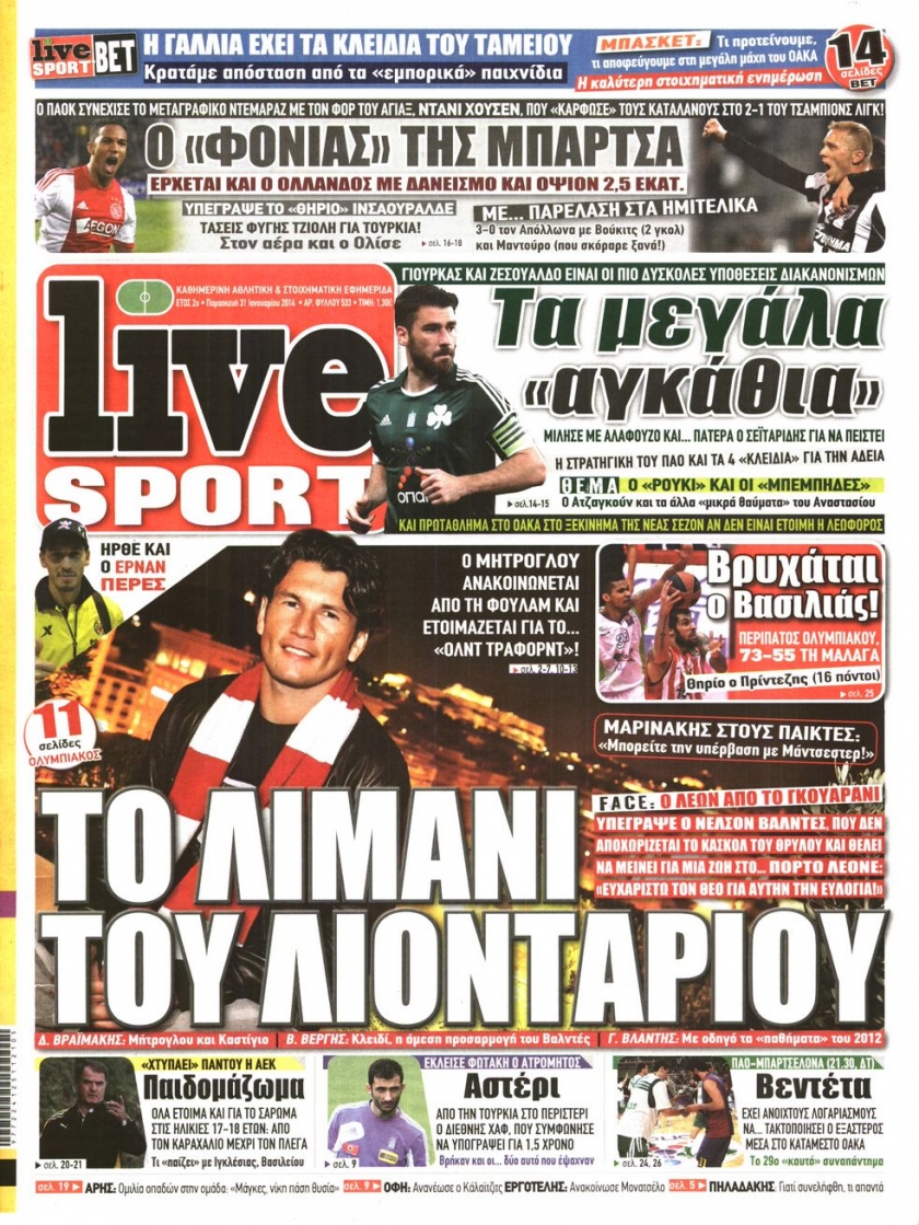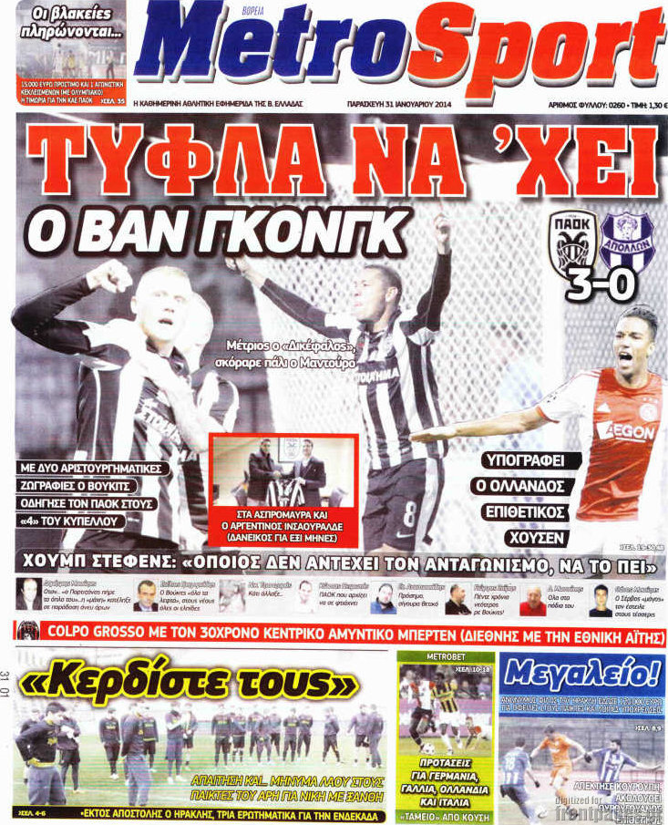 Οι αθλητικές εφημερίδες Enikos Newsroom 08:51, Παρασκευή 31 Ιανουαρίου 2014 Media Οι αθλητικές εφημερίδες Διαβάστε τα πρωτοσέλιδα των αθλητικών εφημερίδων: ΑΘΛΗΤΙΚΕΣ ΕΦΗΜΕΡΙΔΕΣ ΕΦΗΜΕΡΙΔΕΣ ΠΡΩΤΟΣΕΛΙΔΑ Μοιράσου το: σχολίασε κι εσύ (0 σχόλια) Ακολουθήστε το enikos.gr στο Google News και μάθετε πρώτοι όλες τις ειδήσεις Δείτε όλες τις τελευταίες ειδήσεις από την Ελλάδα και τον Κόσμο στο enikos.gr Ειδήσεις Ροή Ειδήσεων 2 ώρες πριν Ευρωπαϊκή Ένωση: Συμφωνία για δάνειο 90 δισ. ευρώ στην Ουκρανία τη διετία 2026-2027 6 ώρες πριν ΟΠΕΚΕΠΕ: Προφυλακιστέος ο φερόμενος αρχηγός και ο λογιστής της εγκληματικής οργάνωσης 8 ώρες πριν Αυξάνουν την πίεση προς την κυβέρνηση οι αγρότες: Κλείνουν παρακαμπτήριους και ανοίγουν διόδια – Τι θα γίνει τις γιορτές 7 ώρες πριν Φοινικούντα: Το Σάββατο απολογείται ο 30χρονος γιος γνωστού επιχειρηματία της Πλάκας που παραδόθηκε – Όσα είπε στους αστυνομικούς και ο ρόλος του στο έγκλημα 6 ώρες πριν ΑΕΚ – Κραϊόβα 3-2: Επική ανατροπή και πρόκριση στους «16» του Conference League η Ένωση 7 ώρες πριν Αρχαιολόγοι ανακάλυψαν ρωμαϊκά τεχνουργήματα από μια πόλη που δεν υπήρξε ποτέ – Τα τρία εντυπωσιακά κτίρια και ο αμφορέας με τις… σαρδέλες 8 ώρες πριν Ύπνος: Η απλή βραδινή ρουτίνα για να προστατεύσετε τα μαλλιά σας από το κρύο κατά τη διάρκεια του χειμώνα 9 ώρες πριν Manifesting: Πώς να συναντήσετε τον σύντροφο της ζωής σας, ανάλογα με τον μήνα γέννησής σας 2 ημέρες πριν 20 χρόνια τα Χριστούγεννα ξεκινούν στα Public με μεγάλη ποικιλία σε δώρα! 4 λεπτά πριν Αθήνα: Βρέθηκε η 16χρονη που είχε εξαφανιστεί από τις 6 Δεκεμβρίου – Η ανακοίνωση από το «Χαμόγελο του Παιδιού» 13 λεπτά πριν Κρύα χέρια και πόδια: Γιατρός εξηγεί ποια είναι η αίτια και πότε πρέπει να ανησυχήσετε 19 λεπτά πριν Σαν σήμερα 19 Δεκεμβρίου: Τα σημαντικότερα γεγονότα της ημέρας 24 λεπτά πριν Οι οικονομικές εφημερίδες 19/12/2025 29 λεπτά πριν Οι αθλητικές εφημερίδες 19/12/2025 ENIKOS NETWORK Σε περίοδο αυξημένης δραστηριότητας η γρίπη στην Ελλάδα-Μέτρα προστασίας από τον ΕΟΔΥ Σκέφτεστε συνέχεια συζητήσεις που έχετε κάνει; Τι σημαίνει αυτό, σύμφωνα με ειδικό Στεγαστικό: Τι λέει η ΠΟΜΙΔΑ για τα νέα μέτρα που ανακοίνωσε ο Κυριάκος Μητσοτάκης Λαγκάρντ: Αισιόδοξη για την ανάπτυξη της Ευρωζώνης, αβέβαιη για τον πληθωρισμό Χαρτογραφώντας το «σημείο χωρίς επιστροφή»: Για πρώτη φορά αποκαλύπτεται με λεπτομέρεια το ακανθώδες όριο της ατμόσφαιρας τ... Η Google καταργεί τη λειτουργία «dark web report» – Πώς θα μπορούν οι χρήστες να διαγράφουν τα δεδομένα τους περισσότερα 05:48 , Παρασκευή 19 Δεκεμβρίου 2025 Οι οικονομικές εφημερίδες 19/12/2025 Διαβάστε τα πρωτοσέλιδα από τις οικονομικές εφημερίδες, σήμερα 19/12/2025. 05:43 , Παρασκευή 19 Δεκεμβρίου 2025 Οι αθλητικές εφημερίδες 19/12/2025 Διαβάστε τα πρωτοσέλιδα από τις αθλητικές εφημερίδες, σήμερα 19/12/2025. 05:38 , Παρασκευή 19 Δεκεμβρίου 2025 Οι πολιτικές εφημερίδες 19/12/2025 Διαβάστε τα πρωτοσέλιδα από τις πολιτικές εφημερίδες, σήμερα 19/12/2025. 02:50 , Παρασκευή 19 Δεκεμβρίου 2025 GNTM: «Κλείδωσαν» οι τέσσερις φιναλίστ – Μεγάλη ανατροπή στις τελευταίες αποχωρήσεις Για προτελευταία φορά εμφανίστηκαν στο πλατό του GNTM οι φιναλίστ του φετινού κύκλου, το βράδυ... ΤΕΛΕΥΤΑΙΕΣ ΕΙΔΗΣΕΙΣ 4 λεπτά πριν Αθήνα: Βρέθηκε η 16χρονη που είχε εξαφανιστεί από τις 6... 13 λεπτά πριν Κρύα χέρια και πόδια: Γιατρός εξηγεί ποια είναι η... 19 λεπτά πριν Σαν σήμερα 19 Δεκεμβρίου: Τα σημαντικότερα γεγονότα... 24 λεπτά πριν Οι οικονομικές εφημερίδες 19/12/2025 29 λεπτά πριν Οι αθλητικές εφημερίδες 19/