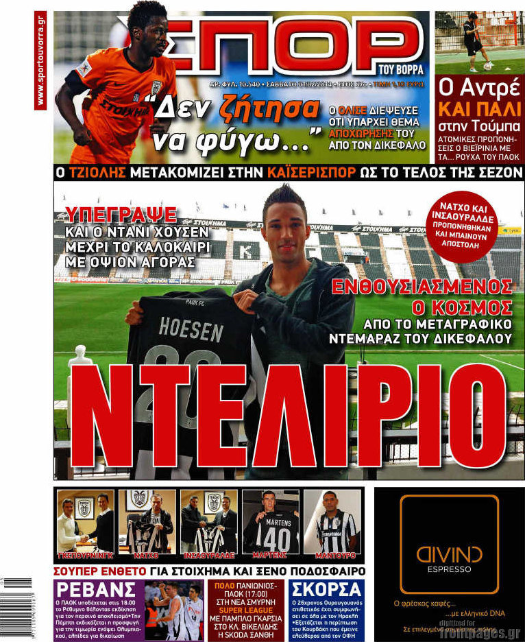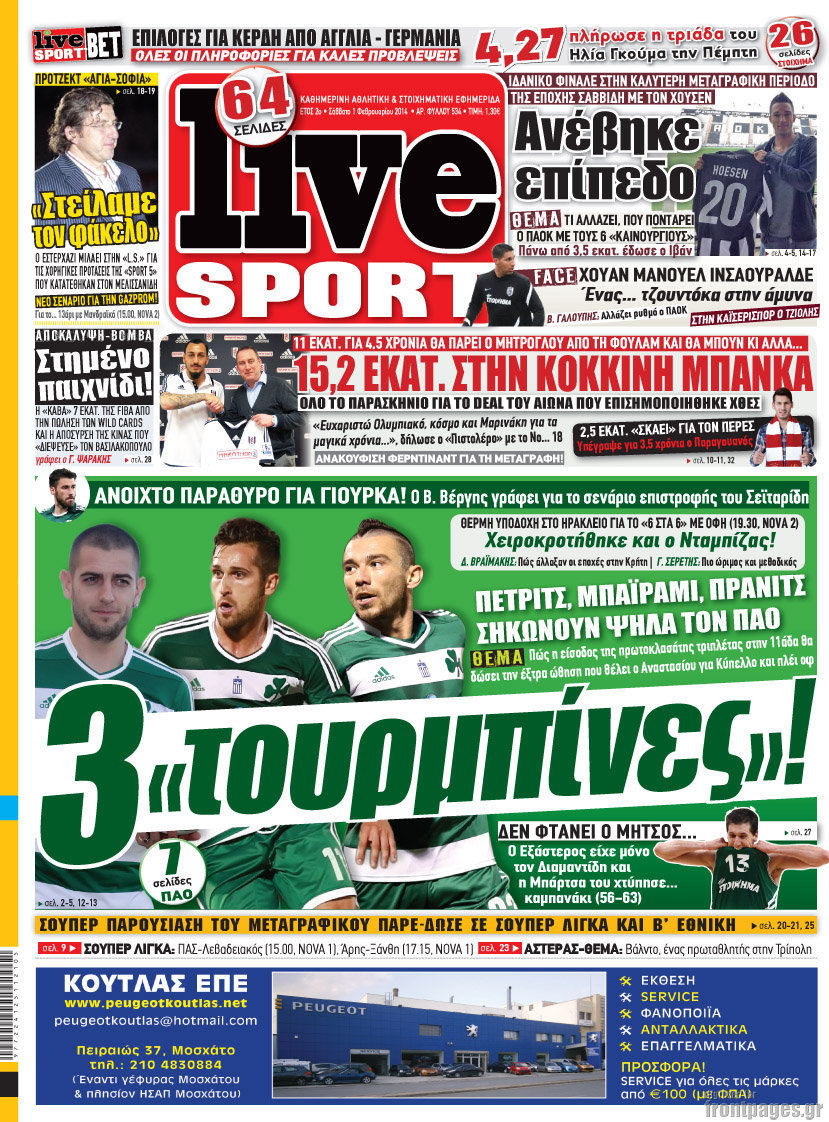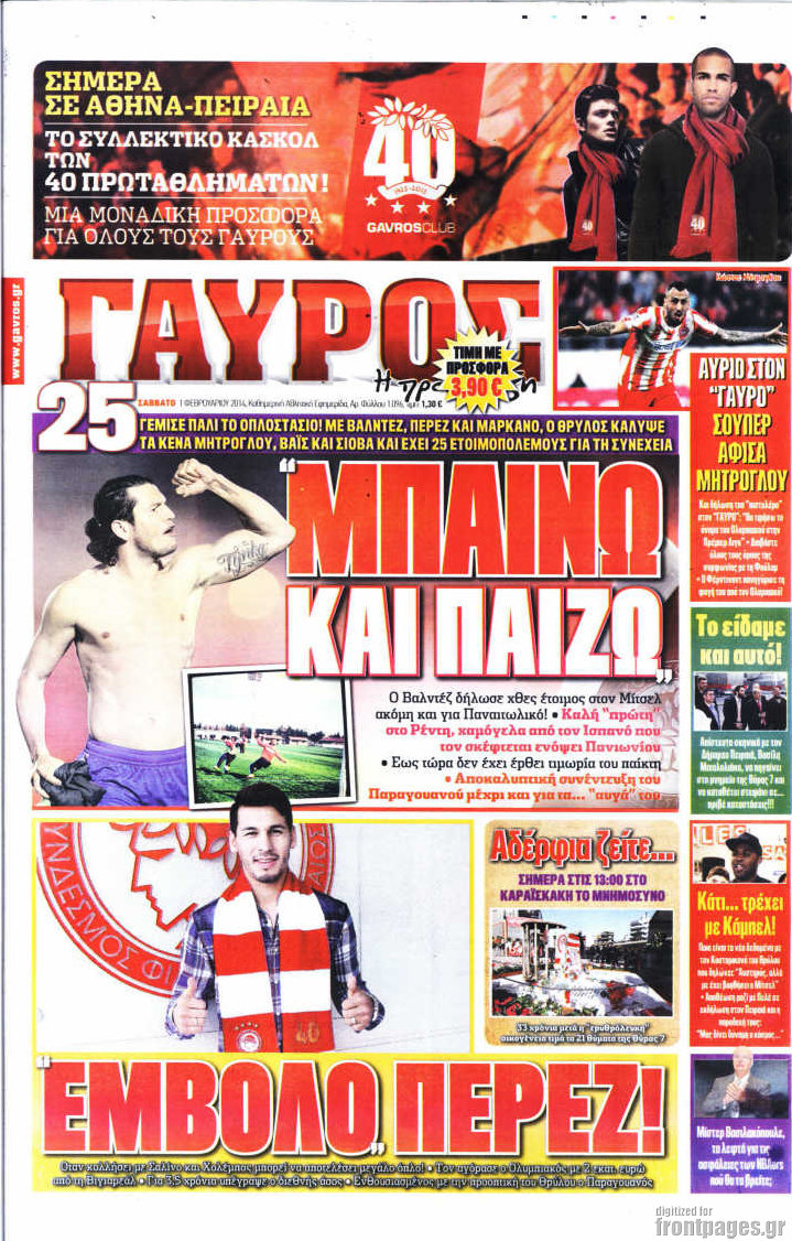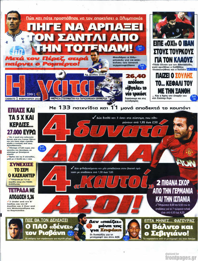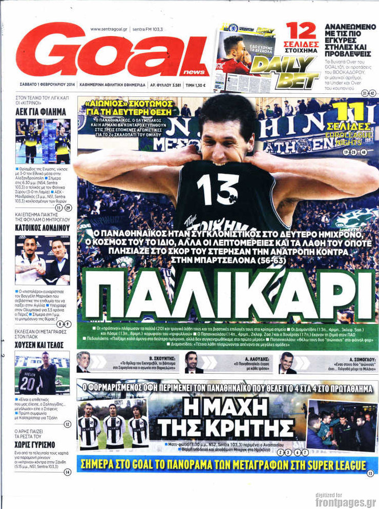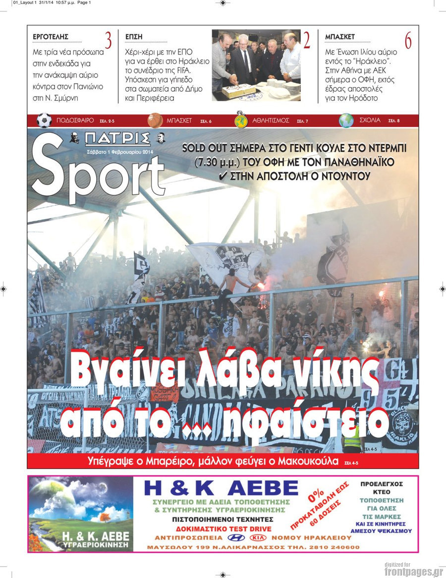 Οι αθλητικές εφημερίδες Enikos Newsroom 07:35, Σάββατο 01 Φεβρουαρίου 2014 Media Οι αθλητικές εφημερίδες ΑΘΛΗΤΙΚΕΣ ΕΦΗΜΕΡΙΔΕΣ ΕΦΗΜΕΡΙΔΕΣ Μοιράσου το: σχολίασε κι εσύ (0 σχόλια) Ακολουθήστε το enikos.gr στο Google News και μάθετε πρώτοι όλες τις ειδήσεις Δείτε όλες τις τελευταίες ειδήσεις από την Ελλάδα και τον Κόσμο στο enikos.gr Ειδήσεις Ροή Ειδήσεων 3 ώρες πριν Χριστούγεννα στα μπλόκα: Επιμένουν στις κινητοποιήσεις τους οι αγρότες – Ανοίγουν τα διόδια το Σαββατοκύριακο 3 ώρες πριν Ουκρανία: Η άνευ προηγουμένου επίθεση σε ρωσικό τάνκερ στη Μεσόγειο και το μήνυμα προς στον Πούτιν – Το «μακρύ χέρι» του Κιέβου 3 ώρες πριν Πούτιν: Τα μηνύματα σε Ευρώπη και ΝΑΤΟ από το μαραθώνιο «σόου» του – Η απαίτηση για «σεβασμό» και η ειρήνη «με τους όρους» της Μόσχας 3 ώρες πριν Τραμπ: Δεν αποκλείει την πιθανότητα ενός πολέμου στη Βενεζουέλα – «Ο Μαδούρο ξέρει καλύτερα από τον καθένα τι ακριβώς θέλω» 4 ώρες πριν Συνεχίζει να προκαλεί ο Μίτσκοσκι: «Για μένα το όνομα Μακεδονία είναι ιερό» 3 ώρες πριν Ανακαλύφθηκαν αρχαία χρυσά νομίσματα 2.200 ετών που απεικονίζουν τον θεό Απόλλωνα – Η άγνωστη σύνδεση με τον Φίλιππο Β΄ της Μακεδονίας 4 ώρες πριν Ύπνος: Μια κρυφή κατάσταση του εγκεφάλου πριν από τον ύπνο μπορεί να είναι το “κλειδί” για υψηλή ευφυΐα και δημιουργικότητα 5 ώρες πριν Αριθμολογία: Οι άνθρωποι που έχουν γεννηθεί αυτές τις 4 ημερομηνίες, συχνά παρεξηγούνται – «Η καλοσύνη τους κρύβει τεράστια δύναμη» 6 ώρες πριν Ξεχάστε το καθάρισμα το Σαββατοκύριακο: Ο «κανόνας των 20 λεπτών» που θα σας λύσει τα χέρια 13 λεπτά πριν Euroleague: Επέστρεψε στις νίκες ο Ολυμπιακός, πήρε την ματσάρα της χρονιάς η Μπάρτσα – Τα αποτελέσματα και η βαθμολογία 28 λεπτά πριν Συρία: Μαζικά πλήγματα των ΗΠΑ σε θέσεις του Ισλαμικού Κράτους – Χέγκσεθ: «Δεν είναι αρχή πολέμου, είναι μια δήλωση εκδίκησης» για το θάνατο των στρατιωτών μας 41 λεπτά πριν Ουκρανία: Ολοκληρώθηκαν οι συνομιλίες με τους Αμερικανούς κι Ευρωπαίους διαπραγματευτές 56 λεπτά πριν Μπαρτσελόνα – Μπασκόνια 134-124: Οι «μπλαουγκράνα» πήραν το ματς της χρονιάς ύστερα από τρεις παρατάσεις 1 ώρα πριν Φαίη Σκορδά: «Παλιότερα τα κομπλιμέντα τα προσπερνούσα, τώρα τα έχω ανάγκη» ENIKOS NETWORK Το ΕΚΑΒ τιμήθηκε από την Ακαδημία Αθηνών για τα 40 χρόνια προσφοράς του Έχετε πραγματικά μεγάλη καρδιά; 10 χαρακτηριστικά όσων έχουν καλοσύνη Αναστολή μέτρων αναγκαστικής εκτέλεσης για κτηνοτρόφους που πλήττονται από την ευλογιά των αιγοπροβάτων Πλήρης επάρκεια προϊόντων στις λαϊκές της Αττικής, παρά τις αγροτικές κινητοποιήσεις – Τι απαντούν οι πωλητές Χαρτογραφώντας το «σημείο χωρίς επιστροφή»: Για πρώτη φορά αποκαλύπτεται με λεπτομέρεια το ακανθώδες όριο της ατμόσφαιρας τ... Η Google καταργεί τη λειτουργία «dark web report» – Πώς θα μπορούν οι χρήστες να διαγράφουν τα δεδομένα τους περισσότερα 22:42 , Παρασκευή 19 Δεκεμβρίου 2025 Γιώργος Γιαννόπουλος για “Το σόι σου”: “Είναι ευτυχία και ευλογία αυτή η σειρά” «Είναι ευτυχία και ευλογία η συγκυρία αυτής της σειράς», θα πει ο Γιώργος Γιαννόπουλος -ο αγαπ... 20:37 , Παρασκευή 19 Δεκεμβρίου 2025 Don’t Forget The Lyrics: Η Έλλη Κοκκίνου υποδέχεται 4 παίκτες που θα κάνουν τα πάντα για να μη χάσουν ούτε… μισή λέξη από τους στίχους Το «Don’t Forget The Lyrics» επιστρέφει απόψε, Παρασκευή 19 Δεκεμβρίου, στις 21:00 με νέο επει... 19:31 , Παρασκευή 19 Δεκεμβρίου 2025 GNTM: Απόψε ο μεγάλος τελικός για τους 4 φιναλίστ Έπειτα από μήνες γεμάτους μόδα, δημιουργία και έντονες αναμετρήσεις, 
