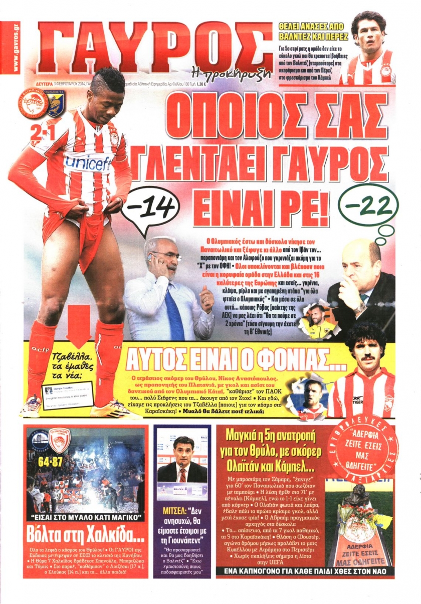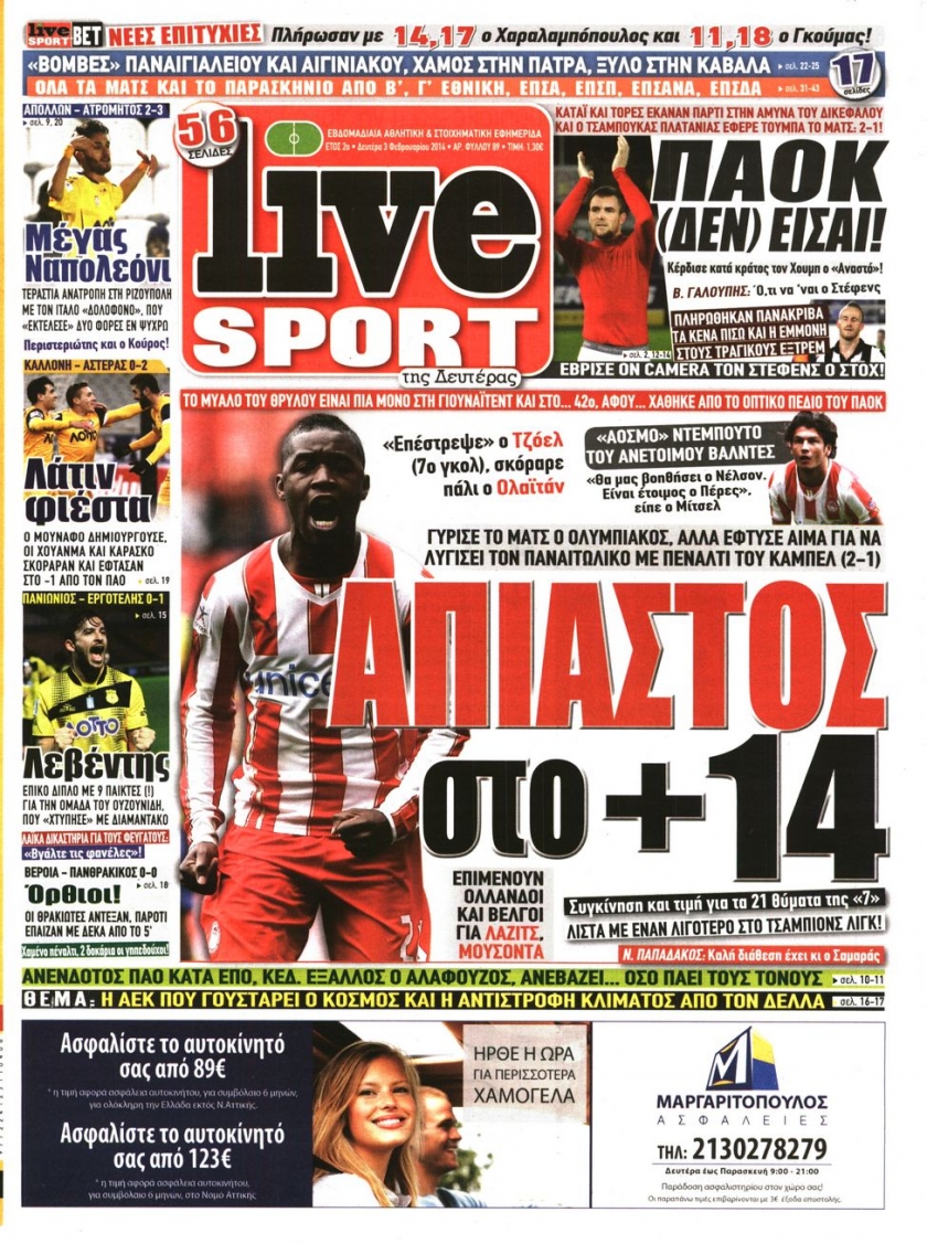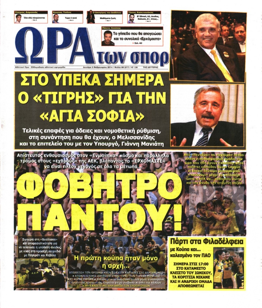 Οι αθλητικές εφημερίδες Enikos Newsroom 08:16, Δευτέρα 03 Φεβρουαρίου 2014 Media Οι αθλητικές εφημερίδες Διαβάστε τα πρωτοσέλιδα των αθλητικών εφημερίδων: ΑΘΛΗΤΙΚΕΣ ΕΦΗΜΕΡΙΔΕΣ ΕΦΗΜΕΡΙΔΕΣ ΠΡΩΤΟΣΕΛΙΔΑ Μοιράσου το: σχολίασε κι εσύ (0 σχόλια) Ακολουθήστε το enikos.gr στο Google News και μάθετε πρώτοι όλες τις ειδήσεις Δείτε όλες τις τελευταίες ειδήσεις από την Ελλάδα και τον Κόσμο στο enikos.gr Ειδήσεις Ροή Ειδήσεων 1 ώρα πριν Αυξάνουν την πίεση προς την κυβέρνηση οι αγρότες: Κλείνουν παρακαμπτήριους και ανοίγουν διόδια – Τι θα γίνει τις γιορτές 54 λεπτά πριν Φοινικούντα: Το Σάββατο απολογείται ο 30χρονος γιος γνωστού επιχειρηματία της Πλάκας που παραδόθηκε – Όσα είπε στους αστυνομικούς και ο ρόλος του στο έγκλημα 36 λεπτά πριν Μπορεί ο Μαδούρο να αντέξει τον αποκλεισμό του Τραμπ; Τι θα χρειαστεί η Ουάσινγκτον για να τον ανατρέψει 2 ώρες πριν Δημοσκόπηση Metron Analysis: Στις 10 μονάδες η διαφορά ΝΔ-ΠΑΣΟΚ, στην 3η θέση η Πλεύση Ελευθερίας – 8 στους 10 στηρίζουν τον αγώνα των αγροτών 2 ώρες πριν Πρίγκιπας Ουίλιαμ – Κέιτ: Η νέα οικογενειακή φωτογραφία για τις Χριστουγεννιάτικες κάρτες του 2025 2 ώρες πριν Ύπνος: Η απλή βραδινή ρουτίνα για να προστατεύσετε τα μαλλιά σας από το κρύο κατά τη διάρκεια του χειμώνα 3 ώρες πριν Manifesting: Πώς να συναντήσετε τον σύντροφο της ζωής σας, ανάλογα με τον μήνα γέννησής σας 2 ημέρες πριν 20 χρόνια τα Χριστούγεννα ξεκινούν στα Public με μεγάλη ποικιλία σε δώρα! 39 λεπτά πριν Αρχαιολόγοι ανακάλυψαν ρωμαϊκά τεχνουργήματα από μια πόλη που δεν υπήρξε ποτέ – Τα τρία εντυπωσιακά κτίρια και ο αμφορέας με τις… σαρδέλες 5 λεπτά πριν Αθηνά Μαξίμου: Η τρυφερή ανάρτηση για τα γενέθλια του Αιμίλιου Χειλάκη – «Είναι η εκλεκτική συγγένειά μου, η επιλογή και η ευθύνη μου» 20 λεπτά πριν Παναθηναϊκός – Χάποελ Τελ Αβίβ 93-82: Με… φόρα από την Κωνσταντινούπολη 36 λεπτά πριν Μπορεί ο Μαδούρο να αντέξει τον αποκλεισμό του Τραμπ; Τι θα χρειαστεί η Ουάσινγκτον για να τον ανατρέψει 39 λεπτά πριν Αρχαιολόγοι ανακάλυψαν ρωμαϊκά τεχνουργήματα από μια πόλη που δεν υπήρξε ποτέ – Τα τρία εντυπωσιακά κτίρια και ο αμφορέας με τις… σαρδέλες 41 λεπτά πριν Στο ΟΑΚΑ για το «Παναθηναϊκός – Χάποελ» η Κίμπερλι Γκίλφοϊλ – ΦΩΤΟ ENIKOS NETWORK Σε περίοδο αυξημένης δραστηριότητας η γρίπη στην Ελλάδα-Μέτρα προστασίας από τον ΕΟΔΥ Σκέφτεστε συνέχεια συζητήσεις που έχετε κάνει; Τι σημαίνει αυτό, σύμφωνα με ειδικό Στεγαστικό: Τι λέει η ΠΟΜΙΔΑ για τα νέα μέτρα που ανακοίνωσε ο Κυριάκος Μητσοτάκης Λαγκάρντ: Αισιόδοξη για την ανάπτυξη της Ευρωζώνης, αβέβαιη για τον πληθωρισμό Χαρτογραφώντας το «σημείο χωρίς επιστροφή»: Για πρώτη φορά αποκαλύπτεται με λεπτομέρεια το ακανθώδες όριο της ατμόσφαιρας τ... Η Google καταργεί τη λειτουργία «dark web report» – Πώς θα μπορούν οι χρήστες να διαγράφουν τα δεδομένα τους περισσότερα 17:45 , Πέμπτη 18 Δεκεμβρίου 2025 ROUK ZOUK: Εορταστικό επεισόδιο με καλεσμένους τους πρωταγωνιστές του «Γιατί ρε πατέρα» Το Σάββατο 20 Δεκεμβρίου στις 21:00, η Ζέτα Μακρυπούλια υποδέχεται εκλεκτούς ηθοποιούς που όλο... 17:20 , Πέμπτη 18 Δεκεμβρίου 2025 Άγιος έρωτας: Η Χριστίνα εξομολογείται στον πατέρα Νικόλαο, απόψε στις 21:00 στον Alpha Η Νότα αποφασίζει να εκδικηθεί τον Πέτρο και τον Στέφανο, για χάρη του Λούη, όμως τα πράγματα ... 16:50 , Πέμπτη 18 Δεκεμβρίου 2025 Να μ’ αγαπάς: Ζωή και Φωτεινή συμφιλιώνονται ως μάνα με κόρη, απόψε στις 20:00 Η ταυτότητα του Άγγελου αποκαλύπτεται στο νέο επεισόδιο της σειράς “Να μ’ αγαπάς... 15:52 , Πέμπτη 18 Δεκ