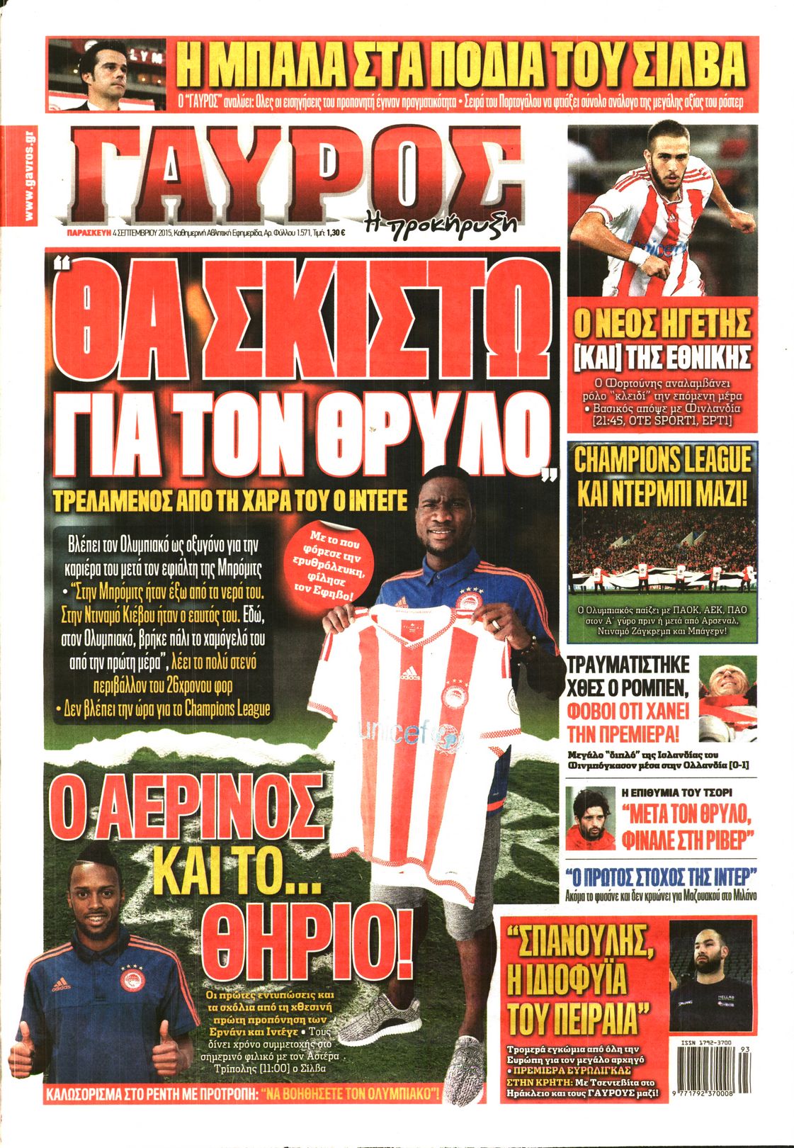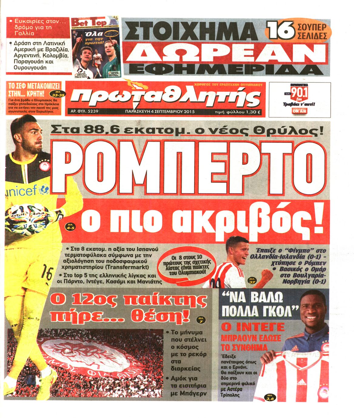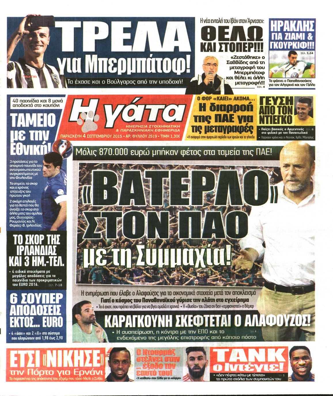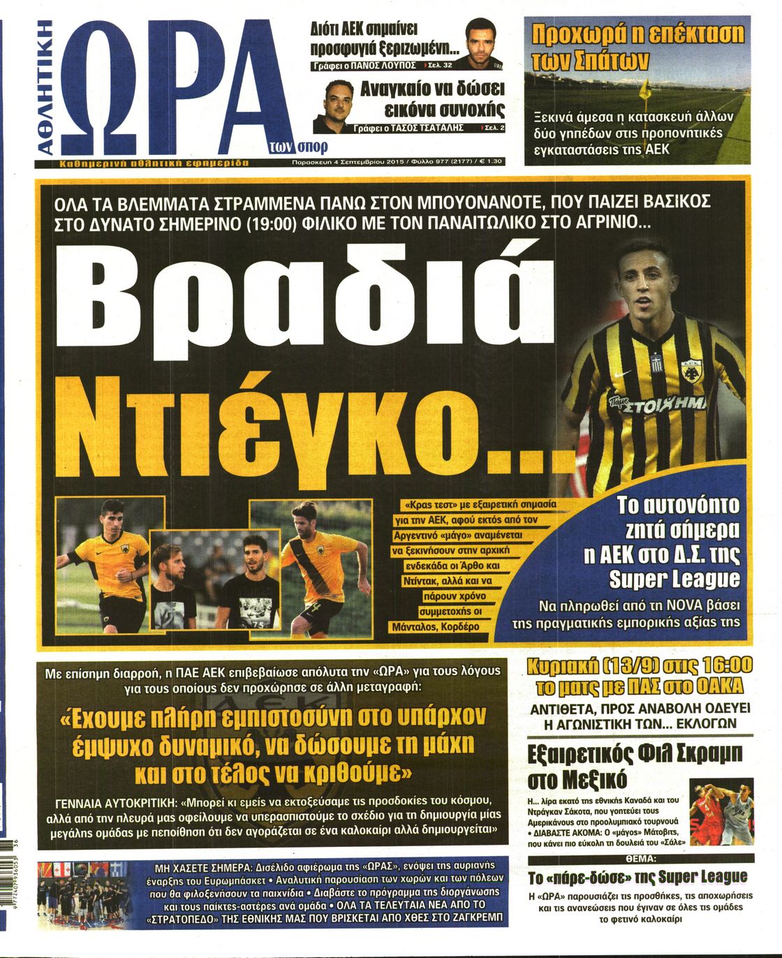 Οι αθλητικές εφημερίδες 4/9/2015 Enikos Newsroom 08:32, Παρασκευή 04 Σεπτεμβρίου 2015 Media Διαβάστε τα σημερινά πρωτοσέλιδα των αθλητικών εφημερίδων. ΑΘΛΗΤΙΚΕΣ ΕΦΗΜΕΡΙΔΕΣ ΕΦΗΜΕΡΙΔΕΣ ΠΡΩΤΟΣΕΛΙΔΑ Μοιράσου το: σχολίασε κι εσύ (0 σχόλια) Ακολουθήστε το enikos.gr στο Google News και μάθετε πρώτοι όλες τις ειδήσεις Δείτε όλες τις τελευταίες ειδήσεις από την Ελλάδα και τον Κόσμο στο enikos.gr Ειδήσεις Ροή Ειδήσεων 2 ώρες πριν Χριστούγεννα στα μπλόκα: Επιμένουν στις κινητοποιήσεις τους οι αγρότες – Ανοίγουν τα διόδια το Σαββατοκύριακο 2 ώρες πριν Ουκρανία: Η άνευ προηγουμένου επίθεση σε ρωσικό τάνκερ στη Μεσόγειο και το μήνυμα προς στον Πούτιν – Το «μακρύ χέρι» του Κιέβου 2 ώρες πριν Πούτιν: Τα μηνύματα σε Ευρώπη και ΝΑΤΟ από το μαραθώνιο «σόου» του – Η απαίτηση για «σεβασμό» και η ειρήνη «με τους όρους» της Μόσχας 2 ώρες πριν Τραμπ: Δεν αποκλείει την πιθανότητα ενός πολέμου στη Βενεζουέλα – «Ο Μαδούρο ξέρει καλύτερα από τον καθένα τι ακριβώς θέλω» 3 ώρες πριν Συνεχίζει να προκαλεί ο Μίτσκοσκι: «Για μένα το όνομα Μακεδονία είναι ιερό» 2 ώρες πριν Ανακαλύφθηκαν αρχαία χρυσά νομίσματα 2.200 ετών που απεικονίζουν τον θεό Απόλλωνα – Η άγνωστη σύνδεση με τον Φίλιππο Β΄ της Μακεδονίας 3 ώρες πριν Ύπνος: Μια κρυφή κατάσταση του εγκεφάλου πριν από τον ύπνο μπορεί να είναι το “κλειδί” για υψηλή ευφυΐα και δημιουργικότητα 4 ώρες πριν Αριθμολογία: Οι άνθρωποι που έχουν γεννηθεί αυτές τις 4 ημερομηνίες, συχνά παρεξηγούνται – «Η καλοσύνη τους κρύβει τεράστια δύναμη» 5 ώρες πριν Ξεχάστε το καθάρισμα το Σαββατοκύριακο: Ο «κανόνας των 20 λεπτών» που θα σας λύσει τα χέρια 11 λεπτά πριν Φαίη Σκορδά: «Παλιότερα τα κομπλιμέντα τα προσπερνούσα, τώρα τα έχω ανάγκη» 27 λεπτά πριν Βασίλης Σπανούλης: Δεν εμφανίστηκε ούτε ένας δημοσιογράφος στην συνέντευξη Τύπου – «Καλησπέρα στον… κανέναν», δείτε βίντεο 38 λεπτά πριν Πόλεμος στην Ουκρανία: Εφτά νεκροί από ρωσική πυραυλική επίθεση στο λιμάνι της Οδησσού 42 λεπτά πριν ΗΠΑ: Η κυβέρνηση του Ντόναλντ Τραμπ άρχισε να δημοσιοποιεί τα αρχεία Έπσταϊν 53 λεπτά πριν Σάμος: Άνοιξε το μπλόκο των αγροτών στον κόμβο Κοκκαρίου – Σε νέα συνεδρίαση θα καθορίσουν την στάση τους ENIKOS NETWORK Το ΕΚΑΒ τιμήθηκε από την Ακαδημία Αθηνών για τα 40 χρόνια προσφοράς του Έχετε πραγματικά μεγάλη καρδιά; 10 χαρακτηριστικά όσων έχουν καλοσύνη Αναστολή μέτρων αναγκαστικής εκτέλεσης για κτηνοτρόφους που πλήττονται από την ευλογιά των αιγοπροβάτων Πλήρης επάρκεια προϊόντων στις λαϊκές της Αττικής, παρά τις αγροτικές κινητοποιήσεις – Τι απαντούν οι πωλητές Χαρτογραφώντας το «σημείο χωρίς επιστροφή»: Για πρώτη φορά αποκαλύπτεται με λεπτομέρεια το ακανθώδες όριο της ατμόσφαιρας τ... Η Google καταργεί τη λειτουργία «dark web report» – Πώς θα μπορούν οι χρήστες να διαγράφουν τα δεδομένα τους περισσότερα 22:42 , Παρασκευή 19 Δεκεμβρίου 2025 Γιώργος Γιαννόπουλος για “Το σόι σου”: “Είναι ευτυχία και ευλογία αυτή η σειρά” «Είναι ευτυχία και ευλογία η συγκυρία αυτής της σειράς», θα πει ο Γιώργος Γιαννόπουλος -ο αγαπ... 20:37 , Παρασκευή 19 Δεκεμβρίου 2025 Don’t Forget The Lyrics: Η Έλλη Κοκκίνου υποδέχεται 4 παίκτες που θα κάνουν τα πάντα για να μη χάσουν ούτε… μισή λέξη από τους στίχους Το «Don’t Forget The Lyrics» επιστρέφει απόψε, Παρασκευή 19 Δεκεμβρίου, στις 21:00 με νέο επει... 19:31 , Παρασκευή 19 Δεκεμβρίου 2025 GNTM: Απόψε ο μεγάλος τελικός για τους 4 φιναλίστ Έπειτα από μήνες γεμάτους μόδα, δημιουργία και έντονες αναμετρήσεις, το GNTM 2025 κορυφ