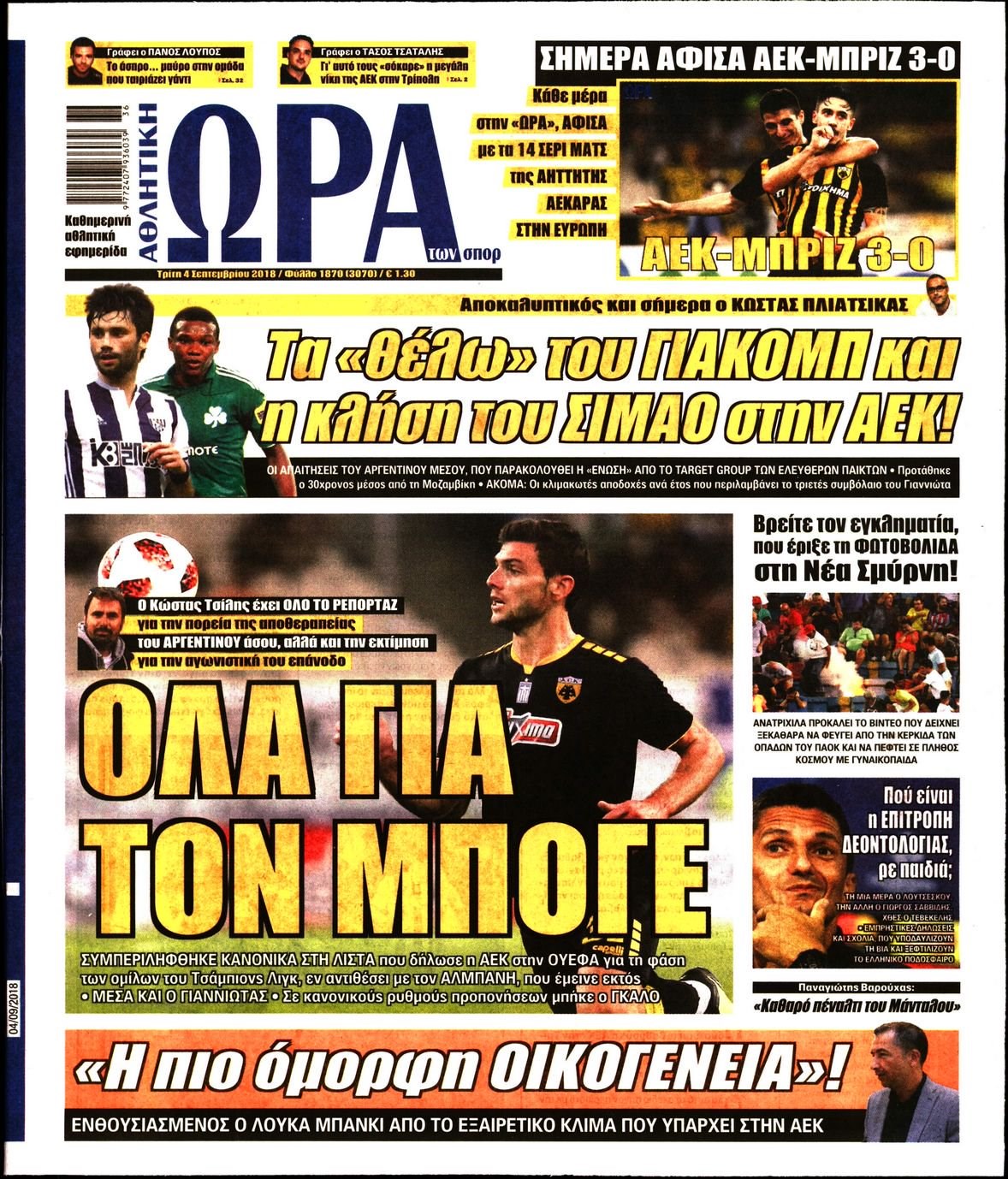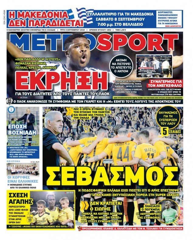 Οι αθλητικές εφημερίδες 4/9/2018 Enikos Newsroom 06:32, Τρίτη 04 Σεπτεμβρίου 2018 Media Διαβάστε τα πρωτοσέλιδα των αθλητικών εφημερίδων. ΑΘΛΗΤΙΚΕΣ ΕΦΗΜΕΡΙΔΕΣ ΠΡΩΤΟΣΕΛΙΔΑ Μοιράσου το: σχολίασε κι εσύ (0 σχόλια) Ακολουθήστε το enikos.gr στο Google News και μάθετε πρώτοι όλες τις ειδήσεις Δείτε όλες τις τελευταίες ειδήσεις από την Ελλάδα και τον Κόσμο στο enikos.gr Ειδήσεις Ροή Ειδήσεων 2 ώρες πριν Χριστούγεννα στα μπλόκα: Επιμένουν στις κινητοποιήσεις τους οι αγρότες – Ανοίγουν τα διόδια το Σαββατοκύριακο 2 ώρες πριν Ουκρανία: Η άνευ προηγουμένου επίθεση σε ρωσικό τάνκερ στη Μεσόγειο και το μήνυμα προς στον Πούτιν – Το «μακρύ χέρι» του Κιέβου 1 ώρα πριν Πούτιν: Τα μηνύματα σε Ευρώπη και ΝΑΤΟ από το μαραθώνιο «σόου» του – Η απαίτηση για «σεβασμό» και η ειρήνη «με τους όρους» της Μόσχας 2 ώρες πριν Τραμπ: Δεν αποκλείει την πιθανότητα ενός πολέμου στη Βενεζουέλα – «Ο Μαδούρο ξέρει καλύτερα από τον καθένα τι ακριβώς θέλω» 3 ώρες πριν Συνεχίζει να προκαλεί ο Μίτσκοσκι: «Για μένα το όνομα Μακεδονία είναι ιερό» 1 ώρα πριν Ανακαλύφθηκαν αρχαία χρυσά νομίσματα 2.200 ετών που απεικονίζουν τον θεό Απόλλωνα – Η άγνωστη σύνδεση με τον Φίλιππο Β΄ της Μακεδονίας 2 ώρες πριν Ύπνος: Μια κρυφή κατάσταση του εγκεφάλου πριν από τον ύπνο μπορεί να είναι το “κλειδί” για υψηλή ευφυΐα και δημιουργικότητα 3 ώρες πριν Αριθμολογία: Οι άνθρωποι που έχουν γεννηθεί αυτές τις 4 ημερομηνίες, συχνά παρεξηγούνται – «Η καλοσύνη τους κρύβει τεράστια δύναμη» 4 ώρες πριν Ξεχάστε το καθάρισμα το Σαββατοκύριακο: Ο «κανόνας των 20 λεπτών» που θα σας λύσει τα χέρια 8 λεπτά πριν Πόλεμος στην Ουκρανία: Εφτά νεκροί από ρωσική πυραυλική επίθεση στο λιμάνι της Οδησσού 11 λεπτά πριν ΗΠΑ: Η κυβέρνηση του Ντόναλντ Τραμπ άρχισε να δημοσιοποιεί τα αρχεία Έπσταϊν 23 λεπτά πριν Σάμος: Άνοιξε το μπλόκο των αγροτών στον κόμβο Κοκκαρίου – Σε νέα συνεδρίαση θα καθορίσουν την στάση τους 31 λεπτά πριν Άνω Λιόσια: Πυροβολισμοί σε επιχείρηση με χαλιά – Εντοπίστηκαν 10 κάλυκες 38 λεπτά πριν Γάζα: Ισραηλινό πλήγμα σε σχολείο που είχαν καταφύγει εκτοπισμένοι – Τουλάχιστον έξι νεκροί ENIKOS NETWORK Το ΕΚΑΒ τιμήθηκε από την Ακαδημία Αθηνών για τα 40 χρόνια προσφοράς του Έχετε πραγματικά μεγάλη καρδιά; 10 χαρακτηριστικά όσων έχουν καλοσύνη Αναστολή μέτρων αναγκαστικής εκτέλεσης για κτηνοτρόφους που πλήττονται από την ευλογιά των αιγοπροβάτων Πλήρης επάρκεια προϊόντων στις λαϊκές της Αττικής, παρά τις αγροτικές κινητοποιήσεις – Τι απαντούν οι πωλητές Χαρτογραφώντας το «σημείο χωρίς επιστροφή»: Για πρώτη φορά αποκαλύπτεται με λεπτομέρεια το ακανθώδες όριο της ατμόσφαιρας τ... Η Google καταργεί τη λειτουργία «dark web report» – Πώς θα μπορούν οι χρήστες να διαγράφουν τα δεδομένα τους περισσότερα 22:42 , Παρασκευή 19 Δεκεμβρίου 2025 Γιώργος Γιαννόπουλος για “Το σόι σου”: “Είναι ευτυχία και ευλογία αυτή η σειρά” «Είναι ευτυχία και ευλογία η συγκυρία αυτής της σειράς», θα πει ο Γιώργος Γιαννόπουλος -ο αγαπ... 20:37 , Παρασκευή 19 Δεκεμβρίου 2025 Don’t Forget The Lyrics: Η Έλλη Κοκκίνου υποδέχεται 4 παίκτες που θα κάνουν τα πάντα για να μη χάσουν ούτε… μισή λέξη από τους στίχους Το «Don’t Forget The Lyrics» επιστρέφει απόψε, Παρασκευή 19 Δεκεμβρίου, στις 21:00 με νέο επει... 19:31 , Παρασκευή 19 Δεκεμβρίου 2025 GNTM: Απόψε ο μεγάλος τελικός για τους 4 φιναλίστ Έπειτα από μήνες γεμάτους μόδα, δημιουργία και έντονες αναμετρήσεις, το GNTM 2025 κορυφώνεται,... 18:11 , Παρασκευή 19 Δεκεμβρίου 2025 Το σόι σου: Ο Άρης έρχετ