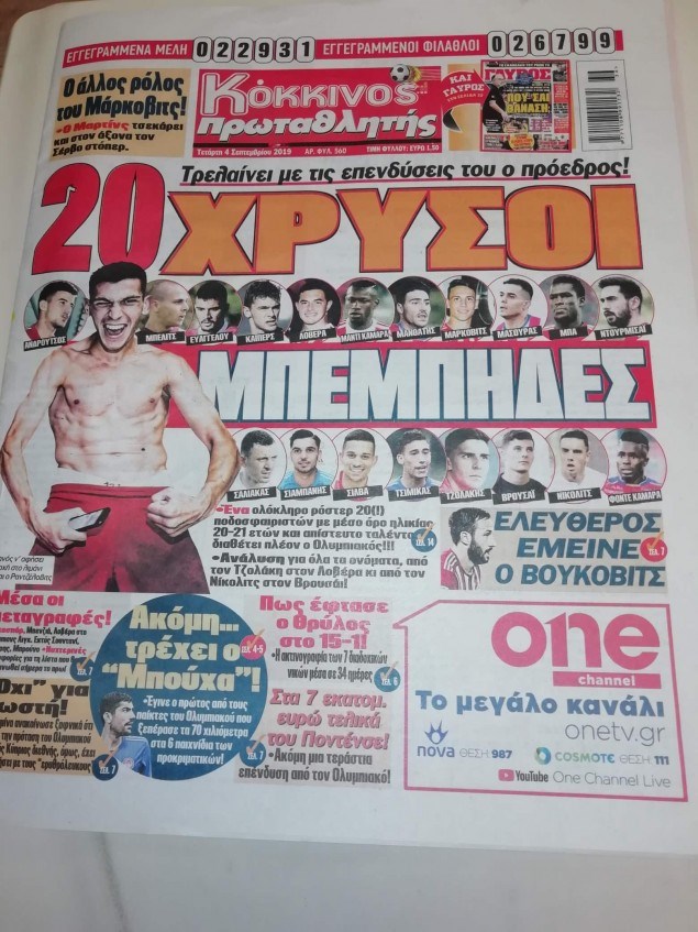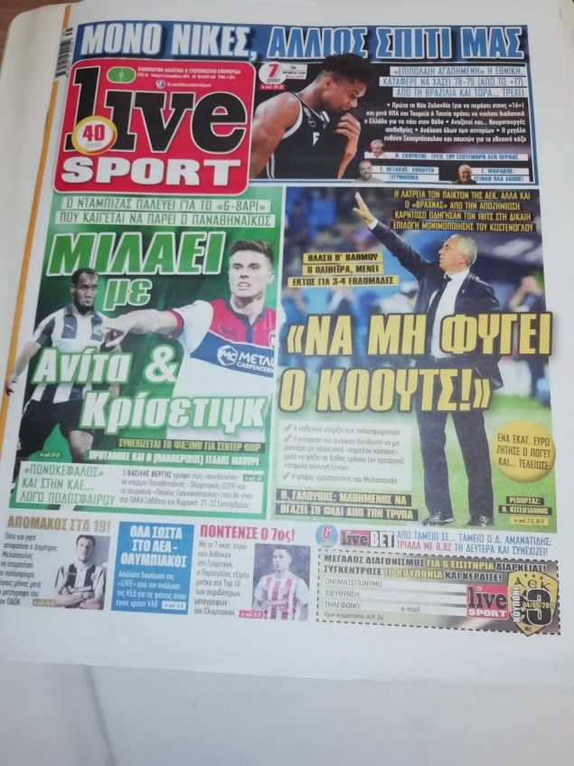 Οι αθλητικές εφημερίδες 4/9/2019 Κώστας Τεό 06:38, Τετάρτη 04 Σεπτεμβρίου 2019 Media Διαβάστε τα πρωτοσέλιδα των αθλητικών εφημερίδων: ΑΘΛΗΤΙΚΕΣ ΕΦΗΜΕΡΙΔΕΣ ΠΡΩΤΟΣΕΛΙΔΑ Μοιράσου το: σχολίασε κι εσύ (0 σχόλια) Ακολουθήστε το enikos.gr στο Google News και μάθετε πρώτοι όλες τις ειδήσεις Δείτε όλες τις τελευταίες ειδήσεις από την Ελλάδα και τον Κόσμο στο enikos.gr Ειδήσεις Ροή Ειδήσεων 2 ώρες πριν Χριστούγεννα στα μπλόκα: Επιμένουν στις κινητοποιήσεις τους οι αγρότες – Ανοίγουν τα διόδια το Σαββατοκύριακο 3 ώρες πριν Ουκρανία: Η άνευ προηγουμένου επίθεση σε ρωσικό τάνκερ στη Μεσόγειο και το μήνυμα προς στον Πούτιν – Το «μακρύ χέρι» του Κιέβου 2 ώρες πριν Πούτιν: Τα μηνύματα σε Ευρώπη και ΝΑΤΟ από το μαραθώνιο «σόου» του – Η απαίτηση για «σεβασμό» και η ειρήνη «με τους όρους» της Μόσχας 3 ώρες πριν Τραμπ: Δεν αποκλείει την πιθανότητα ενός πολέμου στη Βενεζουέλα – «Ο Μαδούρο ξέρει καλύτερα από τον καθένα τι ακριβώς θέλω» 3 ώρες πριν Συνεχίζει να προκαλεί ο Μίτσκοσκι: «Για μένα το όνομα Μακεδονία είναι ιερό» 2 ώρες πριν Ανακαλύφθηκαν αρχαία χρυσά νομίσματα 2.200 ετών που απεικονίζουν τον θεό Απόλλωνα – Η άγνωστη σύνδεση με τον Φίλιππο Β΄ της Μακεδονίας 3 ώρες πριν Ύπνος: Μια κρυφή κατάσταση του εγκεφάλου πριν από τον ύπνο μπορεί να είναι το “κλειδί” για υψηλή ευφυΐα και δημιουργικότητα 4 ώρες πριν Αριθμολογία: Οι άνθρωποι που έχουν γεννηθεί αυτές τις 4 ημερομηνίες, συχνά παρεξηγούνται – «Η καλοσύνη τους κρύβει τεράστια δύναμη» 5 ώρες πριν Ξεχάστε το καθάρισμα το Σαββατοκύριακο: Ο «κανόνας των 20 λεπτών» που θα σας λύσει τα χέρια 41 δευτερόλεπτα πριν Ουκρανία: Ολοκληρώθηκαν οι συνομιλίες με τους Αμερικανούς κι Ευρωπαίους διαπραγματευτές 16 λεπτά πριν Μπαρτσελόνα – Μπασκόνια 134-124: Οι «μπλαουγκράνα» πήραν το ματς της χρονιάς ύστερα από τρεις παρατάσεις 31 λεπτά πριν Φαίη Σκορδά: «Παλιότερα τα κομπλιμέντα τα προσπερνούσα, τώρα τα έχω ανάγκη» 47 λεπτά πριν Βασίλης Σπανούλης: Δεν εμφανίστηκε ούτε ένας δημοσιογράφος στην συνέντευξη Τύπου – «Καλησπέρα στον… κανέναν», δείτε βίντεο 58 λεπτά πριν Πόλεμος στην Ουκρανία: Εφτά νεκροί από ρωσική πυραυλική επίθεση στο λιμάνι της Οδησσού ENIKOS NETWORK Το ΕΚΑΒ τιμήθηκε από την Ακαδημία Αθηνών για τα 40 χρόνια προσφοράς του Έχετε πραγματικά μεγάλη καρδιά; 10 χαρακτηριστικά όσων έχουν καλοσύνη Αναστολή μέτρων αναγκαστικής εκτέλεσης για κτηνοτρόφους που πλήττονται από την ευλογιά των αιγοπροβάτων Πλήρης επάρκεια προϊόντων στις λαϊκές της Αττικής, παρά τις αγροτικές κινητοποιήσεις – Τι απαντούν οι πωλητές Χαρτογραφώντας το «σημείο χωρίς επιστροφή»: Για πρώτη φορά αποκαλύπτεται με λεπτομέρεια το ακανθώδες όριο της ατμόσφαιρας τ... Η Google καταργεί τη λειτουργία «dark web report» – Πώς θα μπορούν οι χρήστες να διαγράφουν τα δεδομένα τους περισσότερα 22:42 , Παρασκευή 19 Δεκεμβρίου 2025 Γιώργος Γιαννόπουλος για “Το σόι σου”: “Είναι ευτυχία και ευλογία αυτή η σειρά” «Είναι ευτυχία και ευλογία η συγκυρία αυτής της σειράς», θα πει ο Γιώργος Γιαννόπουλος -ο αγαπ... 20:37 , Παρασκευή 19 Δεκεμβρίου 2025 Don’t Forget The Lyrics: Η Έλλη Κοκκίνου υποδέχεται 4 παίκτες που θα κάνουν τα πάντα για να μη χάσουν ούτε… μισή λέξη από τους στίχους Το «Don’t Forget The Lyrics» επιστρέφει απόψε, Παρασκευή 19 Δεκεμβρίου, στις 21:00 με νέο επει... 19:31 , Παρασκευή 19 Δεκεμβρίου 2025 GNTM: Απόψε ο μεγάλος τελικός για τους 4 φιναλίστ Έπειτα από μήνες γεμάτους μόδα, δημιουργία και έντονες αναμετρήσεις, το GNTM 2025 κορυφώνε