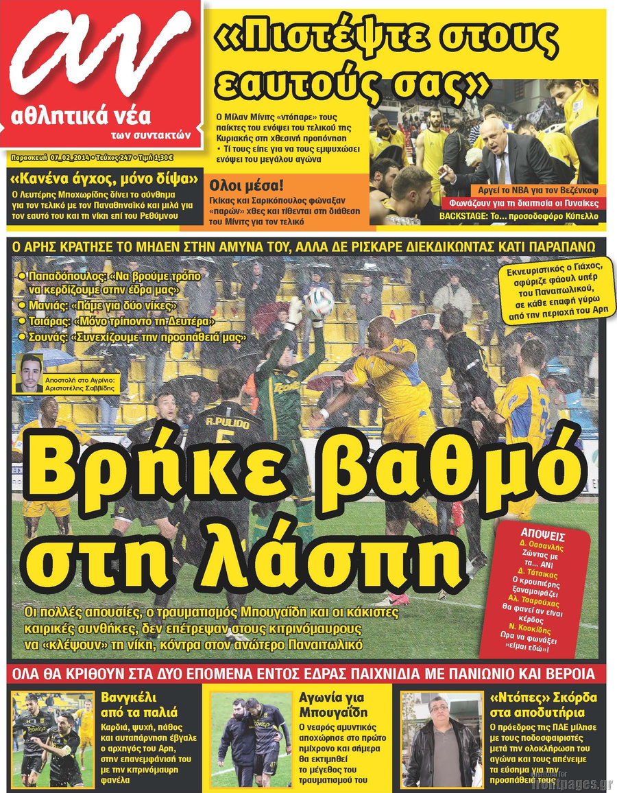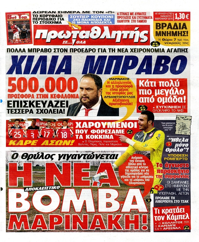 Οι αθλητικές εφημερίδες Enikos Newsroom 08:35, Παρασκευή 07 Φεβρουαρίου 2014 Media Οι αθλητικές εφημερίδες Διαβάστε τα πρωτοσέλιδα των αθλητικών εφημερίδων: ΑΘΛΗΤΙΚΕΣ ΕΦΗΜΕΡΙΔΕΣ ΕΦΗΜΕΡΙΔΕΣ ΠΡΩΤΟΣΕΛΙΔΑ Μοιράσου το: σχολίασε κι εσύ (0 σχόλια) Ακολουθήστε το enikos.gr στο Google News και μάθετε πρώτοι όλες τις ειδήσεις Δείτε όλες τις τελευταίες ειδήσεις από την Ελλάδα και τον Κόσμο στο enikos.gr Ειδήσεις Ροή Ειδήσεων 2 ώρες πριν Μεσόγειος: Η διαδρομή του ρωσικού τάνκερ «Qendil» και η στοχευμένη επίθεση της Ουκρανίας με drone – Ο Πούτιν προειδοποίησε για αντίποινα 2 ώρες πριν Αττική: Θρίλερ με νεκρό βρέφος 5 μηνών – Κοιμόταν στο ίδιο κρεβάτι με τους γονείς του 3 ώρες πριν Από το Ορμένιο ως τα Μάλγαρα κι από τη Σιάτιστα μέχρι τη Νίκαια: Μπλόκα σε όλη την Ελλάδα – Το Σάββατο ανοίγουν τα διόδια οι αγρότες 3 ώρες πριν «Έλληνας Εσκομπάρ»: Φωτογραφίες με τους 4 τόνους κοκαΐνης που κατασχέθηκαν από το σκάφος «Ουρανία» 4 ώρες πριν Πούτιν: Σαρκαστικά μηνύματα, παράπονα και απρόοπτα στη συνέντευξη Τύπου – Η πρόταση γάμου on air και οι ερωτήσεις για τα αγγούρια και τους… εξωγήινους 4 ώρες πριν Τα 5 ζώδια που ευνοούνται στην ερωτική ζωή τους την επόμενη εβδομάδα – «Η ενέργεια του Αιγόκερου φέρνει αγάπη και σταθερότητα» 8 ώρες πριν Ειδικός μοιράζεται 6 κόλπα για να διατηρείστε σε φόρμα με πάνω από 40 ώρες εργασίας την εβδομάδα: «Προπονηθείτε πριν από τη δουλειά, όχι μετά» 5 ώρες πριν Αυτό το έξυπνο μαθηματικό κόλπο θα μπορούσε να αλλάξει τον τρόπο με τον οποίο οι επιστήμονες μελετούν τους σεισμούς 3 ώρες πριν Κουίζ για την παλιά Αθήνα: Αναγνωρίζετε την περιοχή; Έχετε περάσει 100% από εκεί 2 λεπτά πριν Ρούμπιο: Έχει υπάρξει πρόοδος στις συνομιλίες για την Ουκρανία – Τα τελευταία ζητήματα είναι τα πιο δύσκολα 9 λεπτά πριν Πούτιν: «Ναι, είμαι ερωτευμένος» – Βίντεο από τη σπάνια προσωπική παραδοχή του 13 λεπτά πριν Γαλλία – Shein: Υποχρεωτικός έλεγχος ηλικίας των πελατών μετά τον σάλο με τις ερωτικές κούκλες 19 λεπτά πριν Εμπλοκή και αερομαχίες με οπλισμένα τουρκικά F-16 στο Αιγαίο 27 λεπτά πριν GNTM: Απόψε ο μεγάλος τελικός για τους 4 φιναλίστ ENIKOS NETWORK Έχετε πραγματικά μεγάλη καρδιά; 10 χαρακτηριστικά όσων έχουν καλοσύνη «Η σούπερ» γρίπη εξαπλώνεται στην Ευρώπη-Στοιχεία από το ECDC για την αποτελεσματικότητα του εμβολίου Προκήρυξη ΑΣΕΠ για 397 μόνιμες προσλήψεις στο Δημόσιο: Βγήκαν τα προσωρινά αποτελέσματα – Πότε αρχίζει η υποβολή ενστάσεων Η απάντηση της κυβέρνησης στα αιτήματα των αγροτών: 16 έχουν ικανοποιηθεί, 4 βρίσκονται υπό επεξεργασία και 7 δεν είναι εφι... Χαρτογραφώντας το «σημείο χωρίς επιστροφή»: Για πρώτη φορά αποκαλύπτεται με λεπτομέρεια το ακανθώδες όριο της ατμόσφαιρας τ... Η Google καταργεί τη λειτουργία «dark web report» – Πώς θα μπορούν οι χρήστες να διαγράφουν τα δεδομένα τους περισσότερα 19:31 , Παρασκευή 19 Δεκεμβρίου 2025 GNTM: Απόψε ο μεγάλος τελικός για τους 4 φιναλίστ Έπειτα από μήνες γεμάτους μόδα, δημιουργία και έντονες αναμετρήσεις, το GNTM 2025 κορυφώνεται,... 18:11 , Παρασκευή 19 Δεκεμβρίου 2025 Το σόι σου: Ο Άρης έρχεται στην Ελλάδα για τις γιορτές των Χριστουγέννων – Τι θα δούμε στο αποψινό εορταστικό επεισόδιο Ένα απολαυστικό, εορταστικό επεισόδιο της σειράς “Το σόι σου”, γεμάτο ευτράπελα αλ... 15:15 , Παρασκευή 19 Δεκεμβρίου 2025 Την Κυριακή με τη Realnews: Ό,τι και αν αγοράσεις, σκανάρεις και κερδίζεις! Την Κυριακή με τη Realnews: Ό,τι και αν αγοράσεις, σκανάρεις και κερδίζεις! Με το PADU app, το... 08:00 , Παρασκευή 19 Δεκεμβρίου 