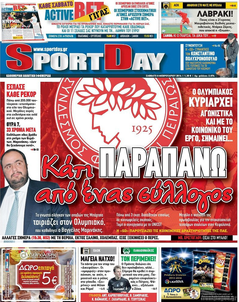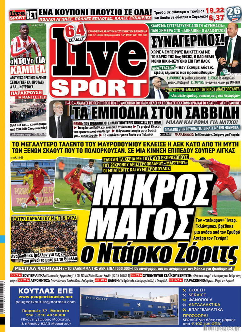 Οι αθλητικές εφημερίδες Enikos Newsroom 08:33, Σάββατο 08 Φεβρουαρίου 2014 Media Οι αθλητικές εφημερίδες Διαβάστε τα πρωτοσέλιδα των αθλητικών εφημερίδων: ΑΘΛΗΤΙΚΕΣ ΕΦΗΜΕΡΙΔΕΣ ΕΦΗΜΕΡΙΕΣ ΠΡΩΤΟΣΕΛΙΔΑ Μοιράσου το: σχολίασε κι εσύ (0 σχόλια) Ακολουθήστε το enikos.gr στο Google News και μάθετε πρώτοι όλες τις ειδήσεις Δείτε όλες τις τελευταίες ειδήσεις από την Ελλάδα και τον Κόσμο στο enikos.gr Ειδήσεις Ροή Ειδήσεων 6 λεπτά πριν Τσιάρας: Καλούμε άμεσα τους εκπροσώπους των αγροτών σε ουσιαστικό διάλογο – Η κοινωνία περιμένει υπευθυνότητα 2 ώρες πριν Κυψέλη: Επεισόδιο με μαχαίρωμα μέσα σε σχολείο – Τραυματίστηκε 14χρονη 27 λεπτά πριν Λάρισα: Αναβλήθηκε για τον Οκτώβριο του 2026 η δίκη δύο αγροτών του μπλόκου της Νίκαιας 5 ώρες πριν Σίδνεϊ: Τα ονόματα των θυμάτων από την τρομοκρατική επίθεση – Η 10χρονη Ματίλντα και ο επιζών του Ολοκαυτώματος που έσωσε τη γυναίκα του 6 ώρες πριν Δείτε LIVE το συνέδριο «Ελληνικός Τουρισμός, Μια Εθνική Υπόθεση!» 4 ώρες πριν Μακροζωία: 55χρονος που ισχυρίζεται ότι βιολογικά είναι 20 ετών μοιράζεται μια απλή συμβουλή για υγιή εγκέφαλο 6 ώρες πριν Τα 3 ζώδια που μπαίνουν σε μια νέα δυναμική εποχή – «Είστε έτοιμοι για όλα» 5 ώρες πριν Οι 8 φράσεις που δίνουν αμέσως την εντύπωση πως είστε δύσκολος άνθρωπος 7 ώρες πριν Κληρονόμησε 2,8 εκατ. ευρώ και φοβάται ότι οι άνδρες θα την πλησιάζουν για τα λεφτά – «Μήπως καλύτερα να το κρατήσω μυστικό;» 6 λεπτά πριν Τσιάρας: Καλούμε άμεσα τους εκπροσώπους των αγροτών σε ουσιαστικό διάλογο – Η κοινωνία περιμένει υπευθυνότητα 12 λεπτά πριν Ο Λάκης Γαβαλάς ξαναχτυπά: Κάνει την Ερμού πασαρέλα και σκορπίζει τη λάμψη του – Χριστουγεννιάτικο glam powered by ΣΚΡΑΤΣ 17 λεπτά πριν Μπαρτζώκας: «Δύσκολο παιχνίδι με τη Βαλένθια, καθοριστική η Τετάρτη για τον Μόρις» 22 λεπτά πριν Συνέδριο «Ελληνικός Τουρισμός 2025, Μια εθνική υπόθεση!» – Το στοίχημα του ανθρώπινου δυναμικού στον τουρισμό 26 λεπτά πριν Ο «Ευρωπαίος Σεφ 2025» Καθηγητής της Ανώτερης Σχολής ΑΚΜΗ στη Χαλκίδα ENIKOS NETWORK ΠΟΕΔΗΝ: Ανανέωση των συμβάσεων του ειδικού προγράμματος ΔΥΠΑ 55 ετών και άνω σε δομές Υγείας Γιατί τρώμε χωρίς να πεινάμε; Τα τρόφιμα που ανοίγουν την όρεξη ειδικά στους πιο νέους Δώρο Χριστουγέννων 2025: Nέος οδηγός της ΓΣΕΕ για την καταβολή του Ακτοπλοϊκά και αεροπορικά εισιτήρια: Έκπτωση έως 50% για τα Χριστούγεννα για τους αναπληρωτές εκπαιδευτικούς Σύγχρονος Νοστράδαμος: Προειδοποιεί για «μεγάλο γεγονός» τους επόμενους μήνες που θα συγκλονίσει τη Βρετανία και τον κόσμο Τεστ παρατηρητικότητας: Μπορείτε να βρείτε τις 3 διαφορές στις εικόνες με έναν πιγκουίνο σε 14 δευτερόλεπτα περισσότερα 15:31 , Δευτέρα 15 Δεκεμβρίου 2025 Συνέδριο «Ελληνικός Τουρισμός 2025, Μια εθνική υπόθεση!» – Το στοίχημα του ανθρώπινου δυναμικού στον τουρισμό Τον κρίσιμο ρόλο της εκπαίδευσης, της κατάρτισης και της επάρκειας ανθρώπινου δυναμικού για τη... 14:57 , Δευτέρα 15 Δεκεμβρίου 2025 Συνέδριο «Ελληνικός Τουρισμός 2025, Μια εθνική υπόθεση!» – Σταύρος Αρναουτάκης: Βασικό θέμα για την ανάπτυξη κάθε Περιφέρειας είναι οι υποδομές Το ετήσιο συνέδριο «Ελληνικός Τουρισμός 2025, Μια εθνική υπόθεση!» συνδιοργανώνουν η Next is N... 14:27 , Δευτέρα 15 Δεκεμβρίου 2025 Να μ’ αγαπάς: Η Φωτεινή αποφασίζει να δώσει τέλος στη ζωή της Η Φωτεινή βεβαιώνεται πως είναι έγκυος στο νέο επεισόδιο της σειράς “Να μ’ αγαπάς&... 14:08 , Δευτέρα 15 Δεκεμβρίου 2025 Grand Hotel: Η Μελίνα προσπαθεί να παρασύρει τον Χαραλάμπη και να τον μπλέξει στο σχέδιό της Α
